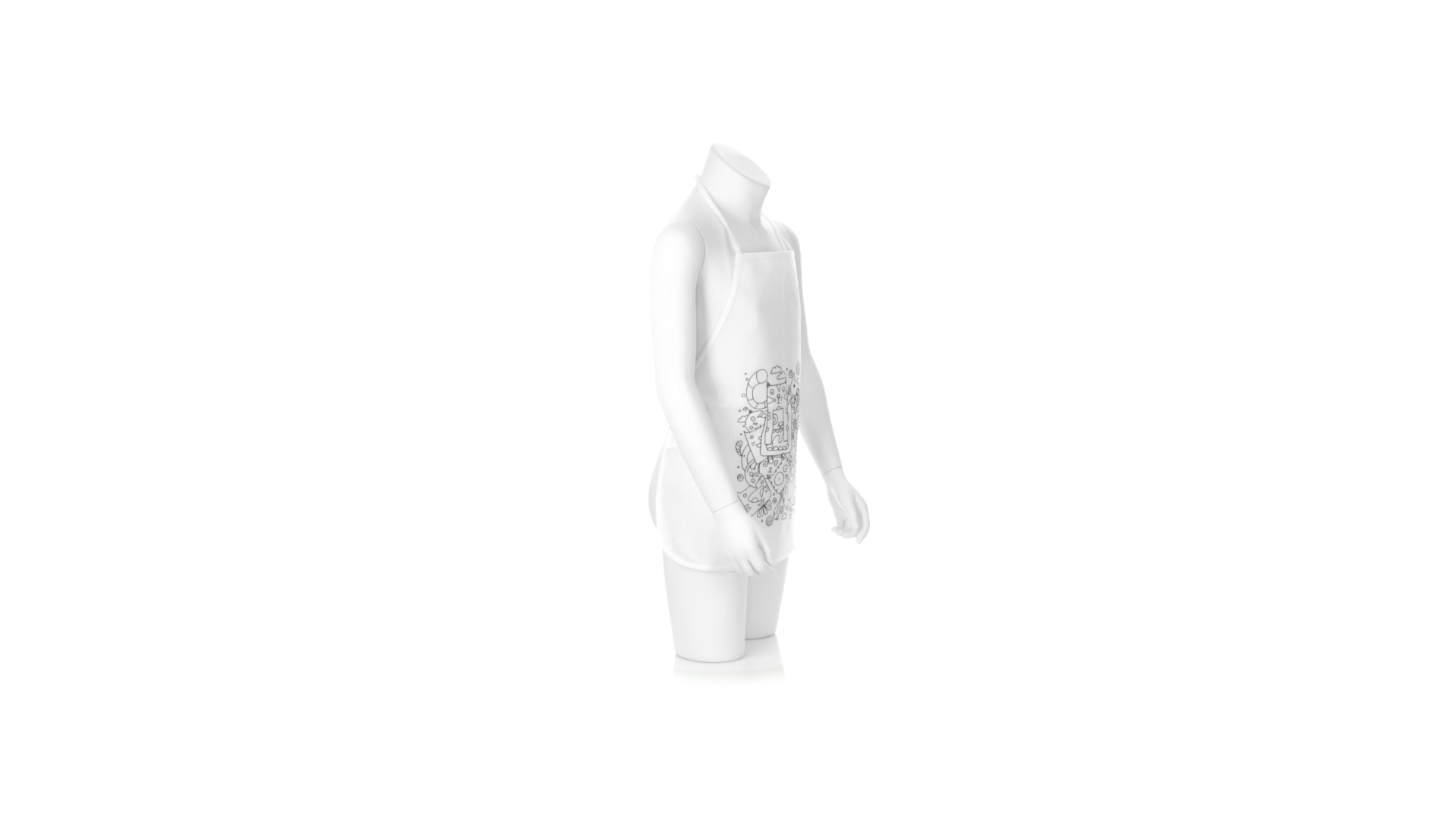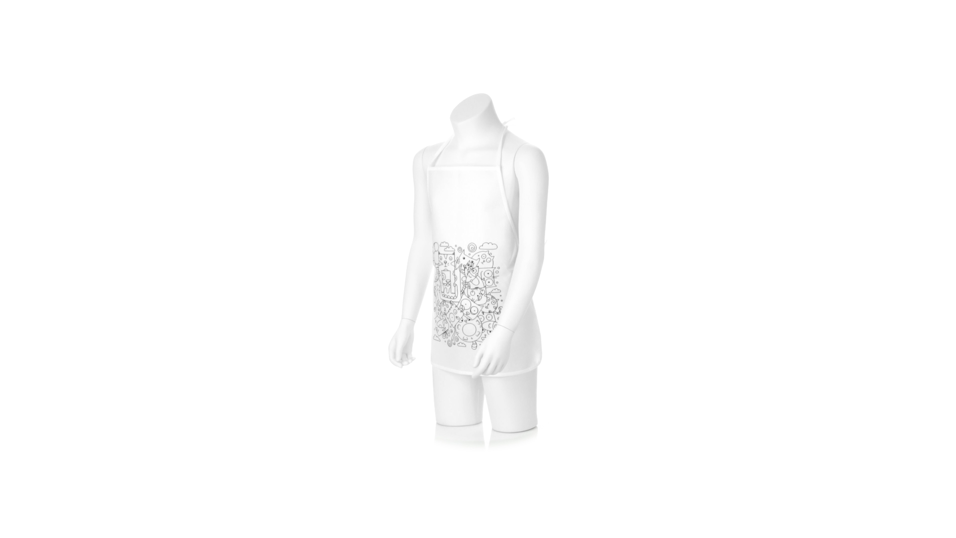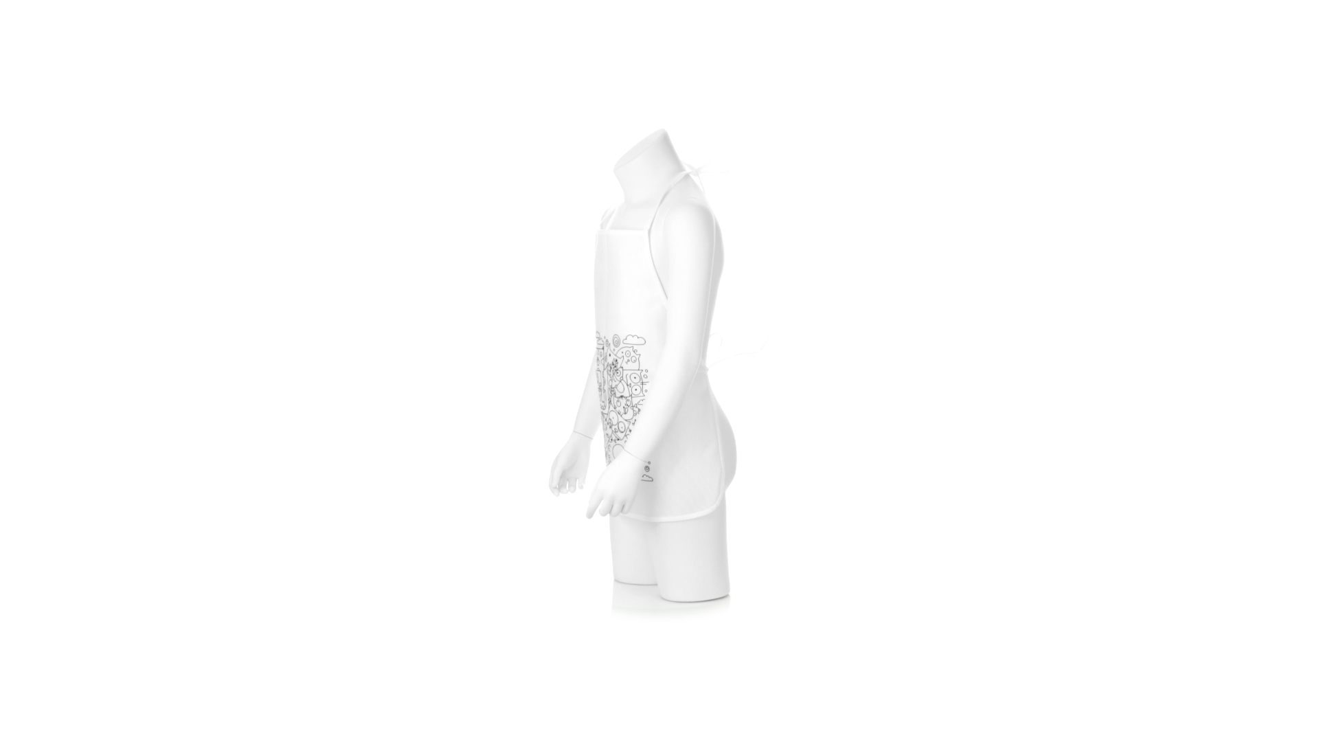 Non-Woven-Schürze in Weiss aus Faservlies. Speziell entwickelt für das Bemalen mit Filzstiften. Enthält 5 Filzstifte mit zylinderförmigem Gehäuse in verschiedenen Farben. Mit Bändern zum Verstellen an Nacken und Taille.