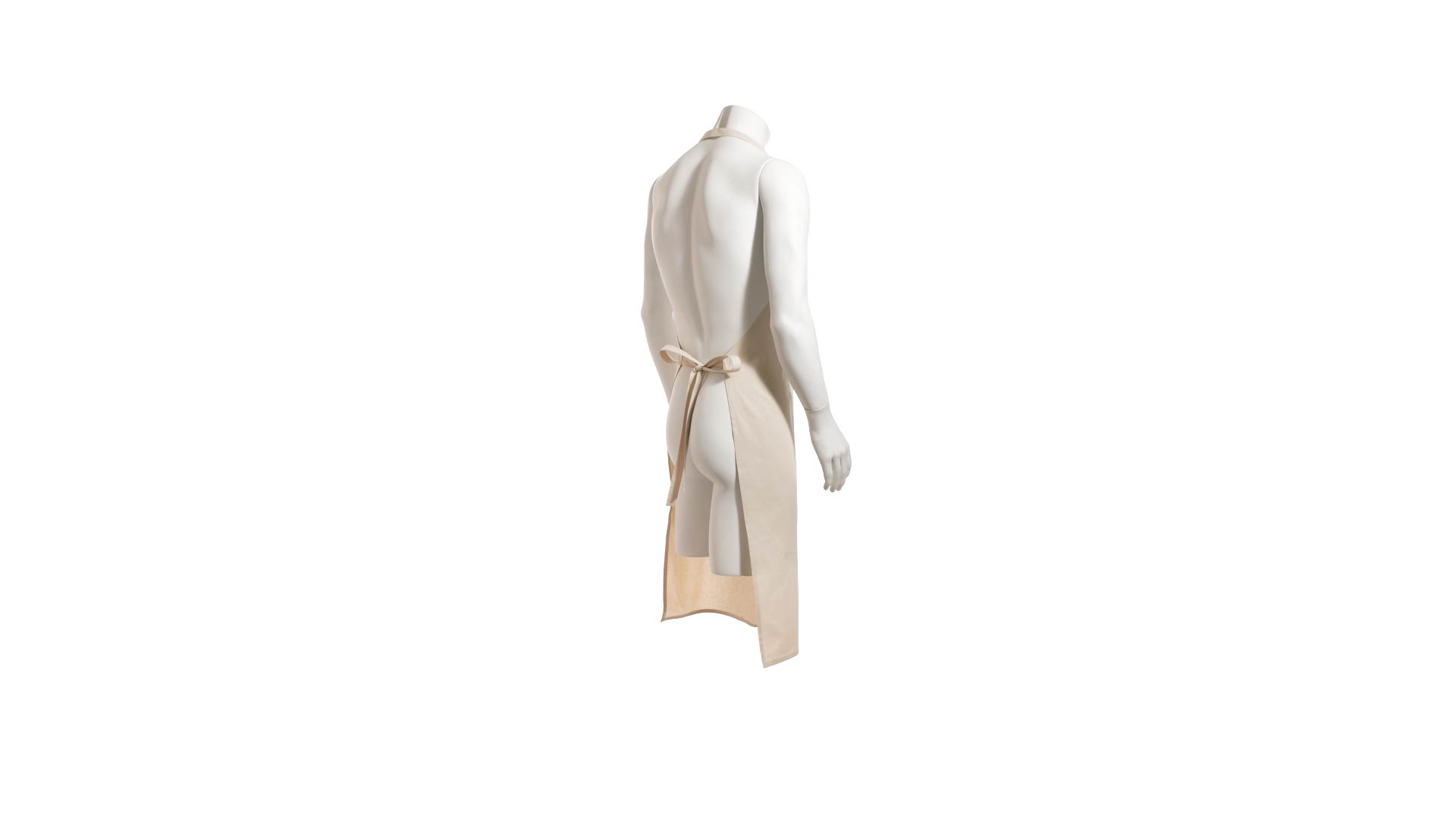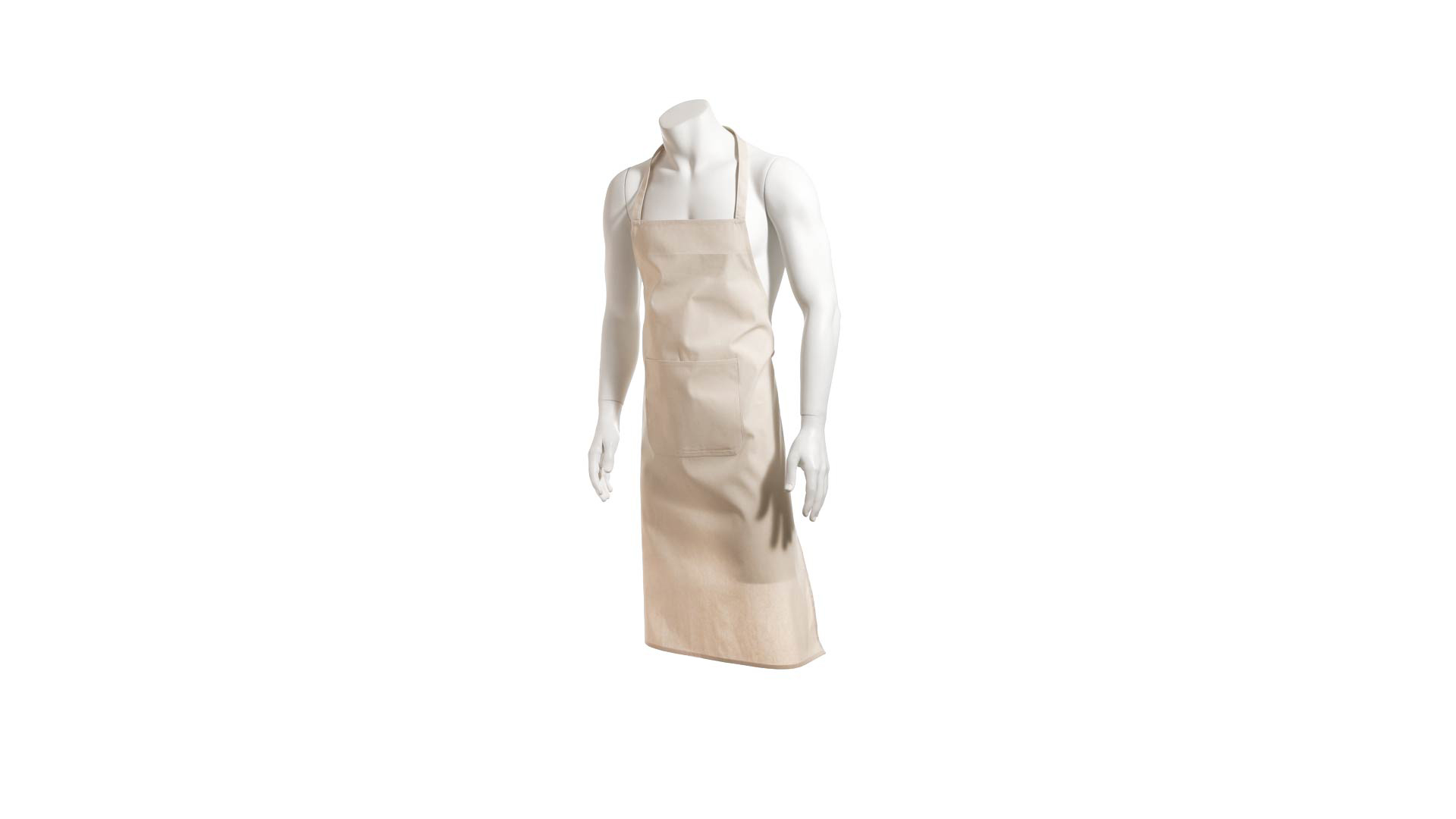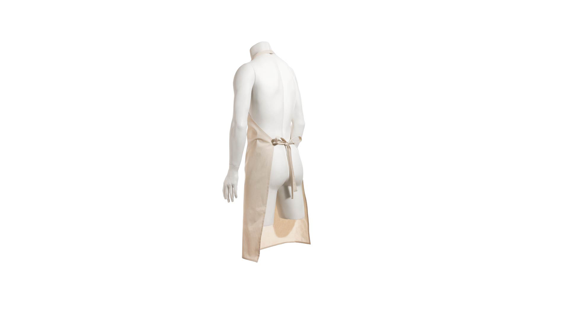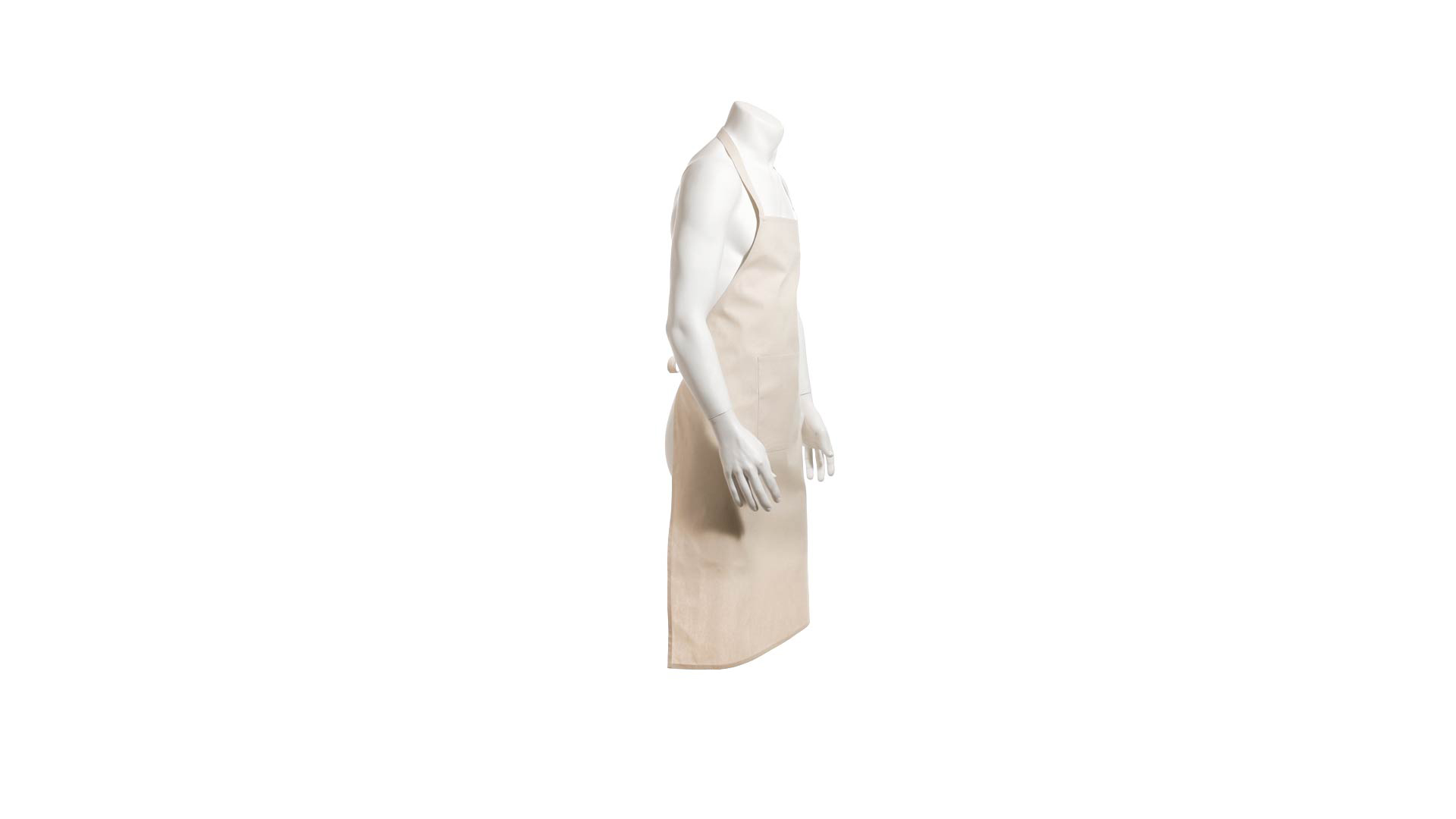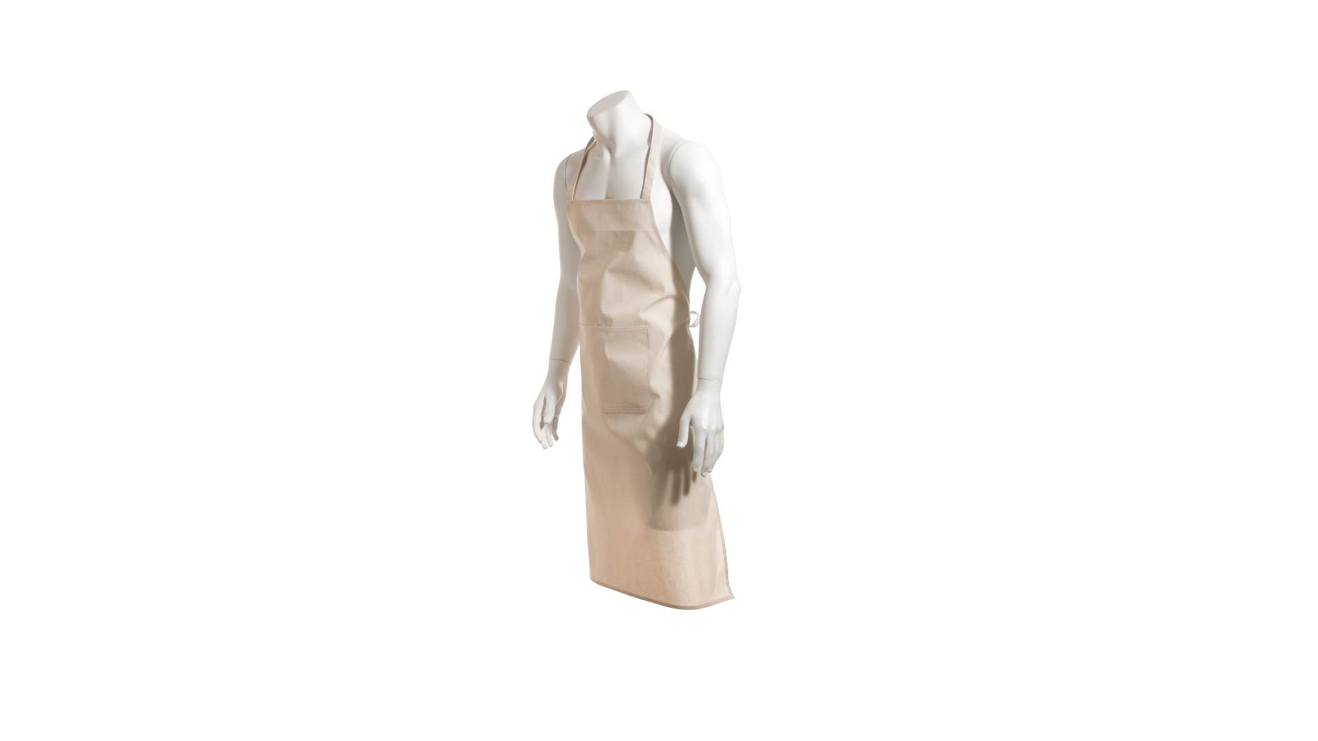 Schürze aus Bio-Baumwolle, mit Fronttasche und Verstellriemen. Reicht bis zu den Knien hin. Umweltfreundliches Etikett, das die Kennzeichnung von Bio-Baumwolle auszeichnet.