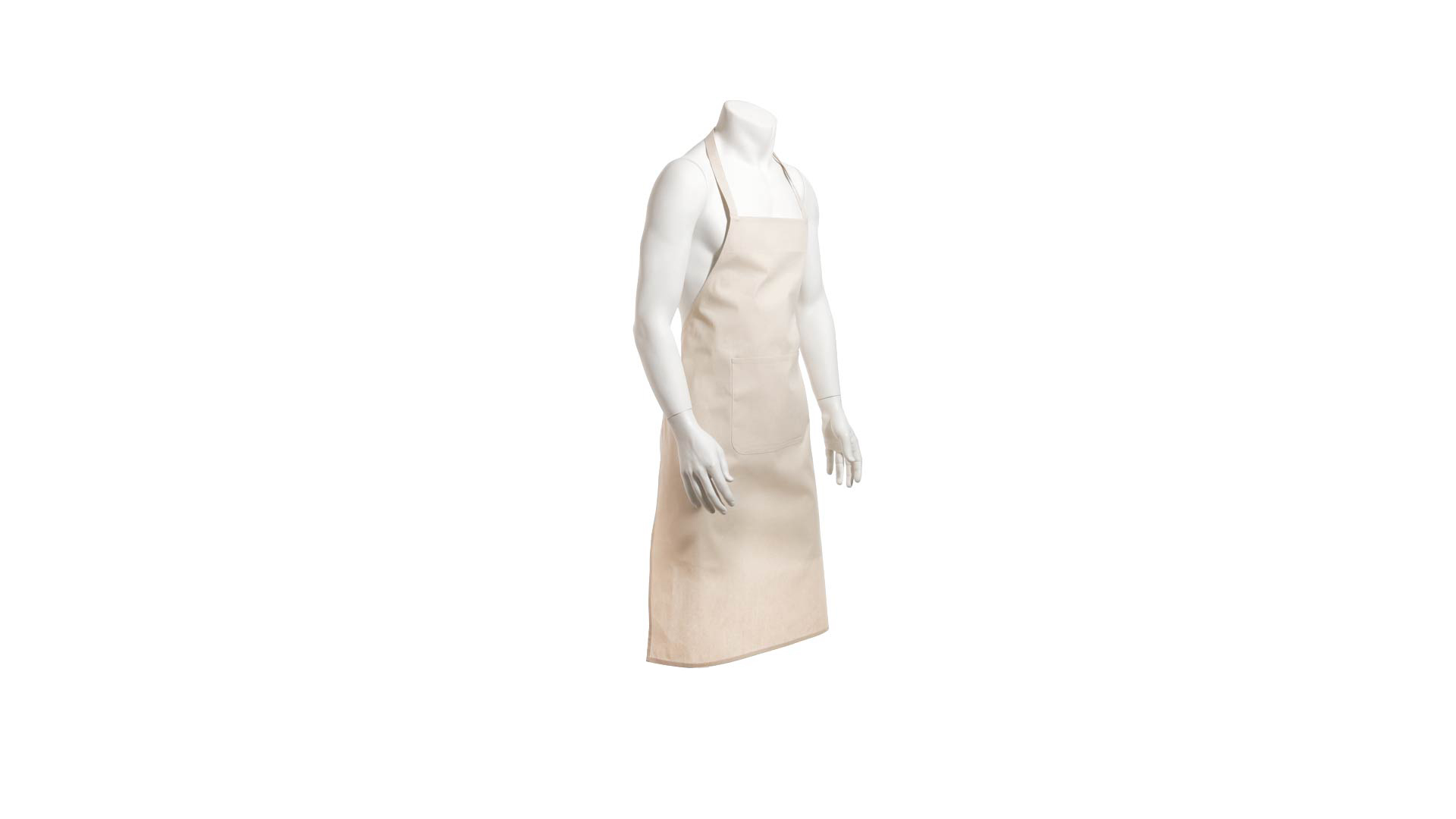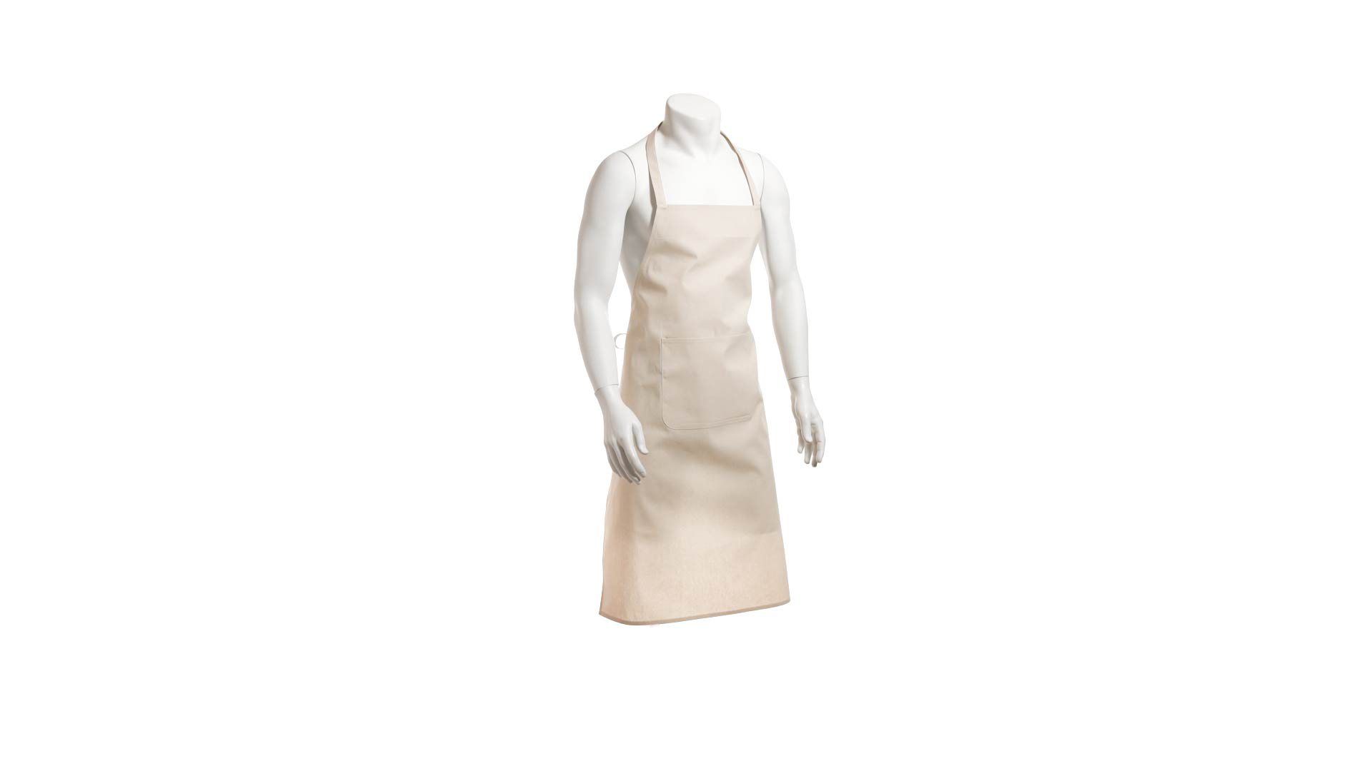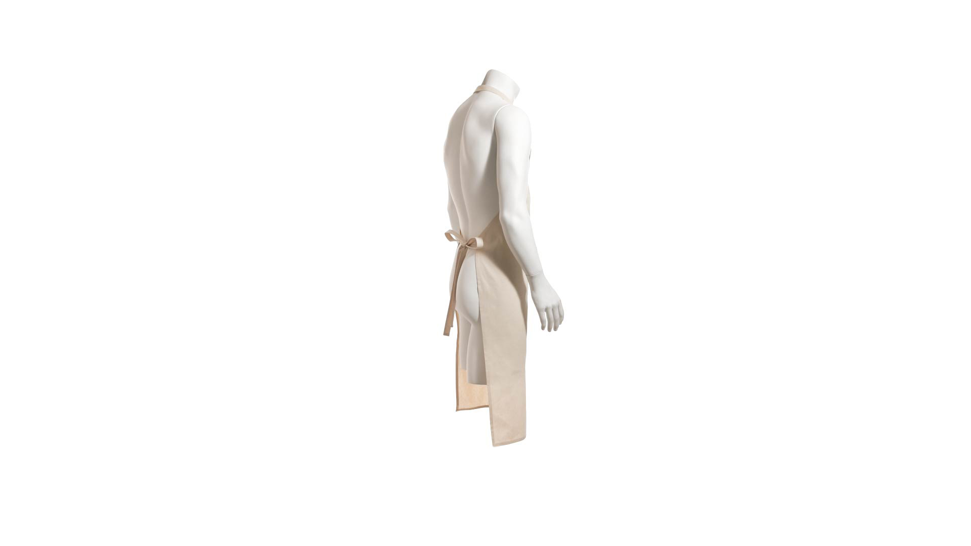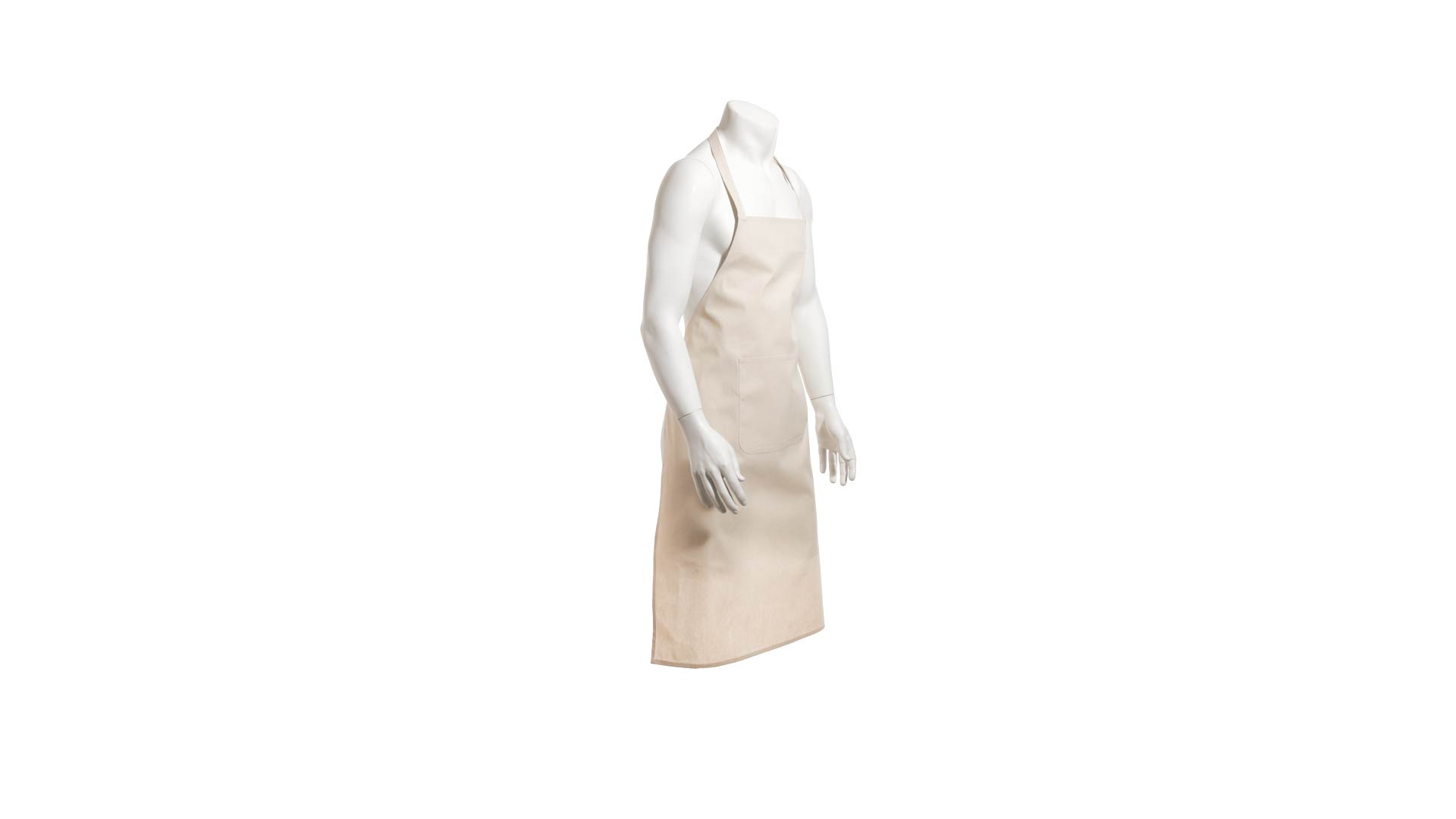 Schürze aus Bio-Baumwolle, mit Fronttasche und Verstellriemen. Reicht bis zu den Knien hin. Umweltfreundliches Etikett, das die Kennzeichnung von Bio-Baumwolle auszeichnet.