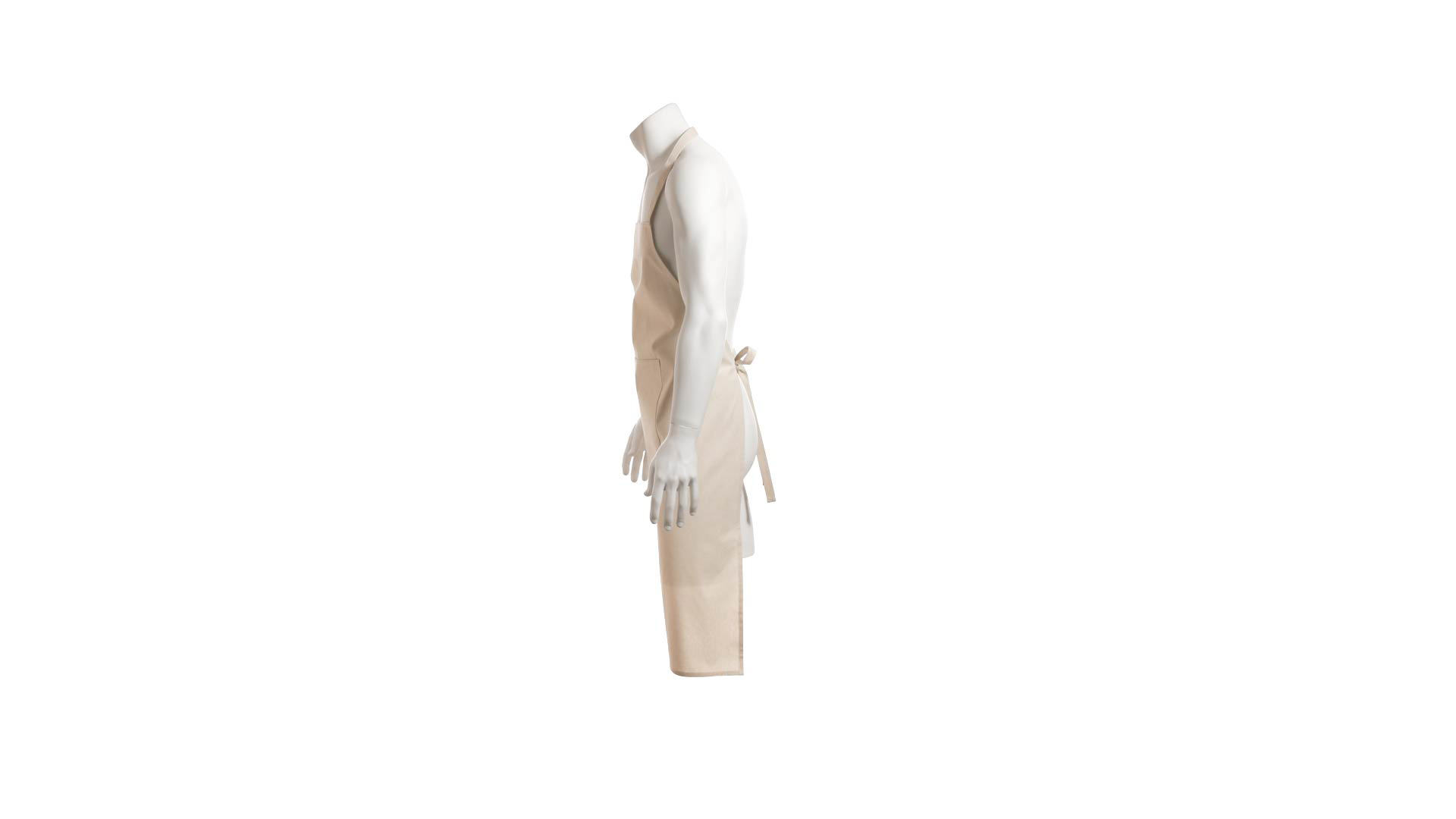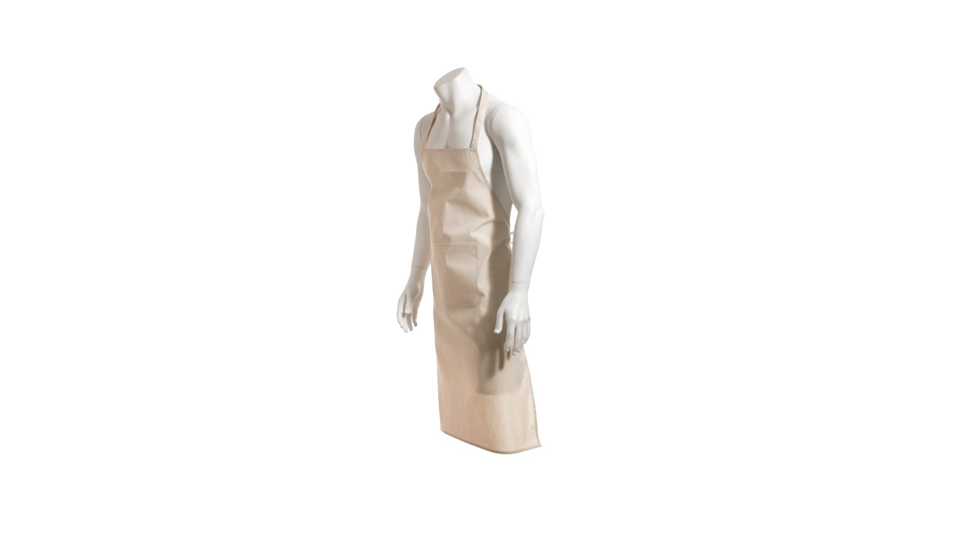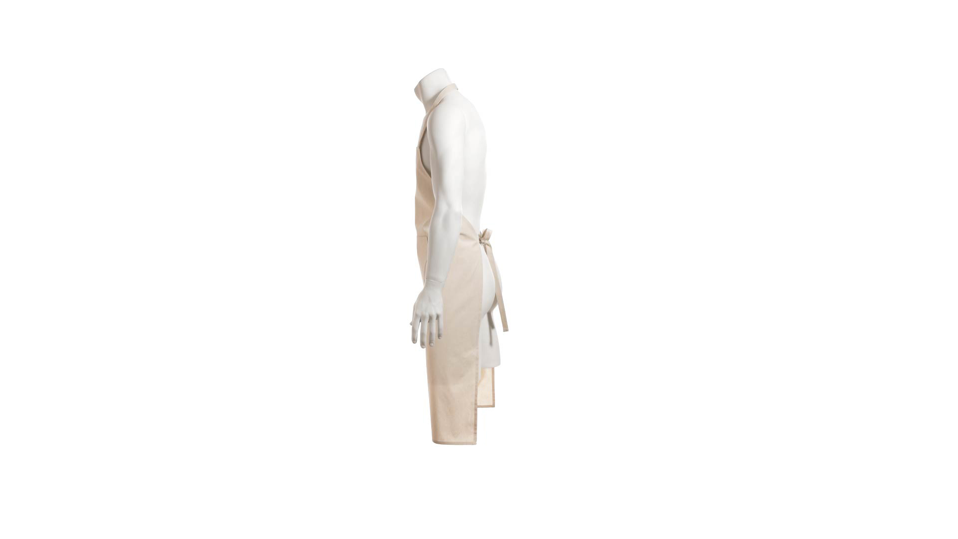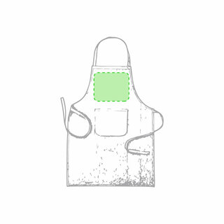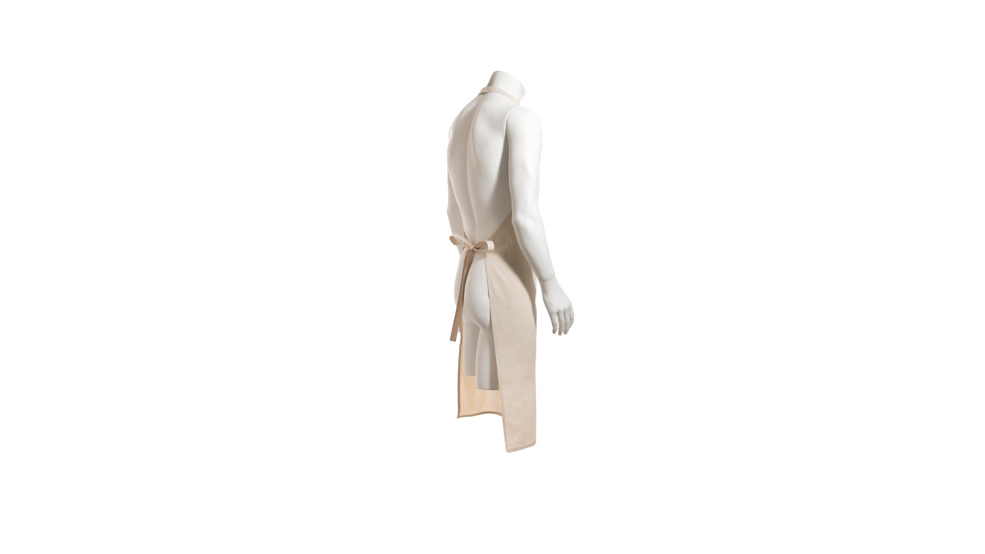 Schürze aus Bio-Baumwolle, mit Fronttasche und Verstellriemen. Reicht bis zu den Knien hin. Umweltfreundliches Etikett, das die Kennzeichnung von Bio-Baumwolle auszeichnet.