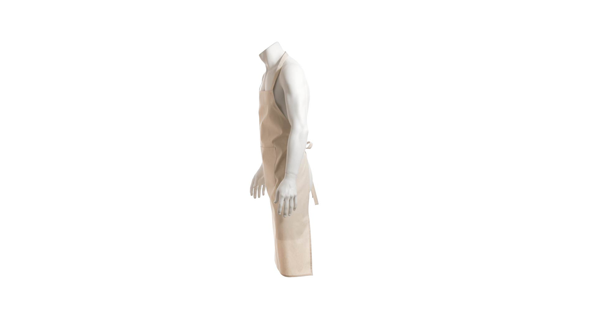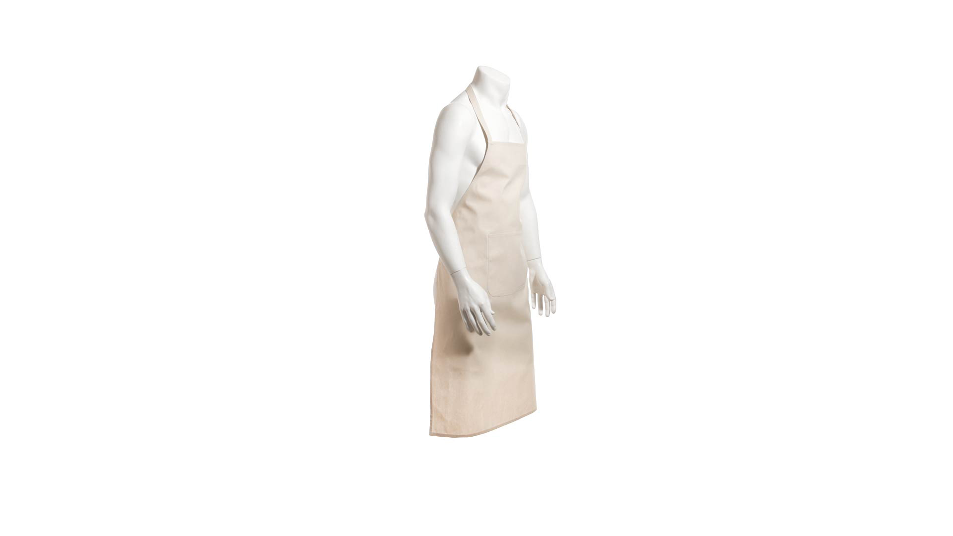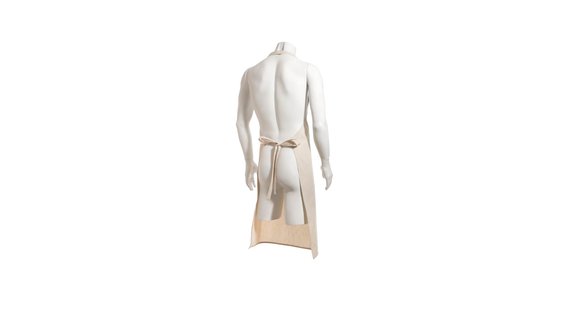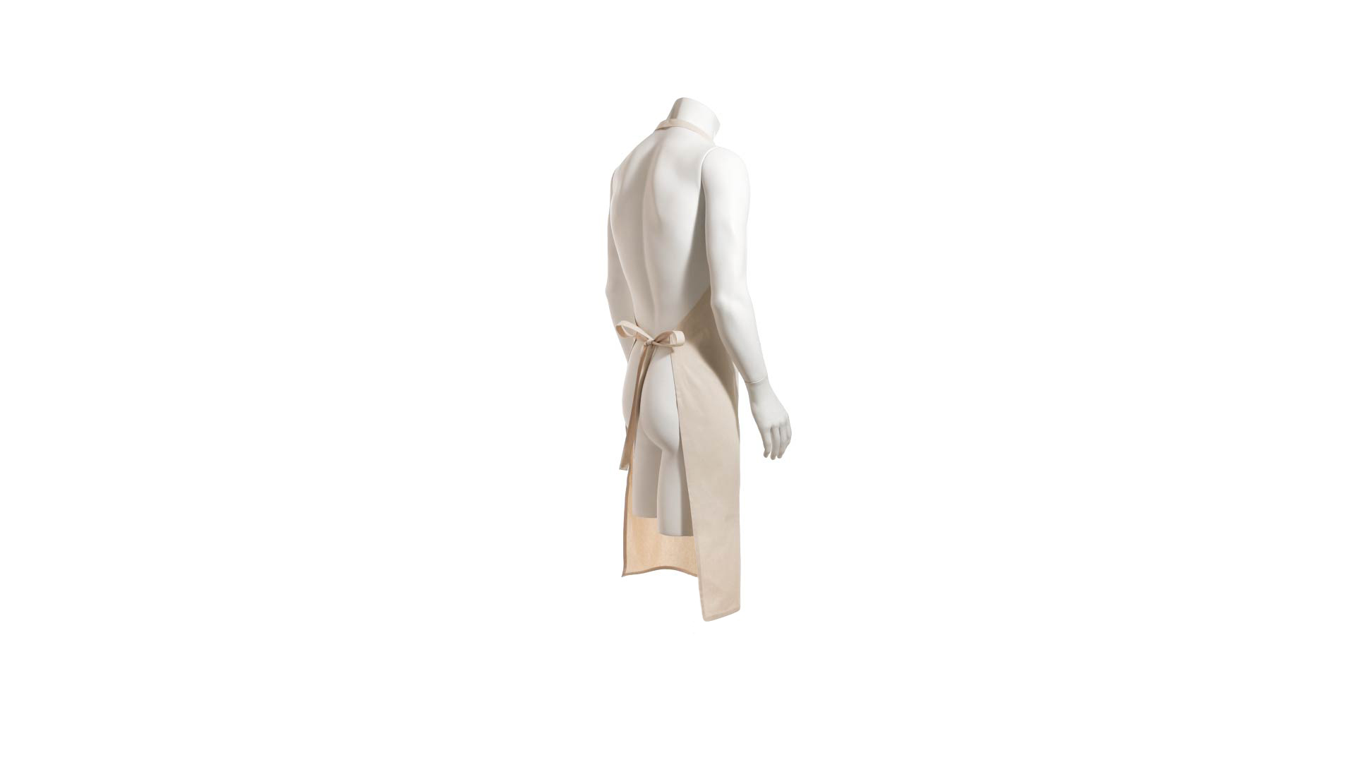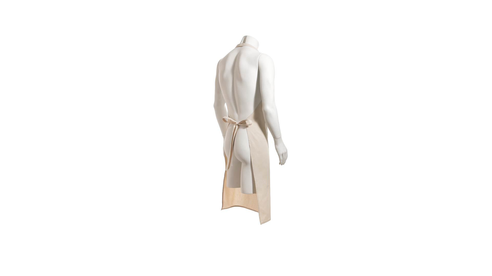 Schürze aus Bio-Baumwolle, mit Fronttasche und Verstellriemen. Reicht bis zu den Knien hin. Umweltfreundliches Etikett, das die Kennzeichnung von Bio-Baumwolle auszeichnet.