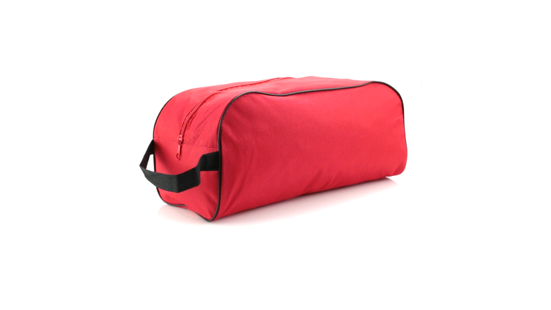 Schuhtasche aus resistentem 600D Polyester in einer Vielzahl von lebendigen Farben. Mit Reissverschluss, Paspelierung zur Verstärkung und bequemem Tragegriff.