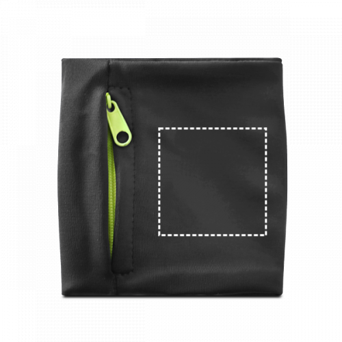 Schweissband aus Polyester mit Reissverschluss. Ideal zur Aufbewahrung kleiner Gegenstände während der Freizeitaktivitäten. 100 x 100 mm