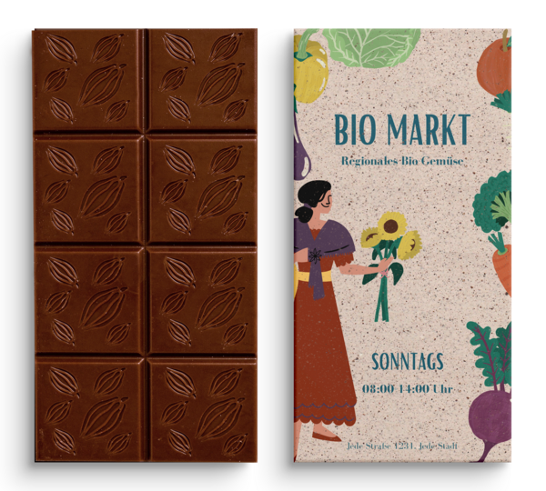 Verleihe deiner Schokolade eine persönliche Note mit einem individuellen 4-farbigen Digitaldruck auf der Kartonverpackung, um eine einzigartige Präsentation für dein Unternehmen oder deine Veranstaltung zu schaffen. Du kannst die Verpackung zusätzlich individualisieren, indem du dich für eine nachhaltige Kakao-Kartonverpackung mit Ihrem einzigartigen unverwechselbaren Erscheingsbild wählst.