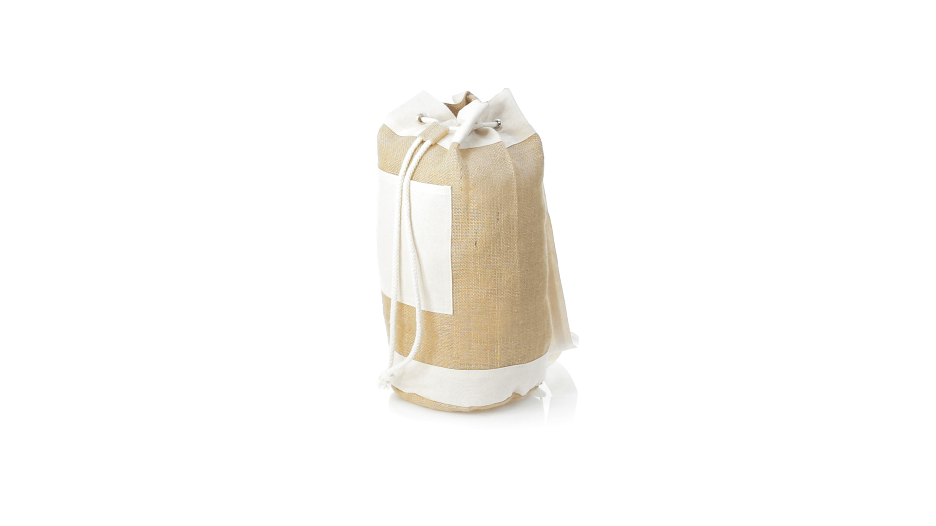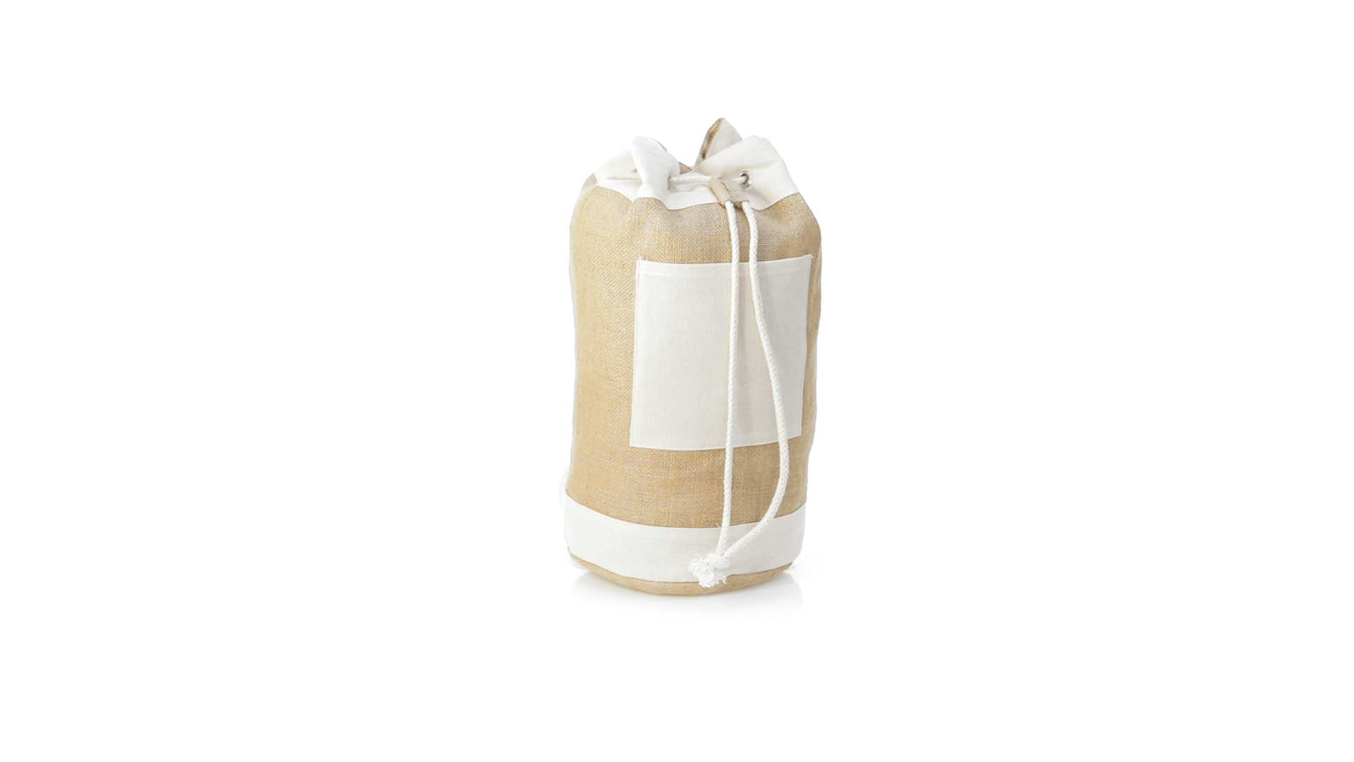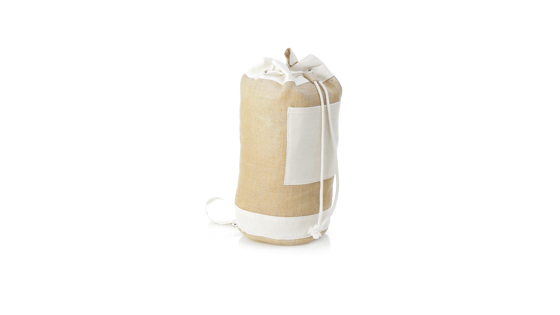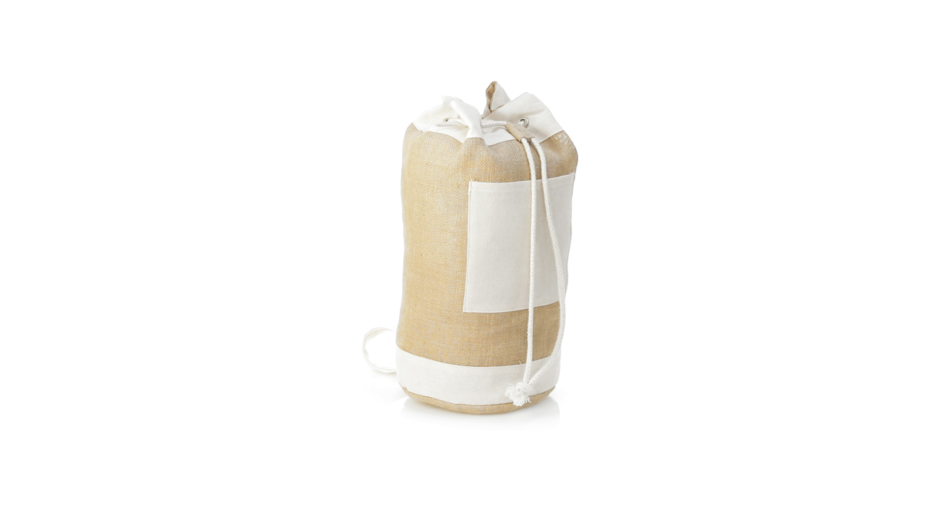 Mehrzweck-Seesack aus Nature Line und zweifarbigem Design. Hergestellt aus Jute, mit Details aus Baumwolle. Mit verstellbarem Gurt und Innentasche. Hauptfach mit verstärkten Metallringen und Fronttasche zur einfachen Kennzeichnung.