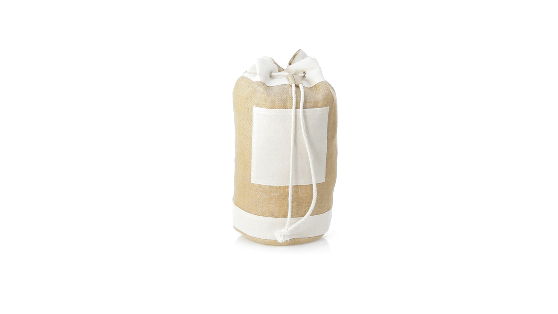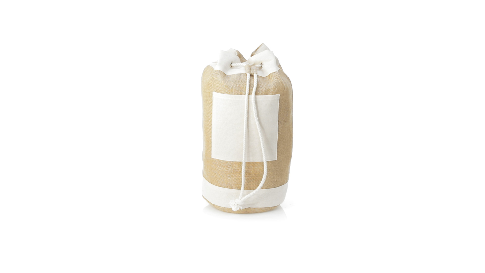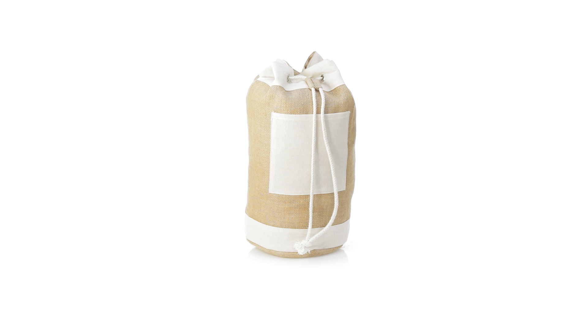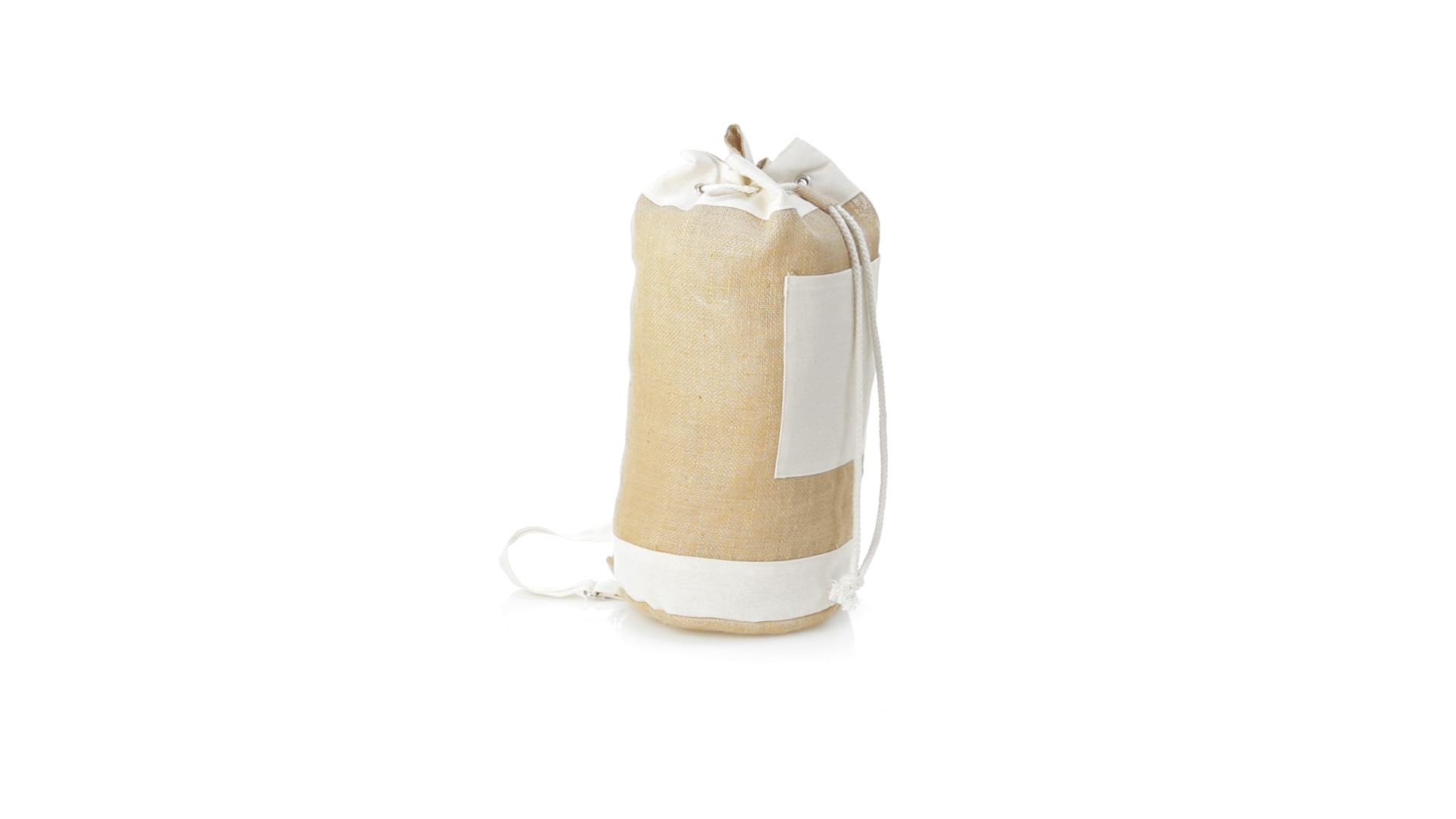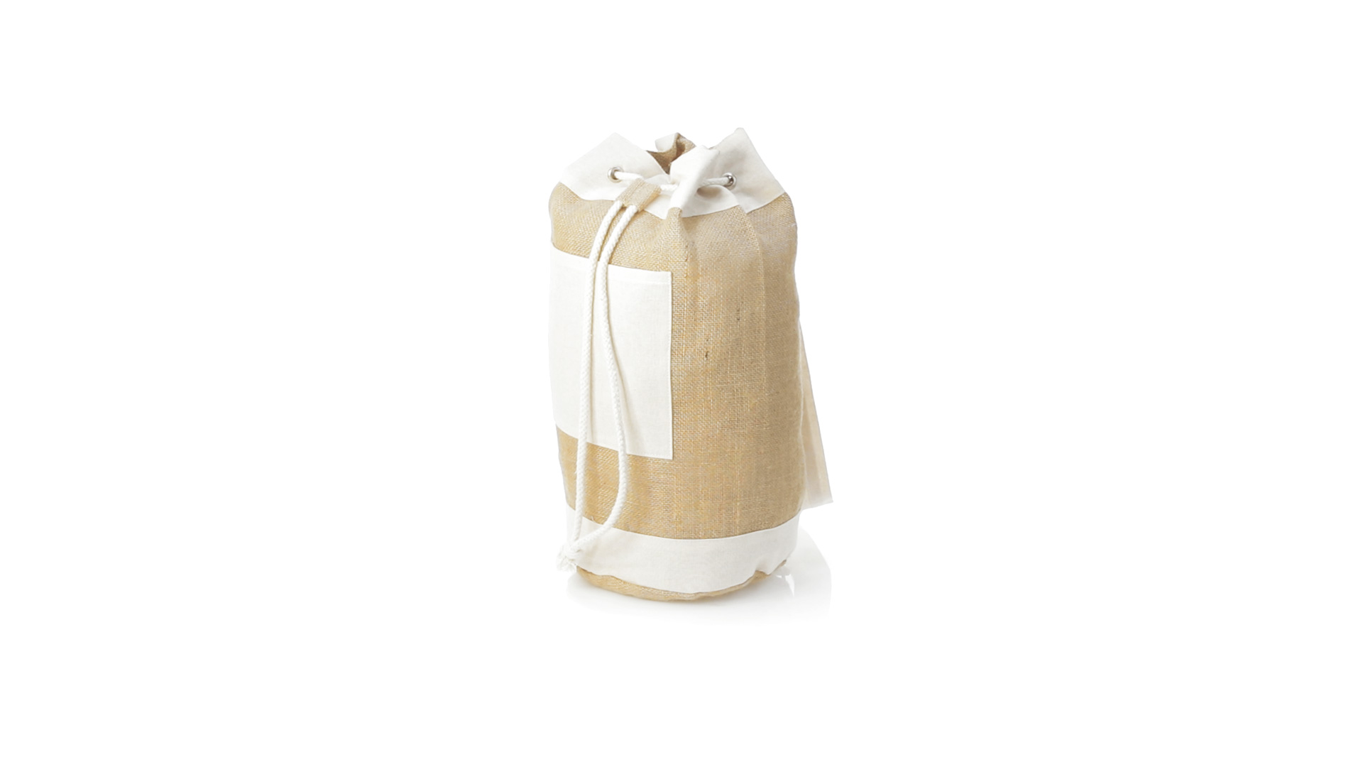 Mehrzweck-Seesack aus Nature Line und zweifarbigem Design. Hergestellt aus Jute, mit Details aus Baumwolle. Mit verstellbarem Gurt und Innentasche. Hauptfach mit verstärkten Metallringen und Fronttasche zur einfachen Kennzeichnung.