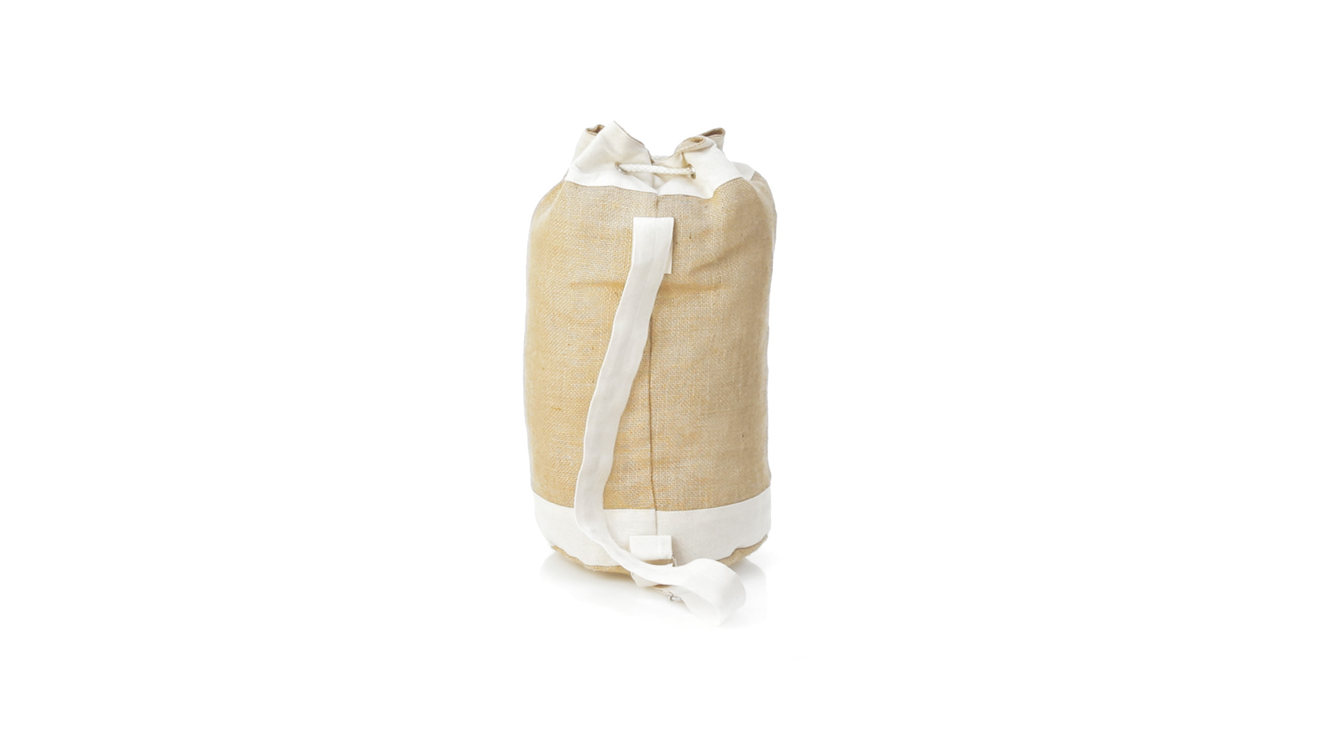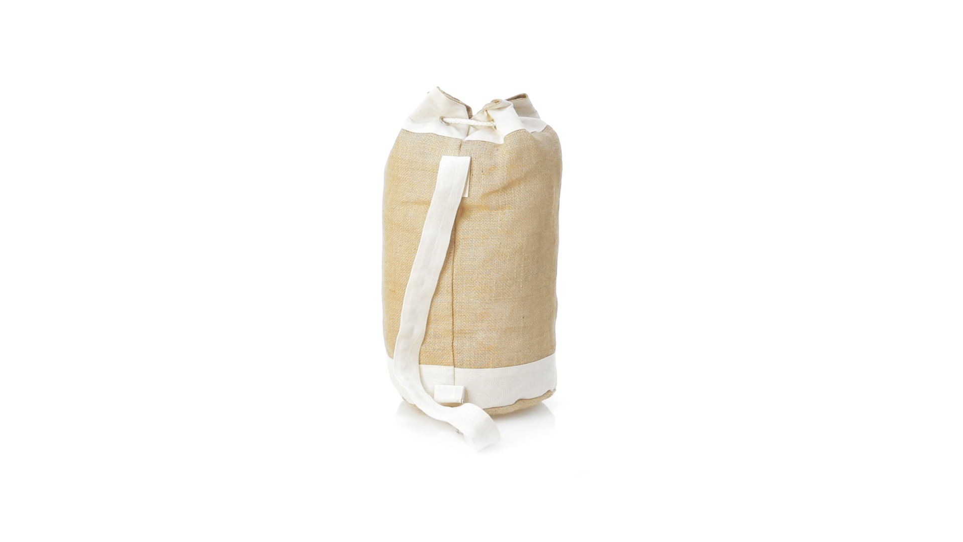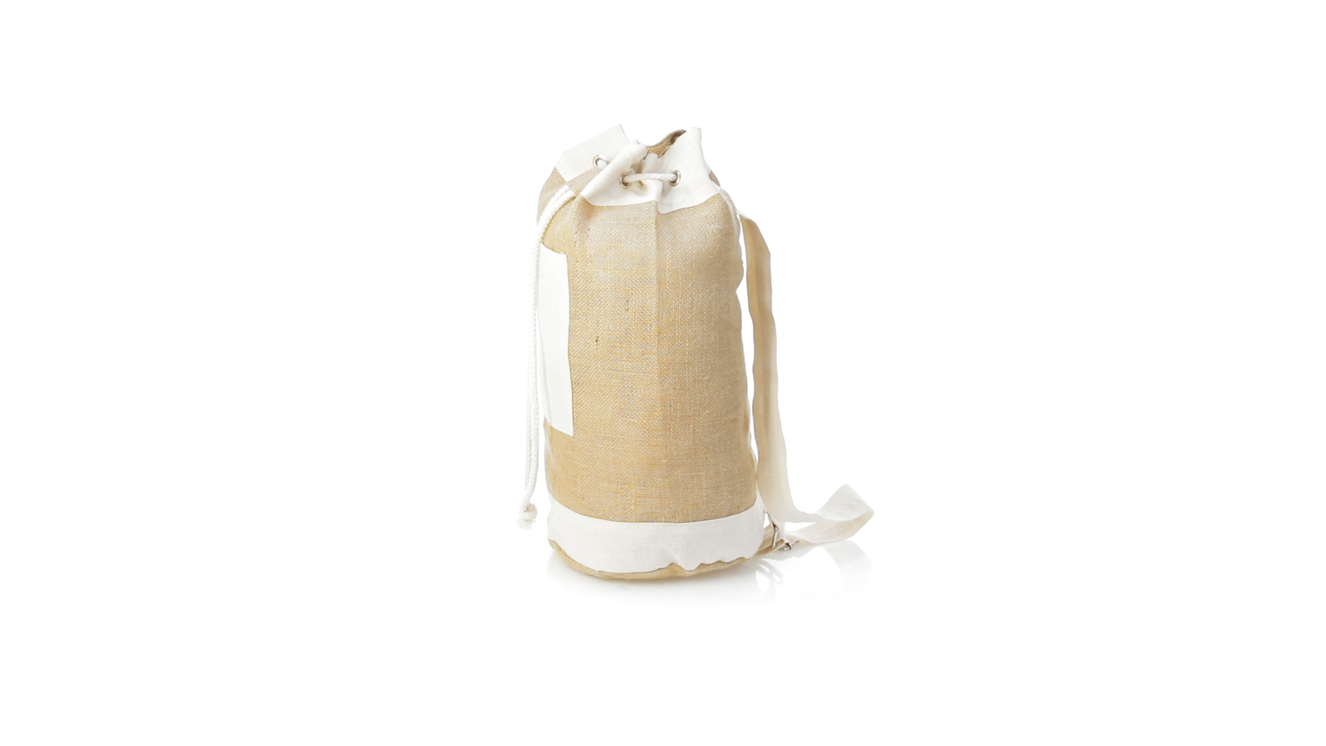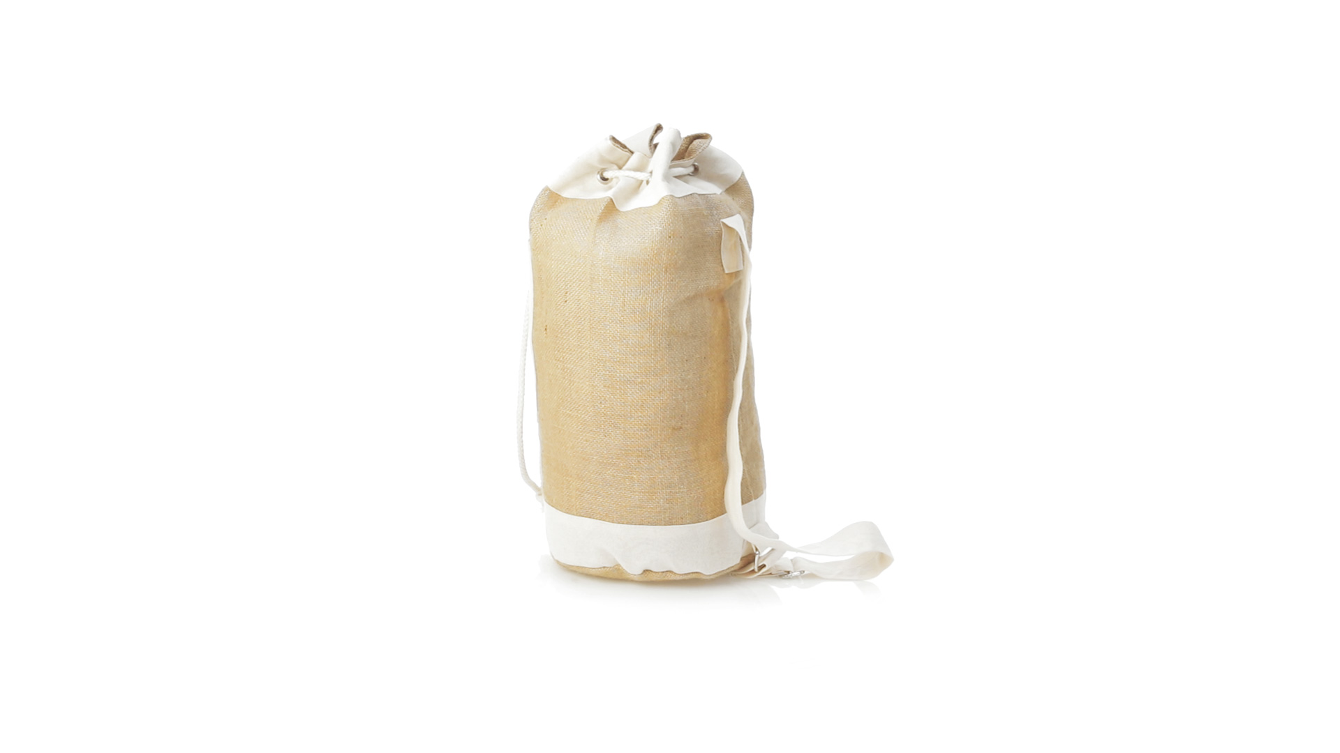 Mehrzweck-Seesack aus Nature Line und zweifarbigem Design. Hergestellt aus Jute, mit Details aus Baumwolle. Mit verstellbarem Gurt und Innentasche. Hauptfach mit verstärkten Metallringen und Fronttasche zur einfachen Kennzeichnung.