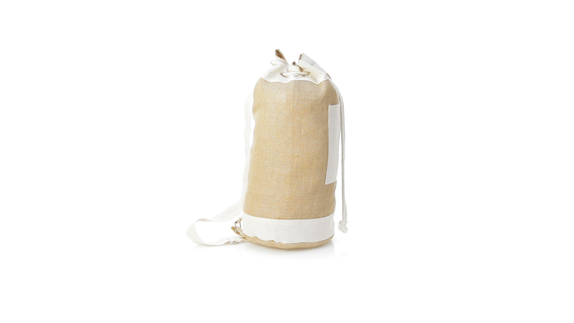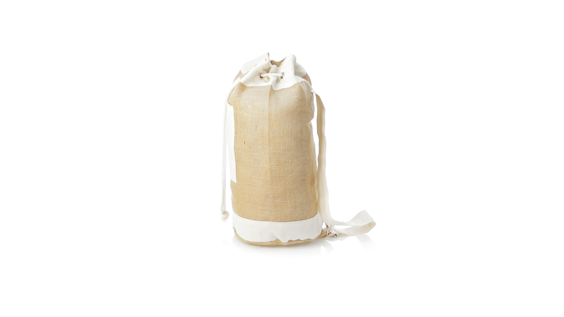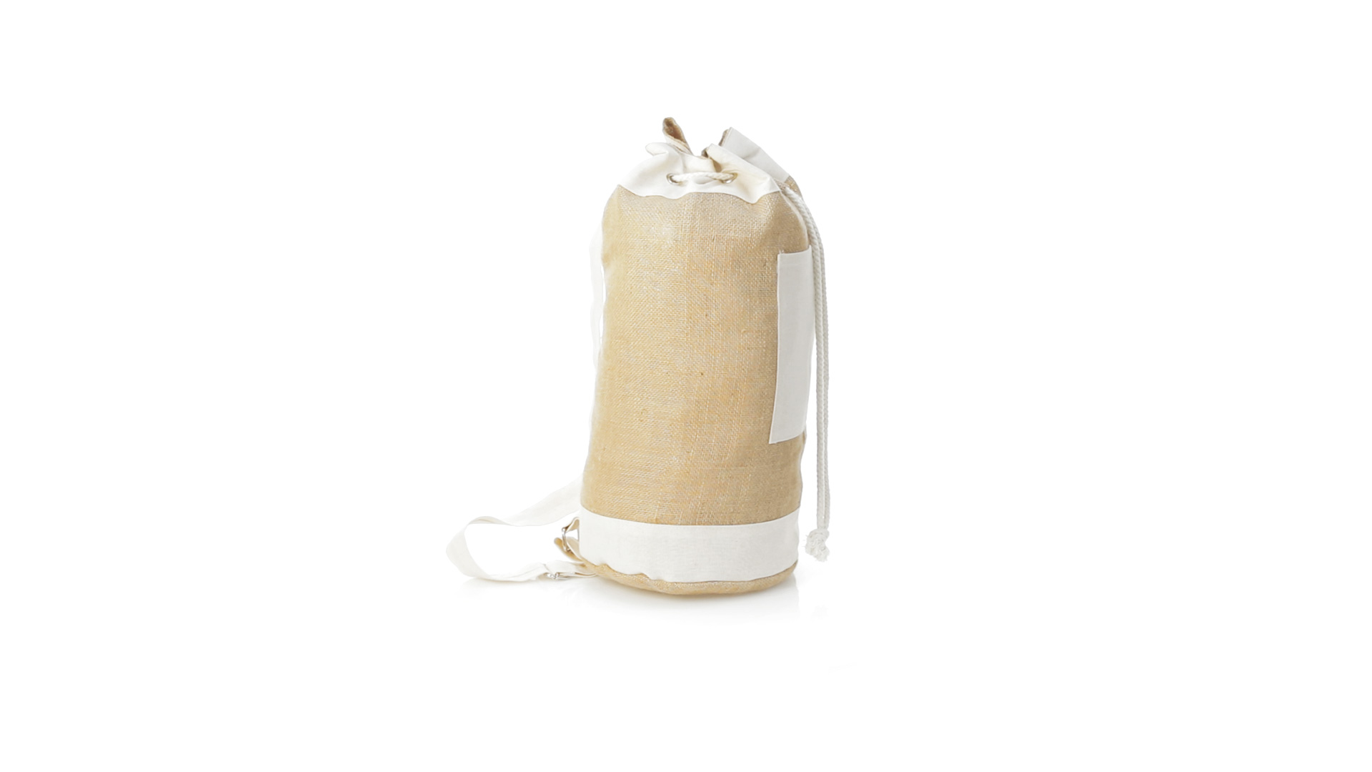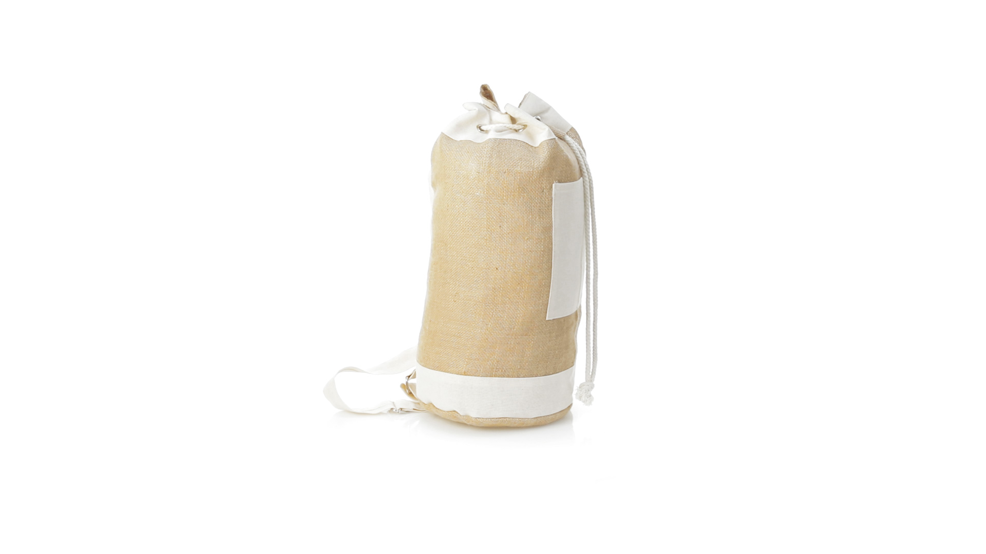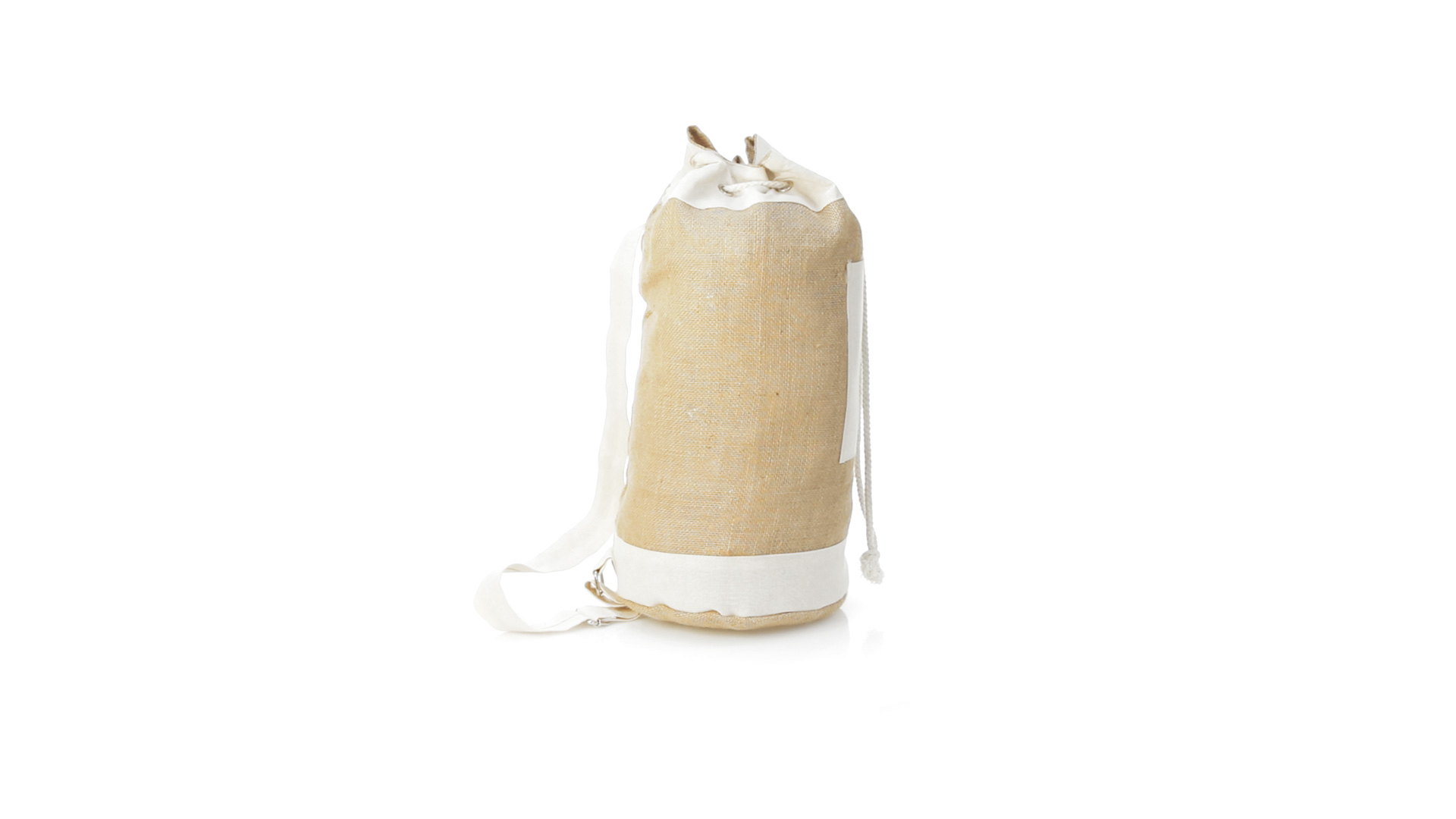 Mehrzweck-Seesack aus Nature Line und zweifarbigem Design. Hergestellt aus Jute, mit Details aus Baumwolle. Mit verstellbarem Gurt und Innentasche. Hauptfach mit verstärkten Metallringen und Fronttasche zur einfachen Kennzeichnung.