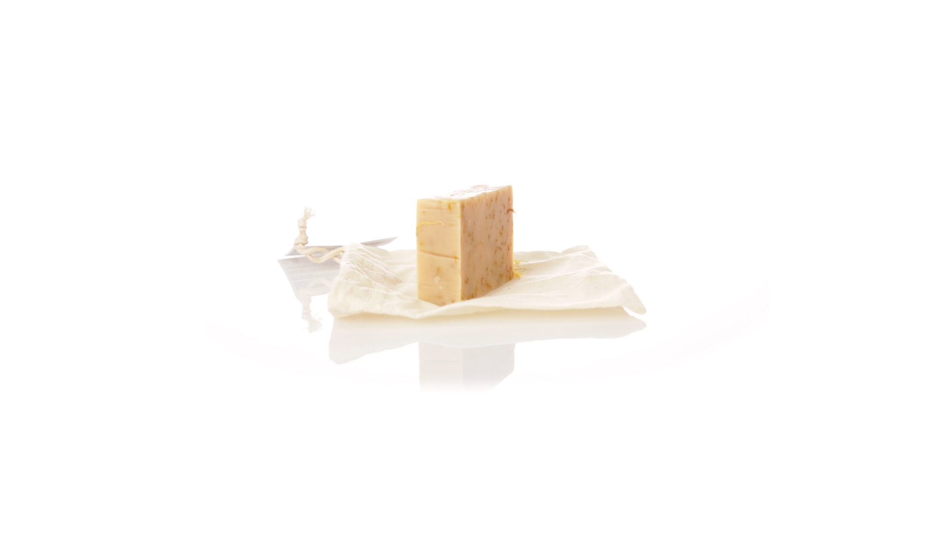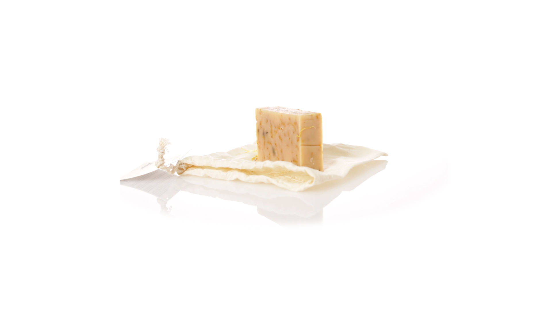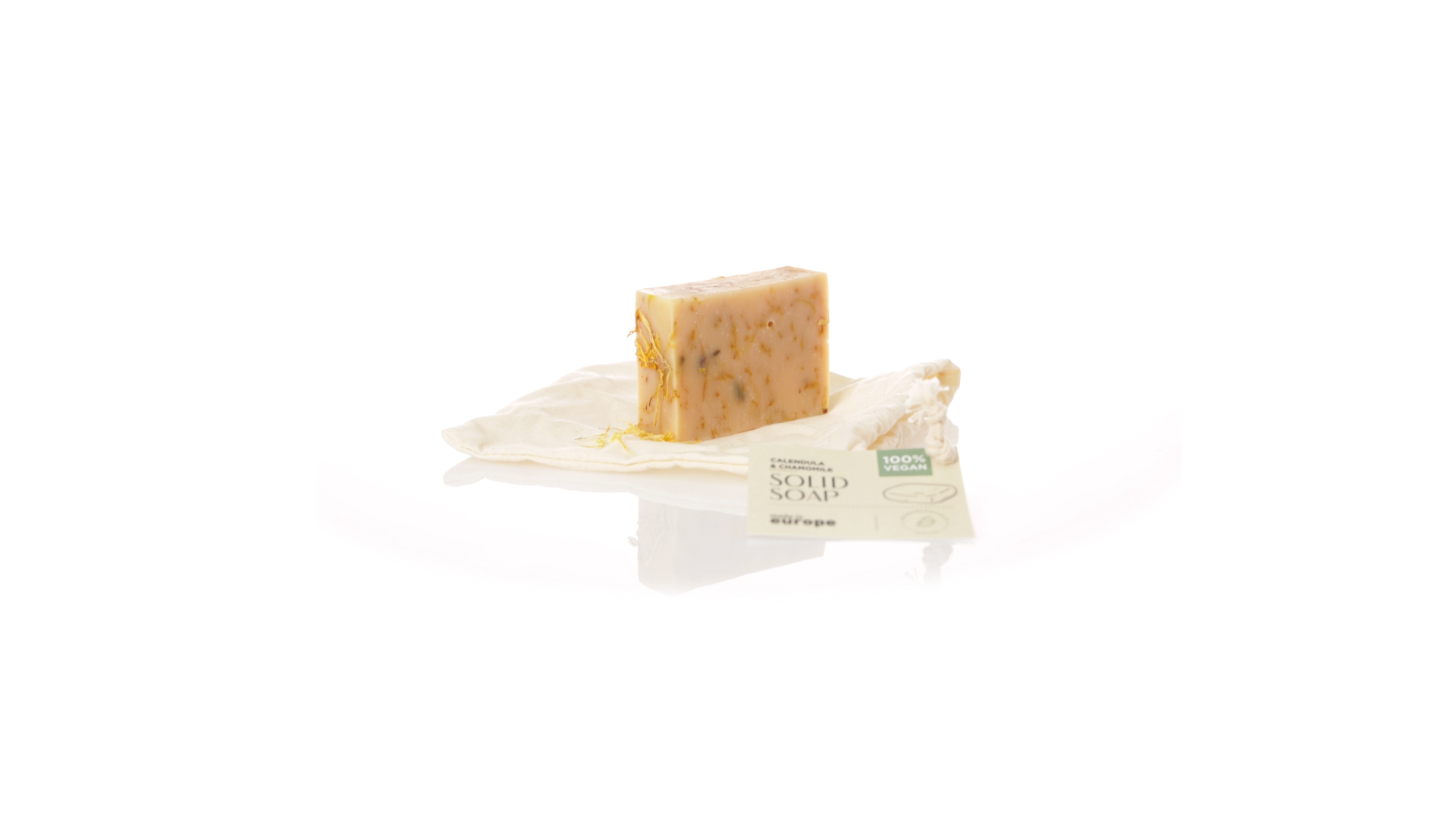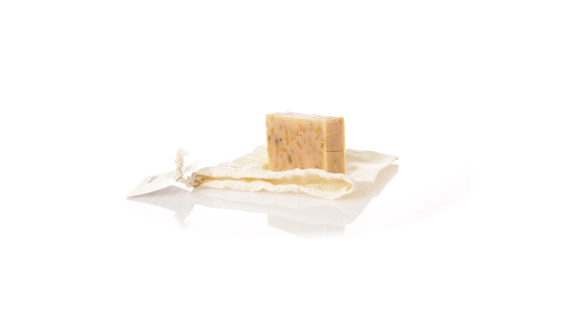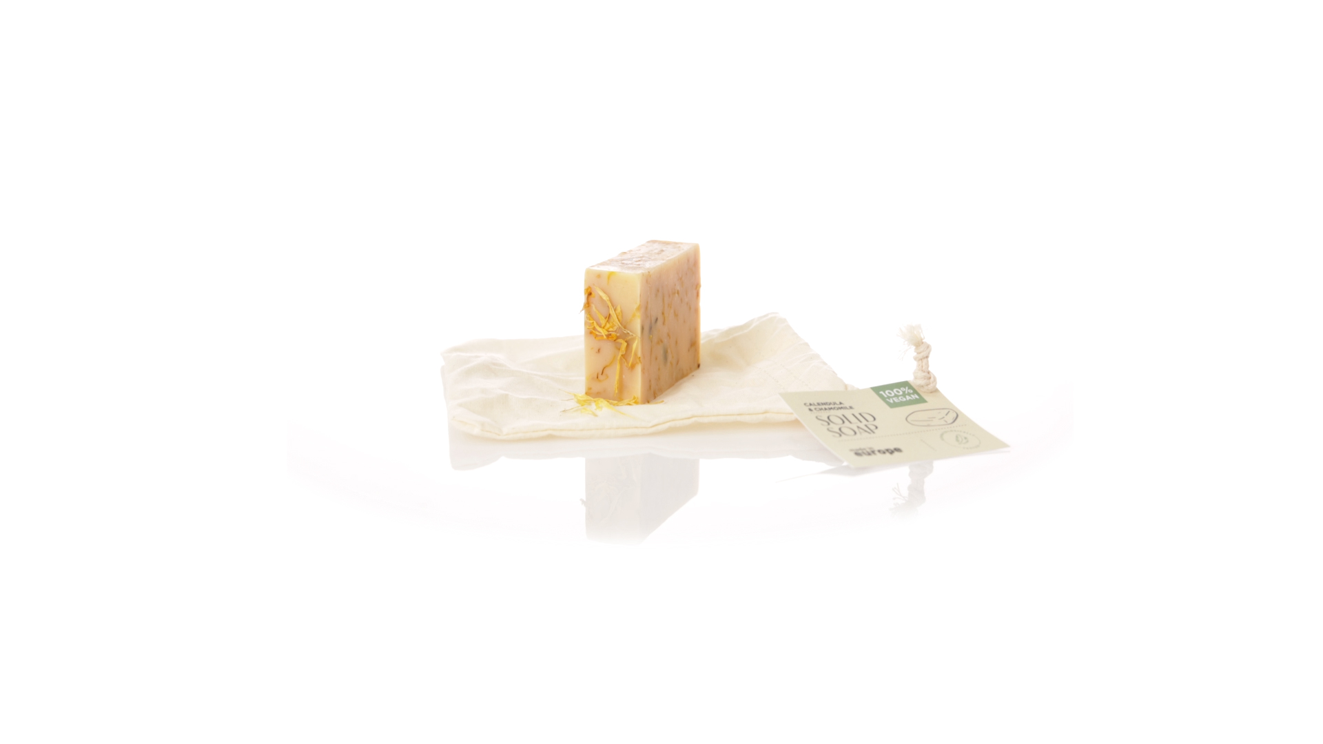 Veganes Seifenstück von 100 gr. Calendula und Kamillenduft mit beruhigenden, feuchtigkeitsspendenden und reparierenden Eigenschaften. Dermatologisch getestet und in Europa hergestellt. Präsentiert in einer individuellen Baumwolltasche mit Kordelzugverschluss und einem unverwechselbaren Etikett.Nachhaltiges und 100% veganes Produkt ohne tierische Inhaltsstoffe. Für diese Produkte wurden keine Tierversuche durchgeführt, um den Schutz und den Respekt für alle Tiere zu fördern.