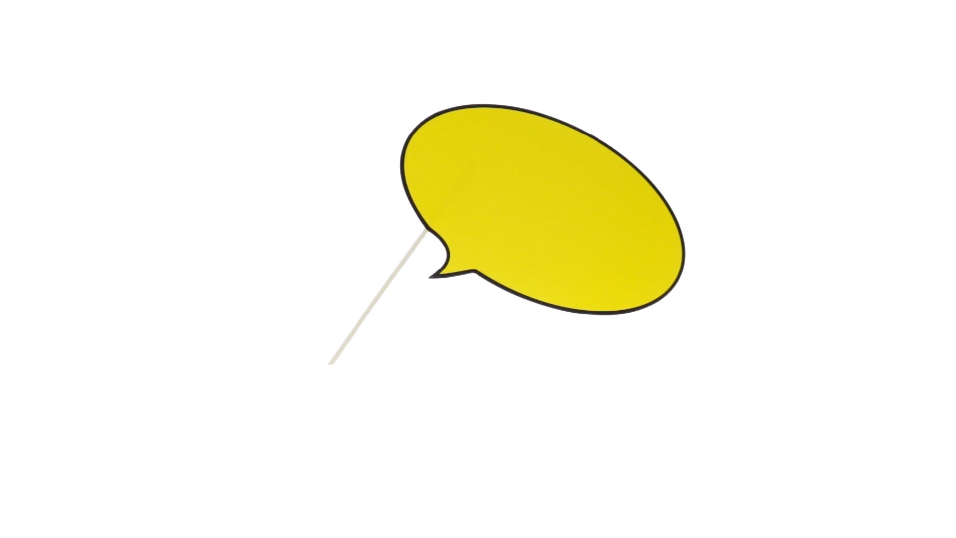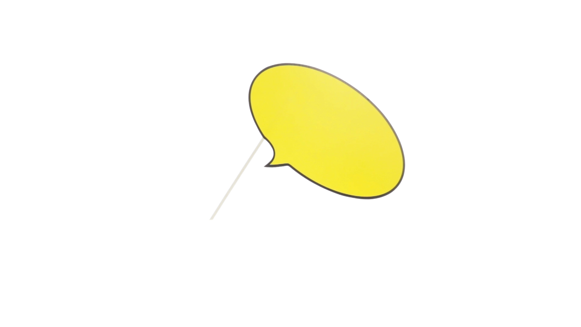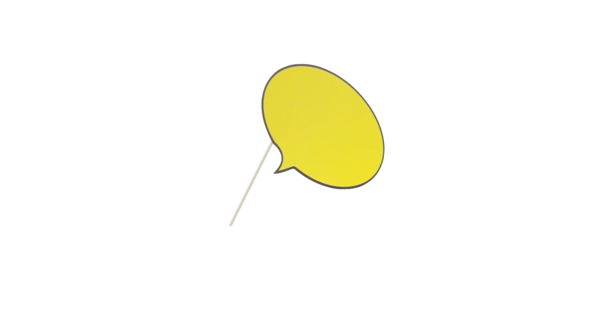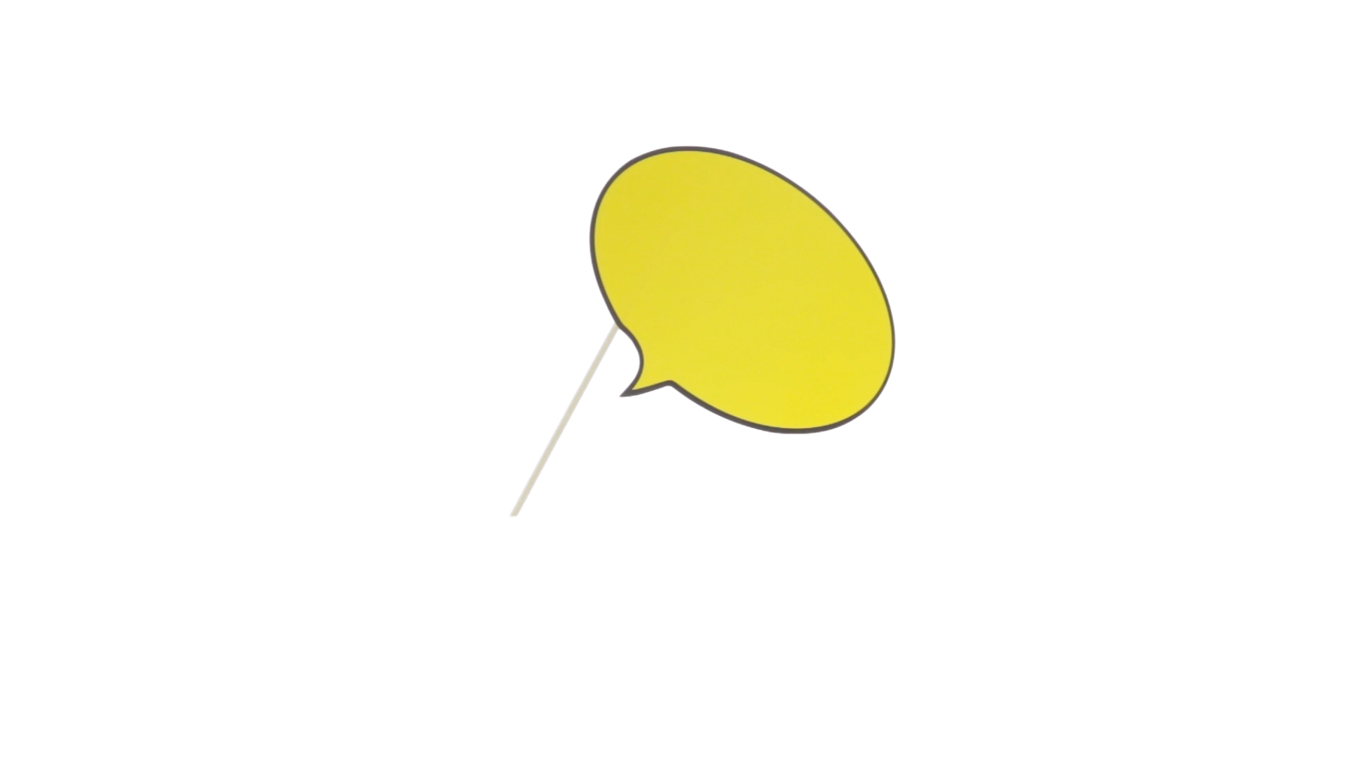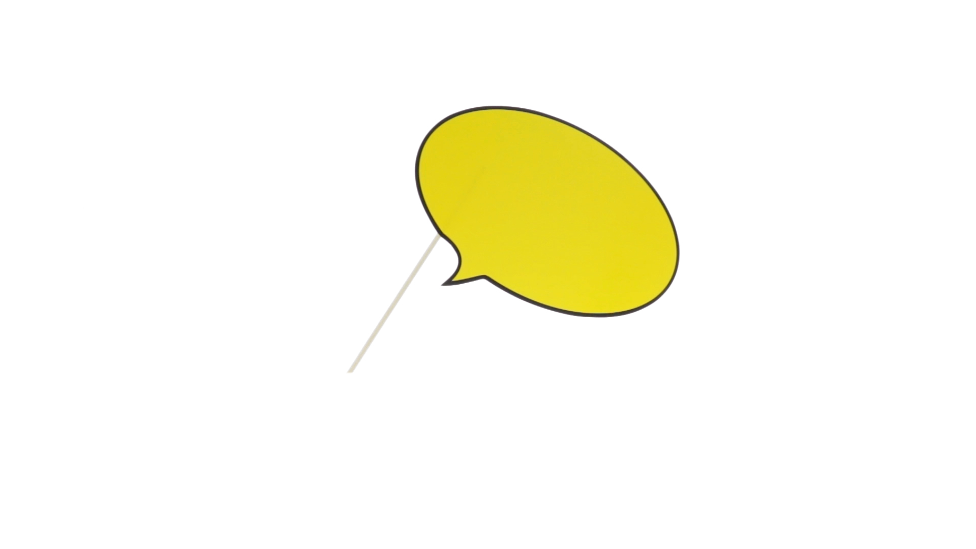 Selfie-Sprechblase in auffälligem Gelb mit grosser Druckfläche. Hergestellt aus Pappe mit Holzgriff.