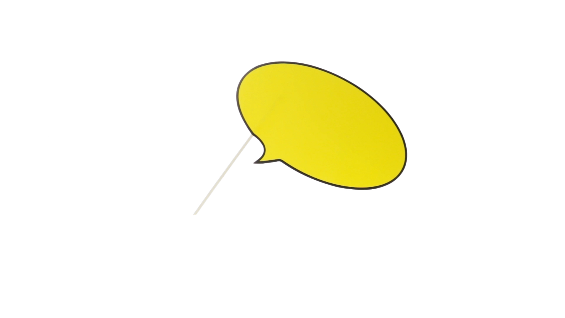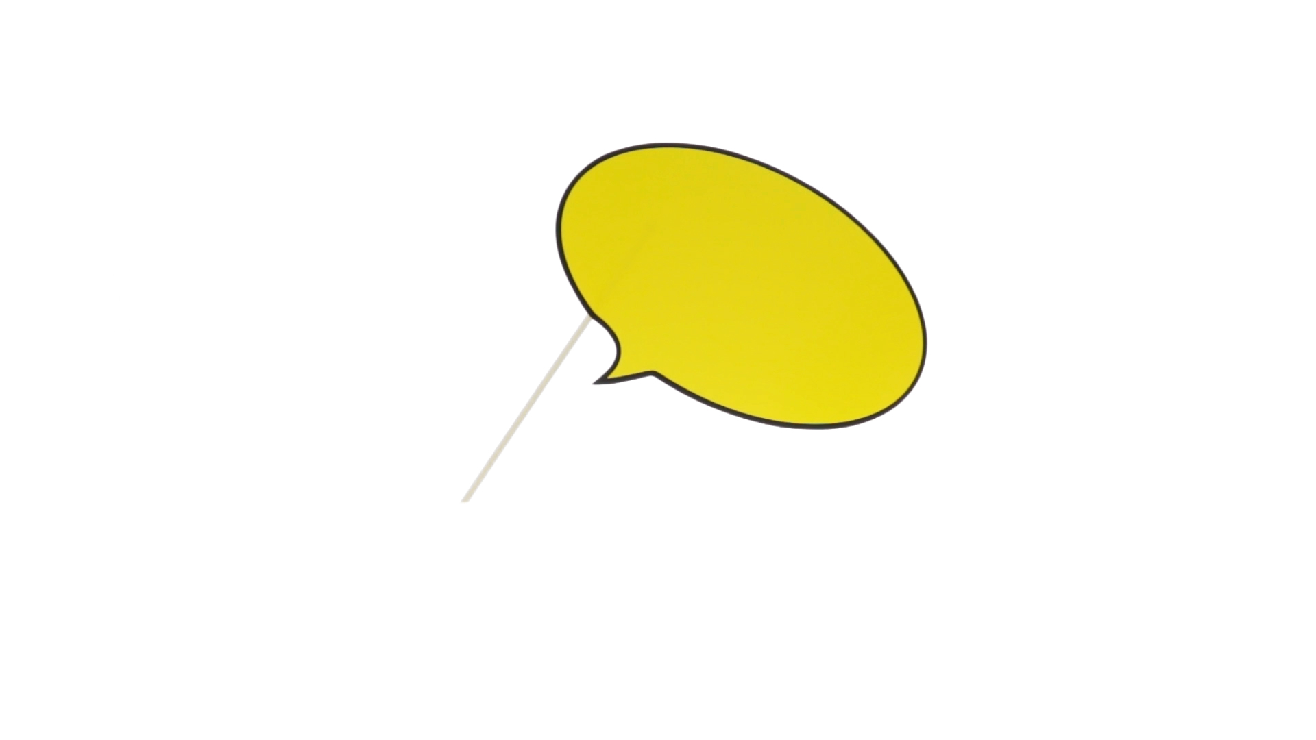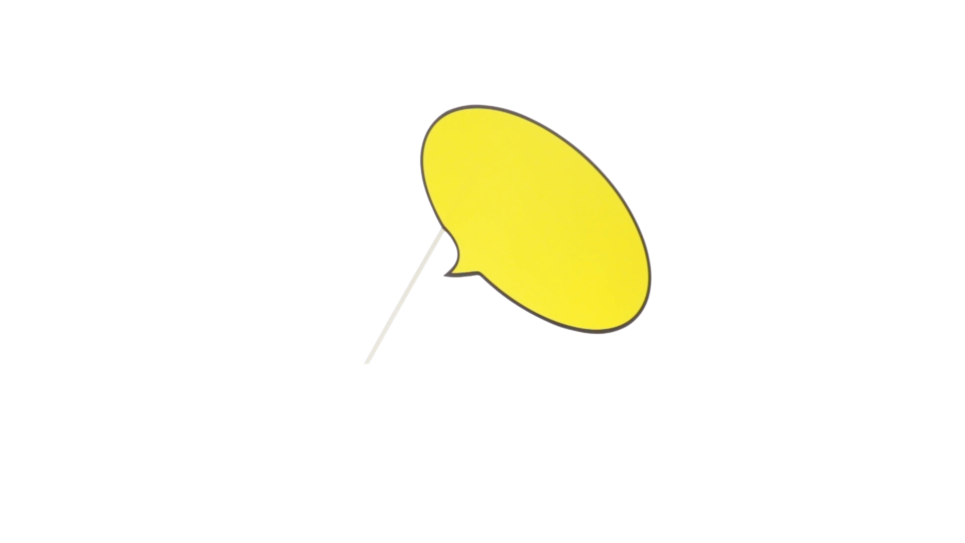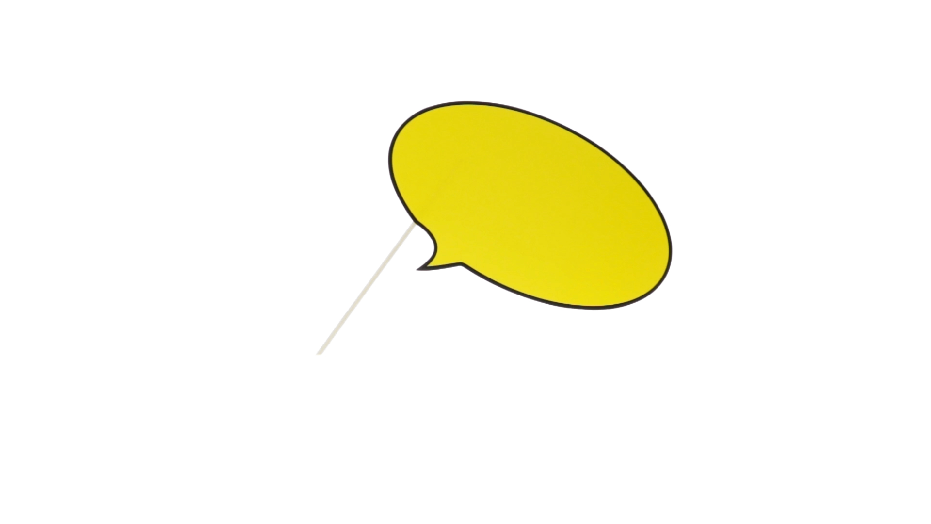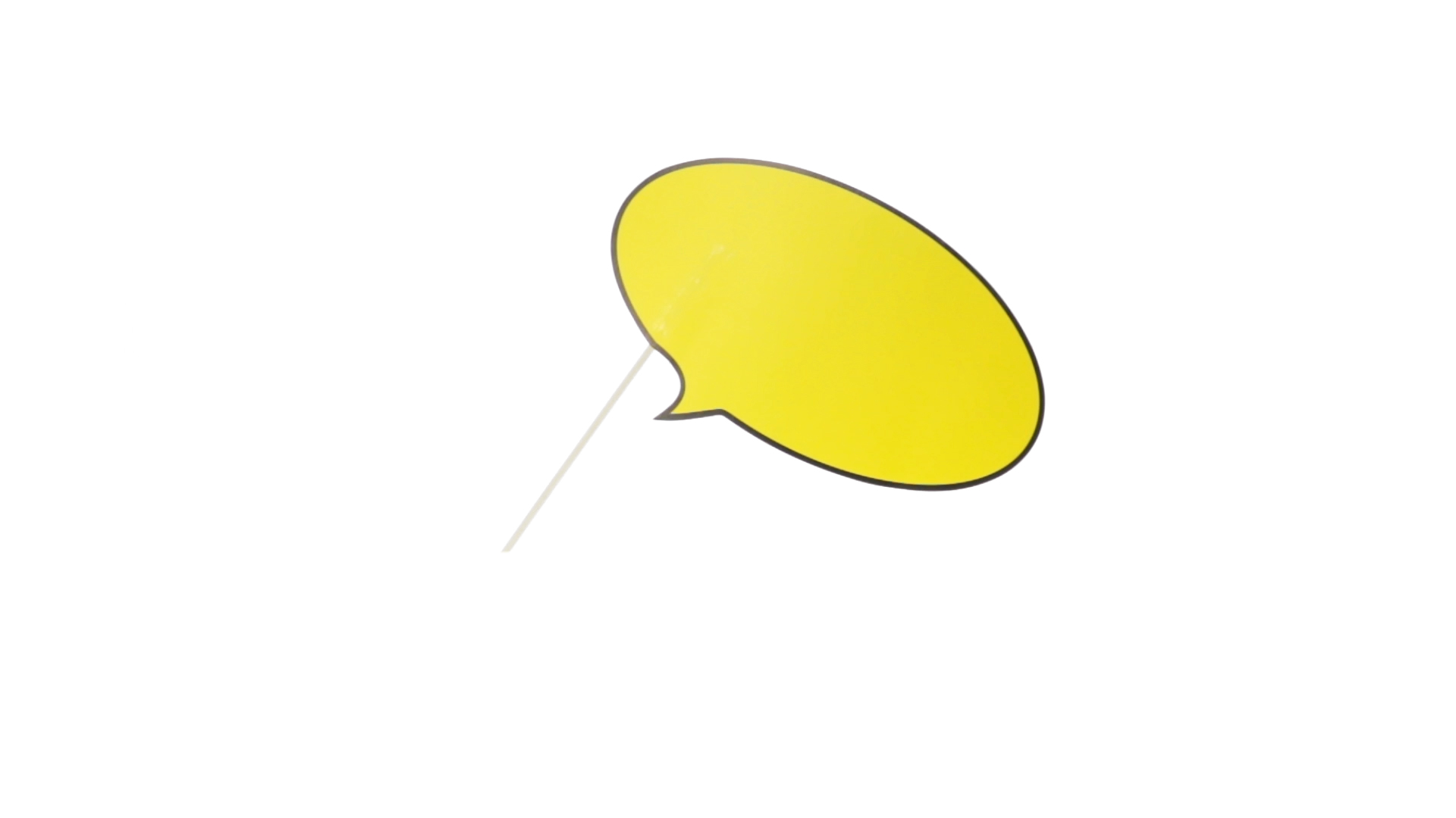 Selfie-Sprechblase in auffälligem Gelb mit grosser Druckfläche. Hergestellt aus Pappe mit Holzgriff.