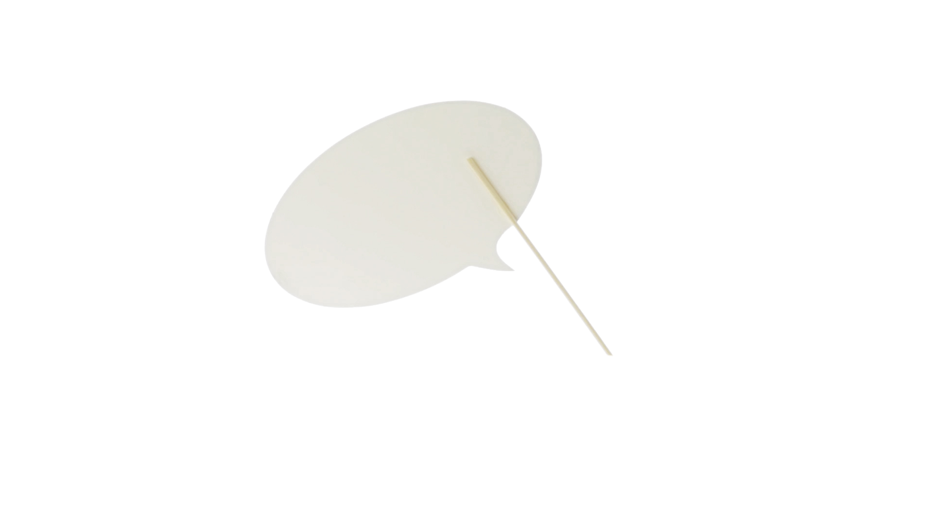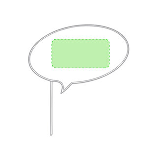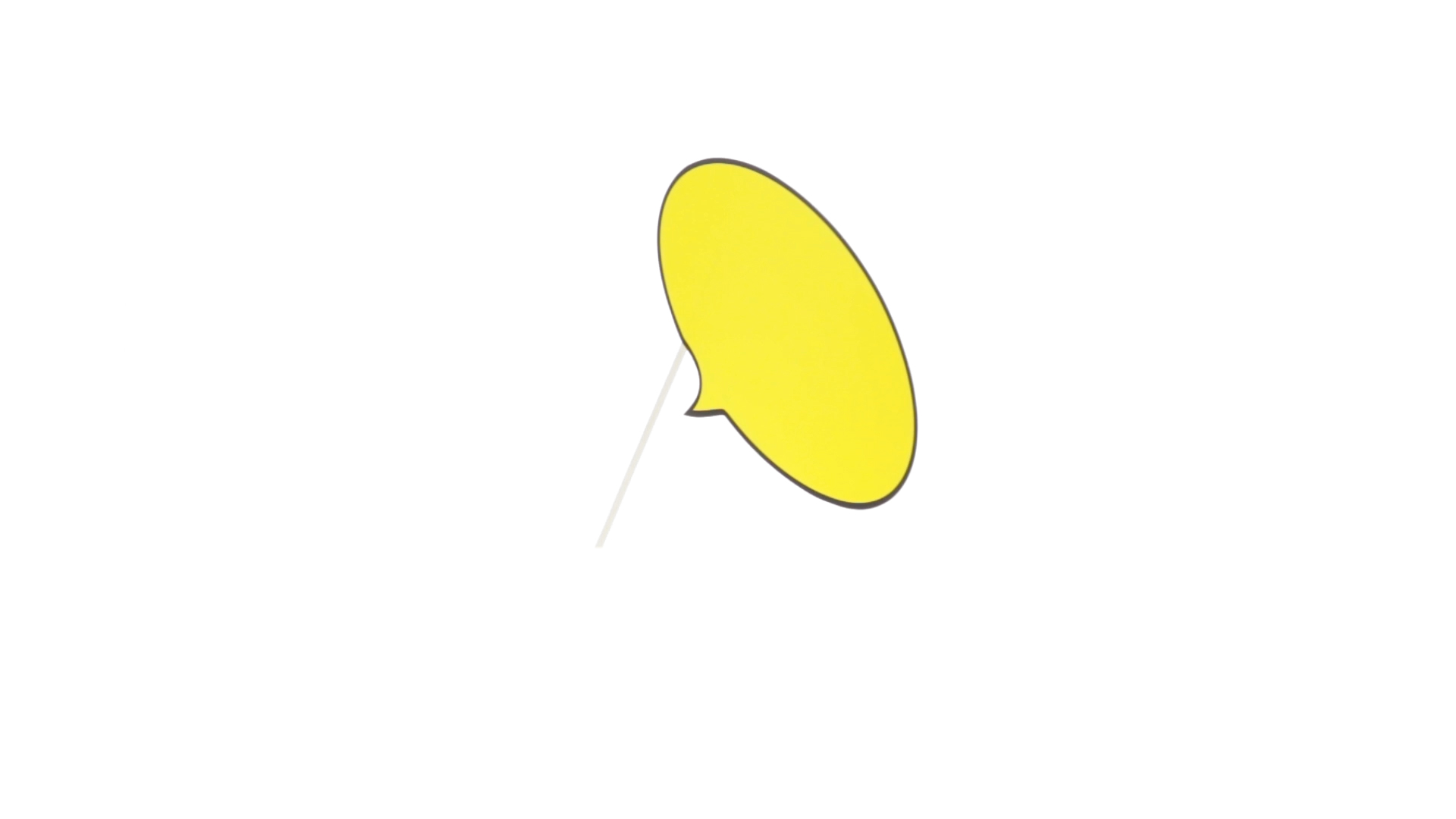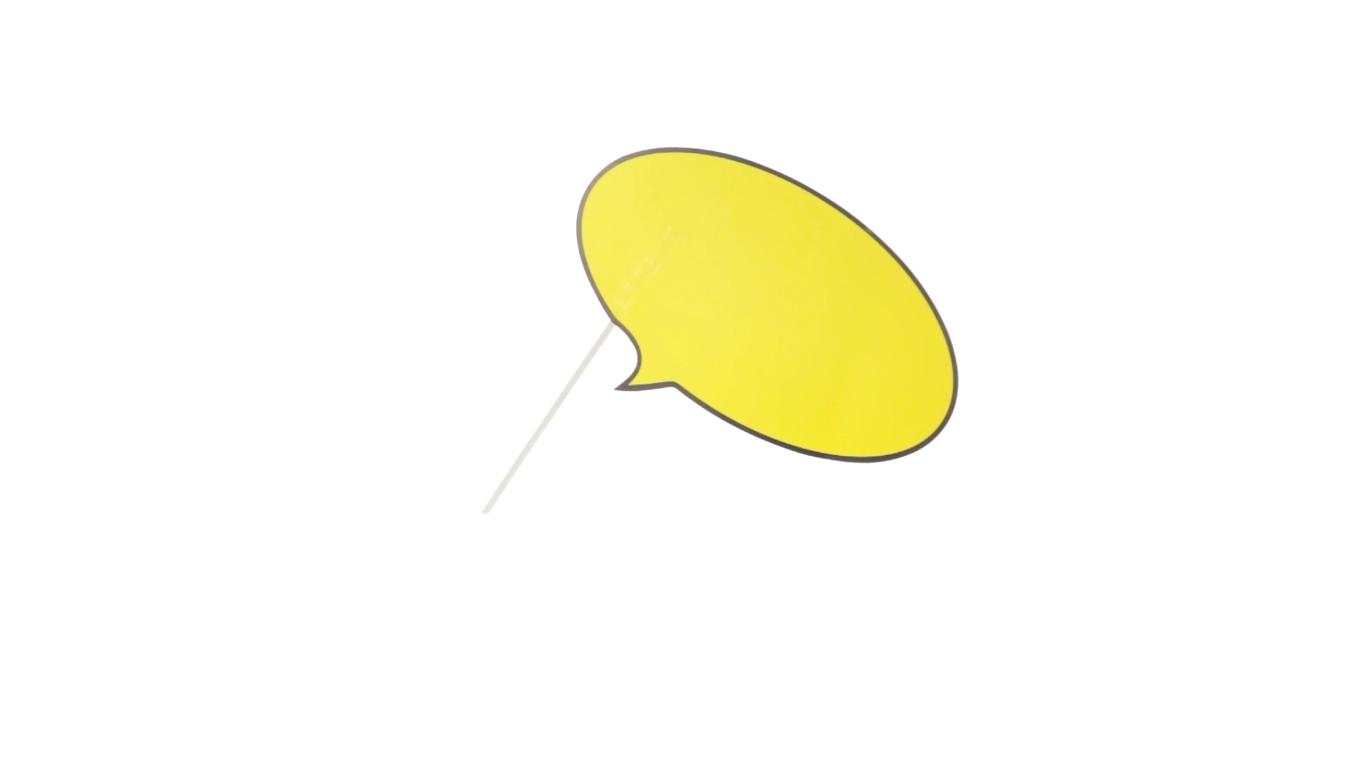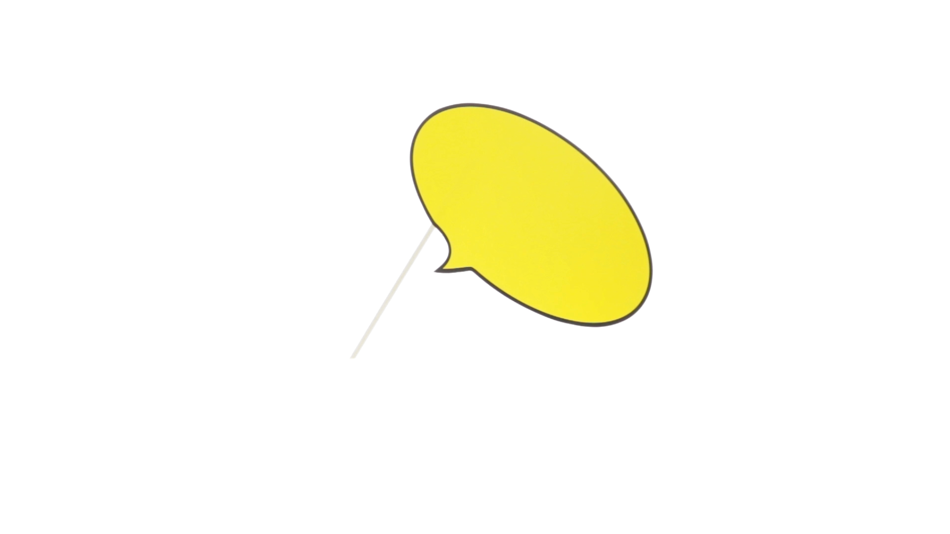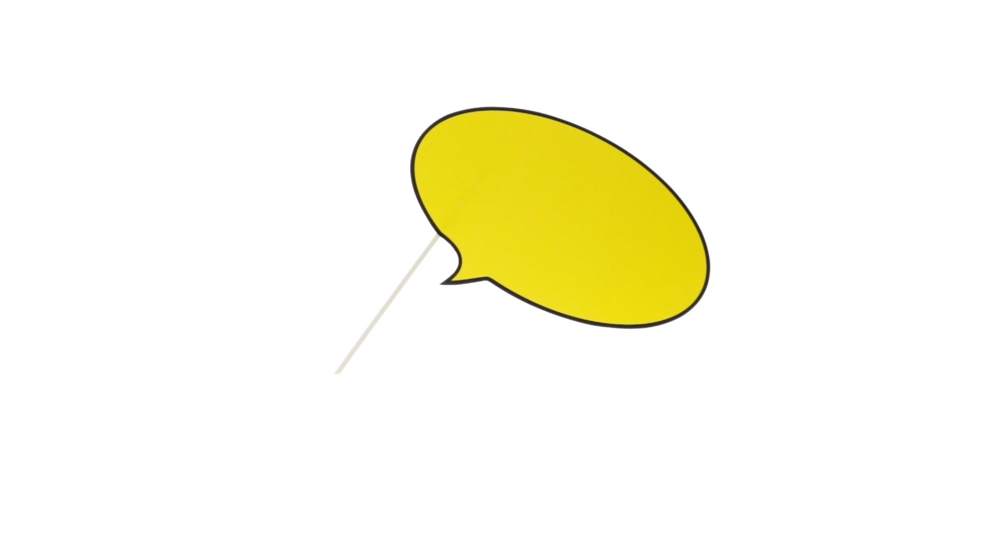 Selfie-Sprechblase in auffälligem Gelb mit grosser Druckfläche. Hergestellt aus Pappe mit Holzgriff.