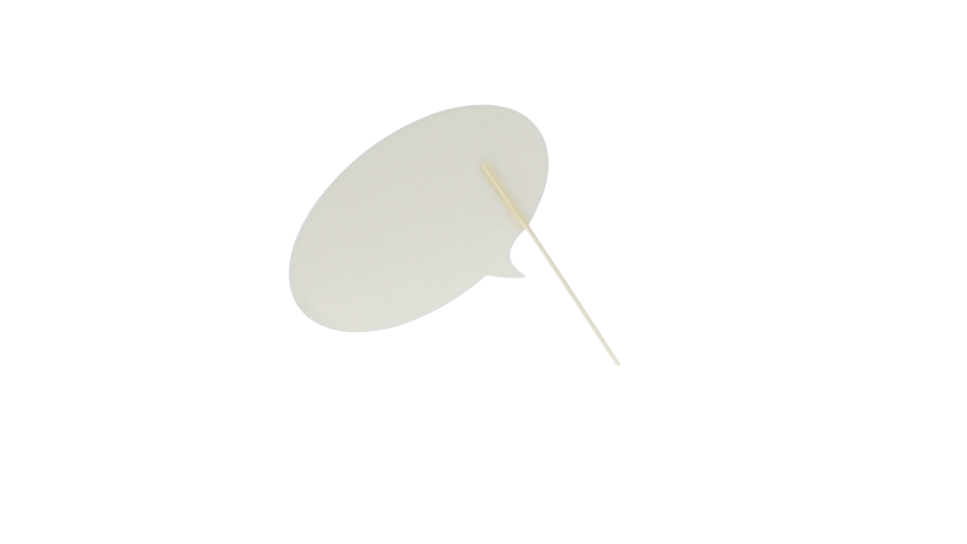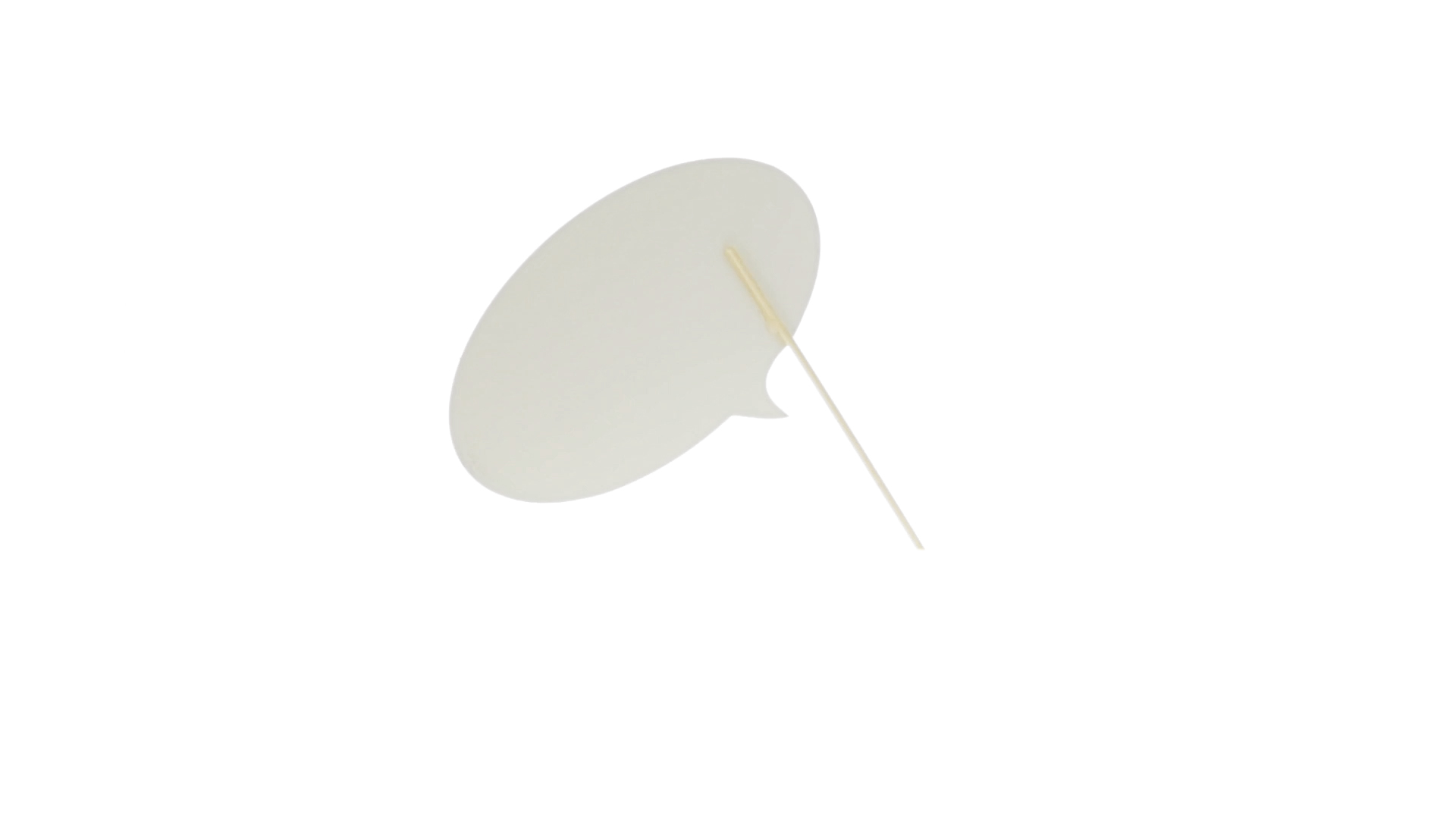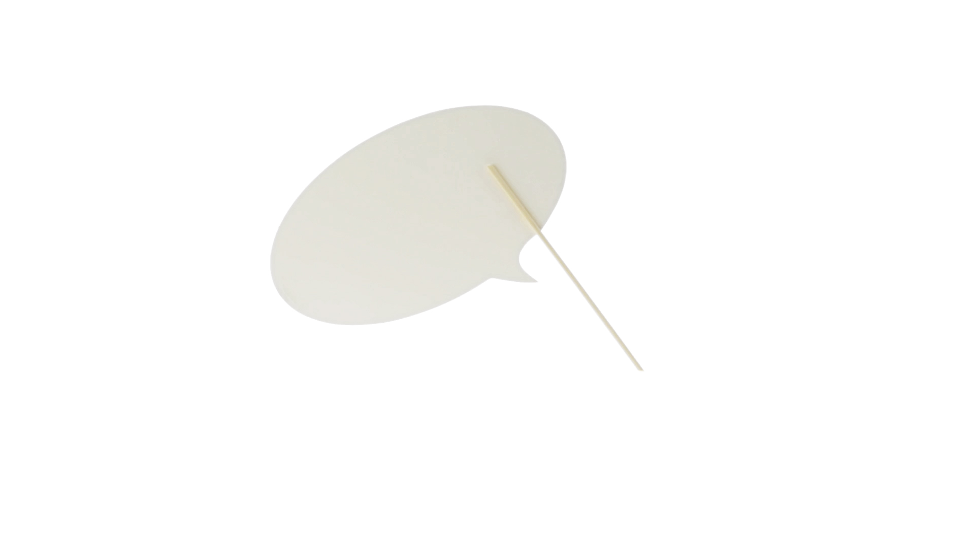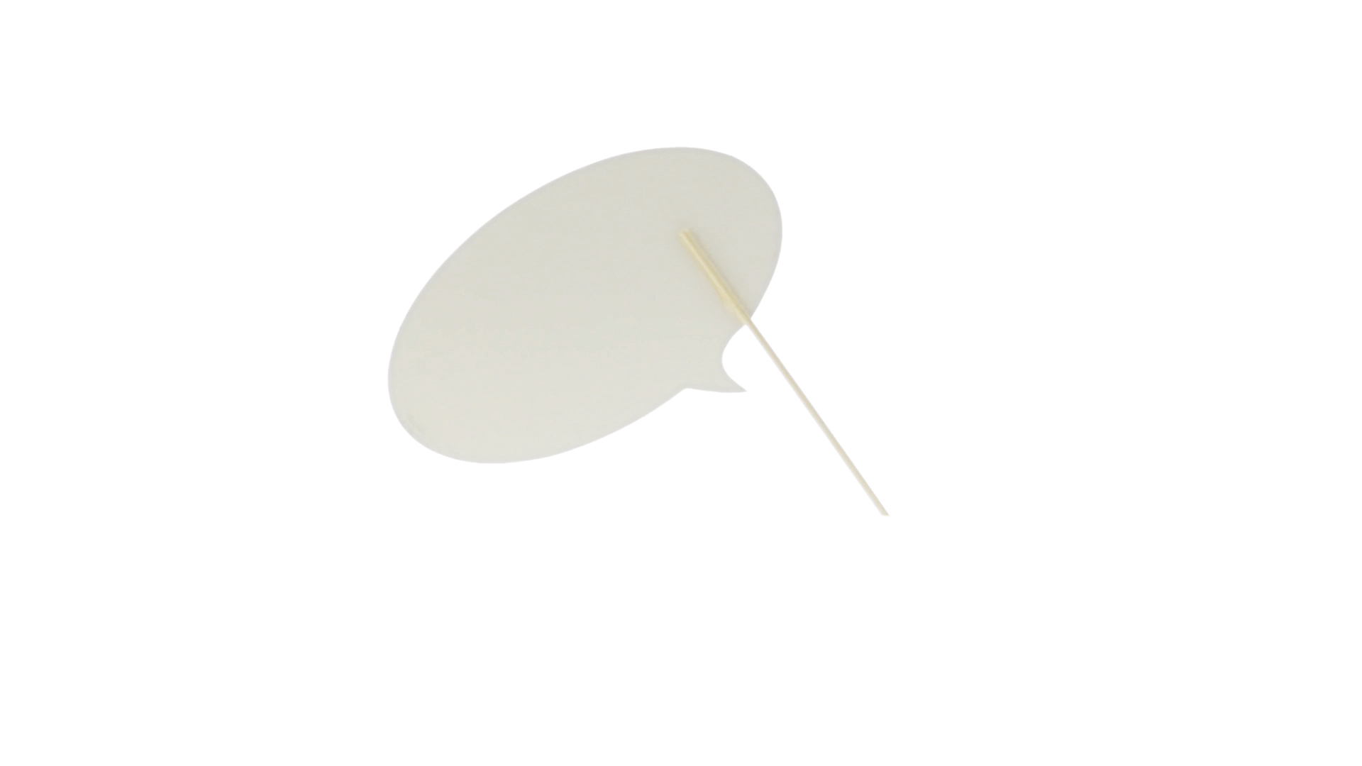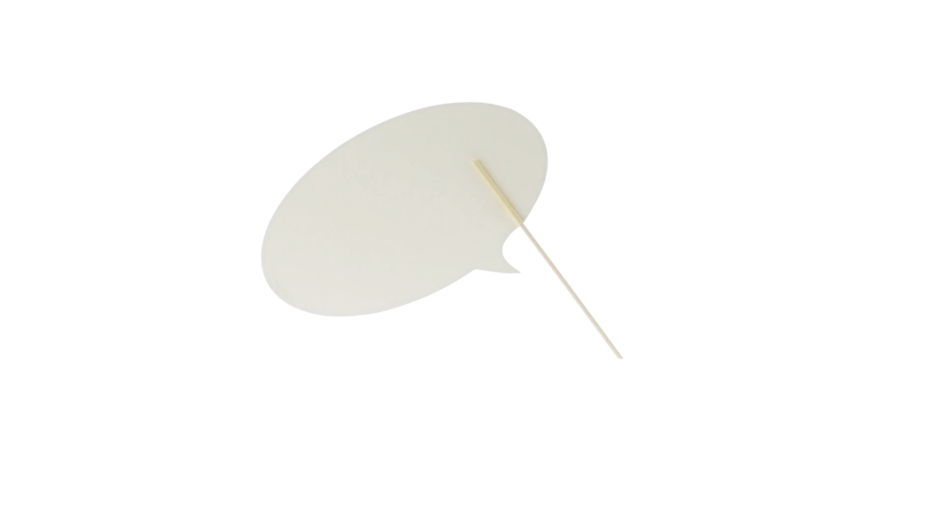 Selfie-Sprechblase in auffälligem Gelb mit grosser Druckfläche. Hergestellt aus Pappe mit Holzgriff.