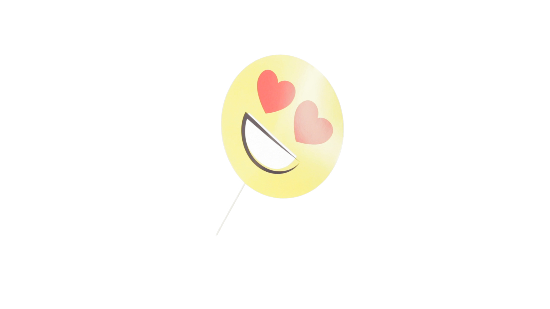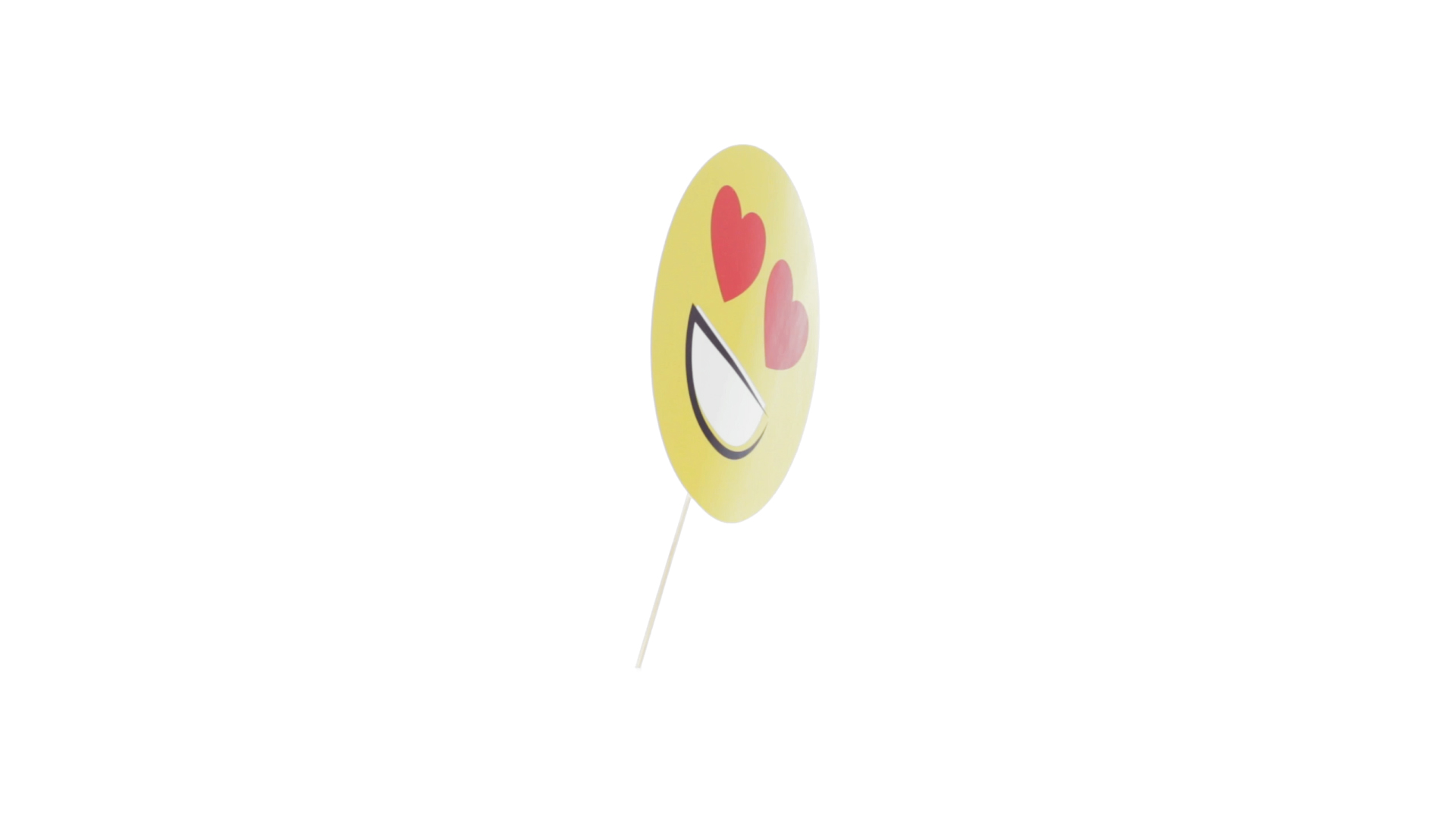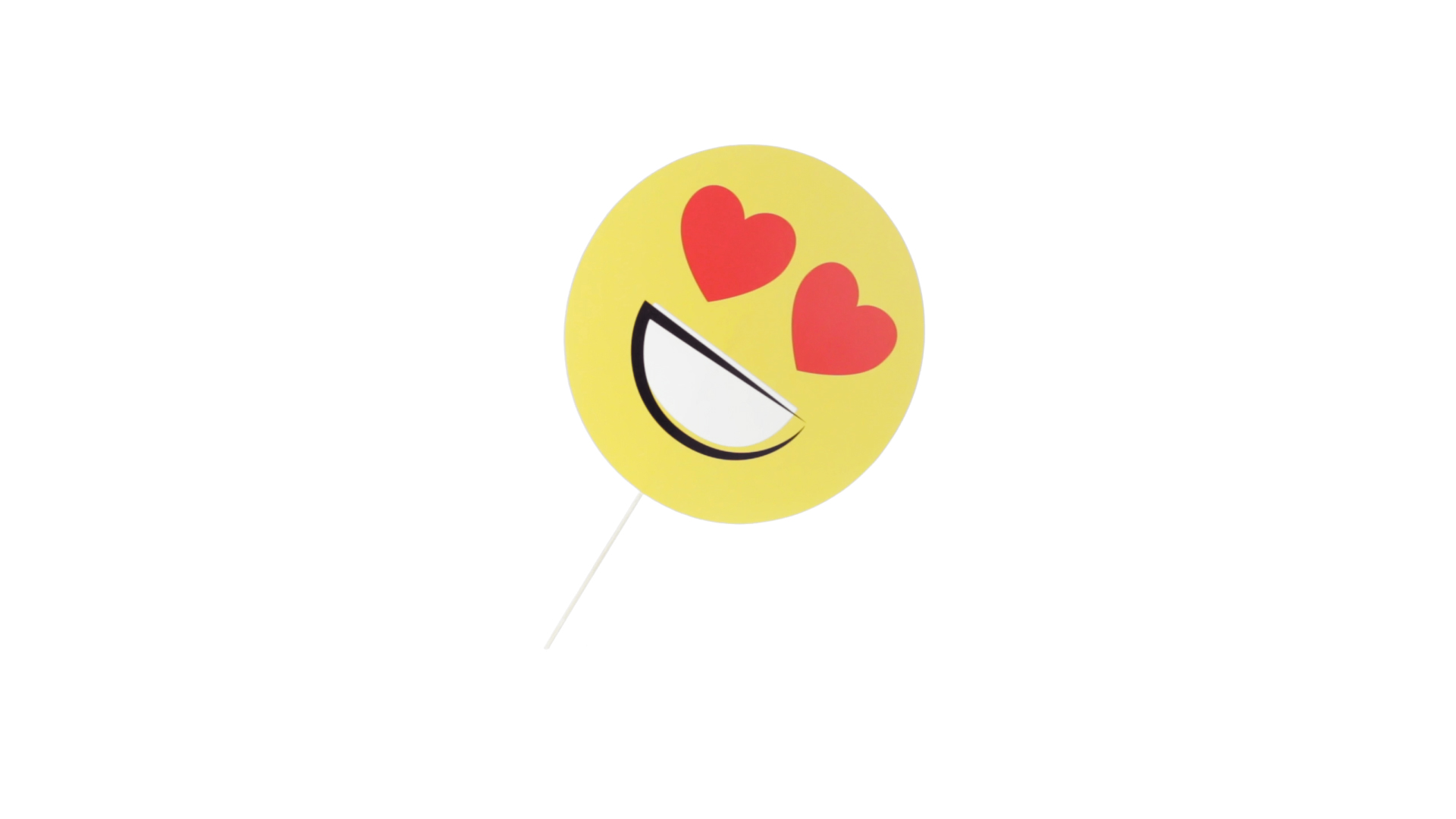 Selfie Pai Pai in lustigen Emoji-Designs und in einer auffälligen gelben Farbe. Aus hochwertigem Papier, mit Holzgriff. Erhältlich in den Designs Herz, Sonnenbrille, Augenzwinkern und Lächeln.