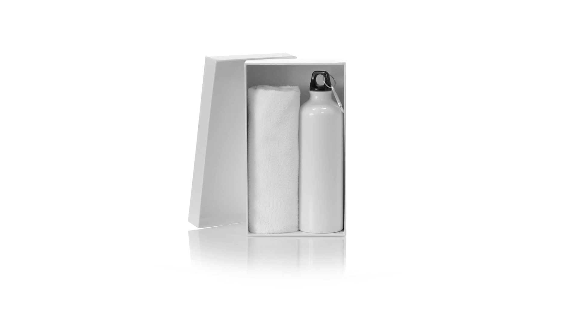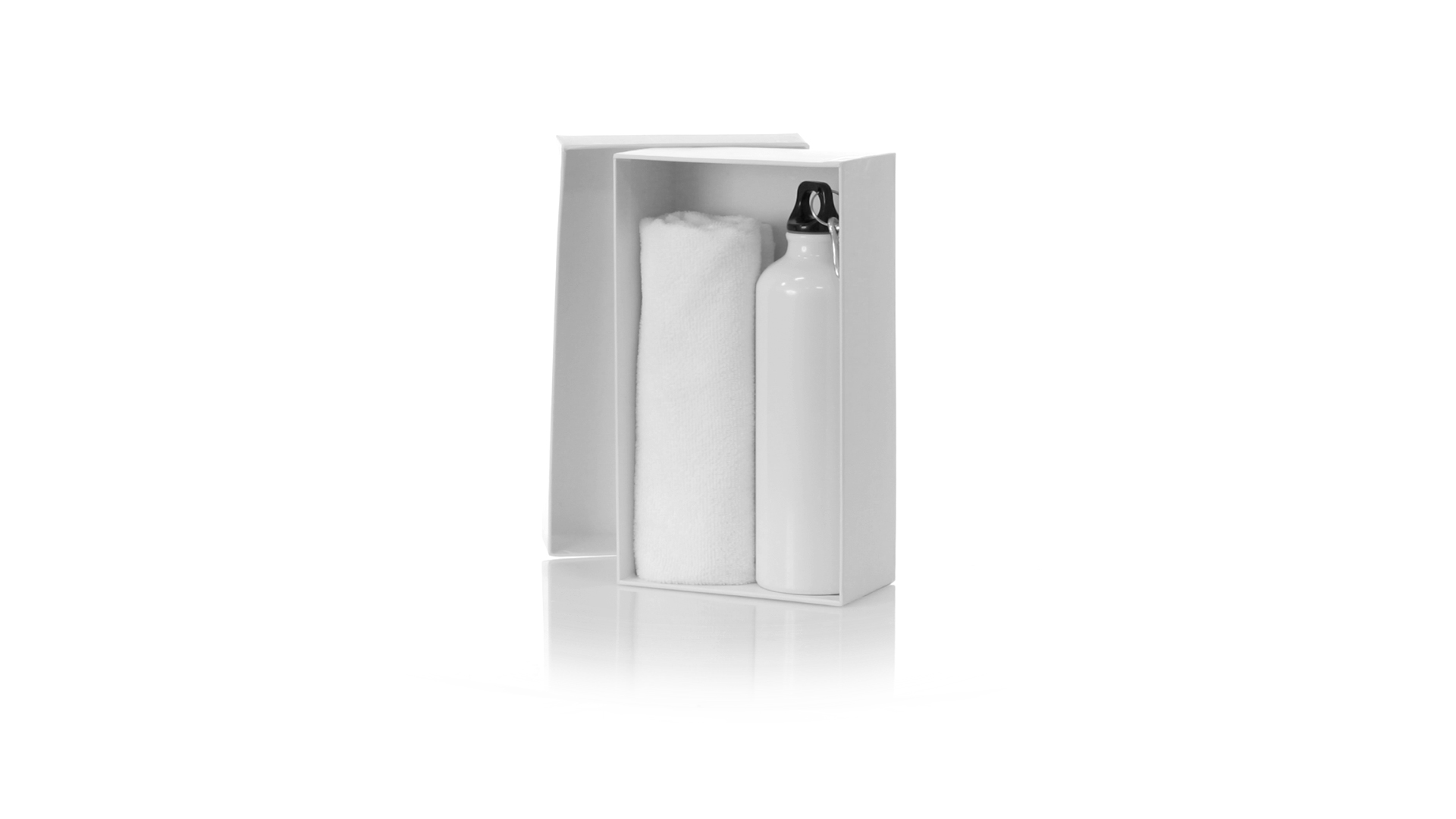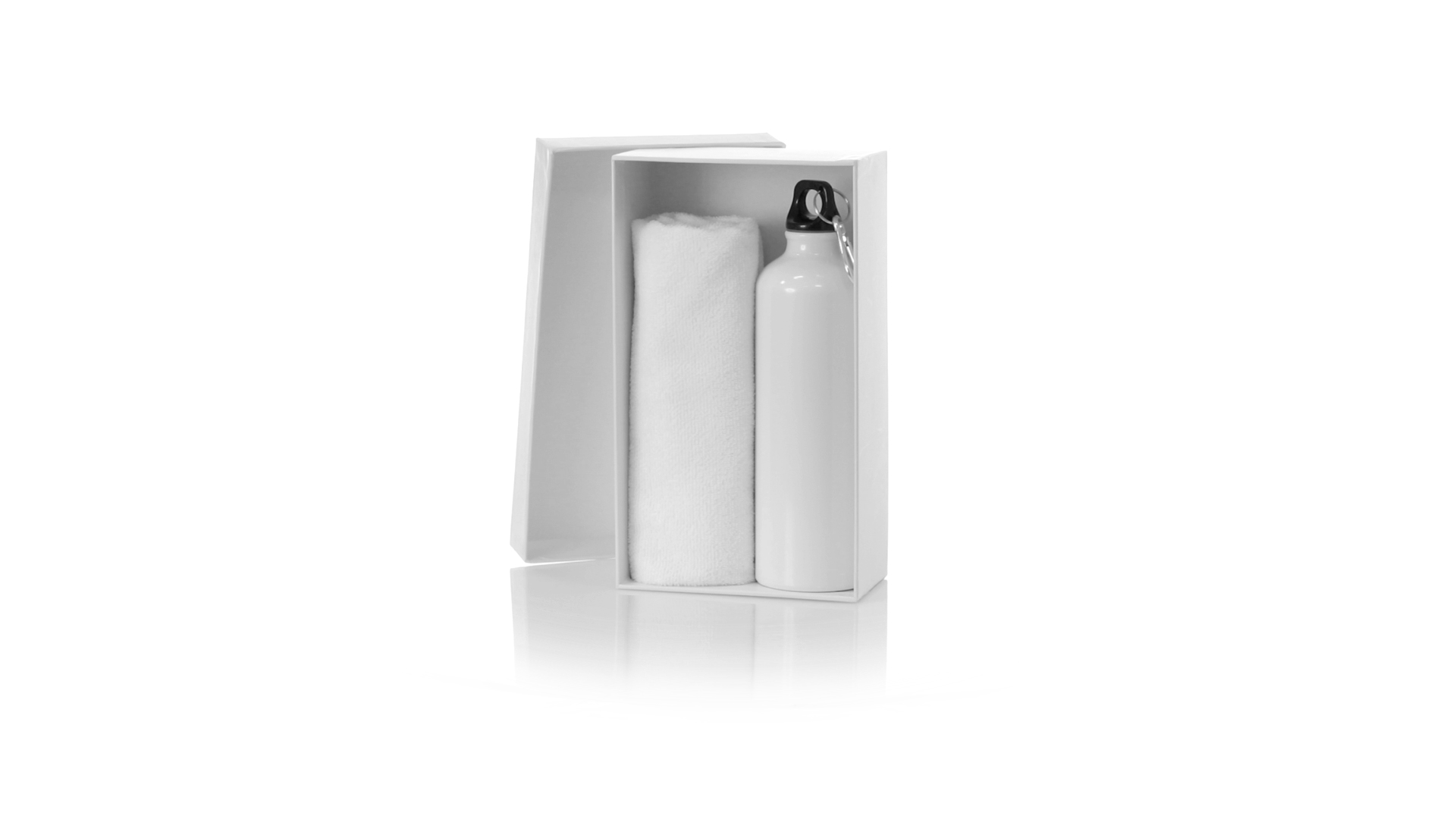 Passendes Set aus Flasche und Handtuch. Einschliesslich:Flasche mit 800 ml Fassungsvermögen und glänzendem Aluminiumgehäuse. Mit aufschraubbarem Sicherheitsdeckel und Metallkarabiner für die Tragbarkeit.Saugfähiges Handtuch aus Mikrofaser von 160g/m2 und in der Grösse 40x90 cm.Das Set ist in einer breiten Palette von Farben erhältlich und wird in einer passenden Pappschachtel präsentiert.