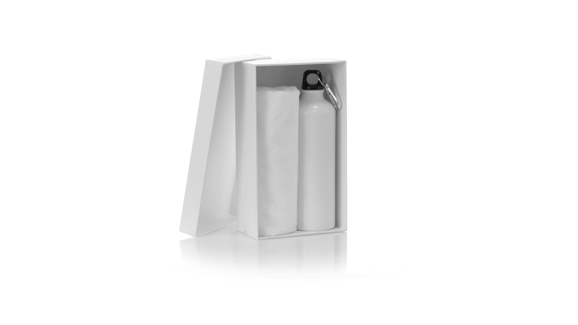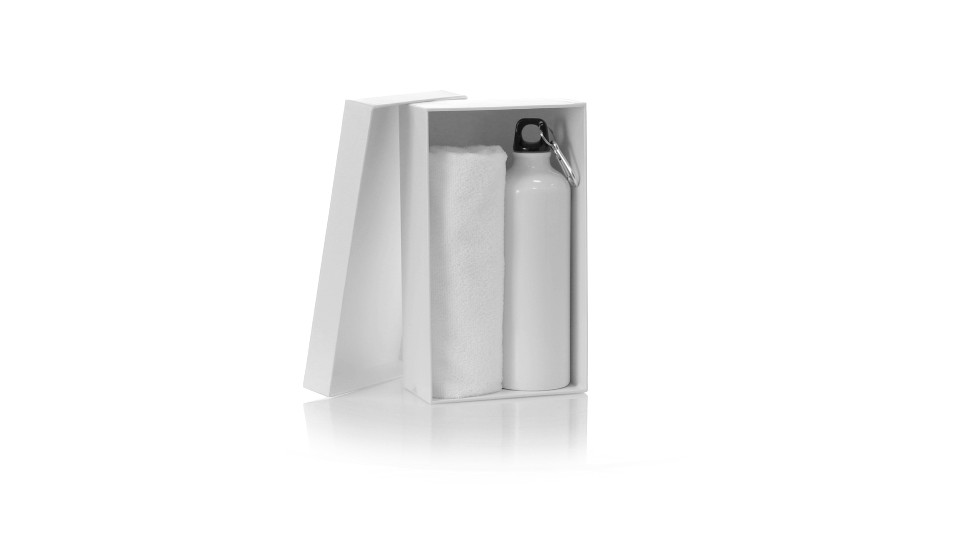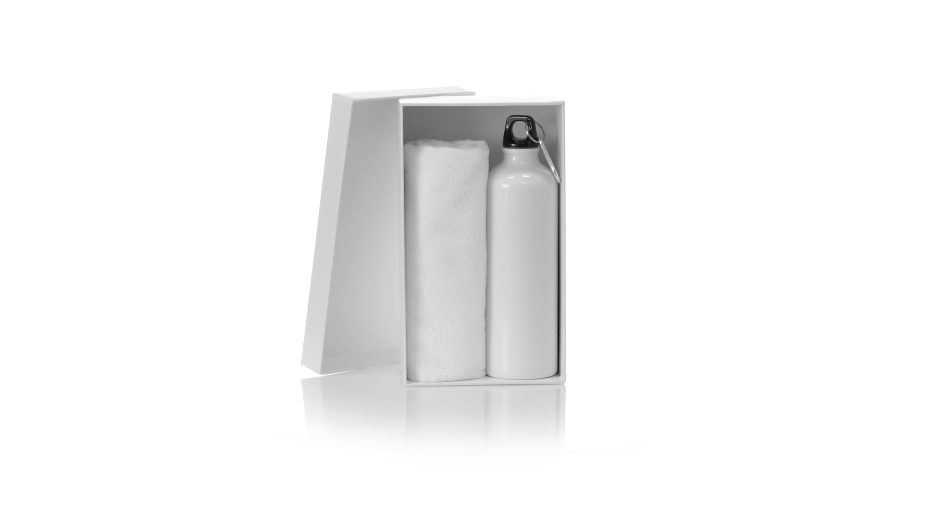Passendes Set aus Flasche und Handtuch. Einschliesslich:Flasche mit 800 ml Fassungsvermögen und glänzendem Aluminiumgehäuse. Mit aufschraubbarem Sicherheitsdeckel und Metallkarabiner für die Tragbarkeit.Saugfähiges Handtuch aus Mikrofaser von 160g/m2 und in der Grösse 40x90 cm.Das Set ist in einer breiten Palette von Farben erhältlich und wird in einer passenden Pappschachtel präsentiert.