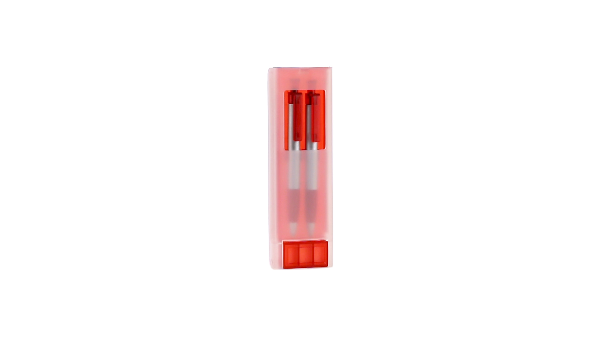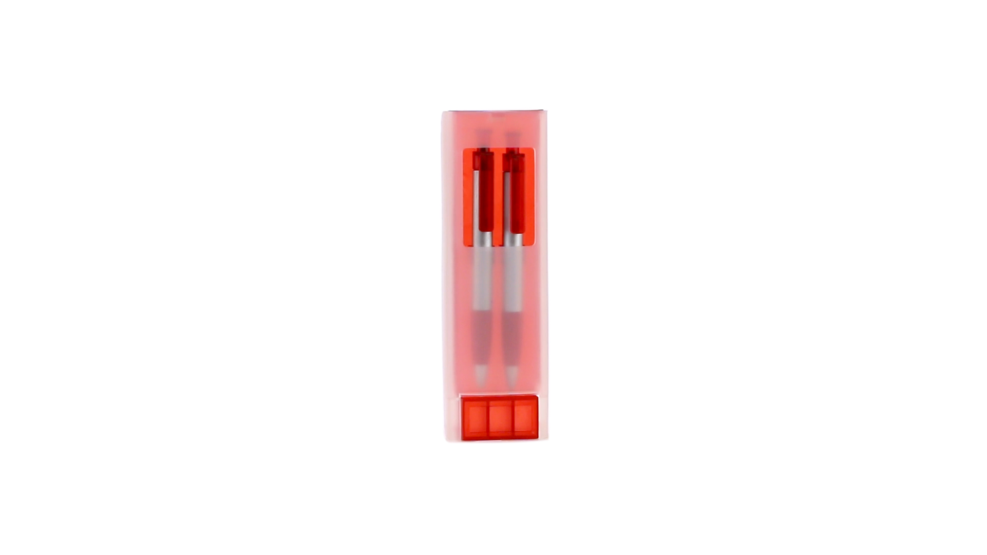 Set aus Druck-Kugelschreiber und Druck-Bleistift mit originellem, zweifarbigem Design. Beide Körper in silberfarbener Ausführung mit Kontrastdetails in einer Vielzahl von halbtransparenten Farben. Mit angenehm weichem, farblich passendem Griff. Präsentiert in einem robusten, individuellem Etui mit Fenster in farblich passender, halbtransparenter Ausführung. Kugelschreiber mit blauer Tinte und Bleistift mit 0,5 mm Mine.