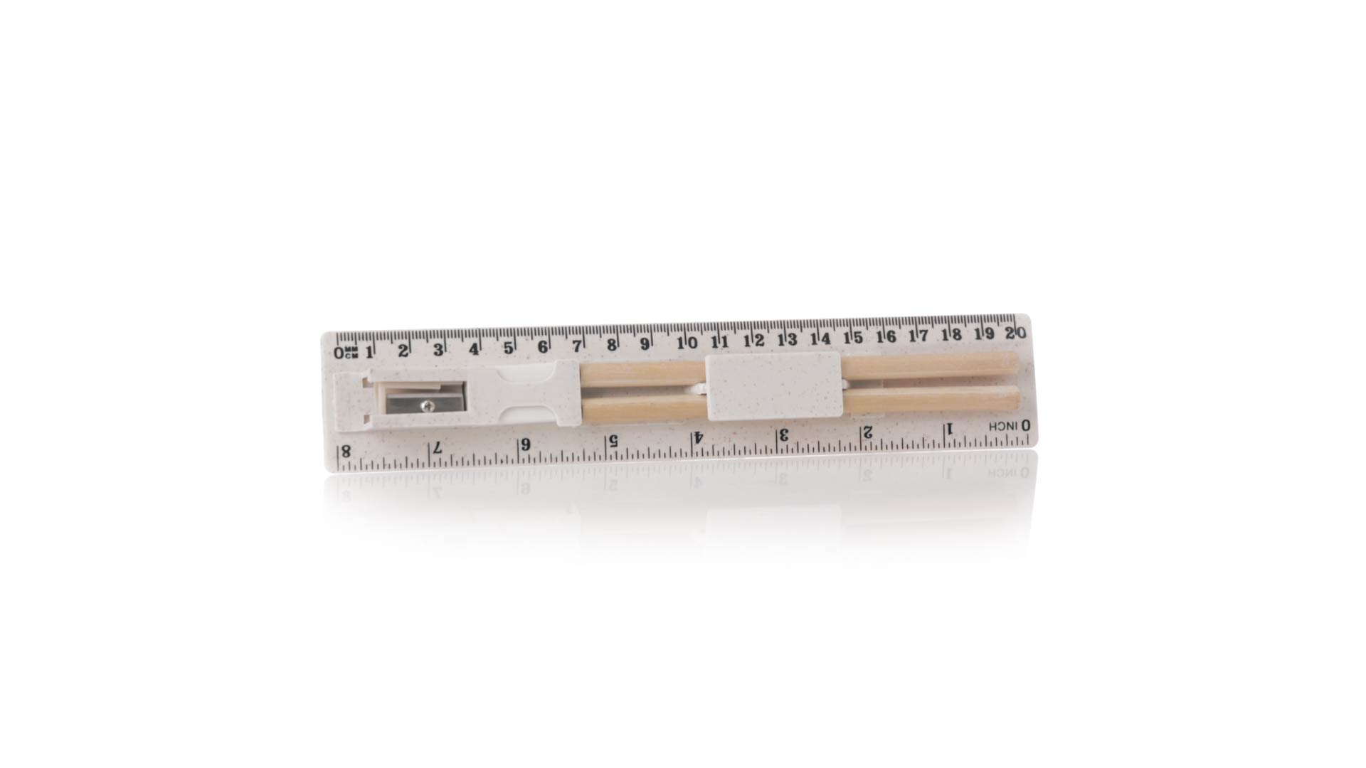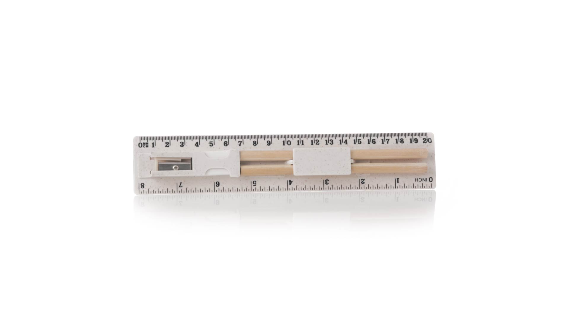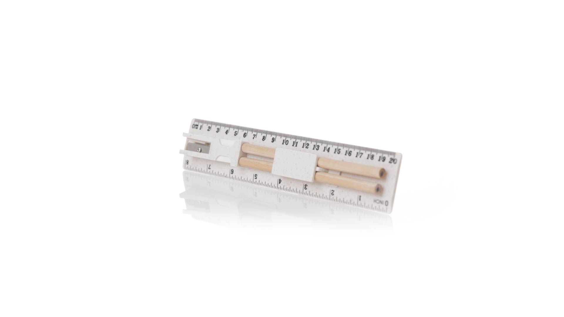 5-teiliges Set aus Weizenstroh. Inklusive 2 Holzstifte mit schwarzer Mine und weissem zylindrischen Körper; Radiergummi, und Spitzer. Präsentiert in einem Etui mit Lineal von 20 cm/8 Zoll, mit Fächern für die verschiedenen Elemente des Sets. Einzeln verpackt in einer weissen Papiertüte.Weizenstroh fördert die Verwendung von natürlichen Rohstoffen und reduziert so den Schadstoffausstoss.