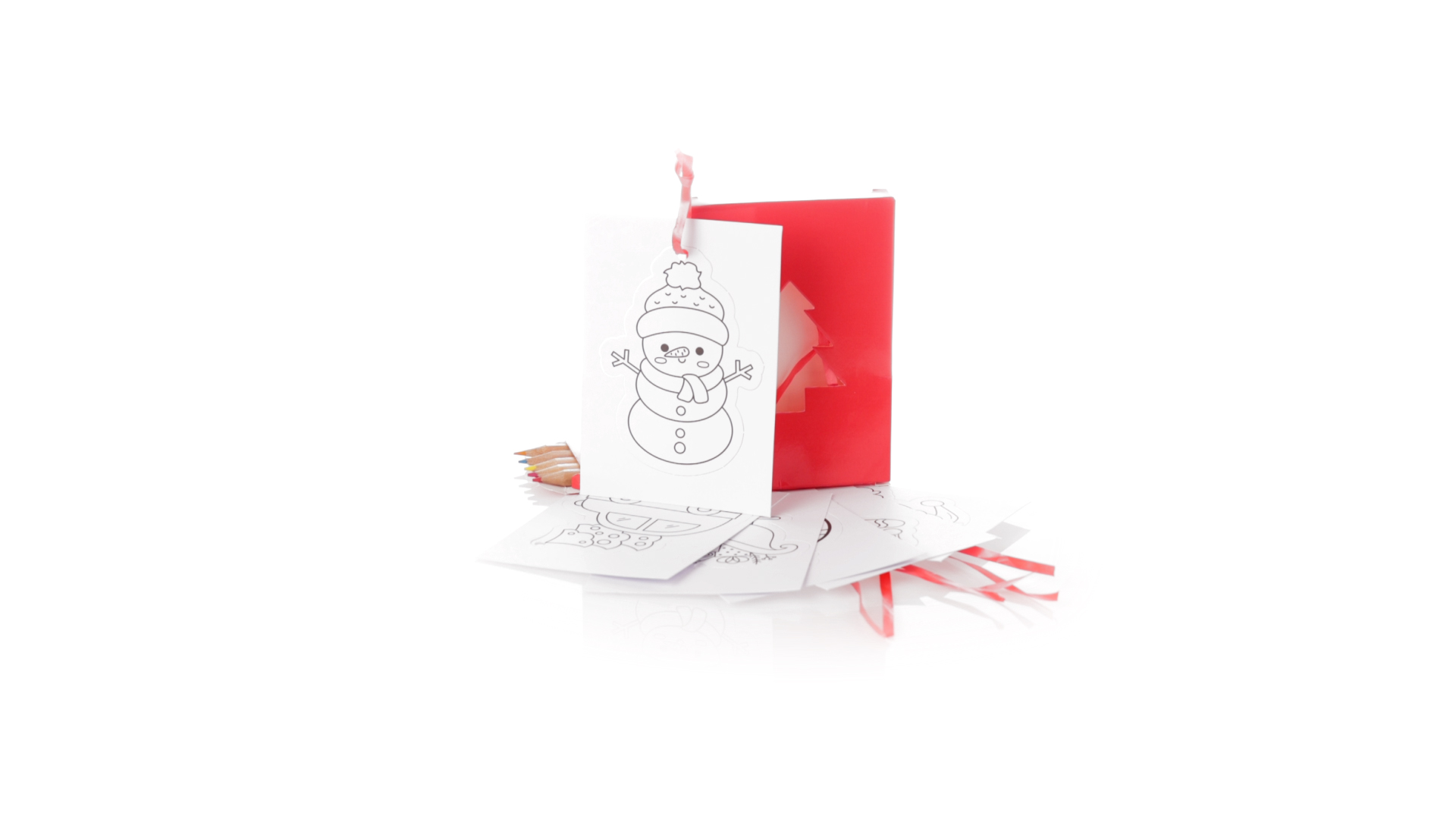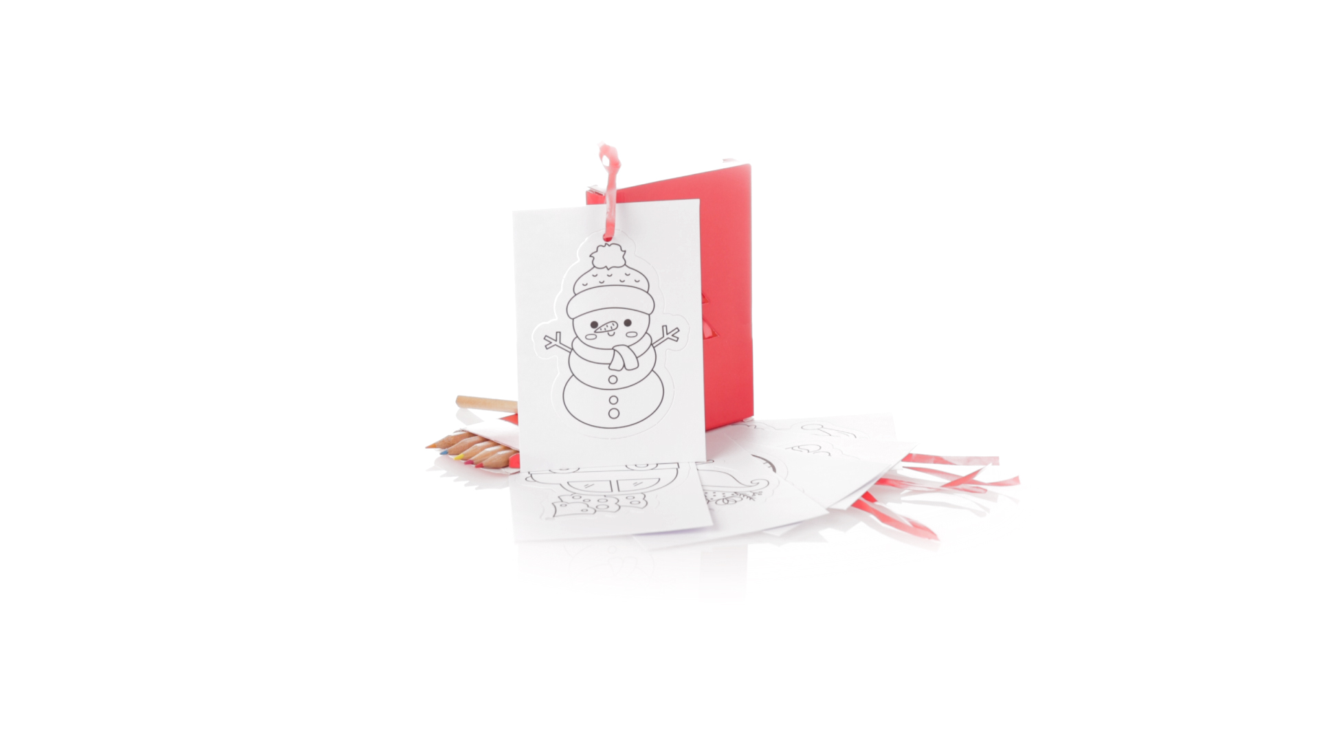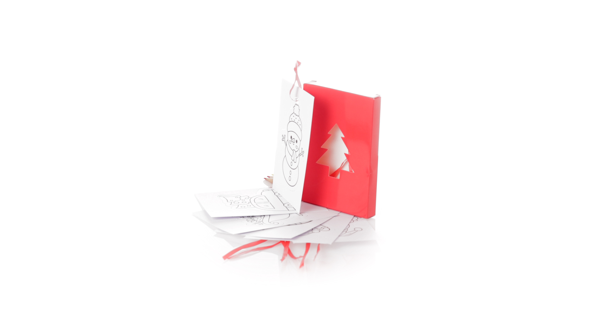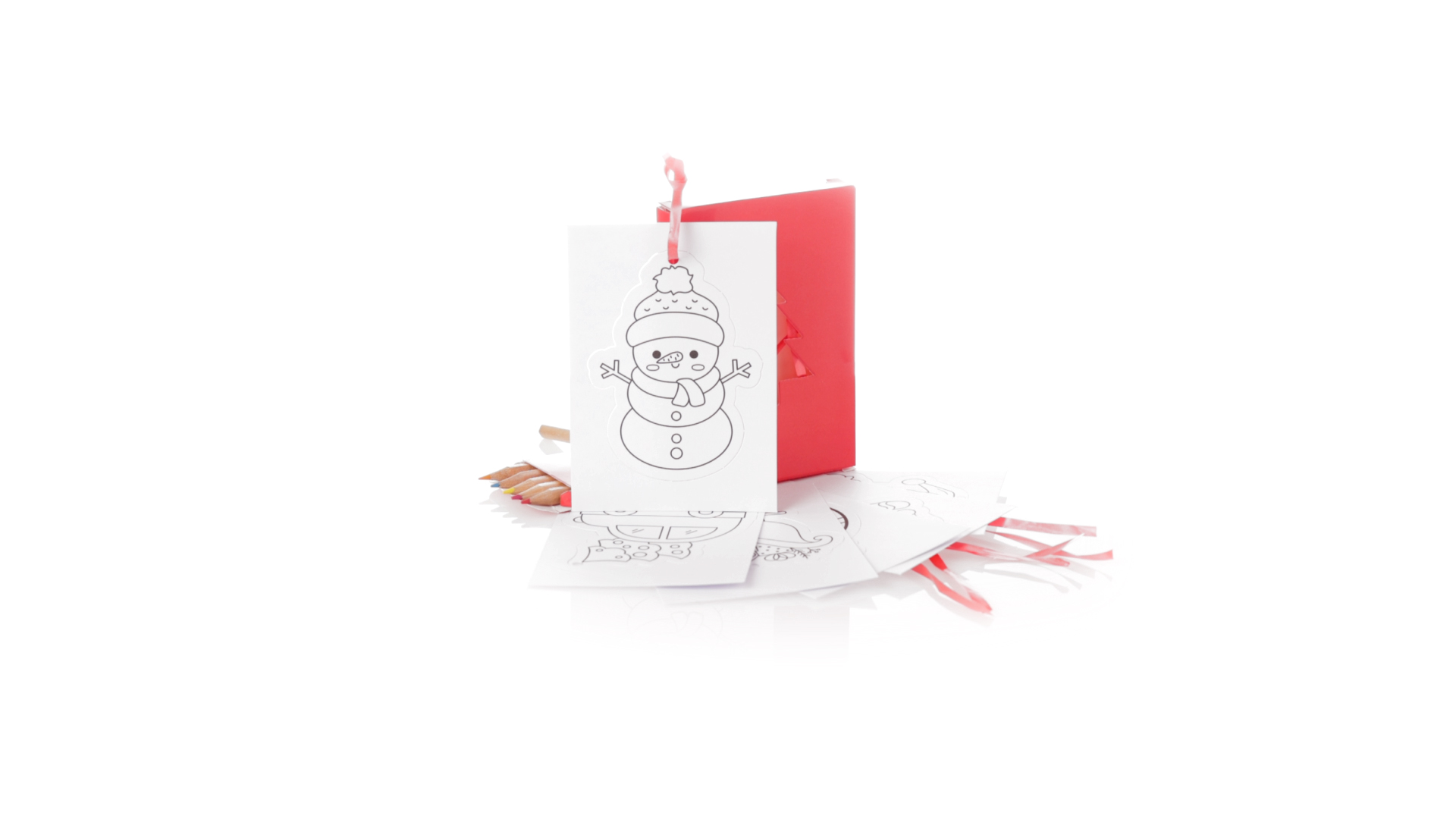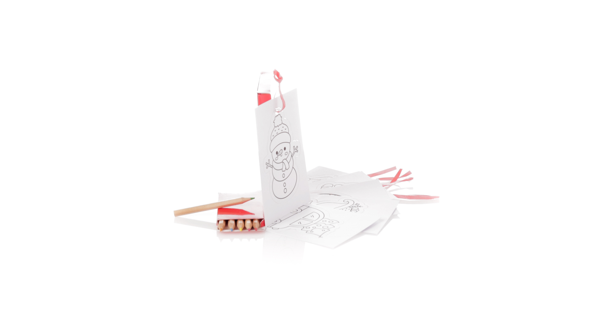 Schmuckset mit 6 originellen Weihnachtsmotiven zum Ausmalen und Schmücken des Weihnachtsbaums. Enthält 6 Holzstifte in verschiedenen Farben. Aus Pappe und in einer recycelten Tasche verpackt.