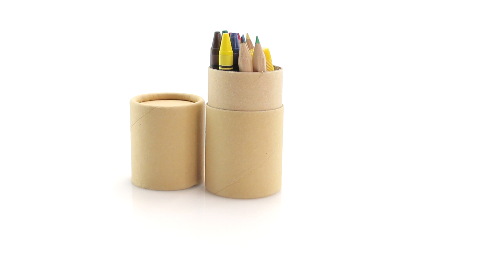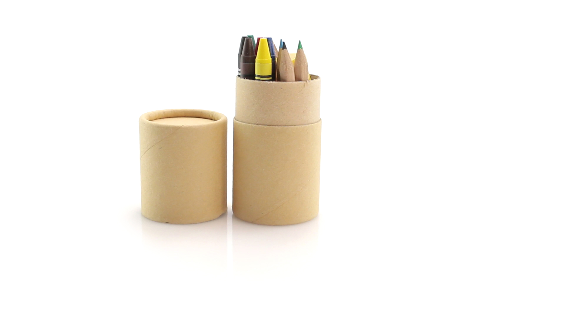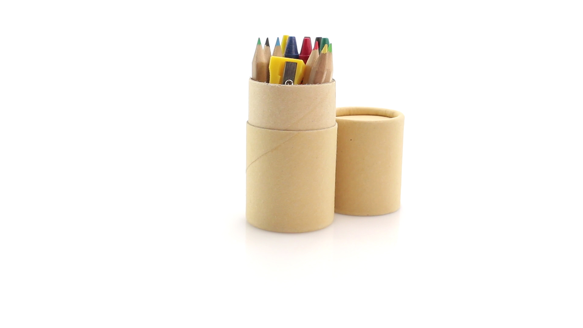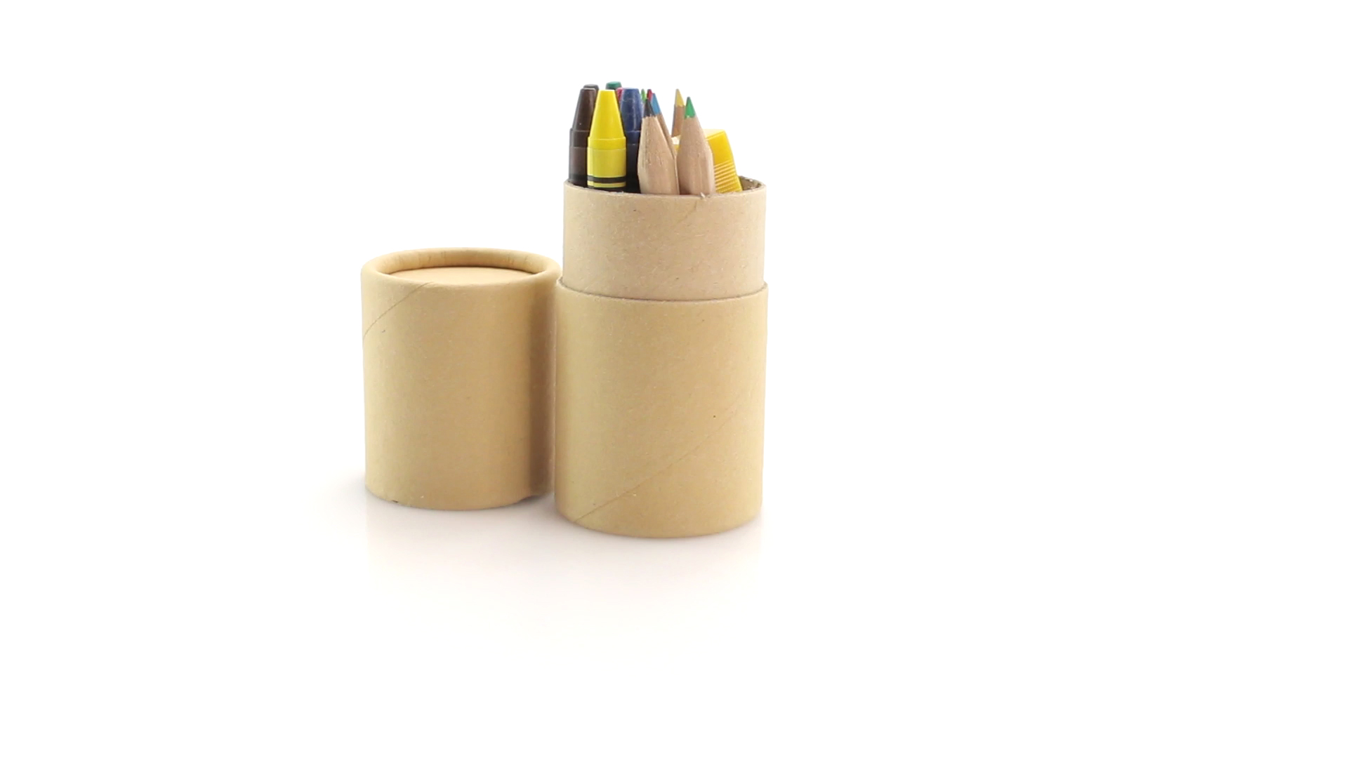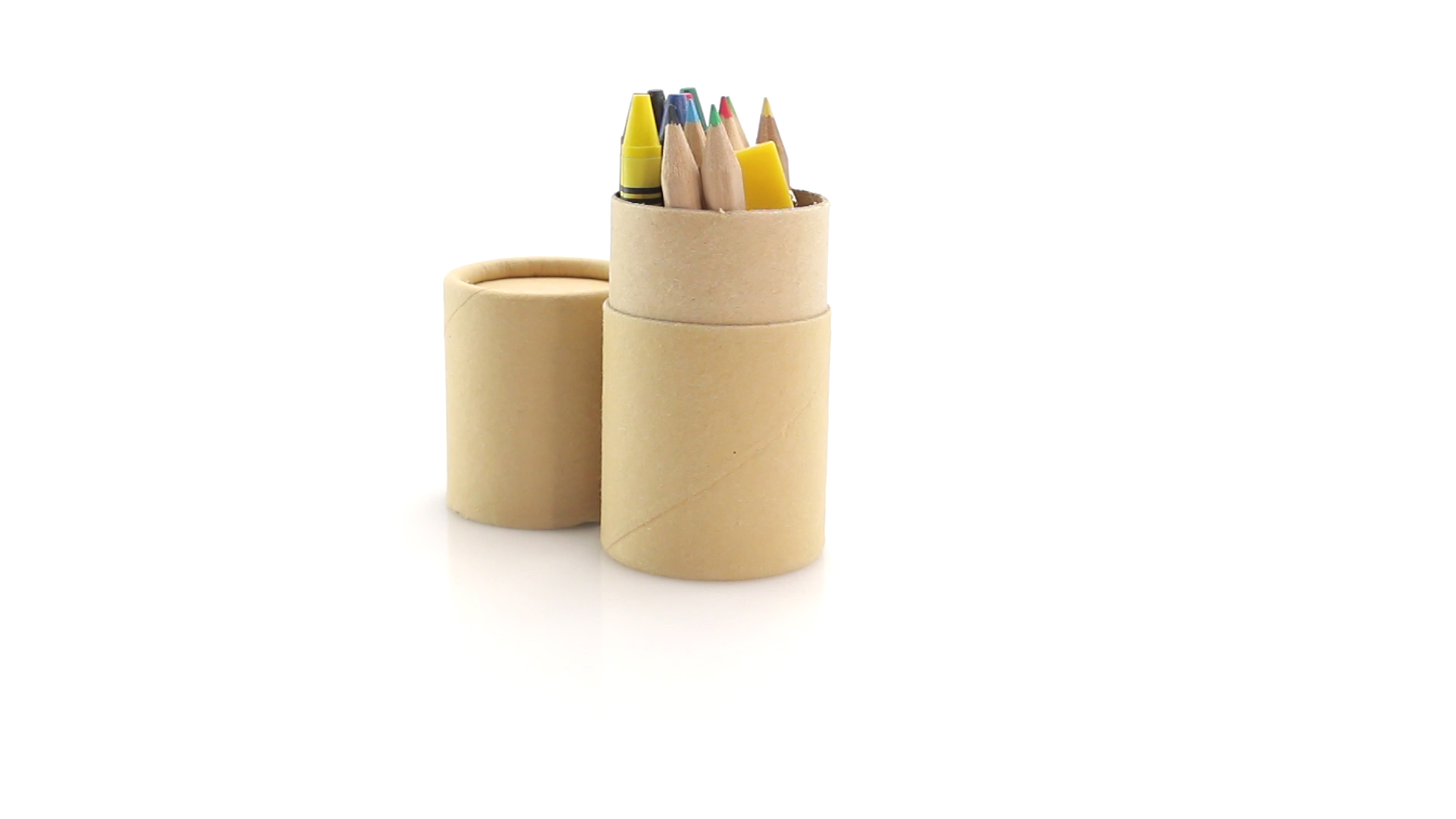 13-teiliges Set in zylinderförmigem Etui aus Naturkarton. Beinhaltet 6 hölzerne Buntstifte mit sechseckigem Körper in Naturfarbe und Minen in verschiedenen Farben sowie Anspitzer in Gelb und 6 zylinderförmige Wachsmalstifte in verschiedenen lebendigen Farben.