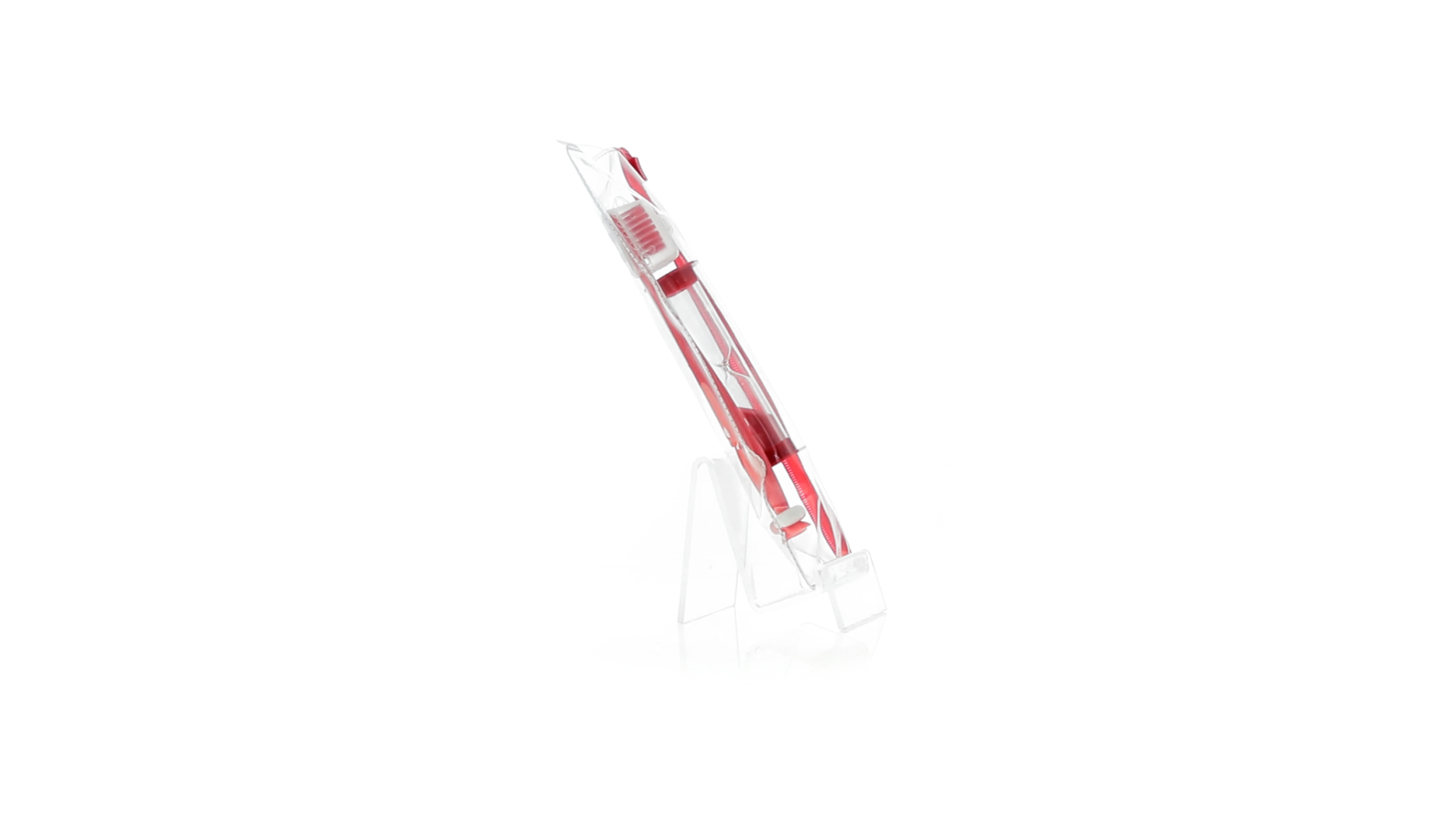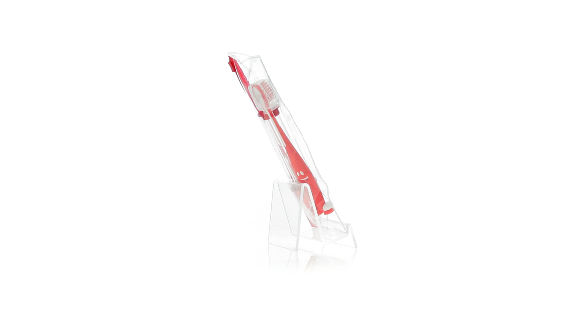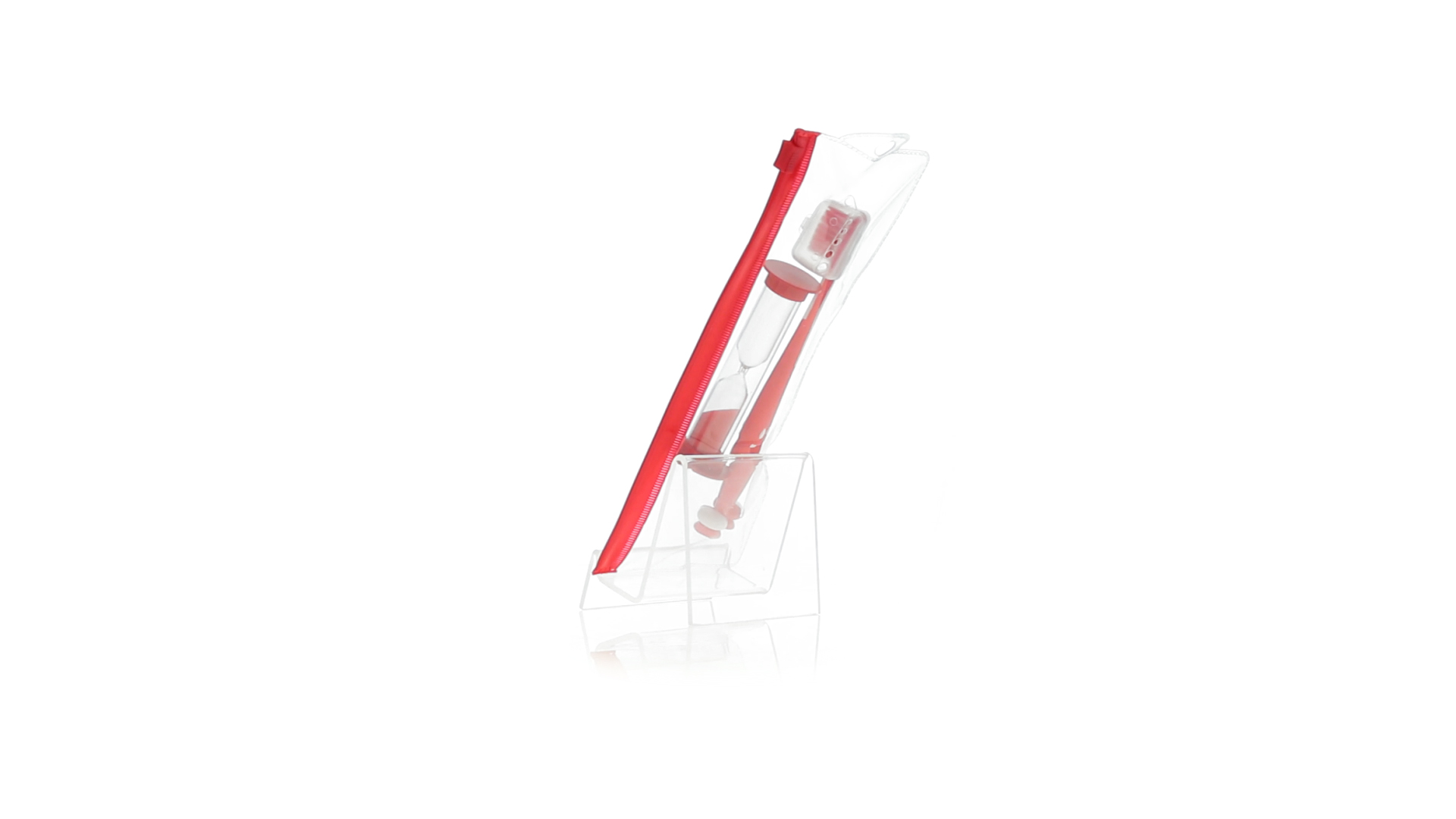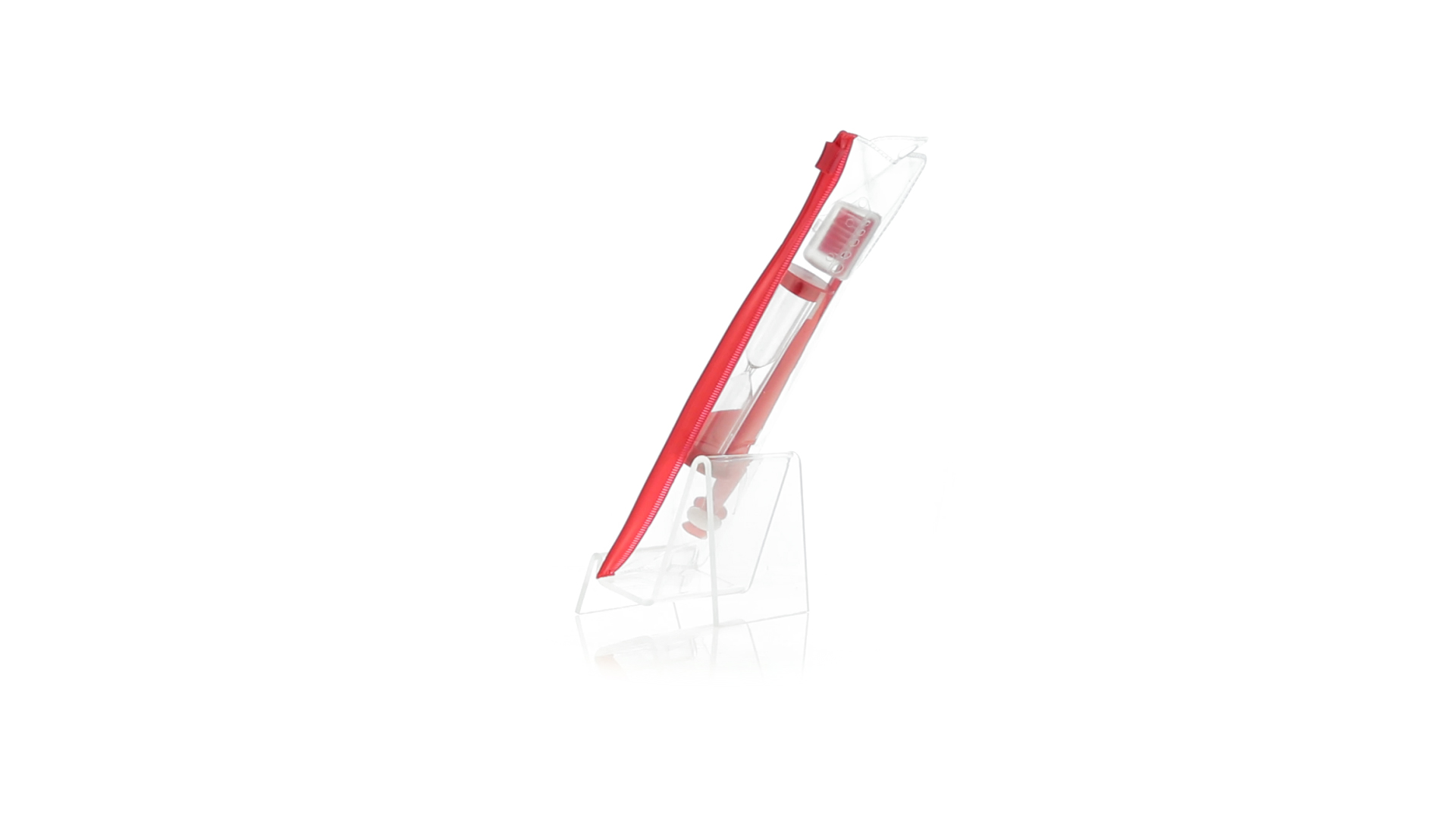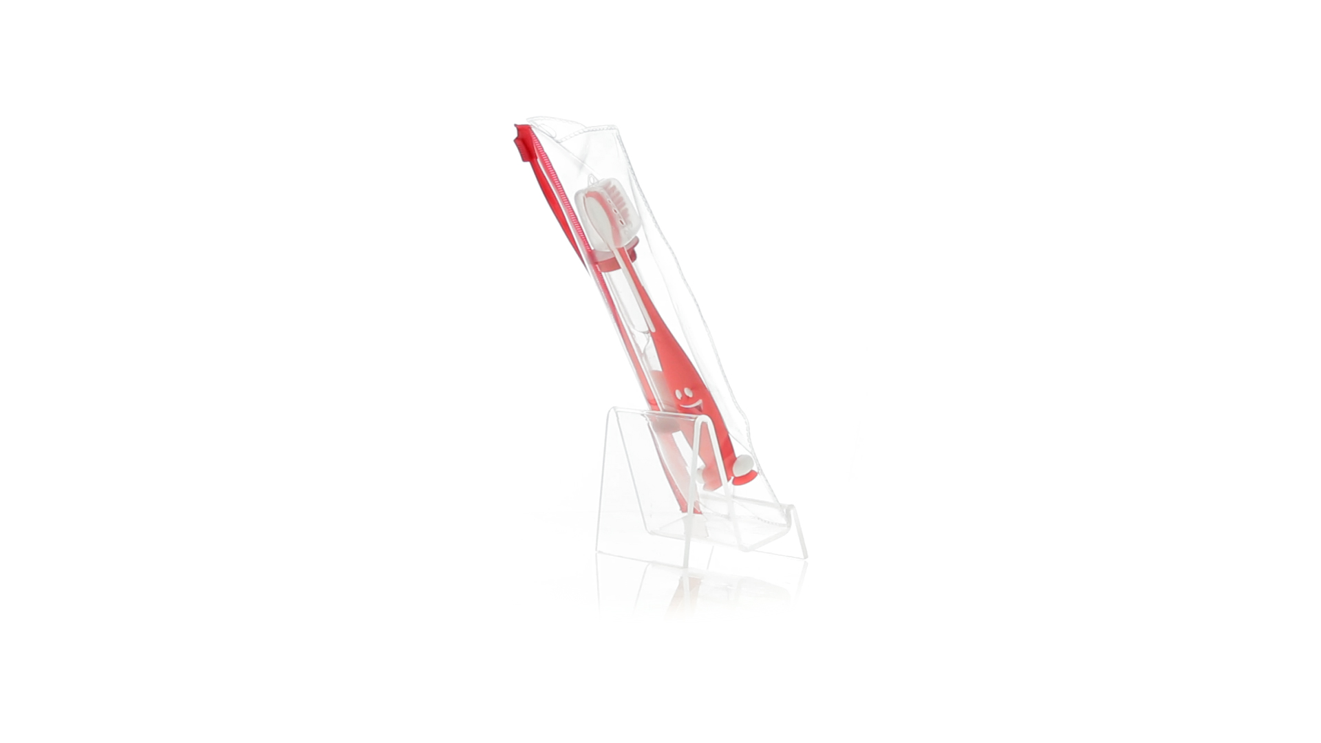 Set aus Zahnbürste und Sanduhr in kräftigen Farben. Enthält Zahnbürste mit lebhaftem Design, weichem Griff und Saugnapf an der Basis sowie eine 2-Minuten-Sanduhr. Präsentiert in einer individuellen Tasche mit Ziplock-Verschluss.