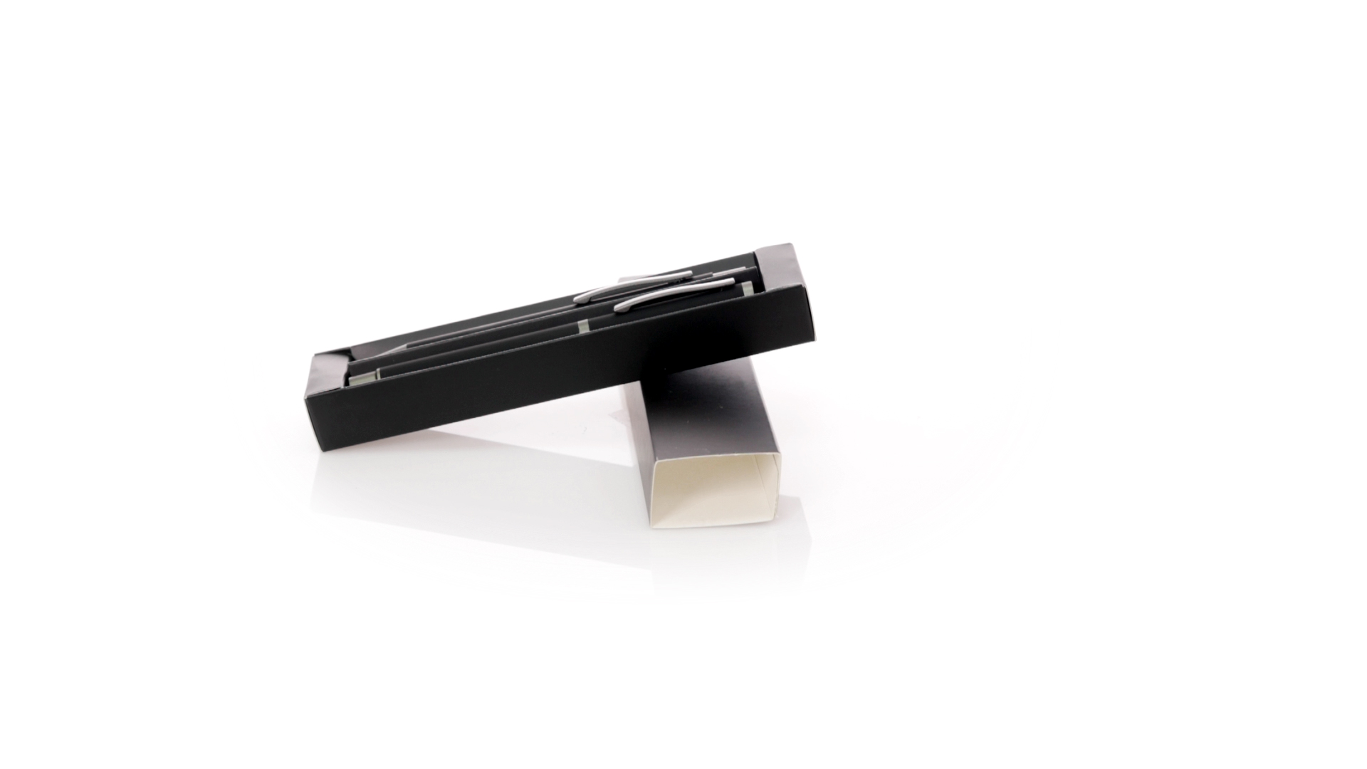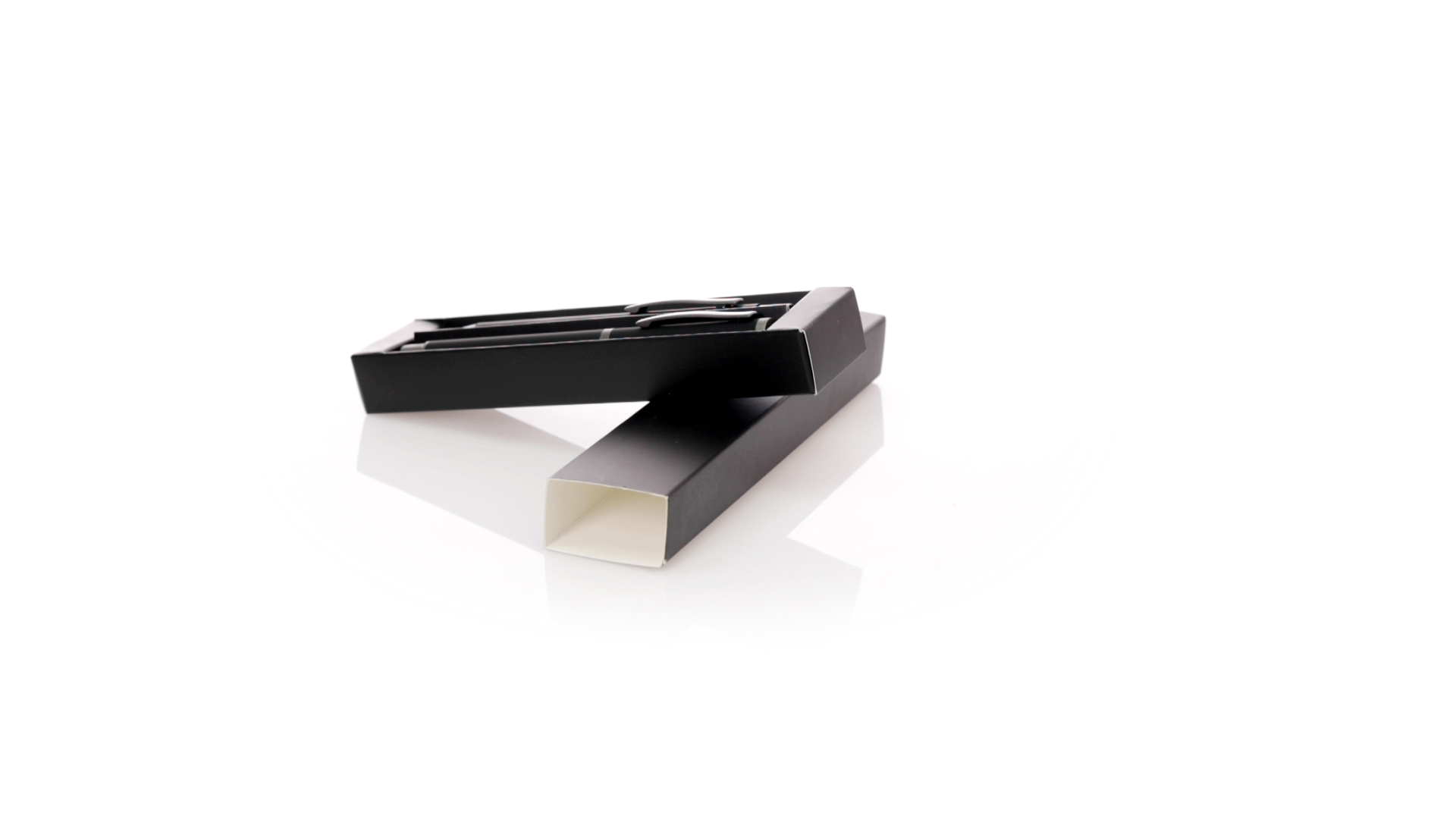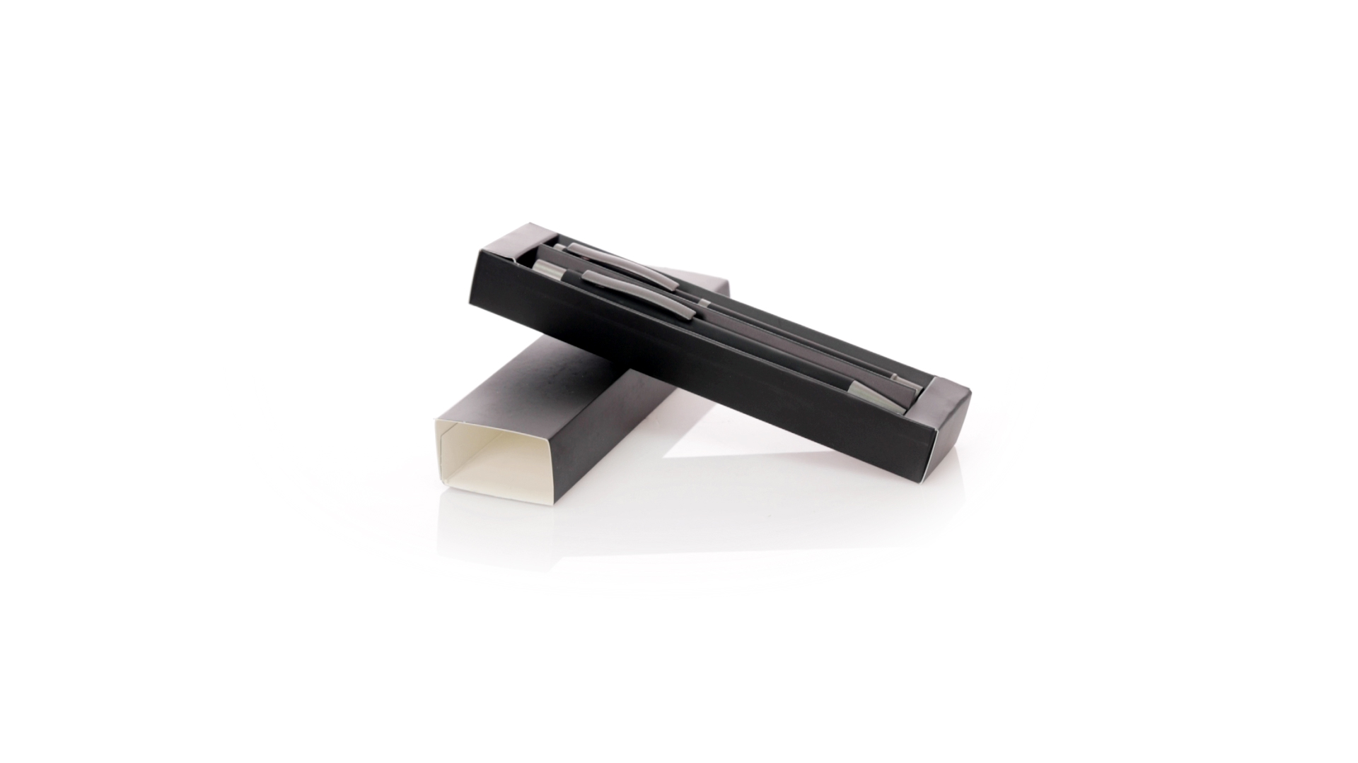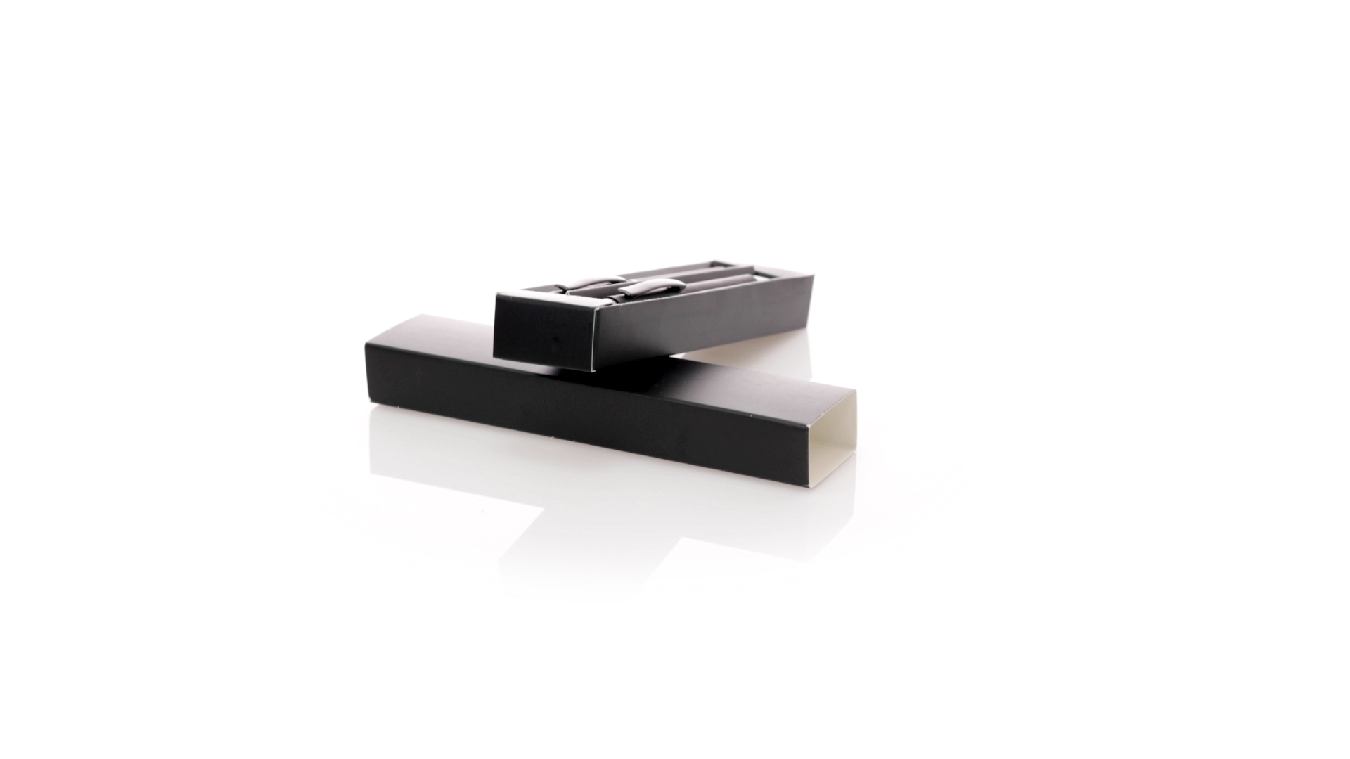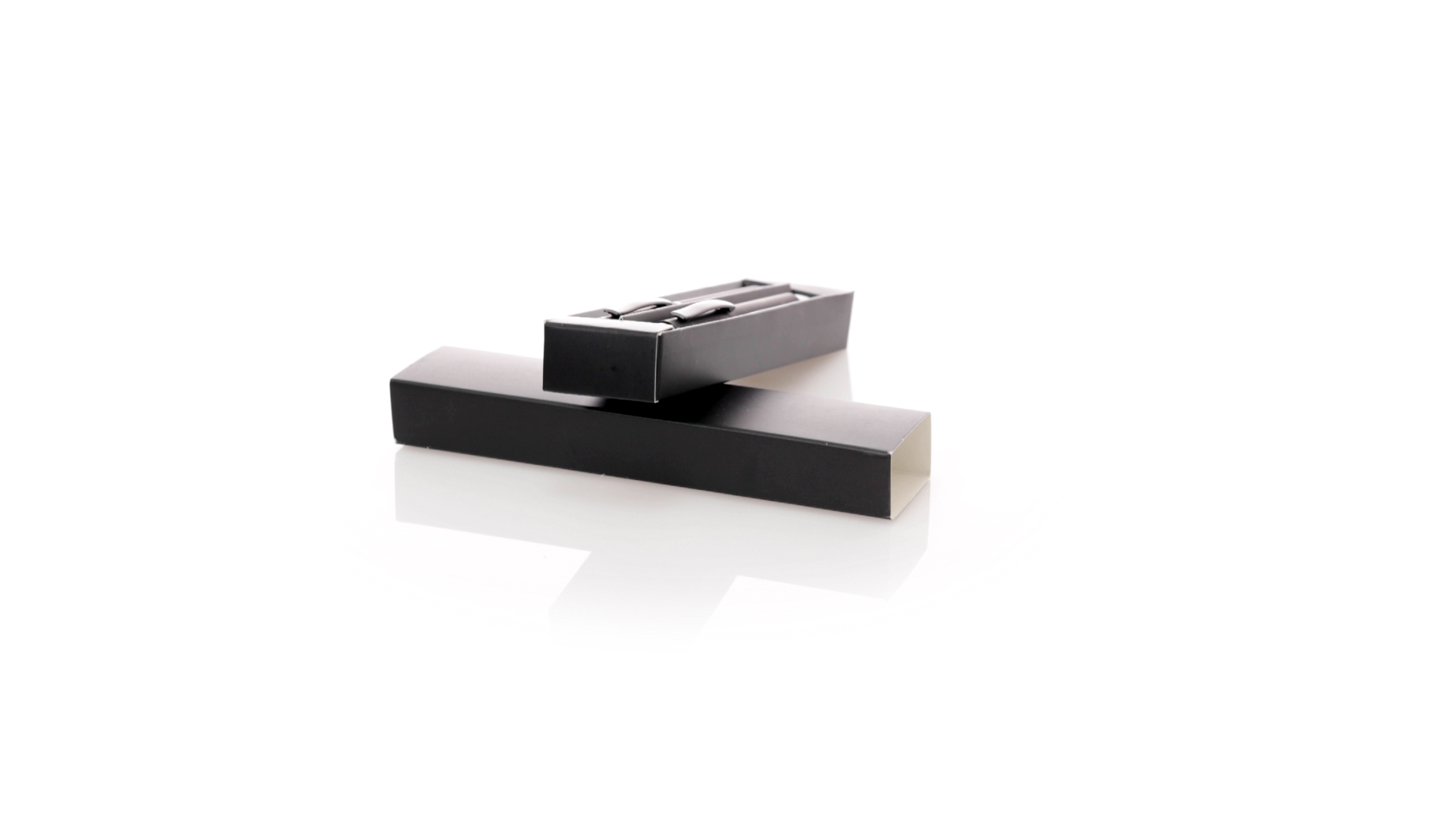 Stilvolles Kugelschreiber- und Tintenroller-Set. Druckkugelschreiber und Tintenroller mit Kappe, beide mit Metallclip, Jumbo-Mine und blauer Tinte. Schaft in verschiedenen Volltonfarben, mit gummierter Oberfläche und dunkelgrauen Metallic-Akzenten. Präsentiert in einem farblich passenden Etui mit einem ausgestanzten Fach für jedes Teil.