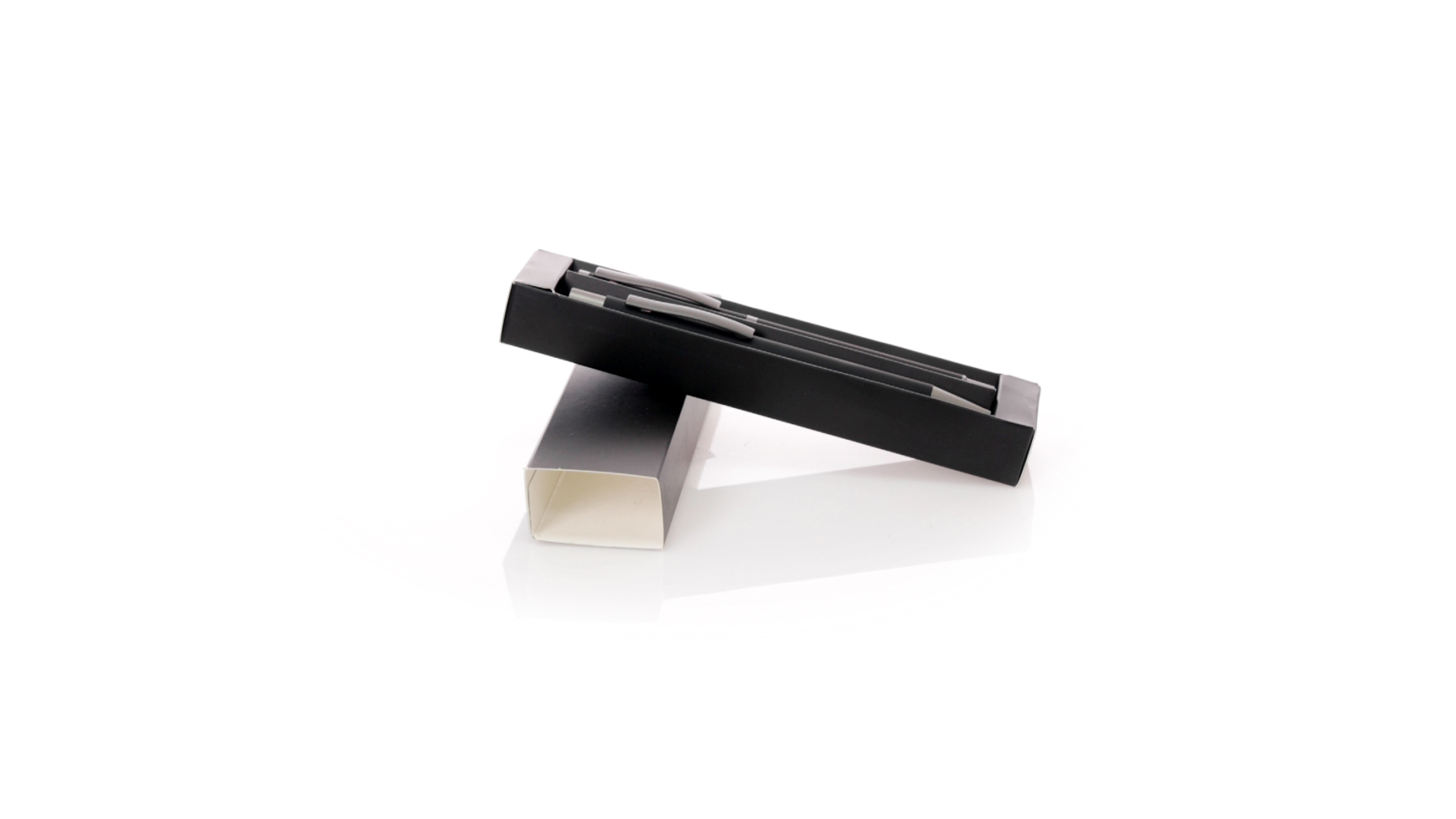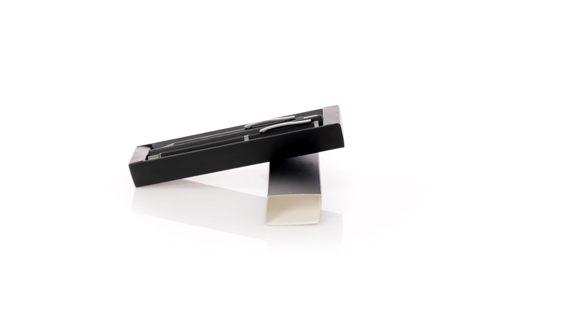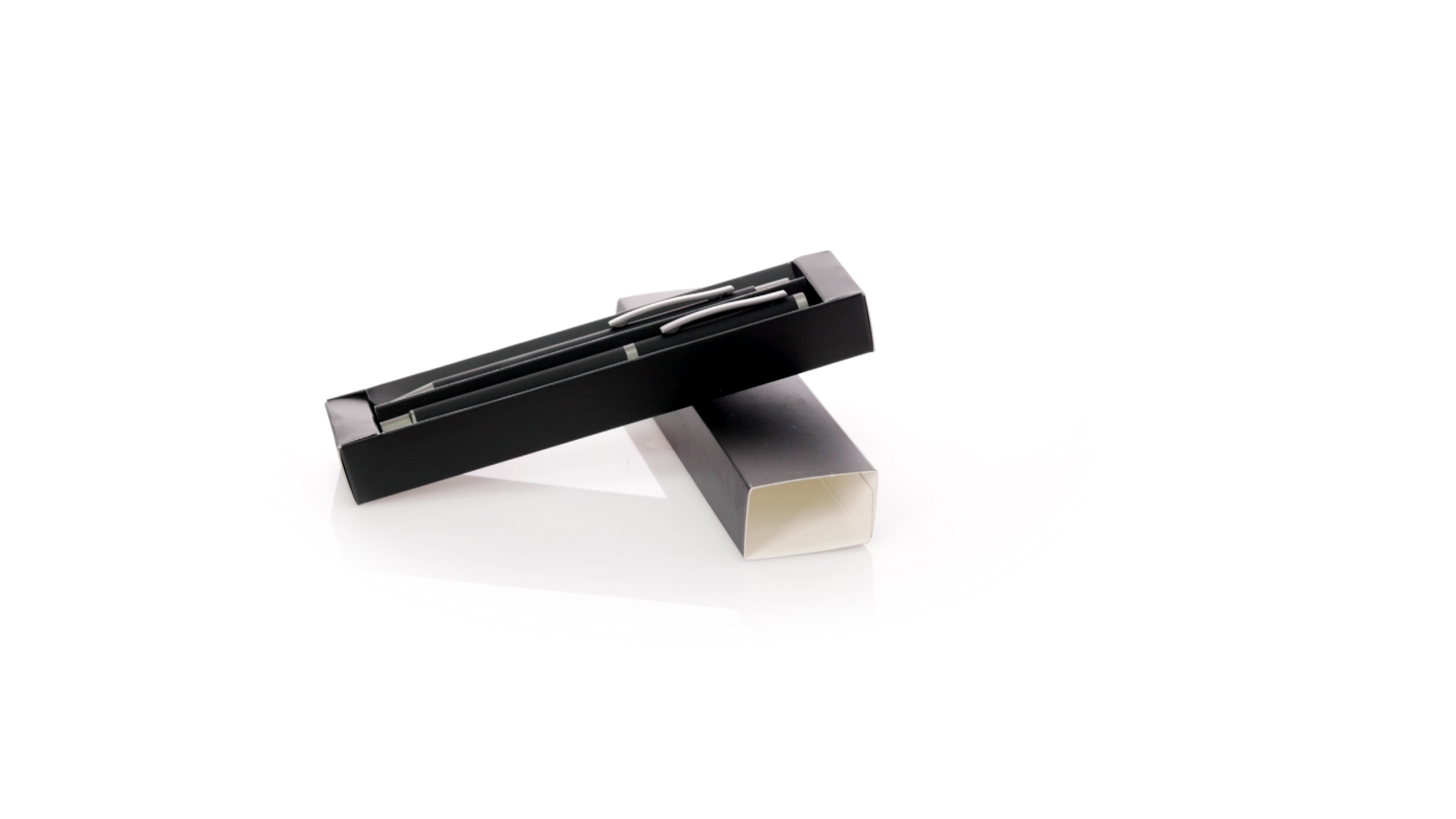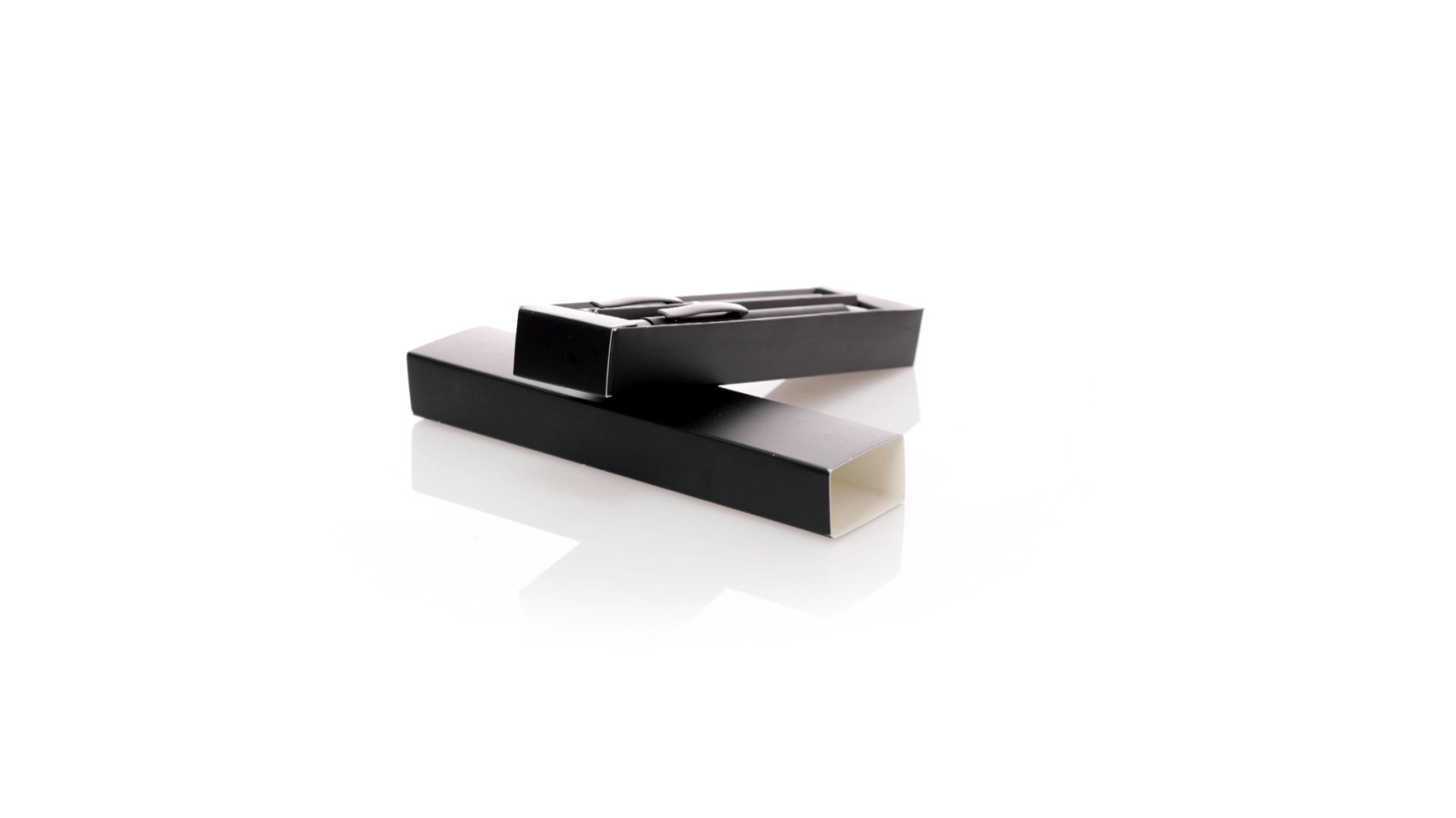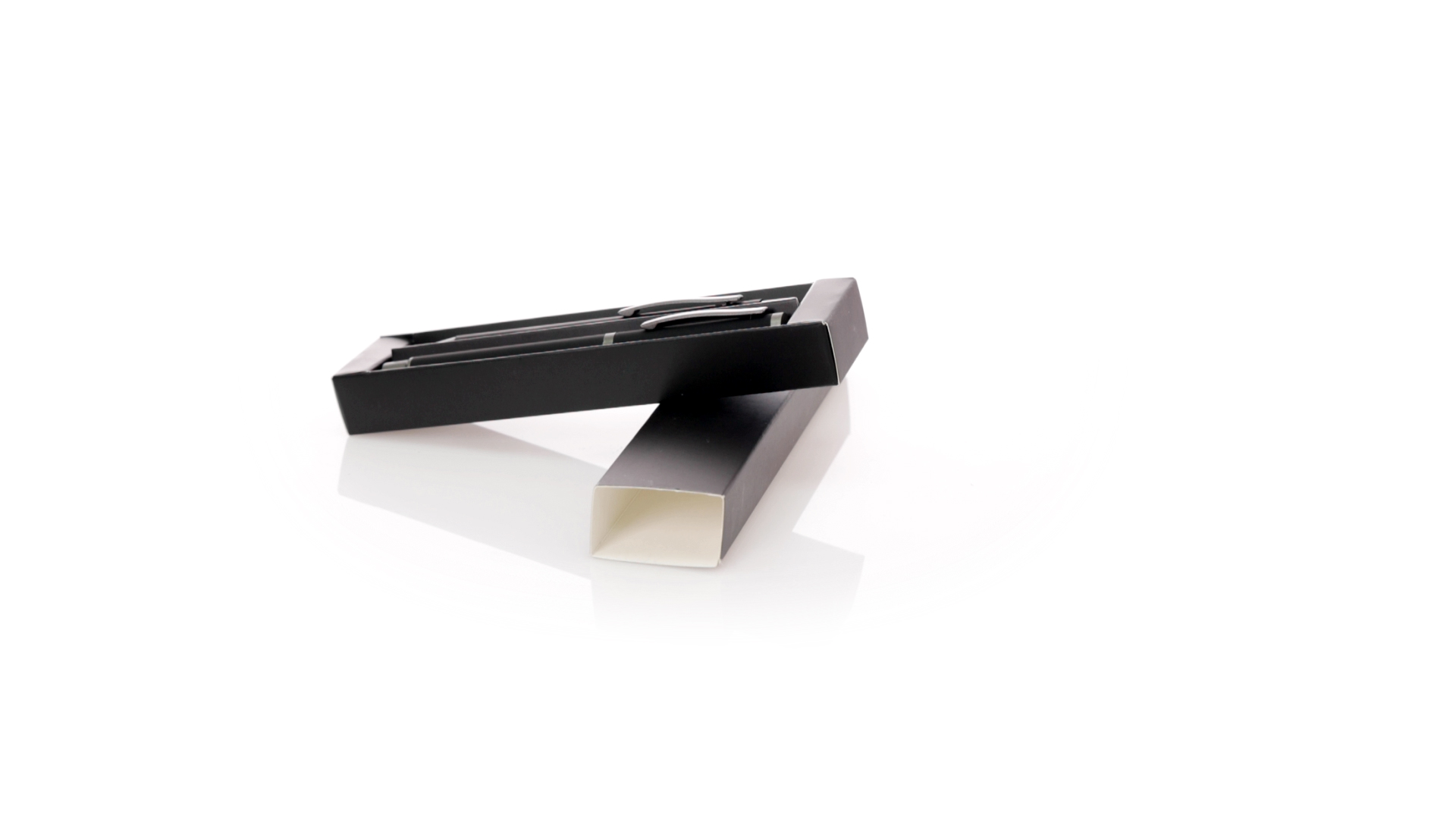 Stilvolles Kugelschreiber- und Tintenroller-Set. Druckkugelschreiber und Tintenroller mit Kappe, beide mit Metallclip, Jumbo-Mine und blauer Tinte. Schaft in verschiedenen Volltonfarben, mit gummierter Oberfläche und dunkelgrauen Metallic-Akzenten. Präsentiert in einem farblich passenden Etui mit einem ausgestanzten Fach für jedes Teil.