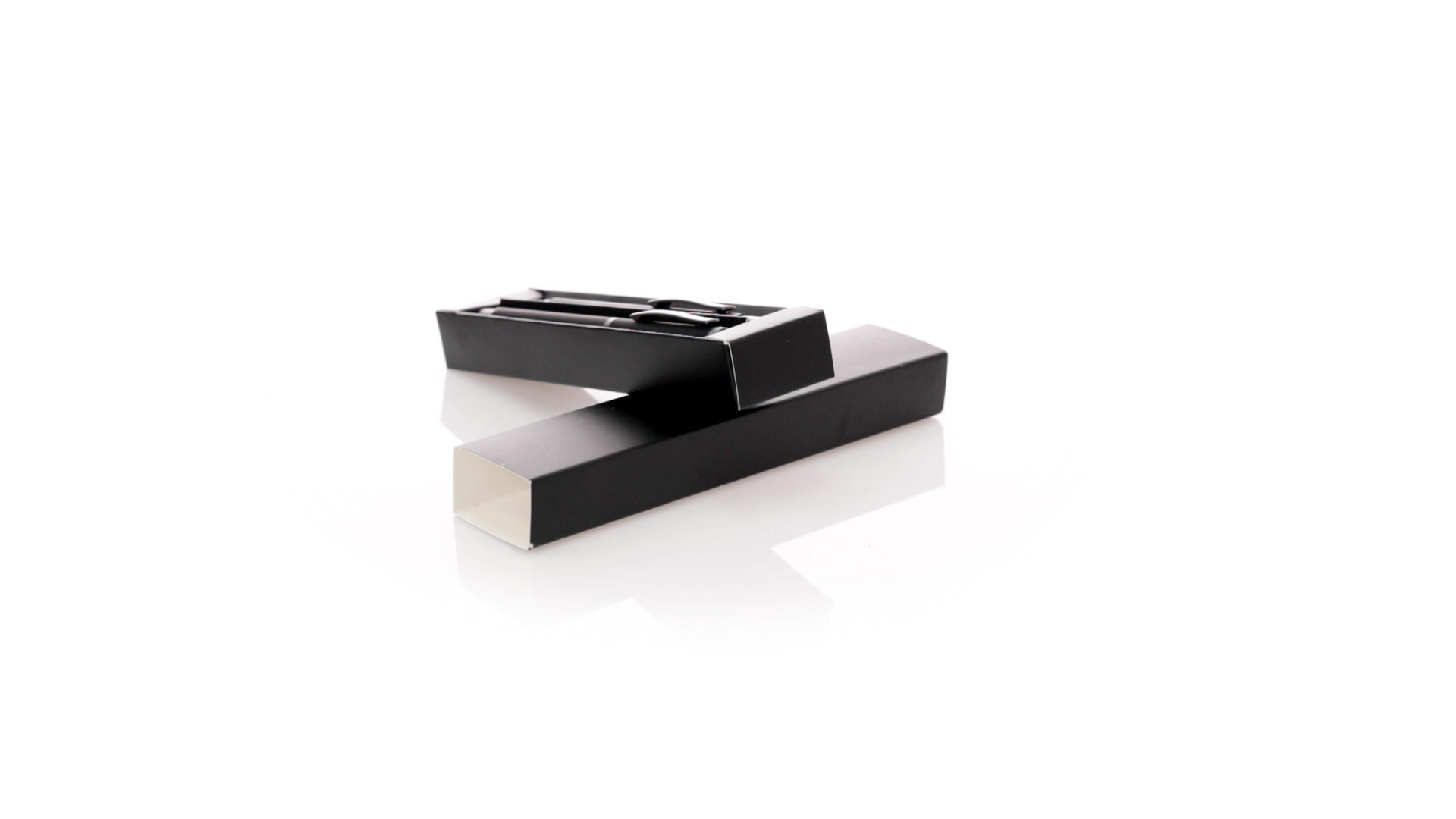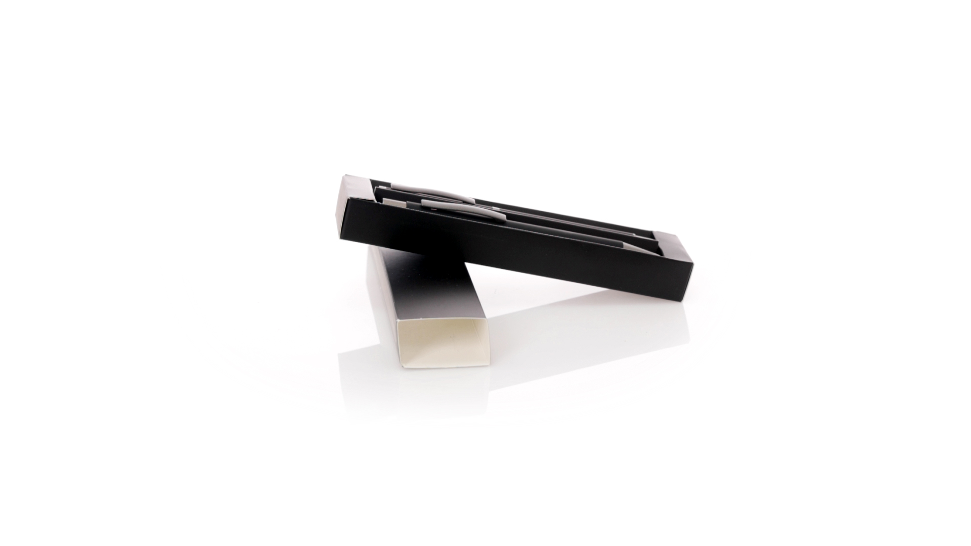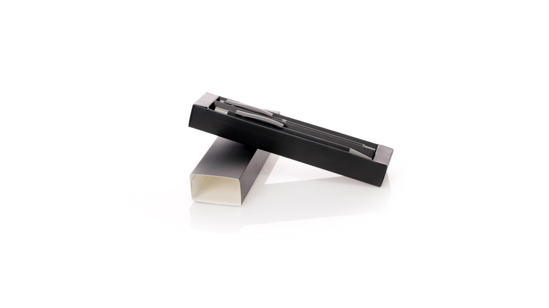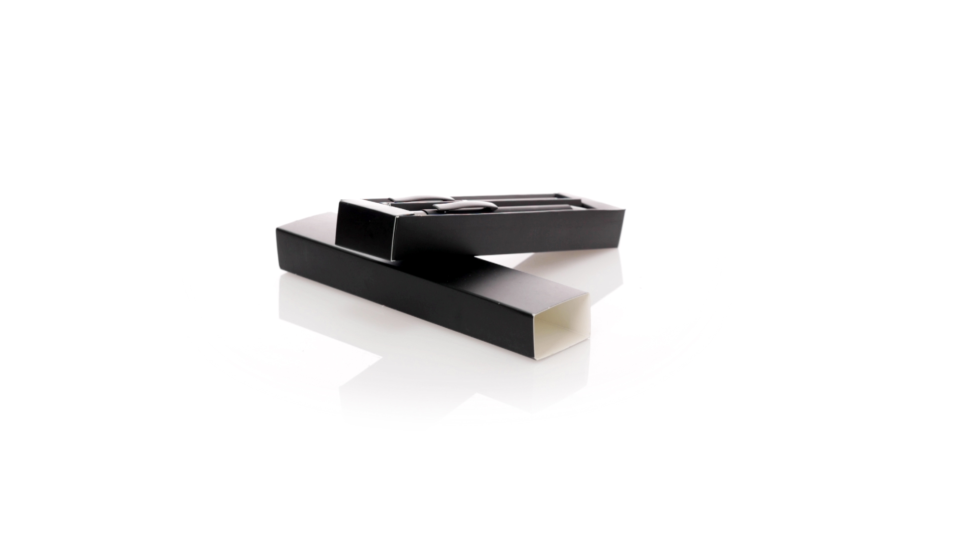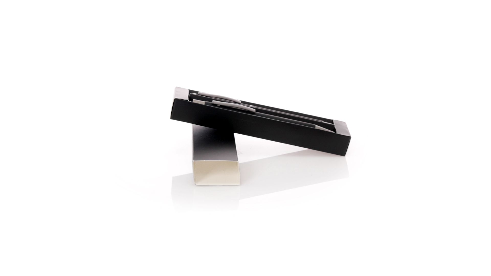Stilvolles Kugelschreiber- und Tintenroller-Set. Druckkugelschreiber und Tintenroller mit Kappe, beide mit Metallclip, Jumbo-Mine und blauer Tinte. Schaft in verschiedenen Volltonfarben, mit gummierter Oberfläche und dunkelgrauen Metallic-Akzenten. Präsentiert in einem farblich passenden Etui mit einem ausgestanzten Fach für jedes Teil.