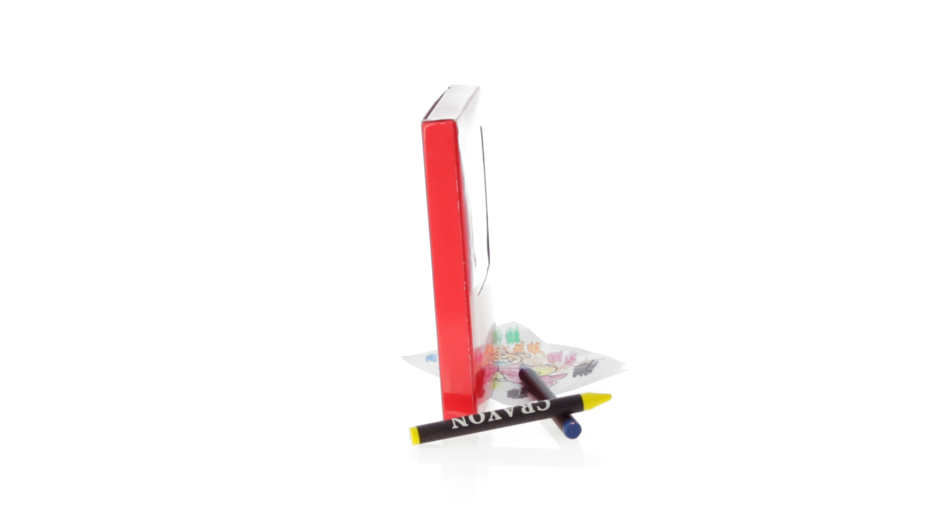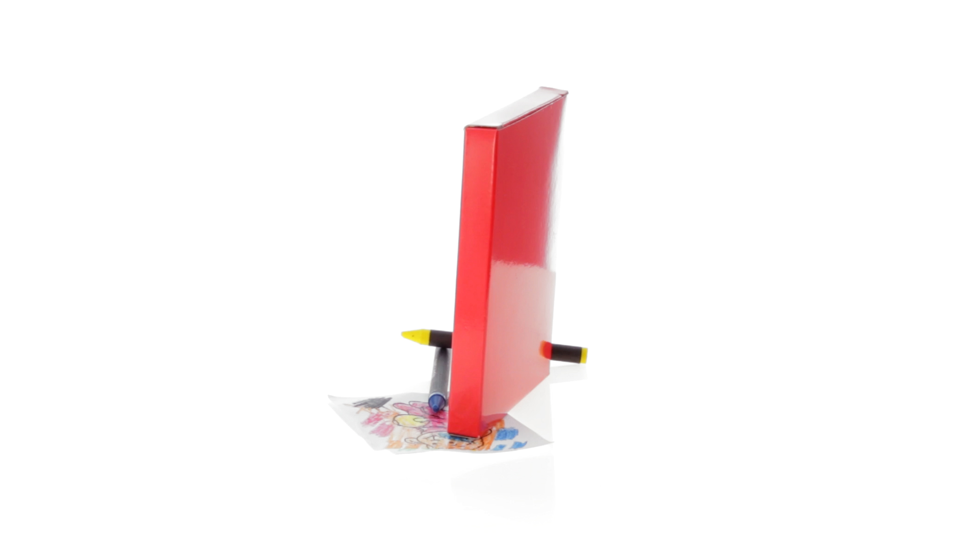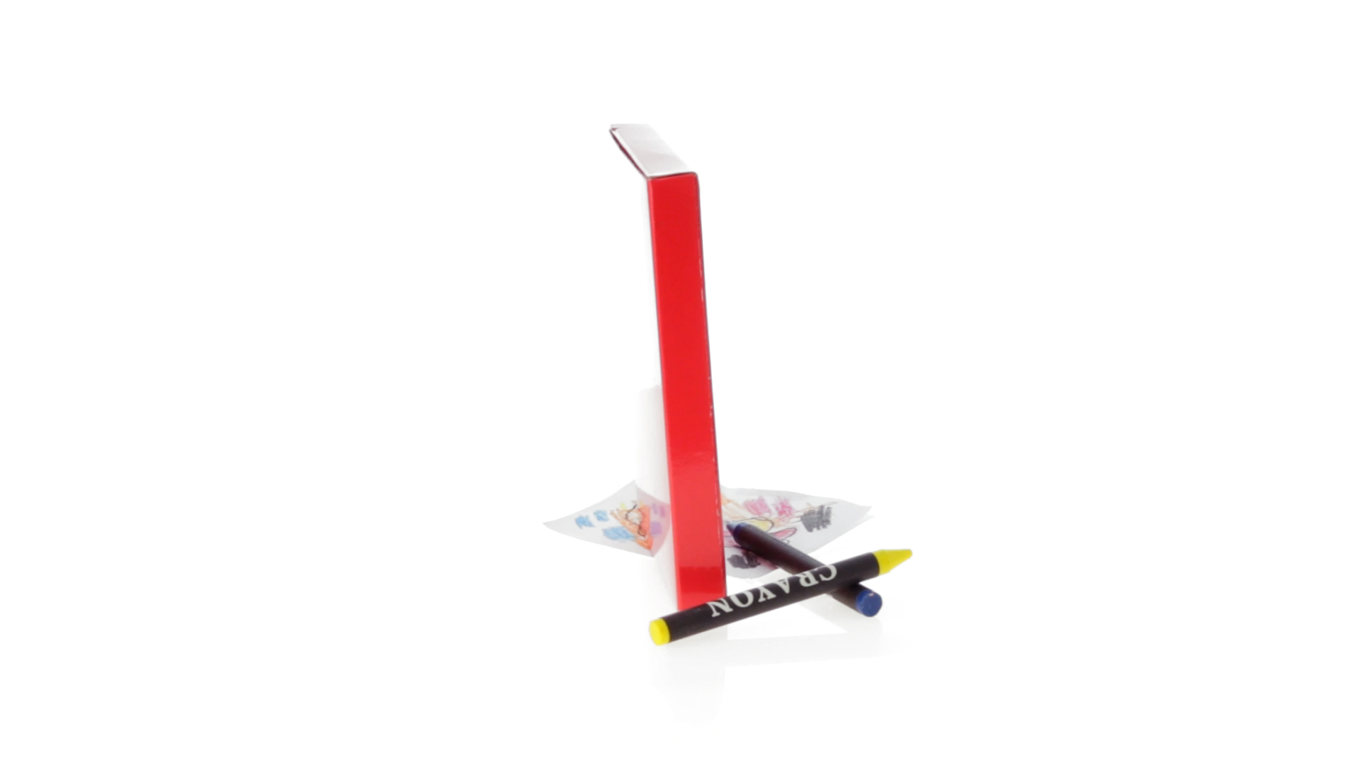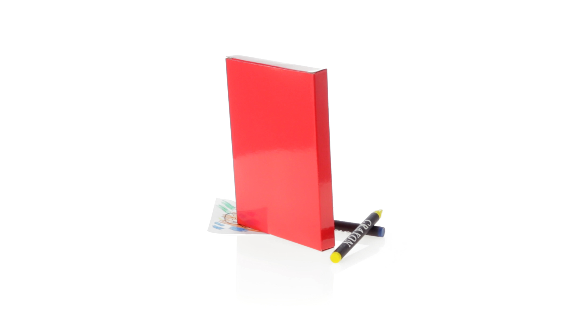 7-teiliges Mal-Set, präsentiert in einer Kartonschachtel in lebendigen Farben. Enthält 6 Wachsmalstifte mit zylinderförmigem Gehäuse in verschiedenen Farben und einen Block mit lustigen Motiven zum Ausmalen.