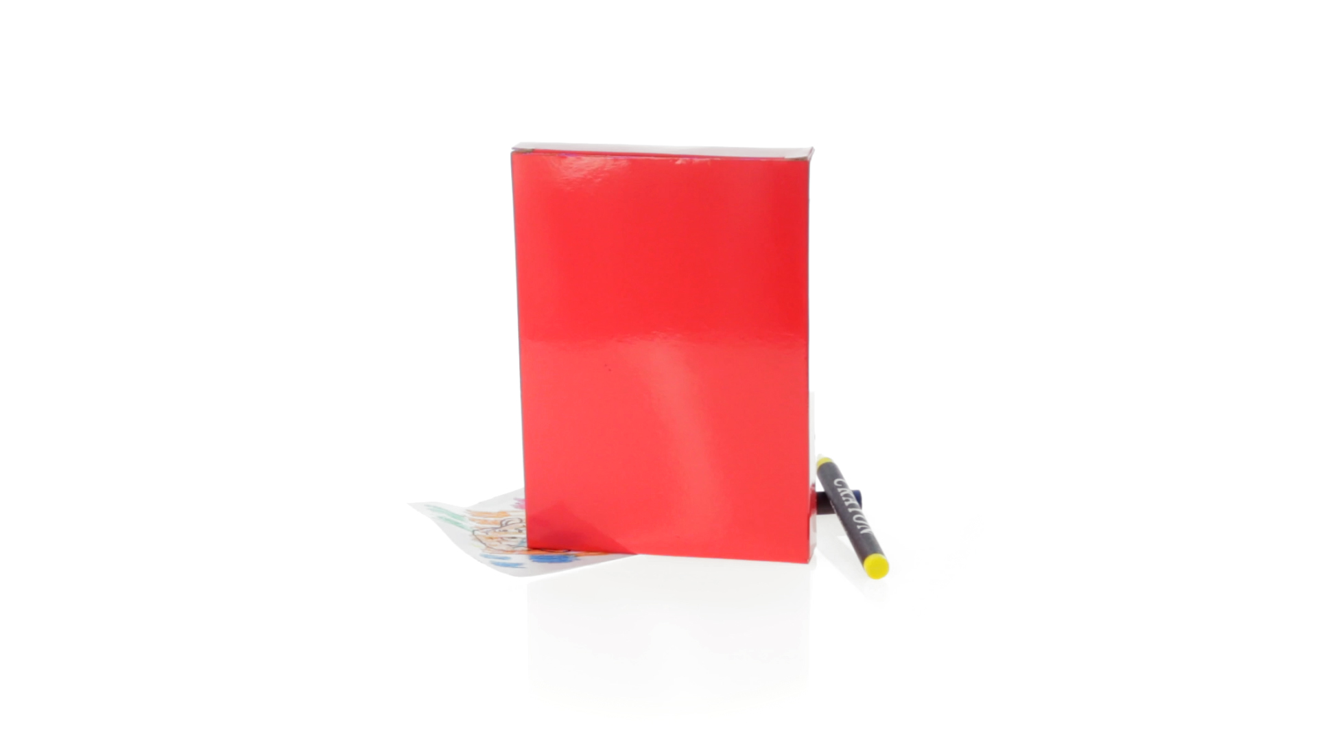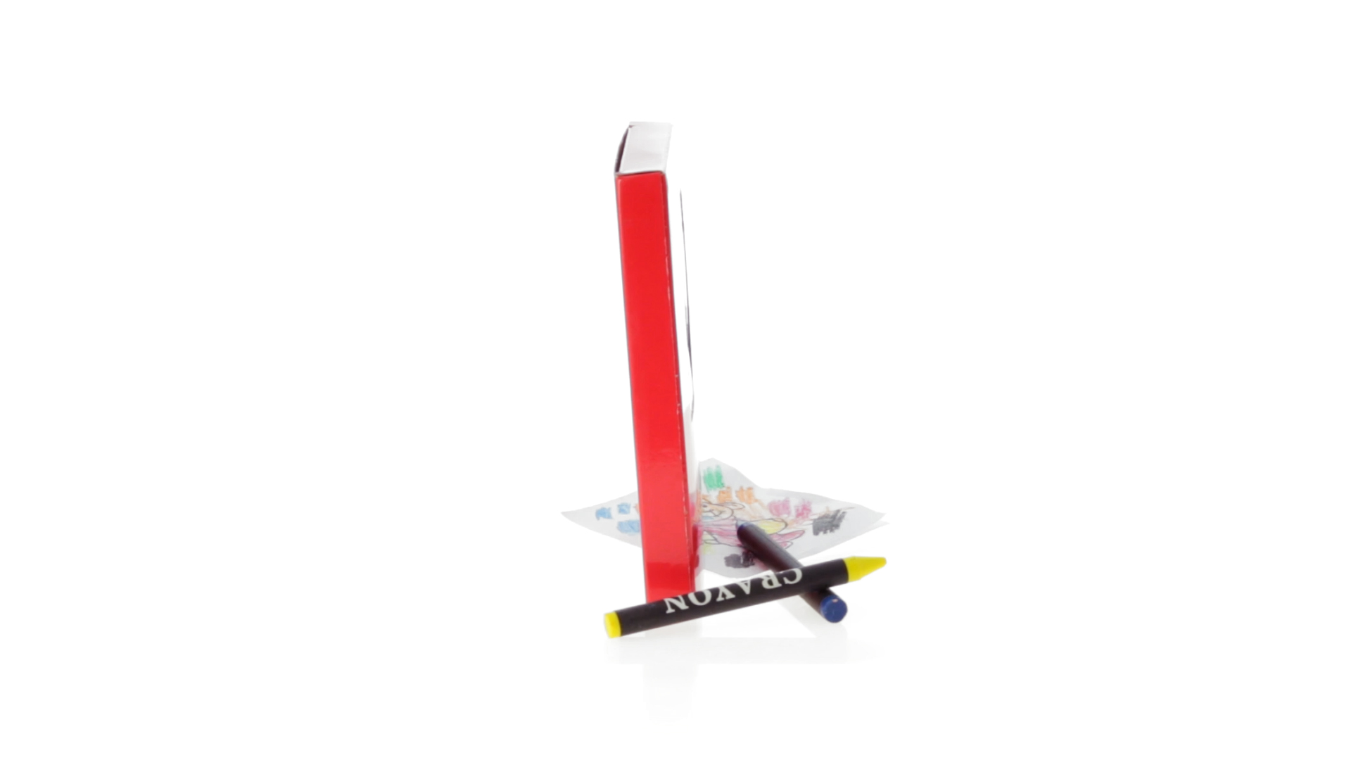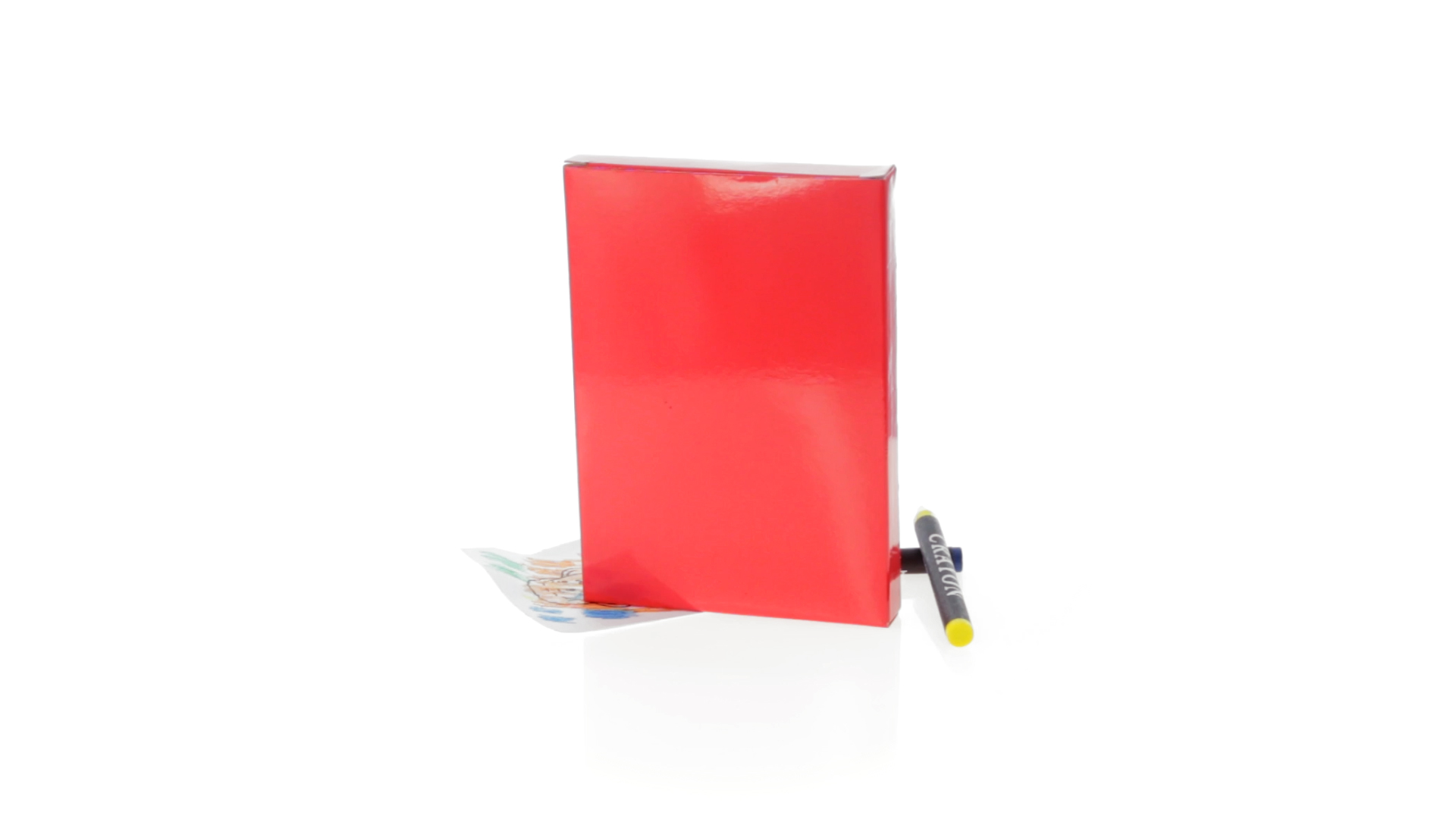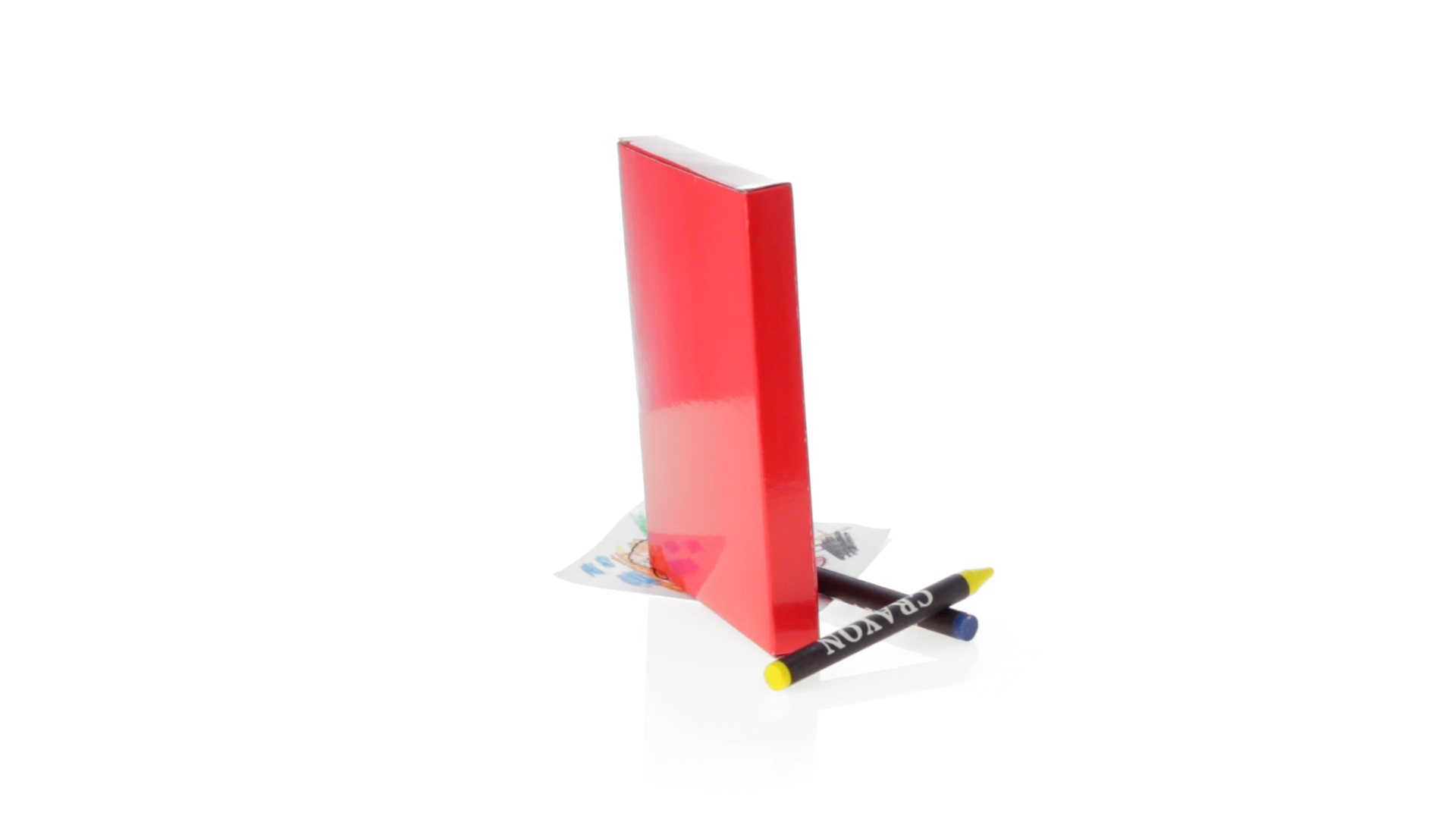 7-teiliges Mal-Set, präsentiert in einer Kartonschachtel in lebendigen Farben. Enthält 6 Wachsmalstifte mit zylinderförmigem Gehäuse in verschiedenen Farben und einen Block mit lustigen Motiven zum Ausmalen.