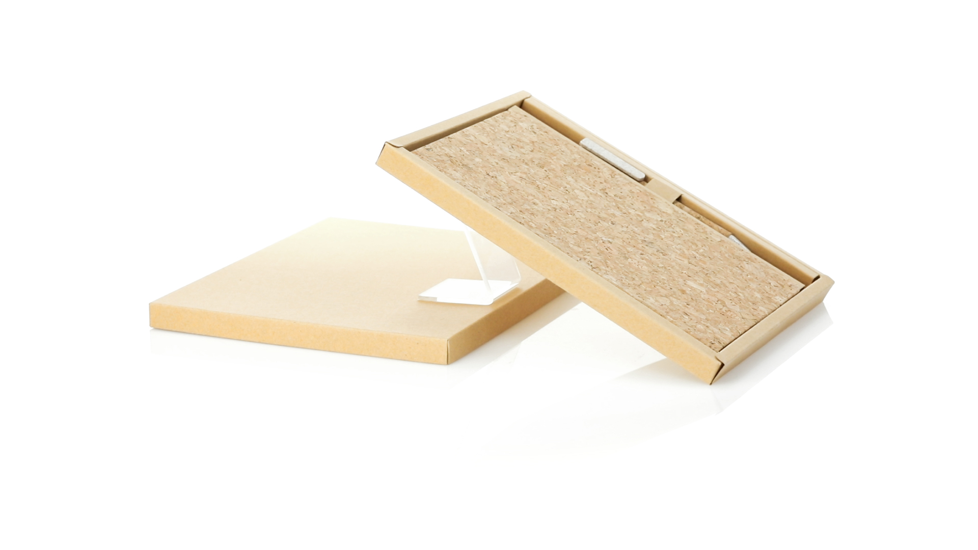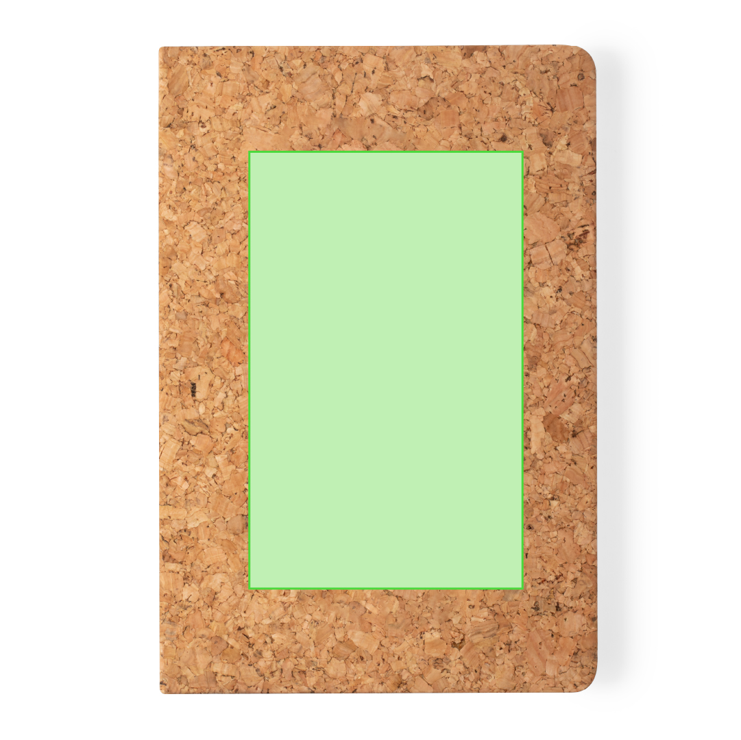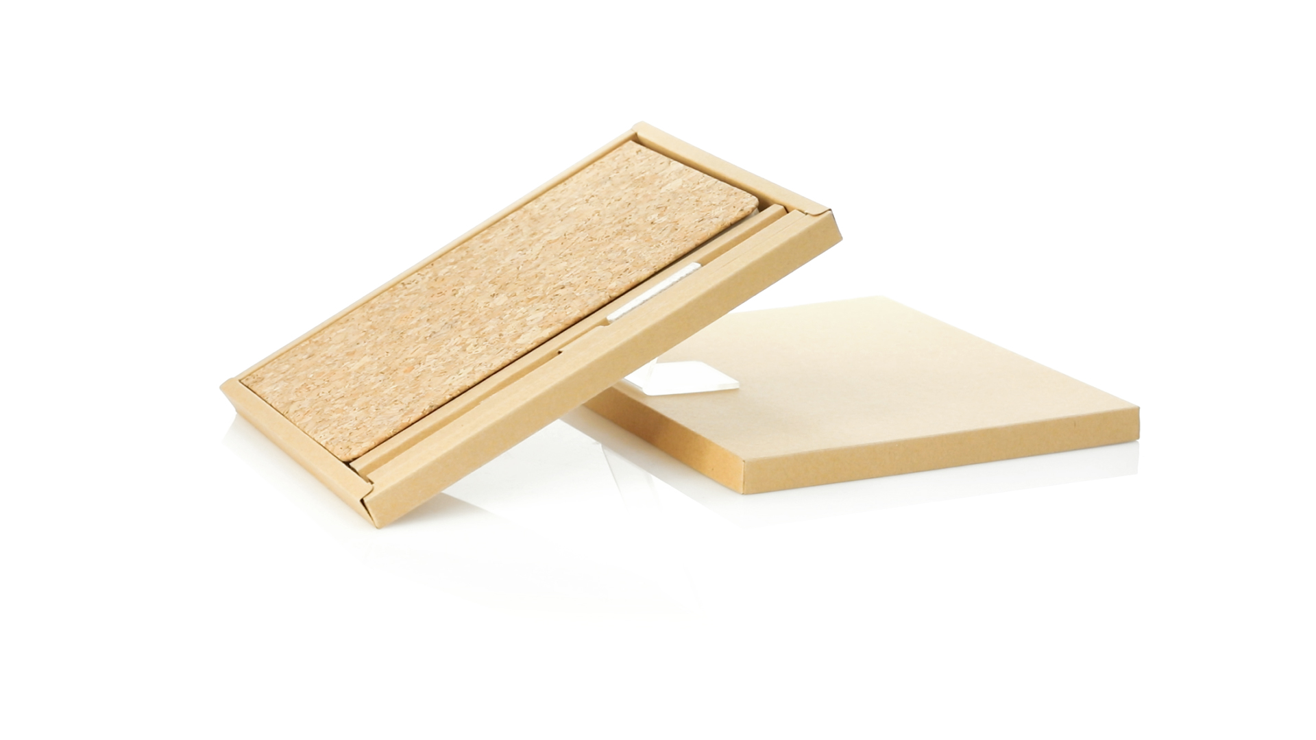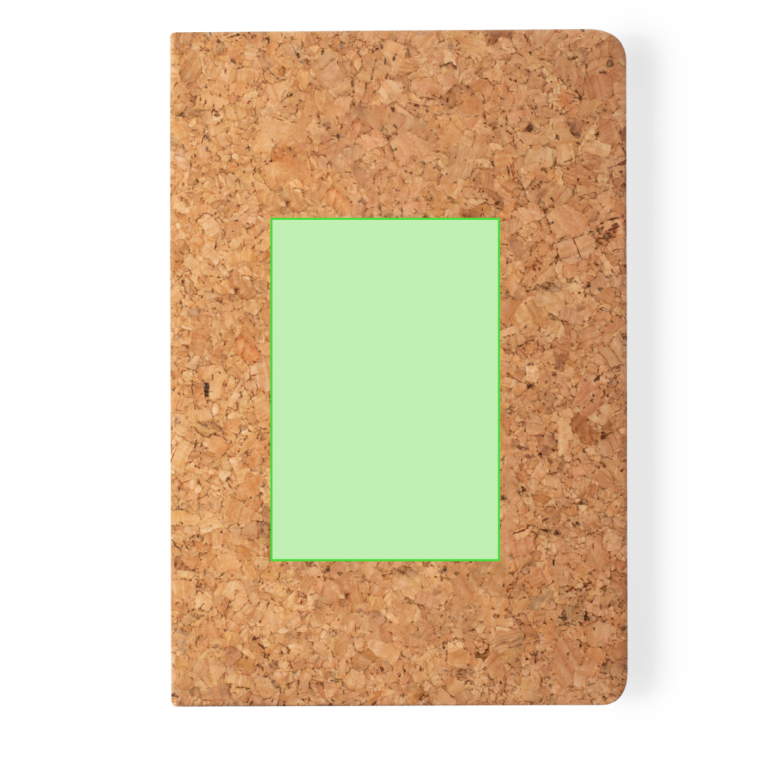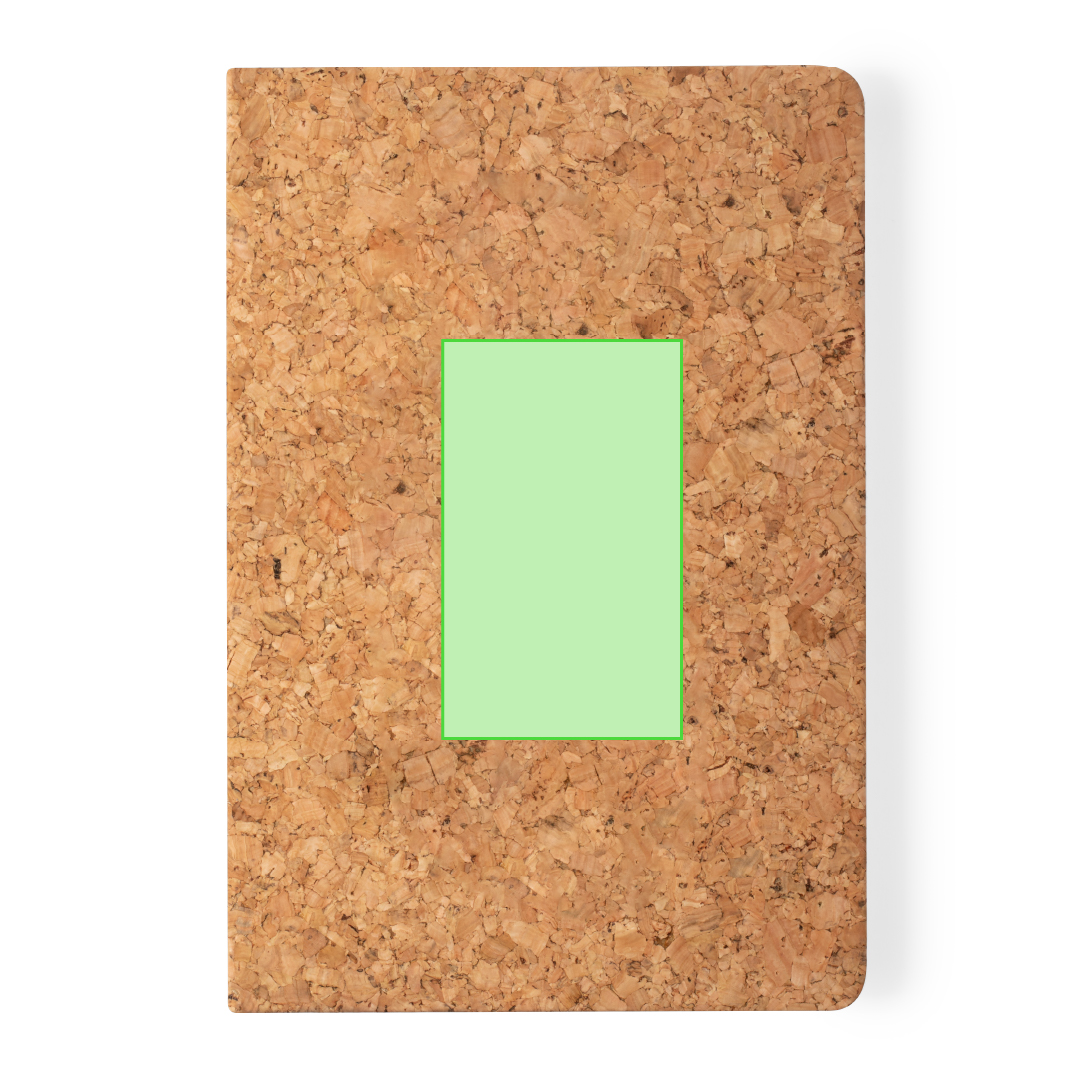 Notizblock und Kugelschreiber aus unserer Naturlinie. Notizbuch mit festem Einband aus Naturkork, mit 80 einfachen Blättern. Kugelschreiber mit Push-up-Mechanismus, mit Naturkorkkörper und Zubehör aus Weizenstroh, um die Verwendung natürlicher Rohstoffe zu fördern und die Schadstoffemissionen zu reduzieren. Präsentiert in einem gestanzten Kartonetui mit Öko-Design. Schwarze Tinte.