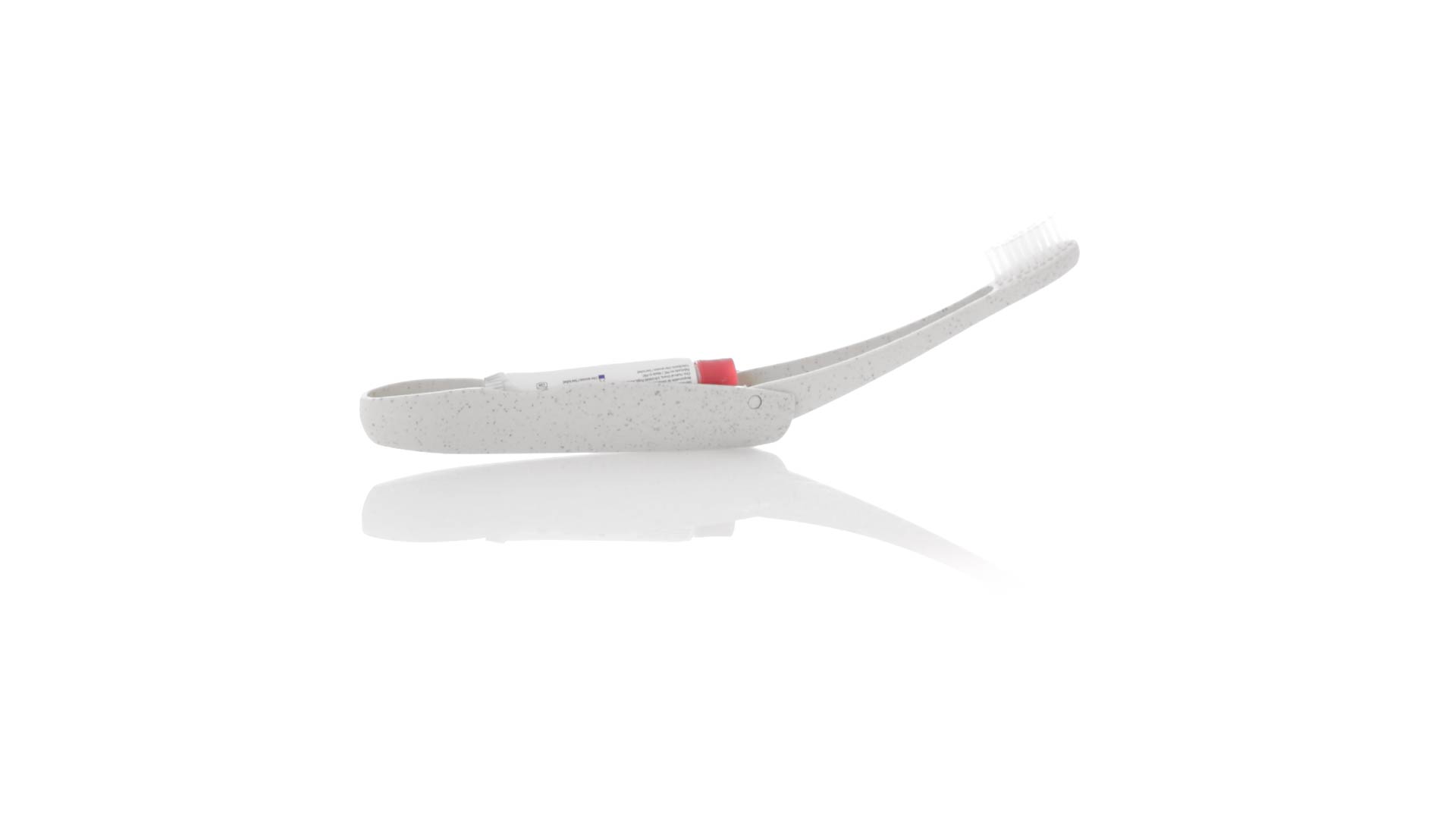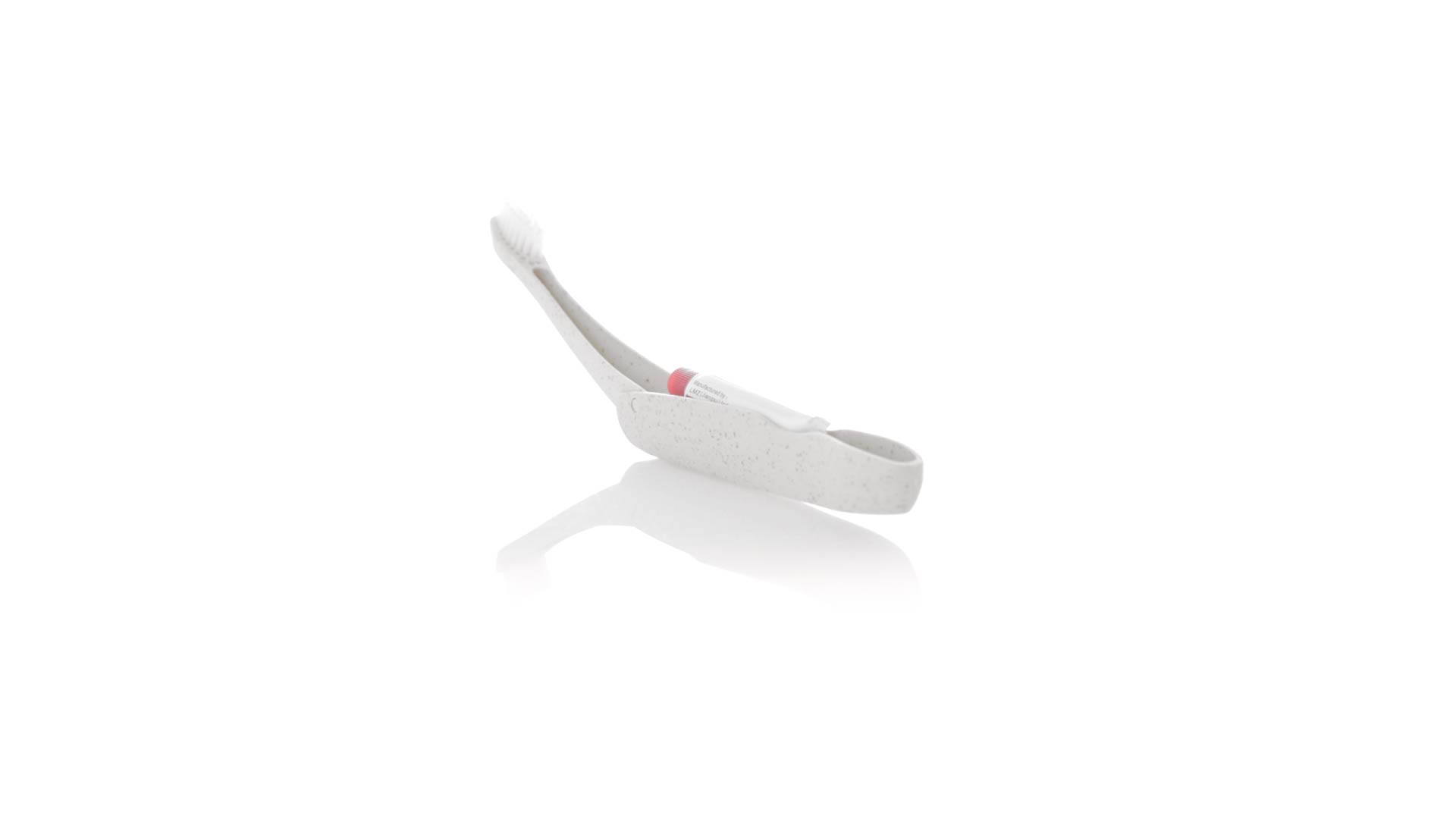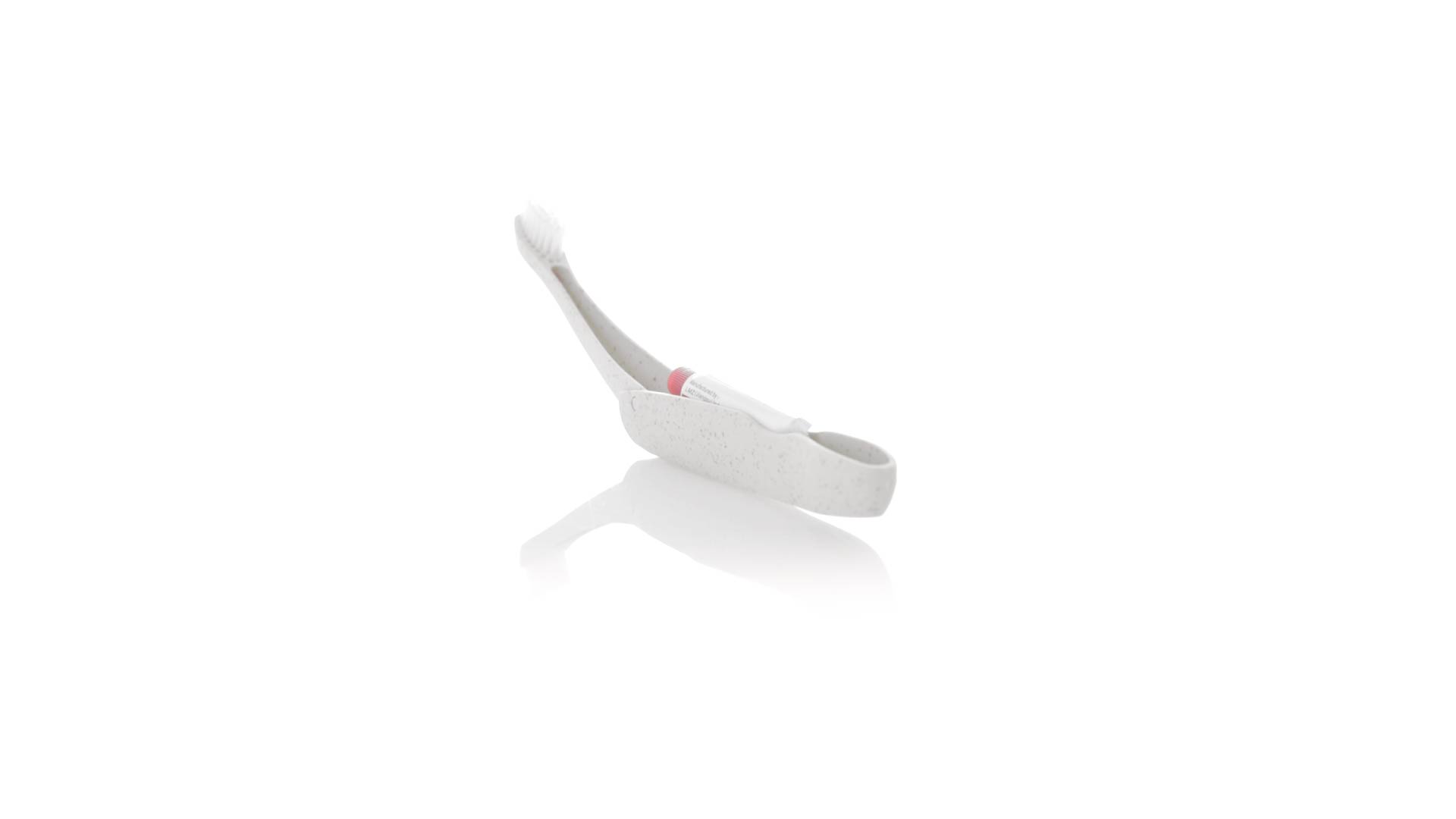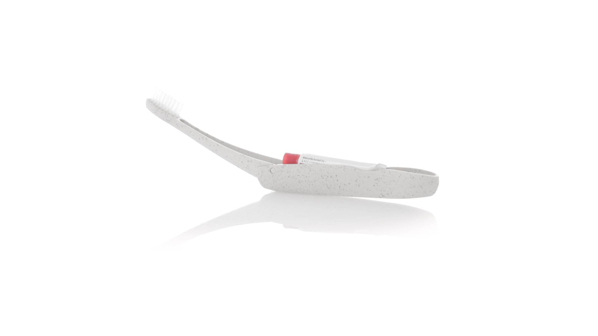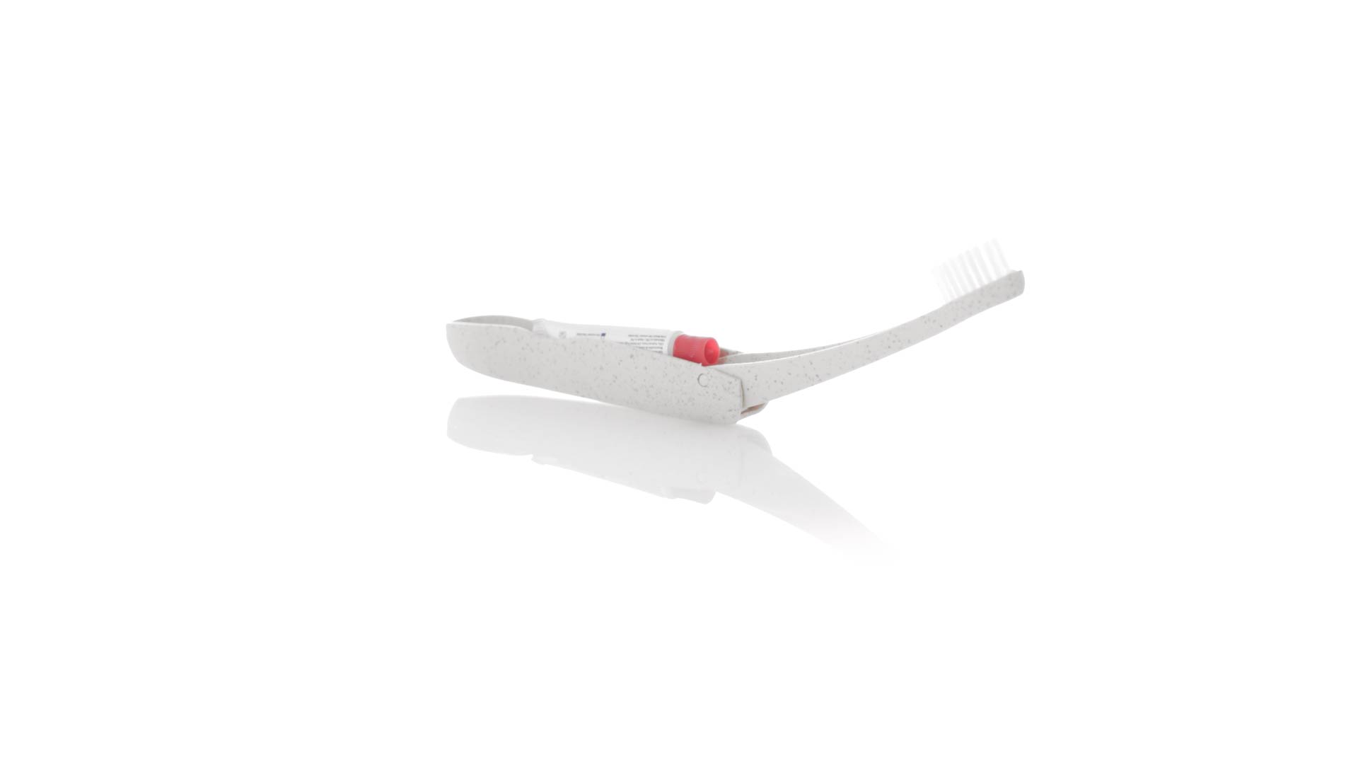 Handliche faltbare Zahnbürste aus widerstandsfähigem Weizenstroh. Mit einem Fach zur Aufbewahrung einer Tube Zahnpasta 6g (inklusive).Weizenstroh fördert die Verwendung von natürlichen Rohstoffen und reduziert so den Schadstoffausstoss.