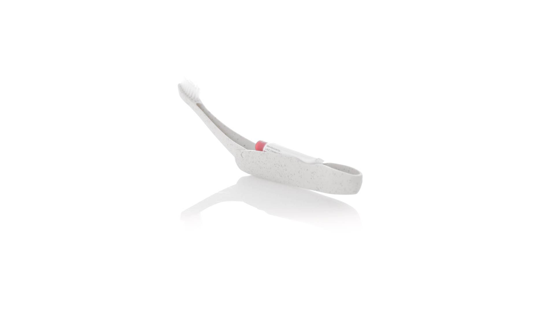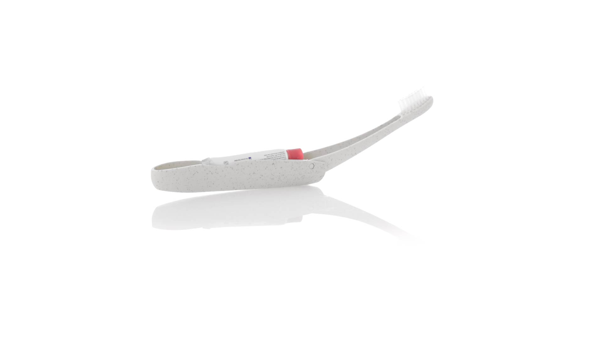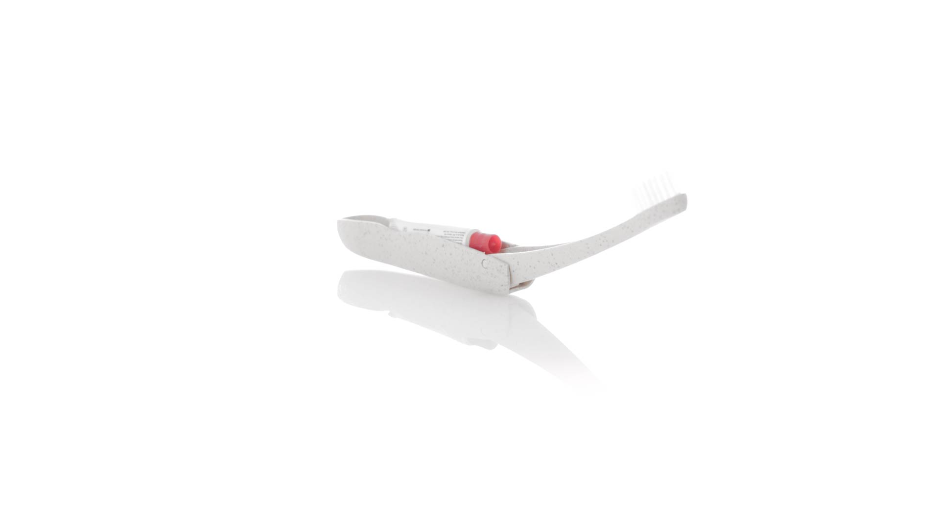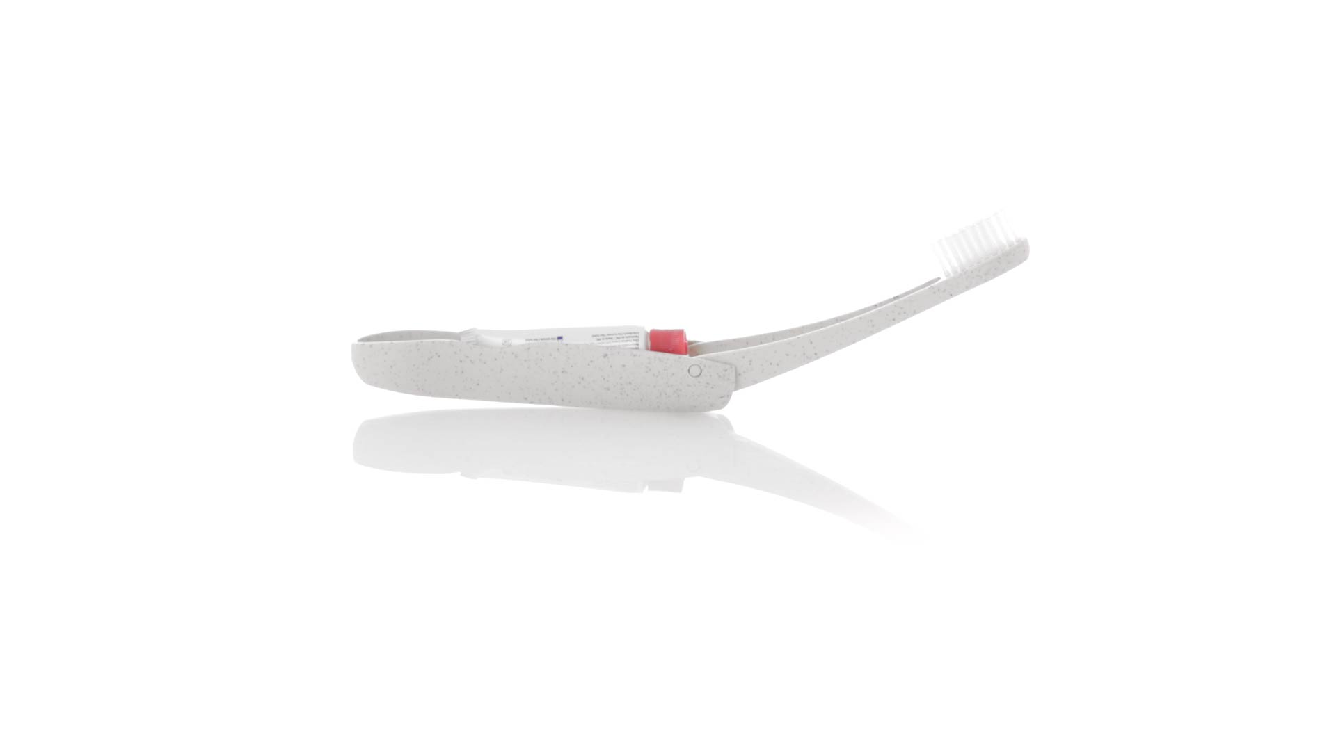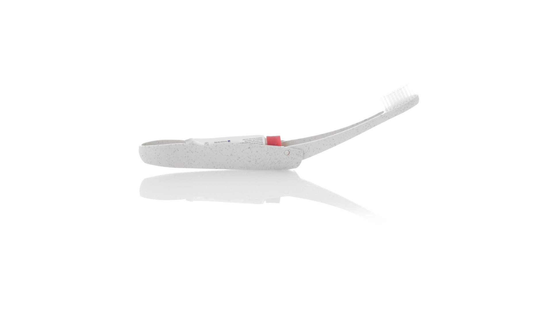 Handliche faltbare Zahnbürste aus widerstandsfähigem Weizenstroh. Mit einem Fach zur Aufbewahrung einer Tube Zahnpasta 6g (inklusive).Weizenstroh fördert die Verwendung von natürlichen Rohstoffen und reduziert so den Schadstoffausstoss.