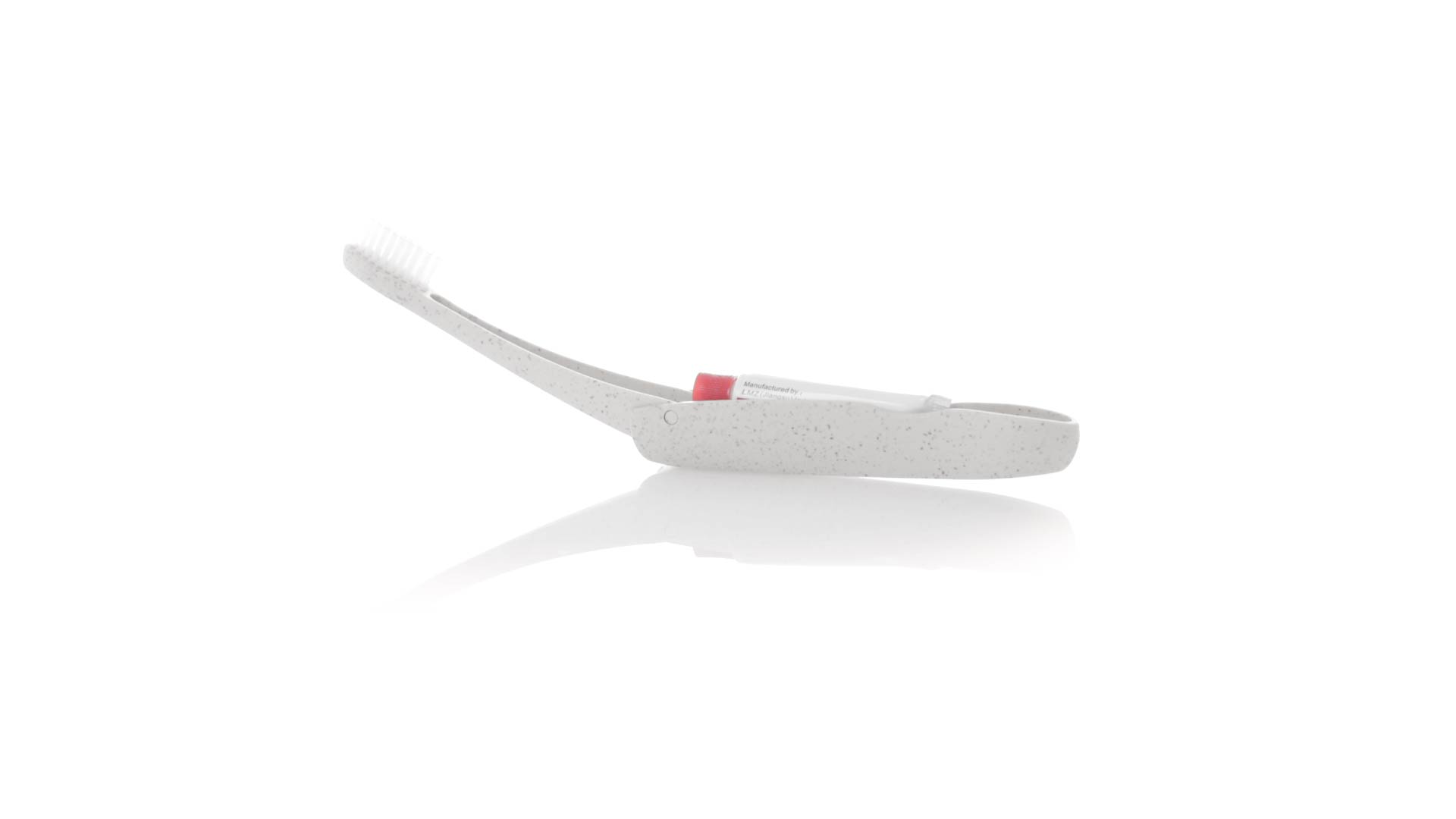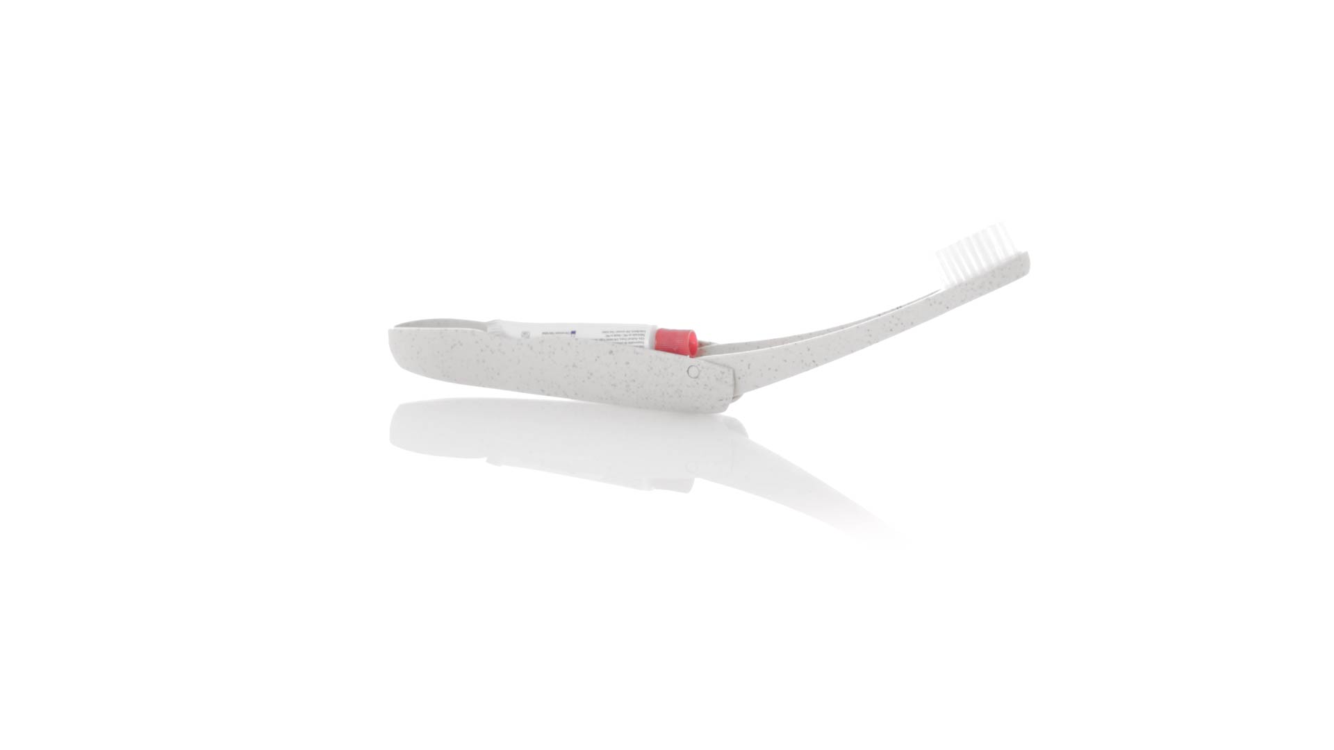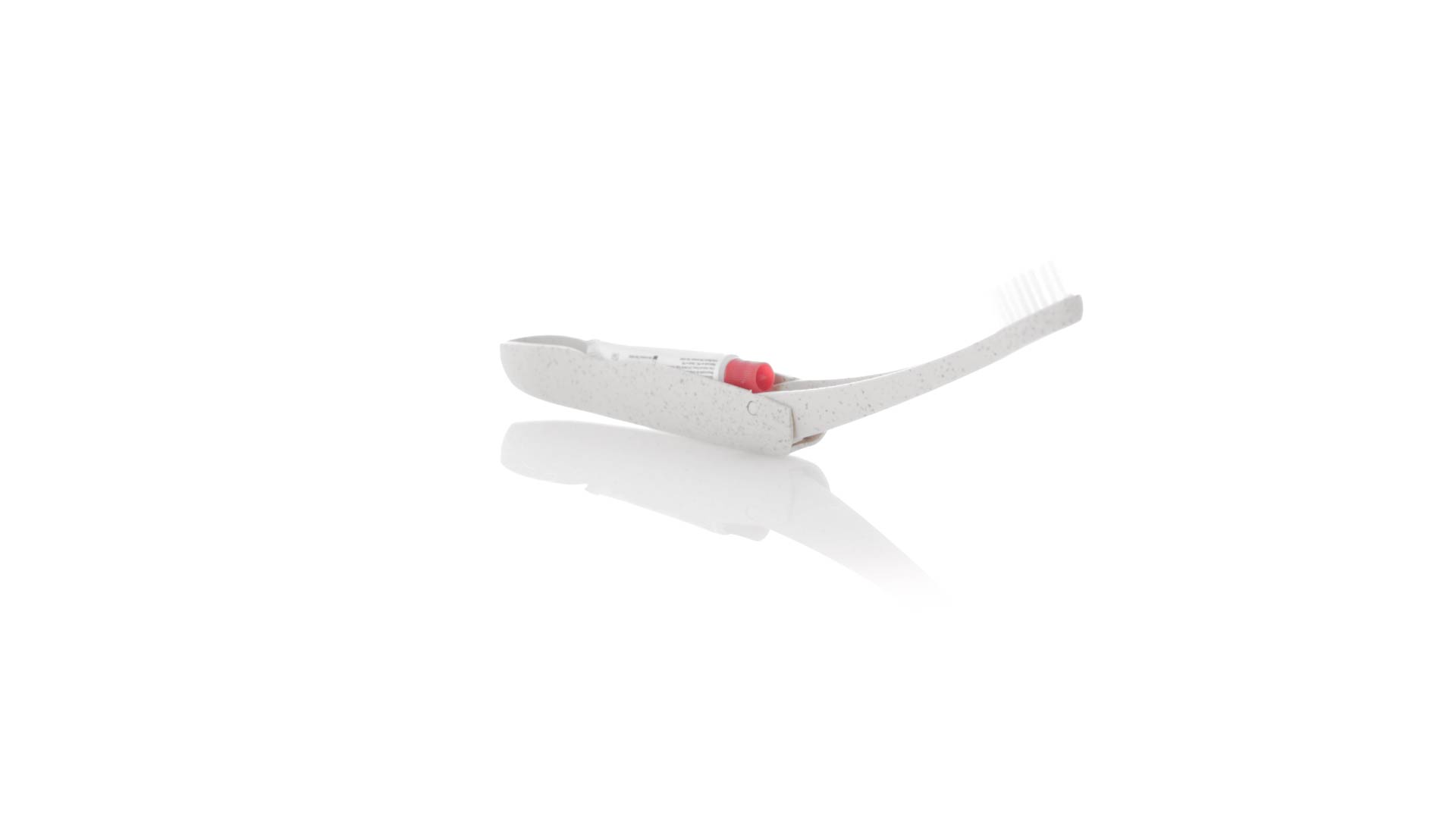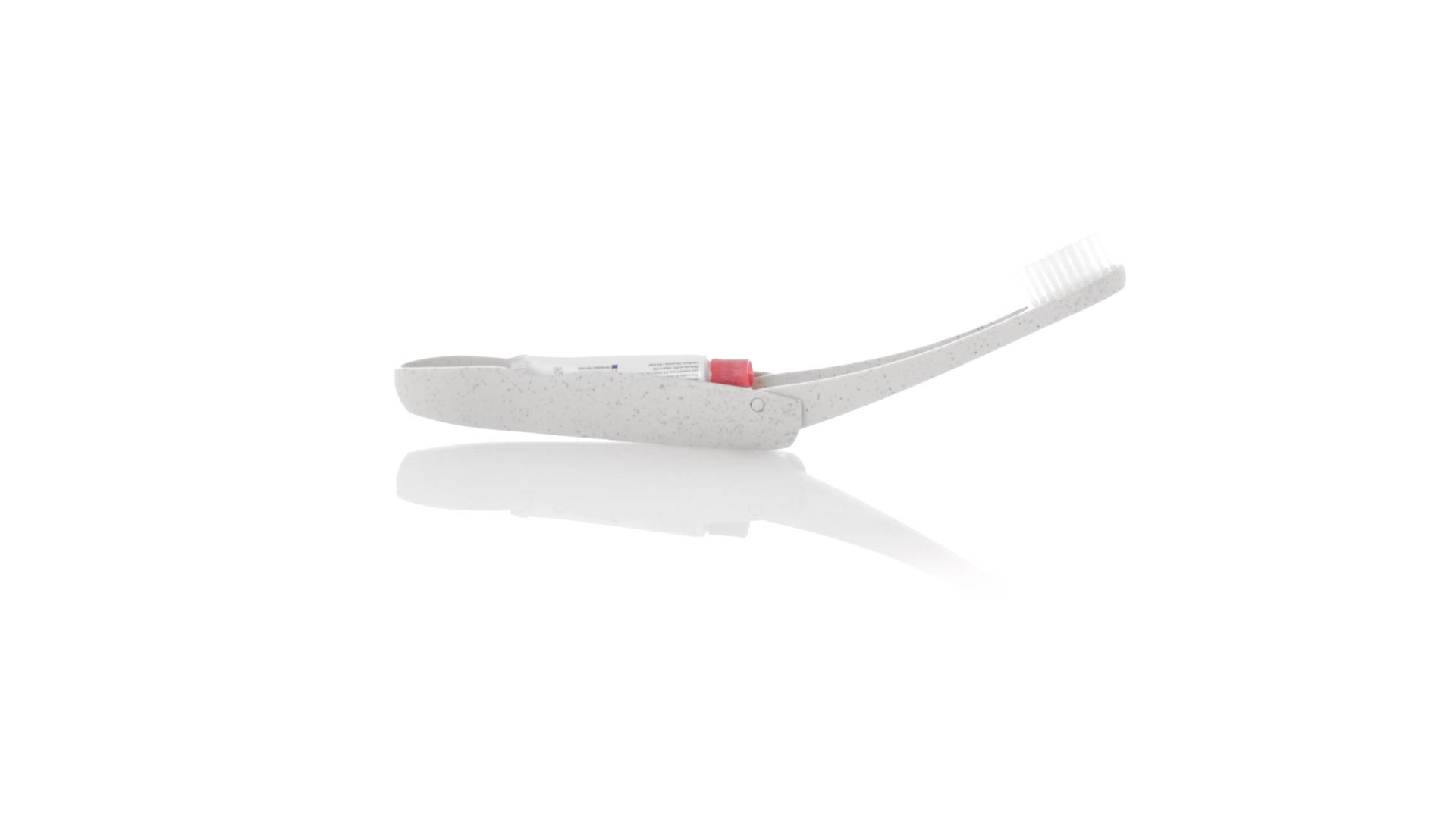Handliche faltbare Zahnbürste aus widerstandsfähigem Weizenstroh. Mit einem Fach zur Aufbewahrung einer Tube Zahnpasta 6g (inklusive).Weizenstroh fördert die Verwendung von natürlichen Rohstoffen und reduziert so den Schadstoffausstoss.