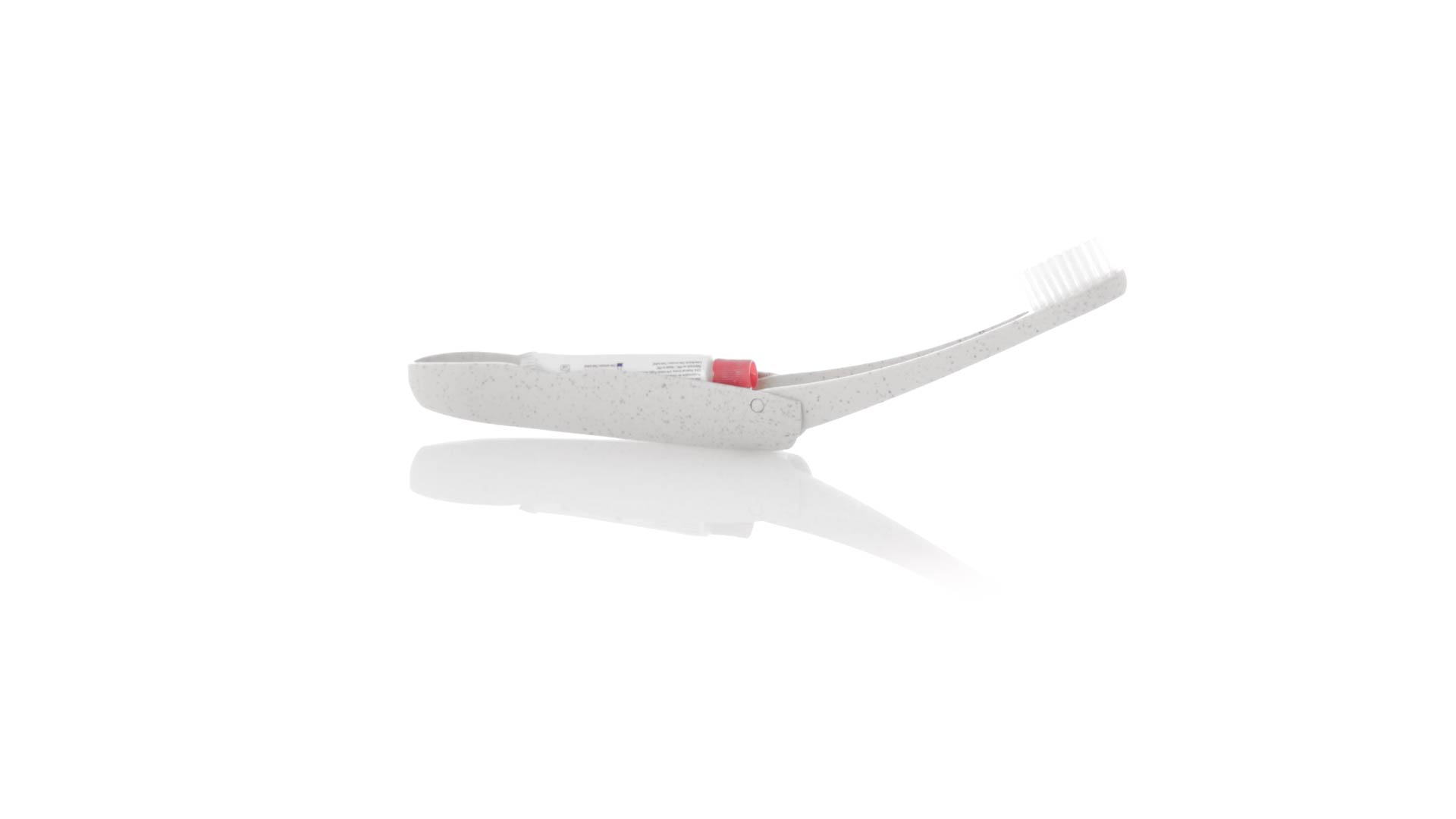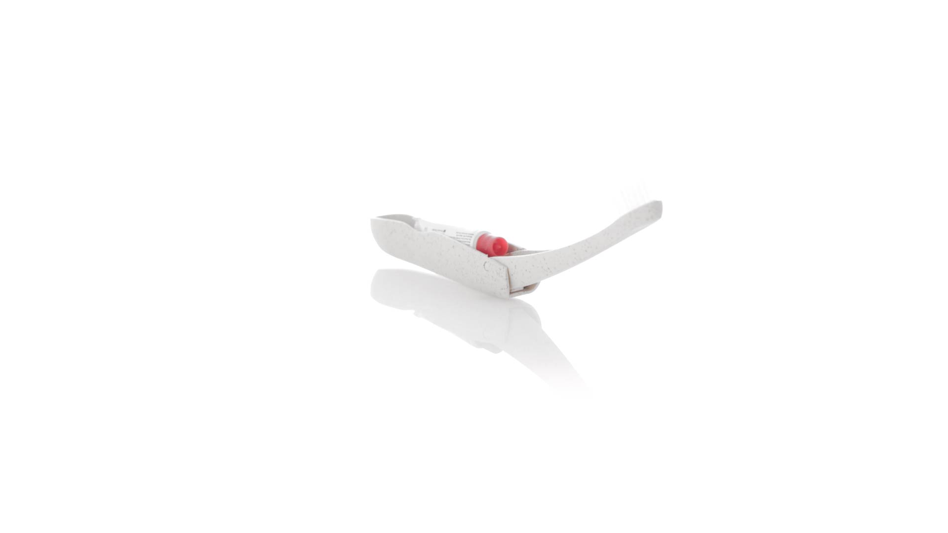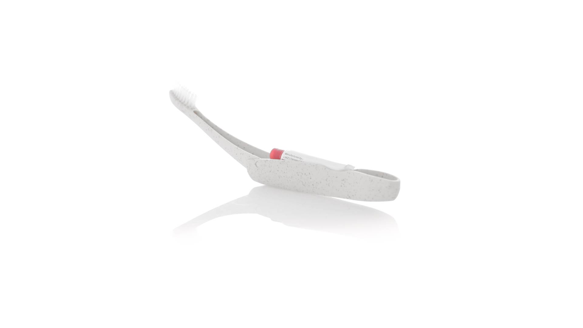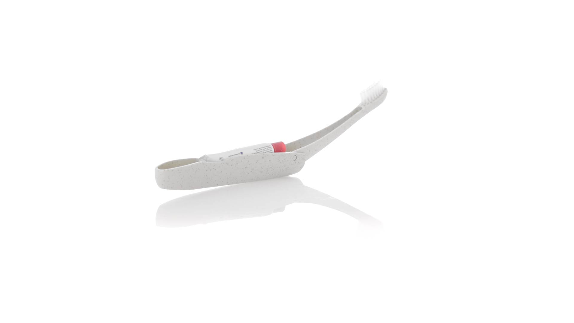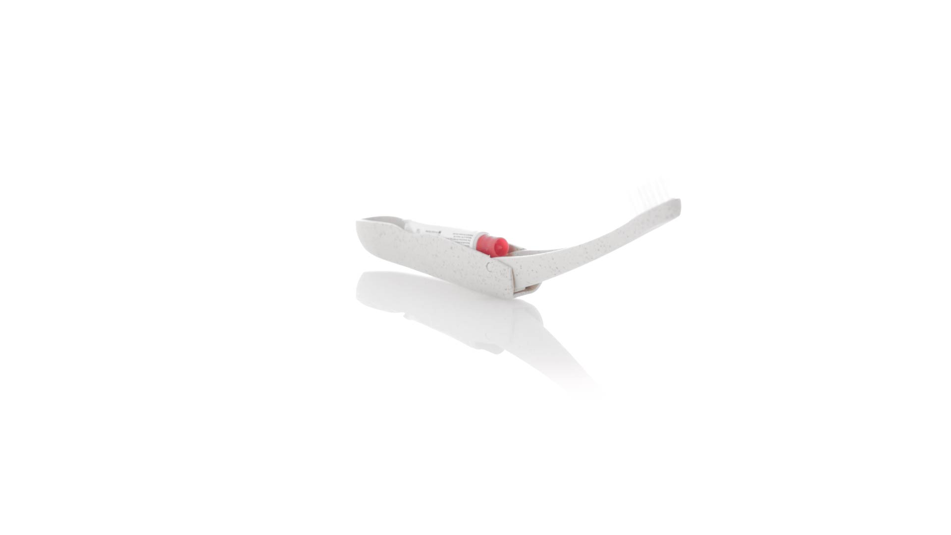 Handliche faltbare Zahnbürste aus widerstandsfähigem Weizenstroh. Mit einem Fach zur Aufbewahrung einer Tube Zahnpasta 6g (inklusive).Weizenstroh fördert die Verwendung von natürlichen Rohstoffen und reduziert so den Schadstoffausstoss.