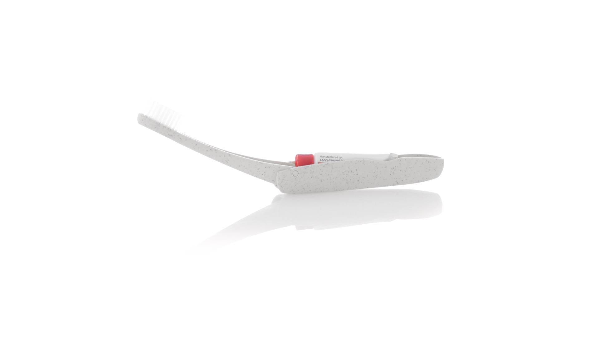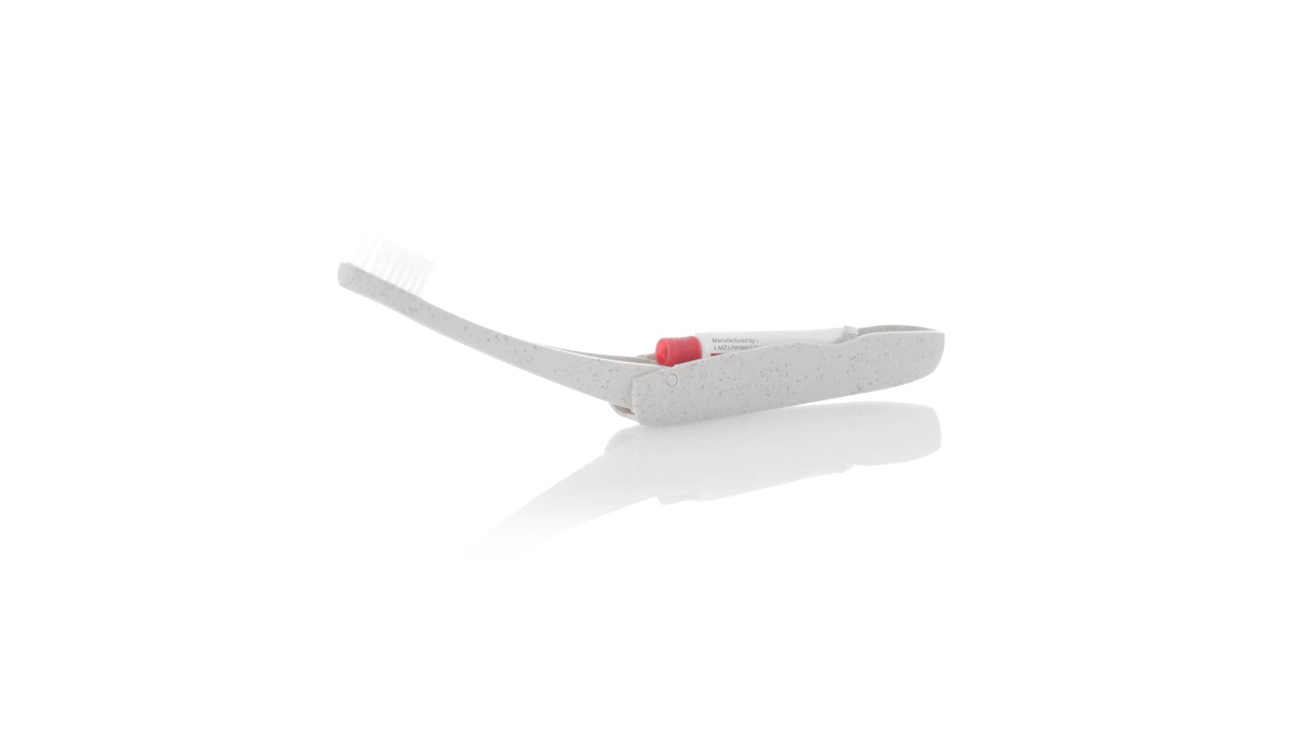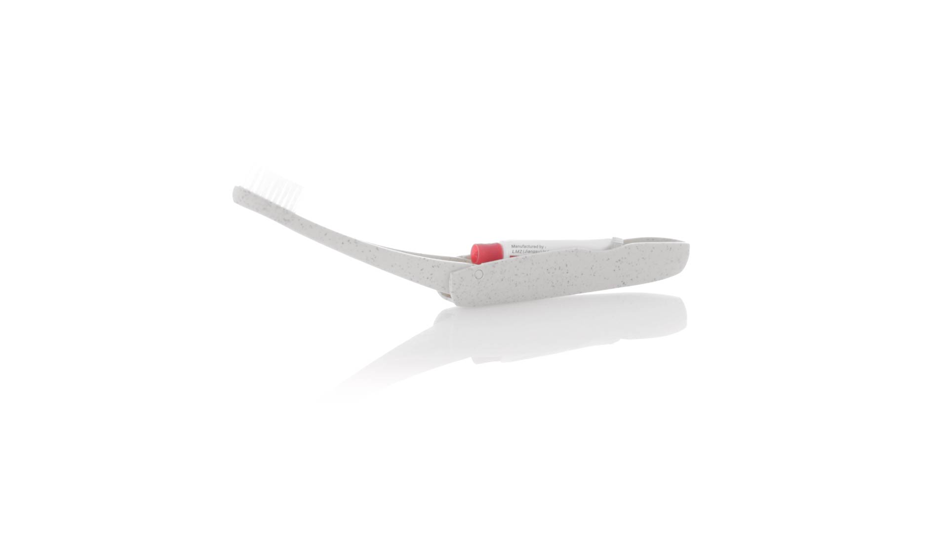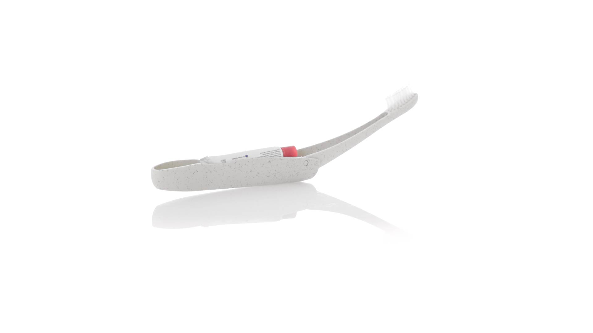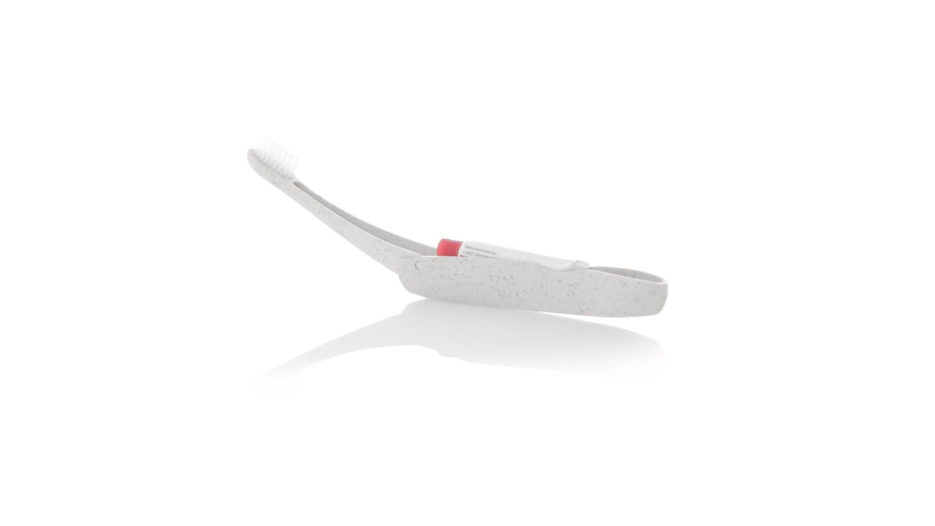 Handliche faltbare Zahnbürste aus widerstandsfähigem Weizenstroh. Mit einem Fach zur Aufbewahrung einer Tube Zahnpasta 6g (inklusive).Weizenstroh fördert die Verwendung von natürlichen Rohstoffen und reduziert so den Schadstoffausstoss.