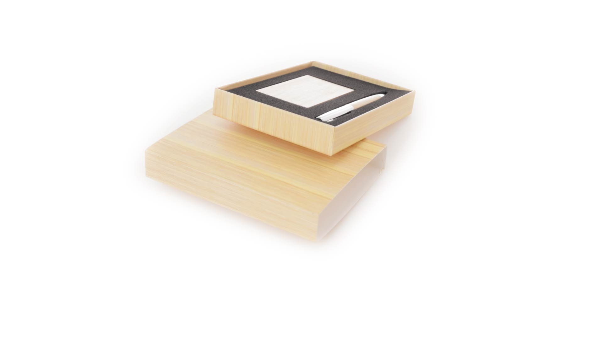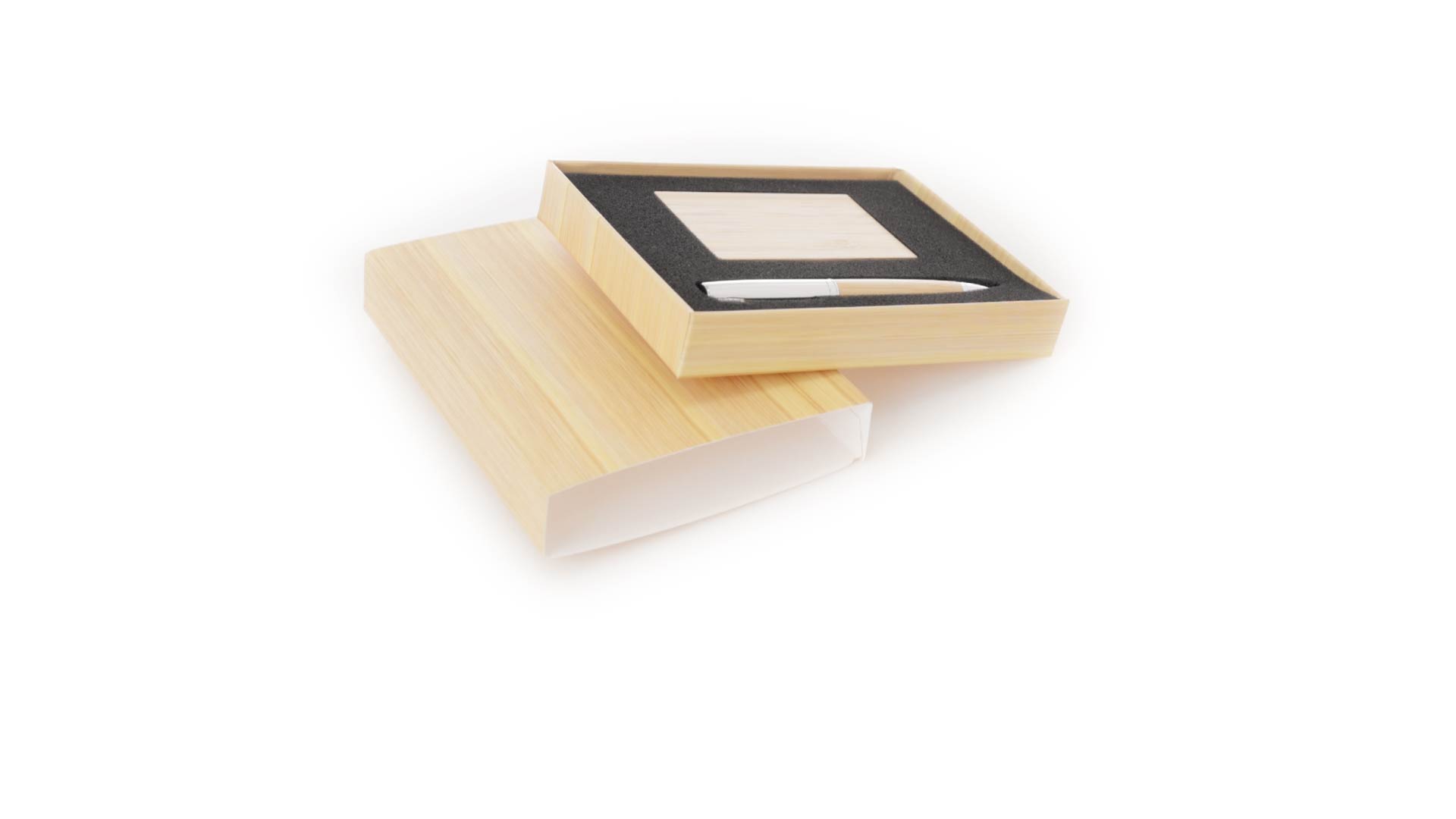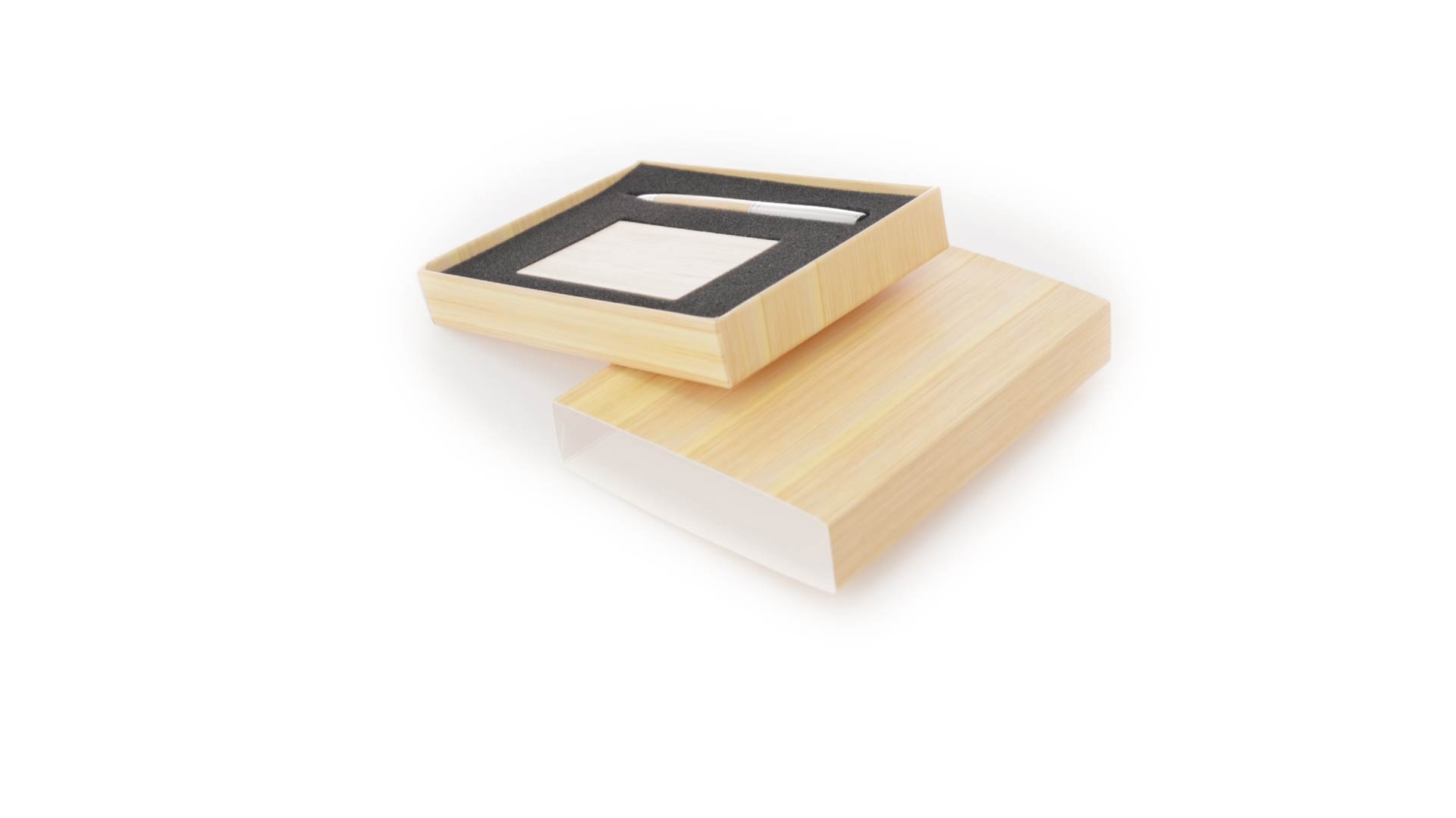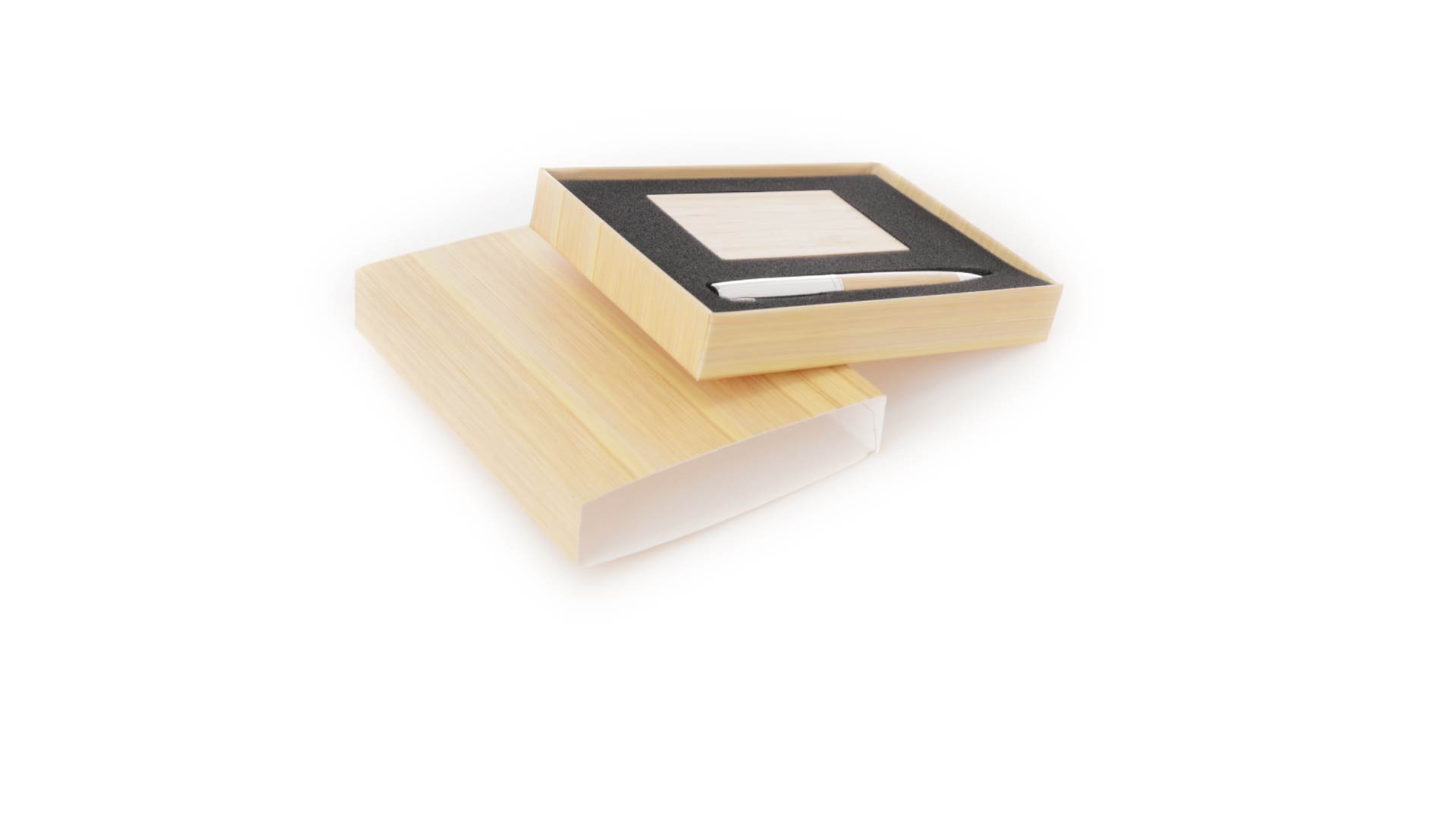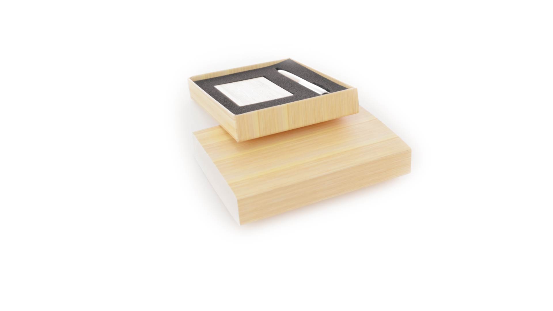 Edles Kugelschreiber- und Kartenetui-Set aus Bambus und Metall. Kugelschreiber mit glänzendem Metallschaft und weichem Bambusgriff, mit Drehmechanismus und blauer Tinte. Enthält einen hervorragenden Kartenhalter mit einem Fach aus glänzendem Metall und einem weichen Bambusbezug. Präsentiert in einer individuellen Bambus-Designbox.