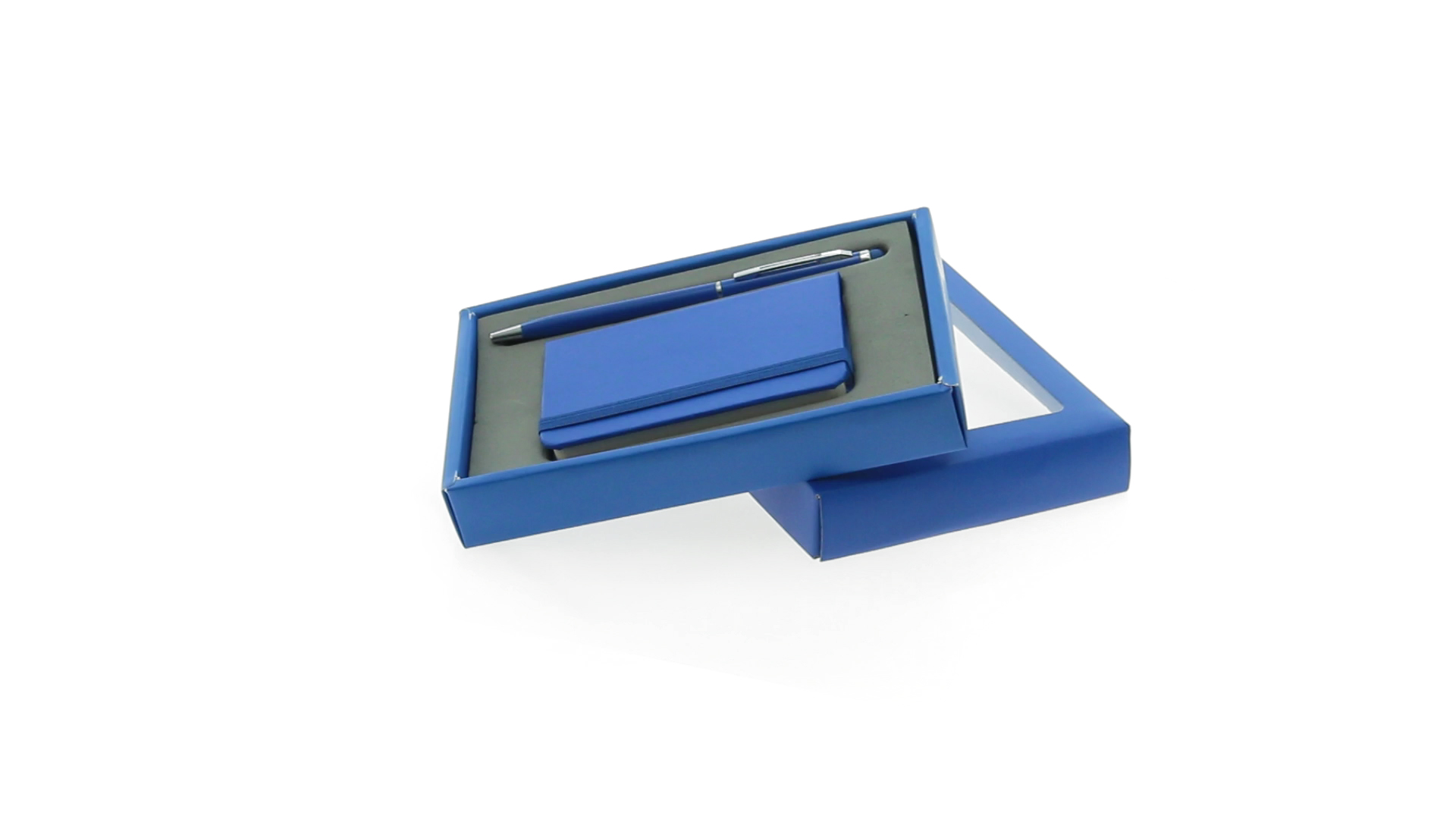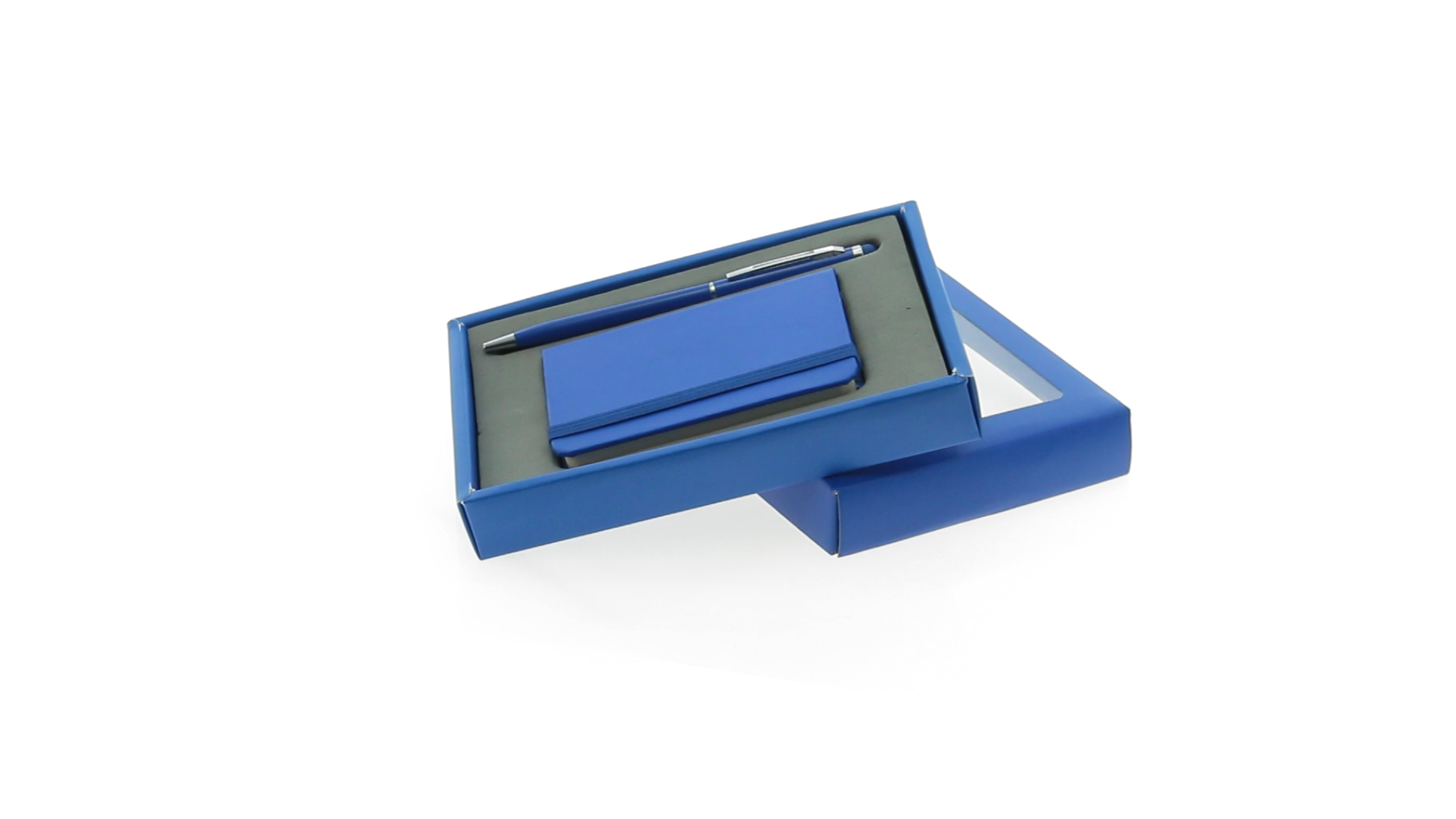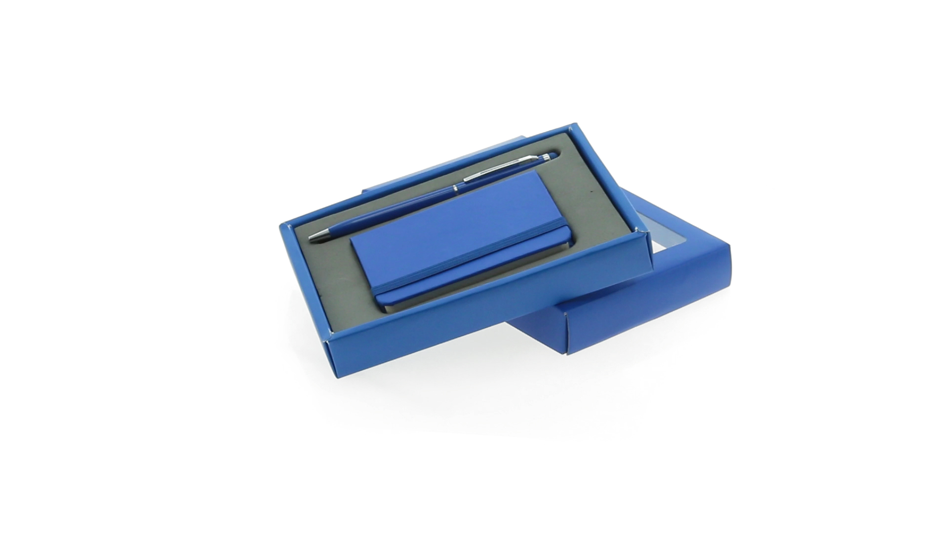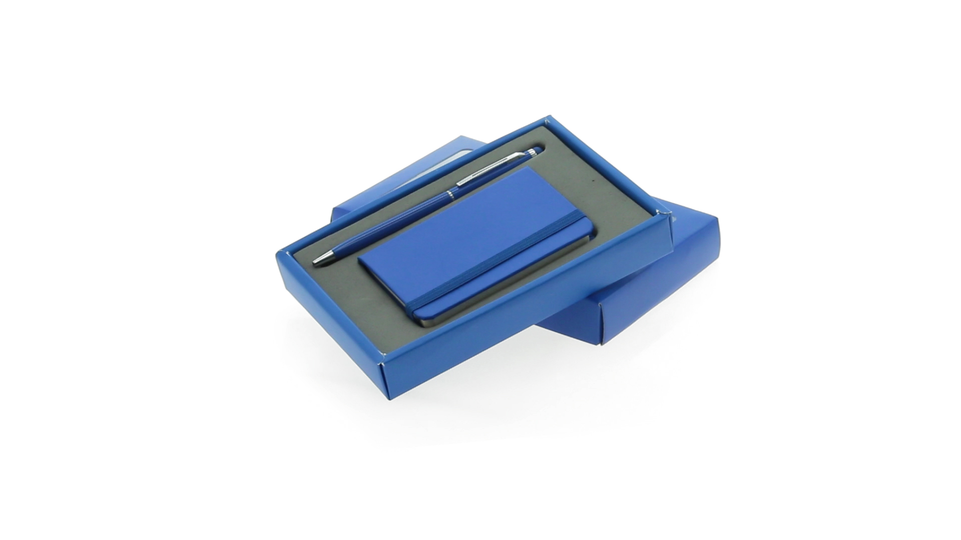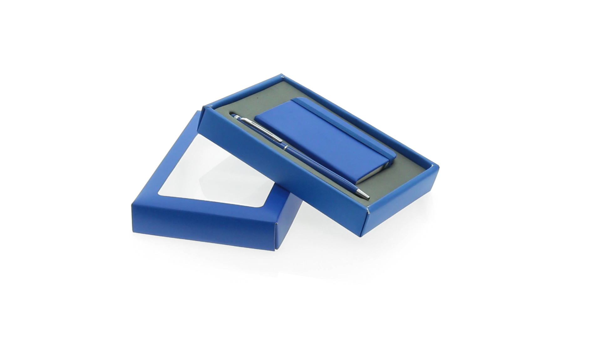 Set aus Notizblock mit Soft-Touch-Cover aus Kunstleder und Aluminium-Kugelschreiber mit farblich passendem Stylus. Mit 80 Blättern, Gummibandverschluss und farblich passendem Lesezeichenband. Präsentiert in einer eleganten Schachtel aus Karton in passender Farbe, mit Fenster und weichem Schaumstoff mit Stanzung im Inneren. Kugelschreiber mit blauer Tinte.