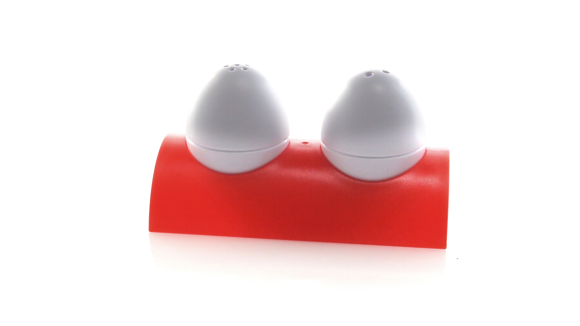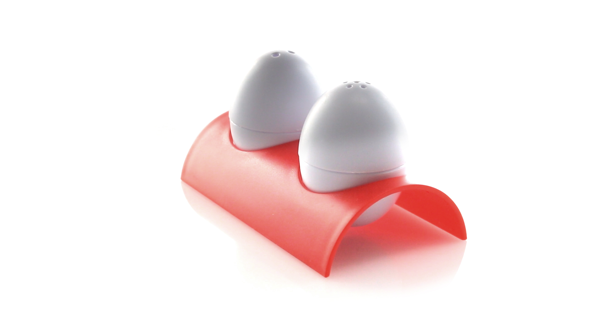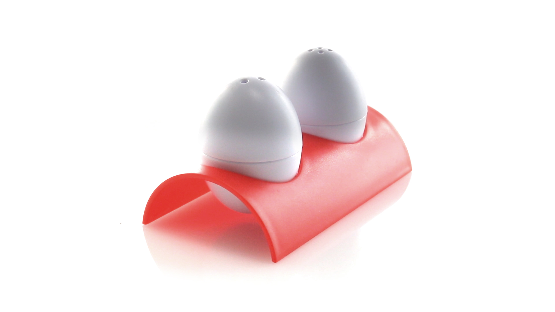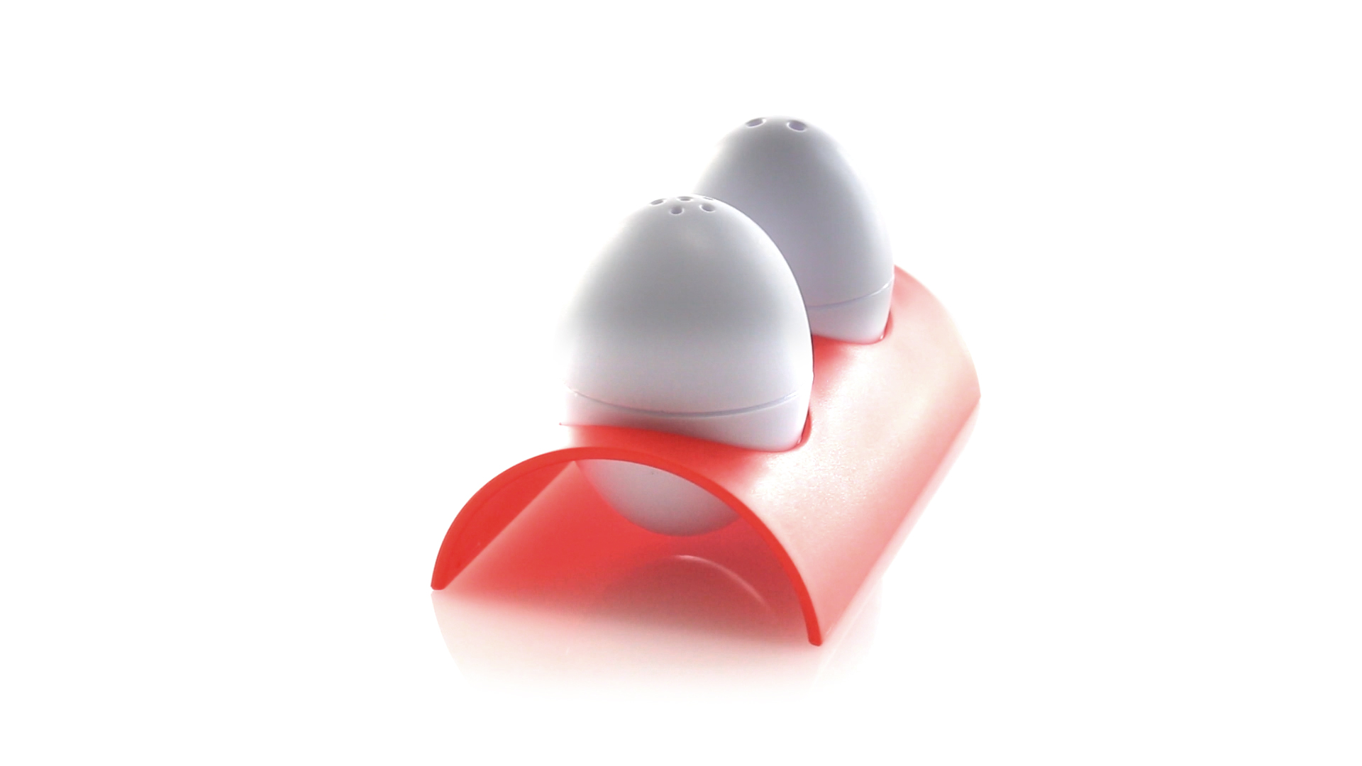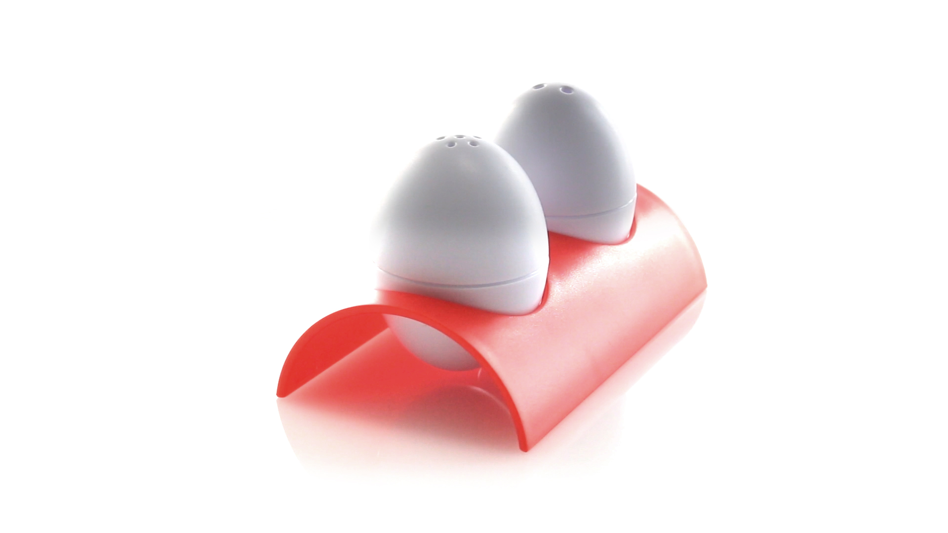 Originelles Set aus Salz- und Pfefferstreuer mit Ständer in verschiedenen Farbkombinationen.
