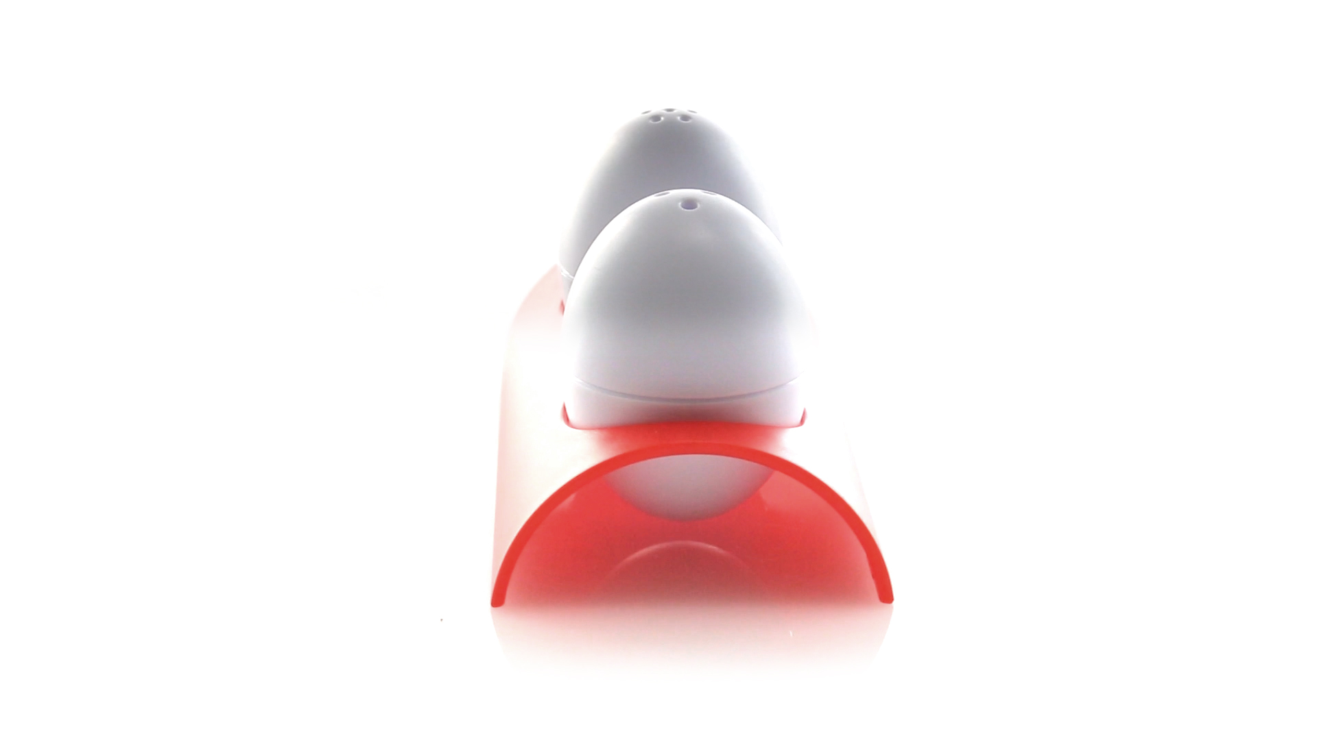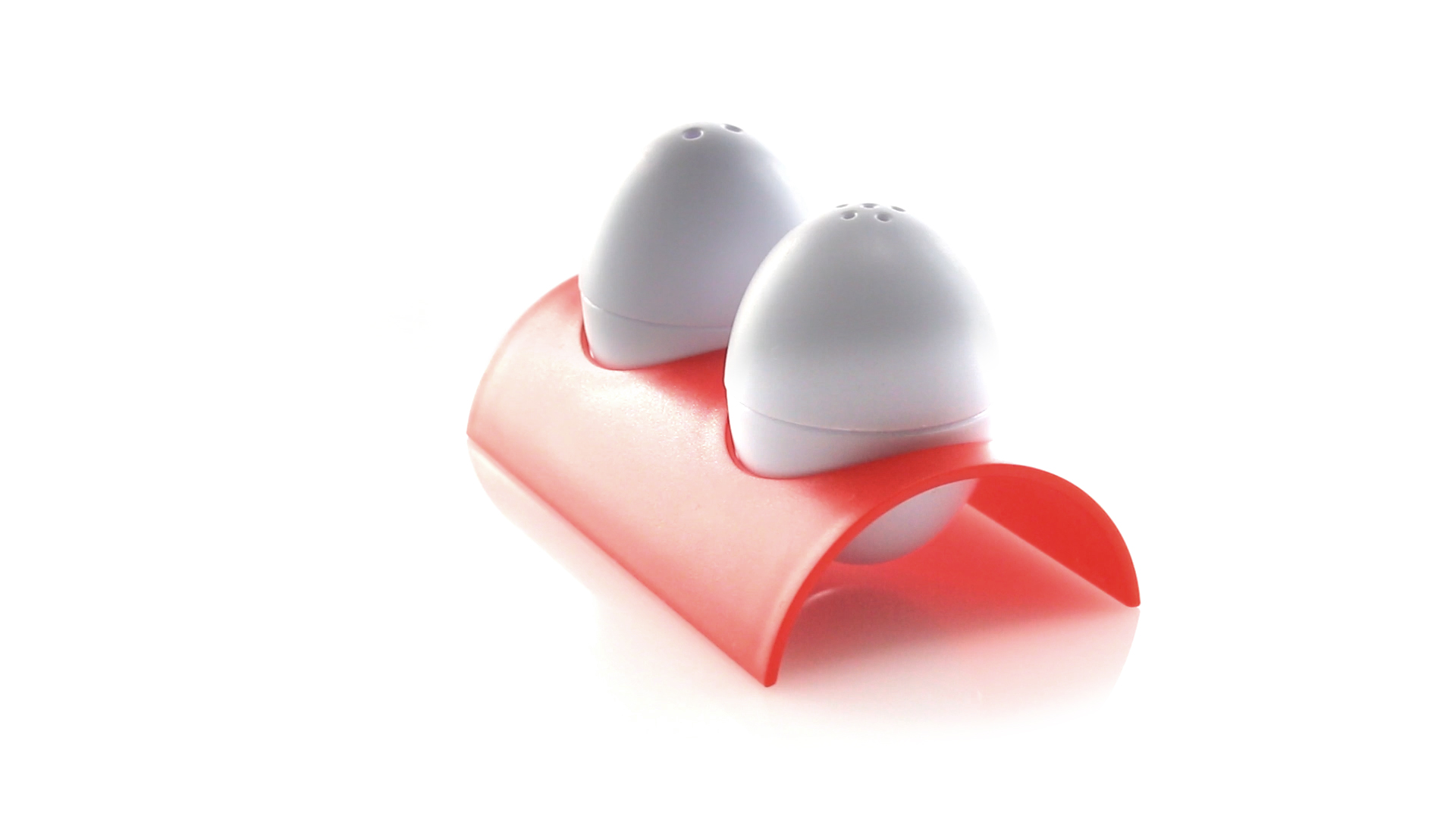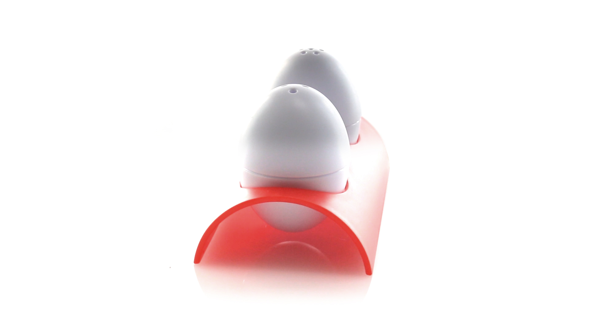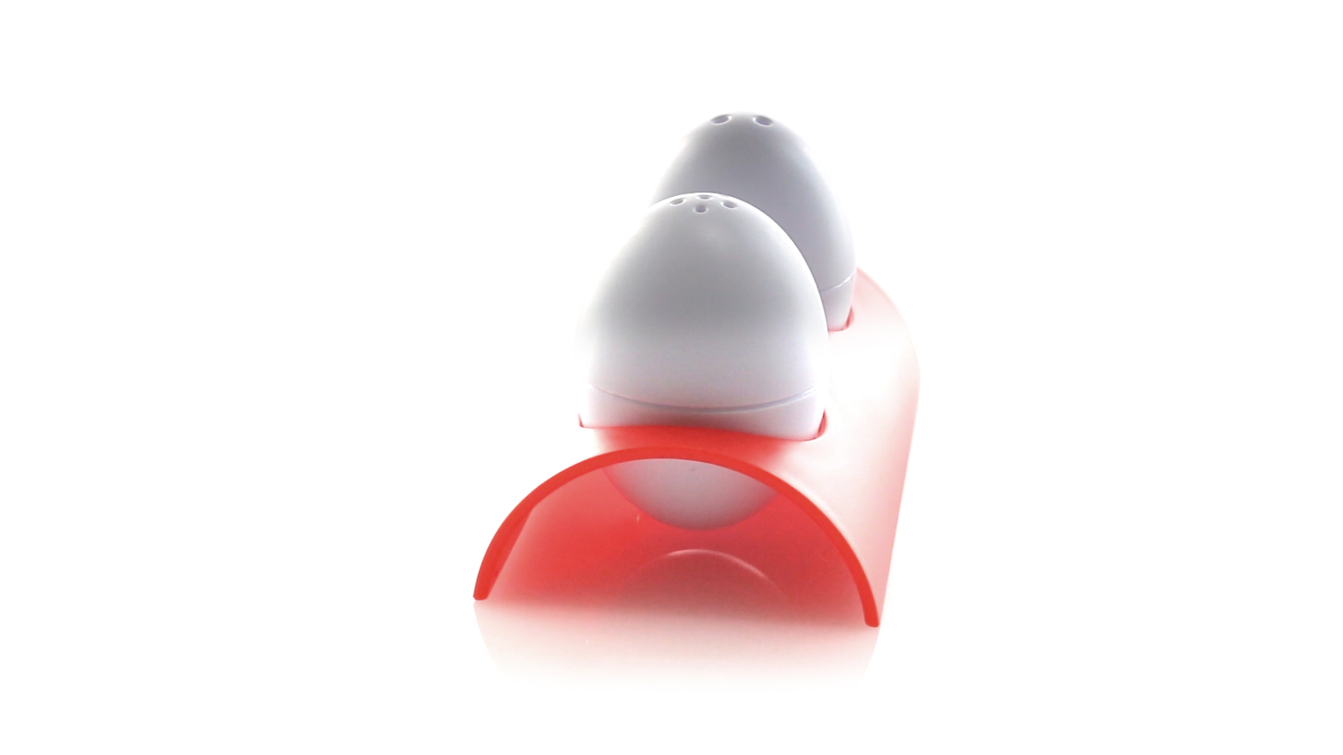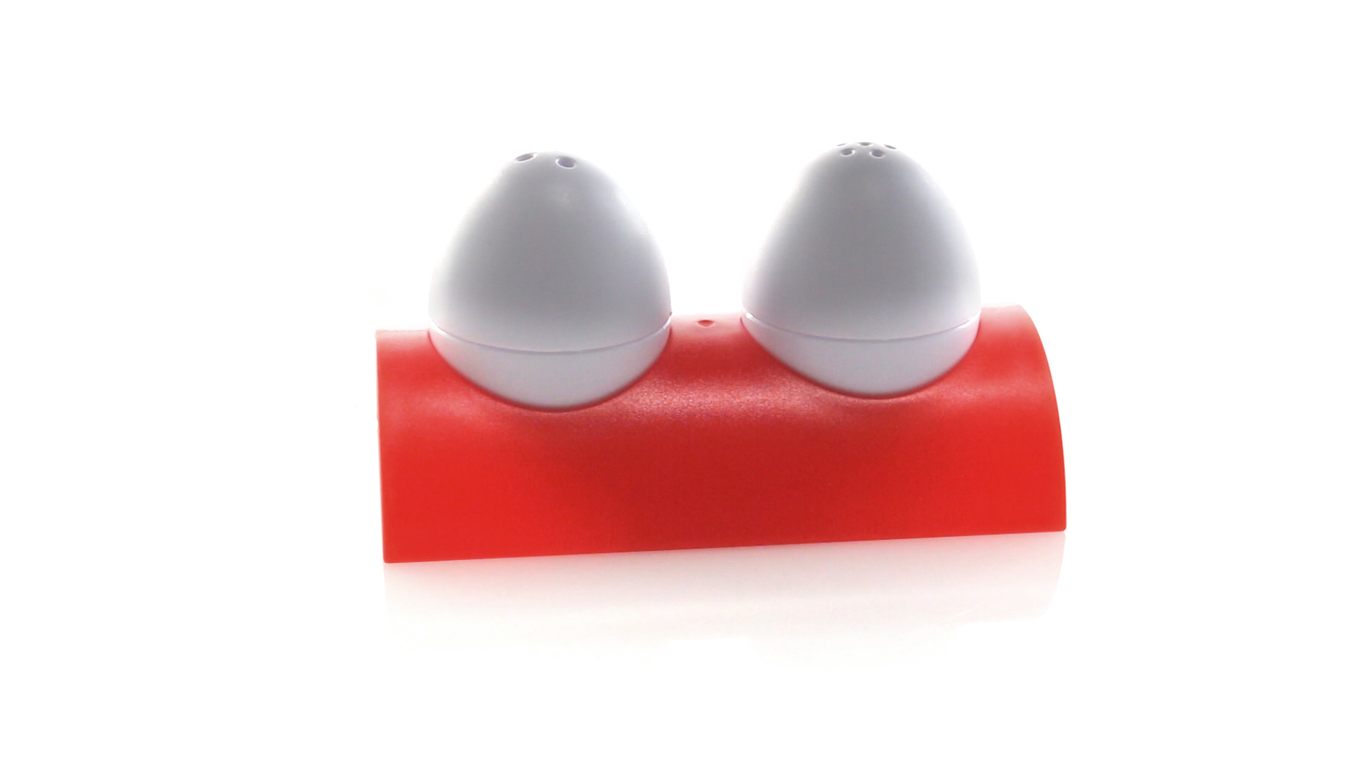 Originelles Set aus Salz- und Pfefferstreuer mit Ständer in verschiedenen Farbkombinationen.