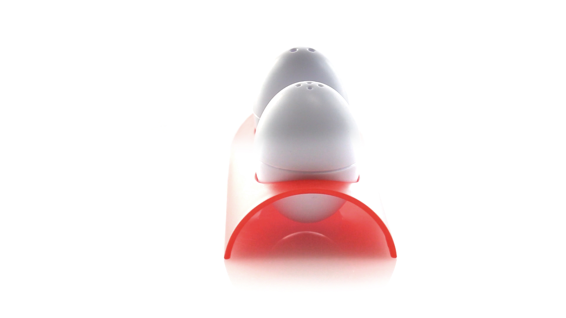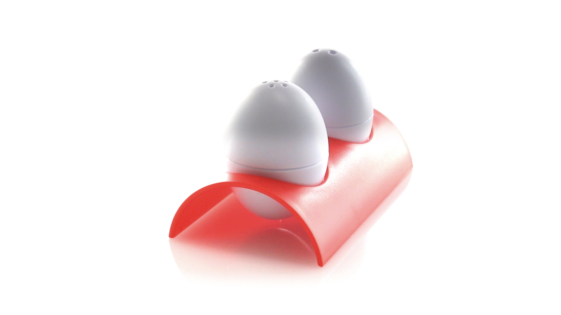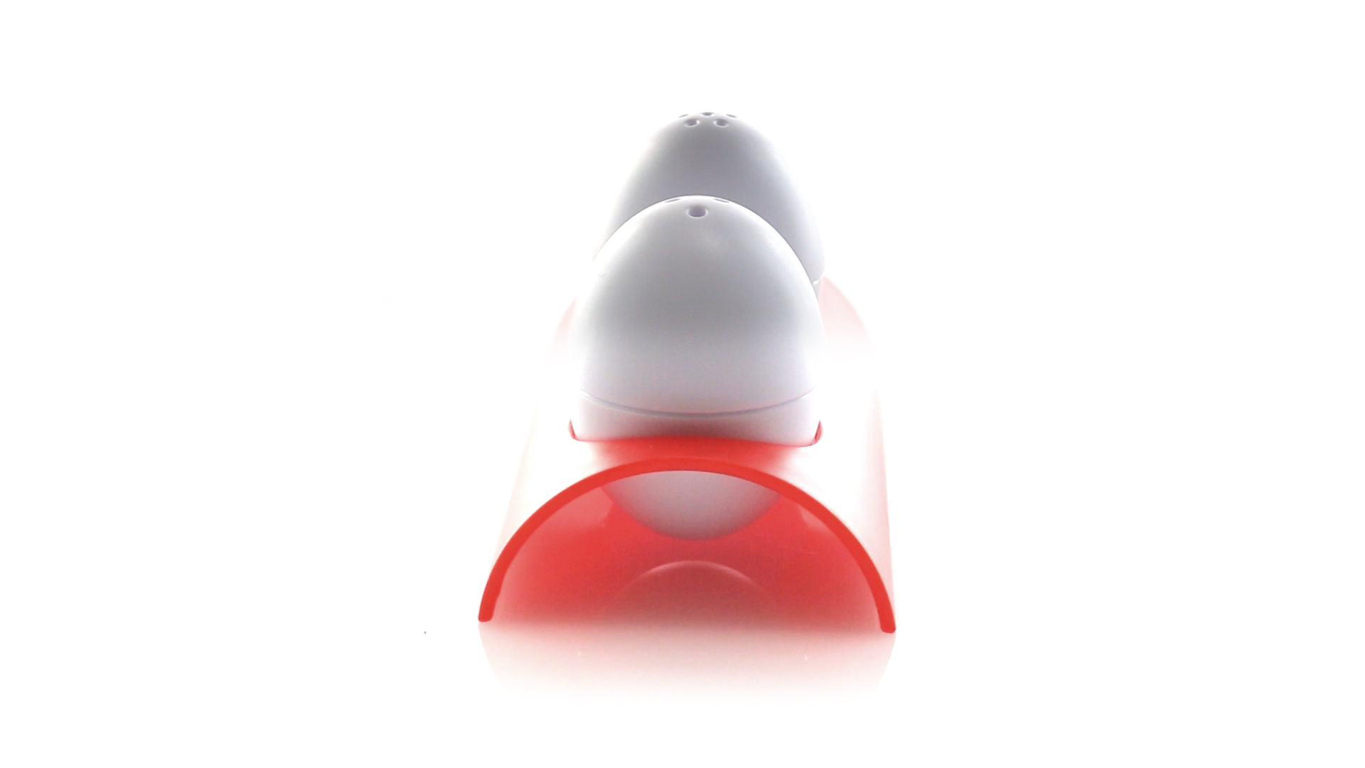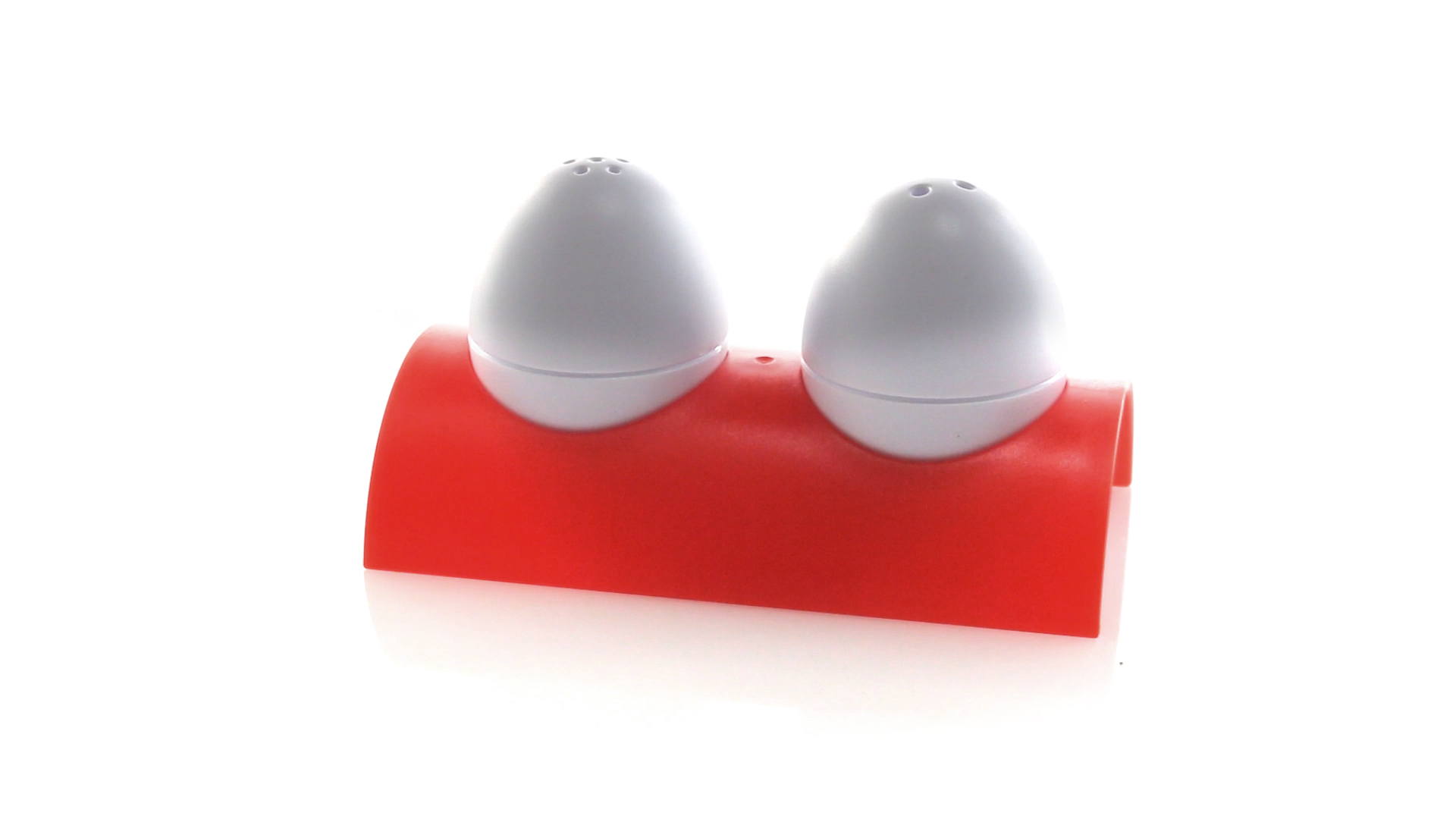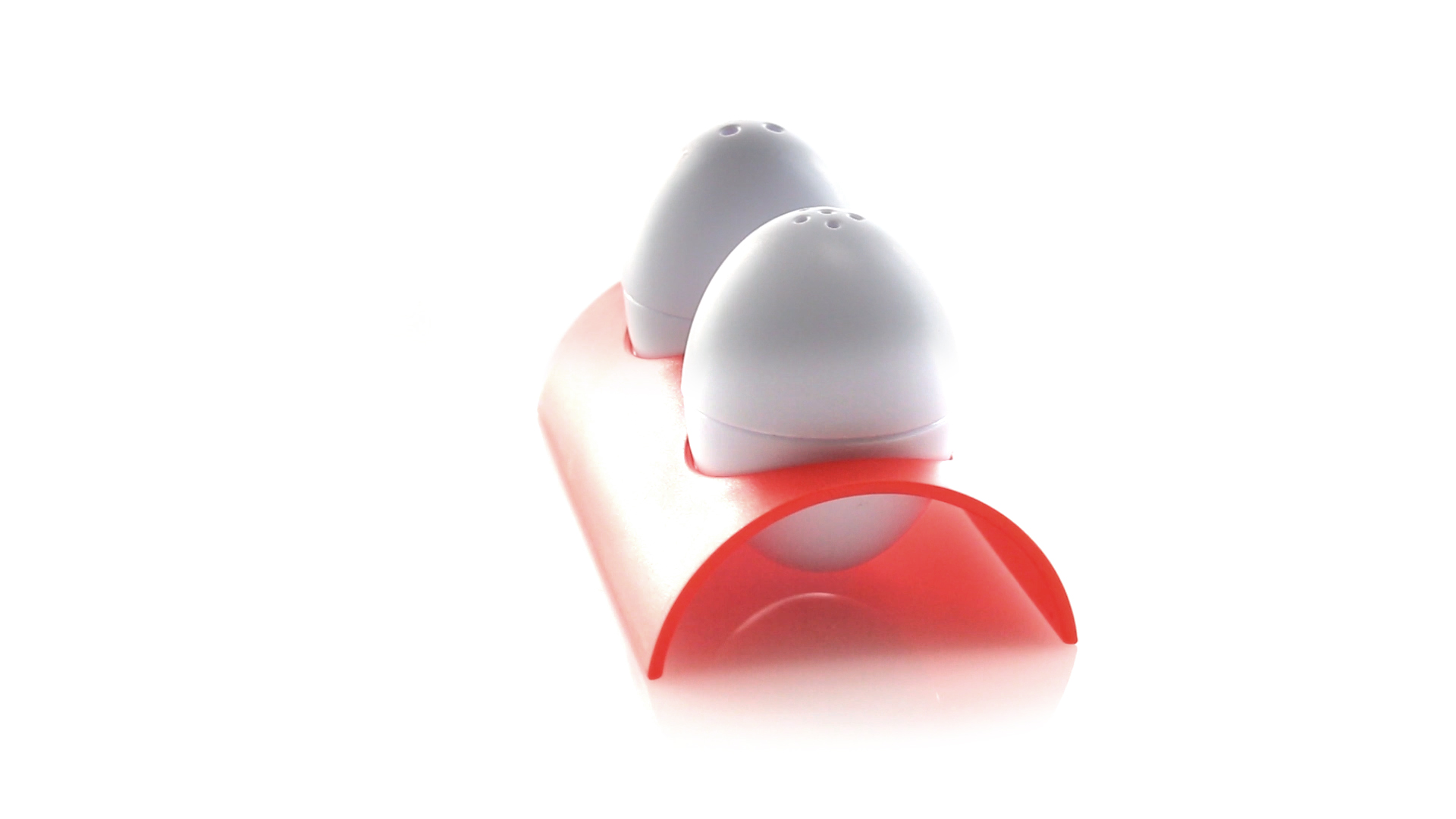 Originelles Set aus Salz- und Pfefferstreuer mit Ständer in verschiedenen Farbkombinationen.