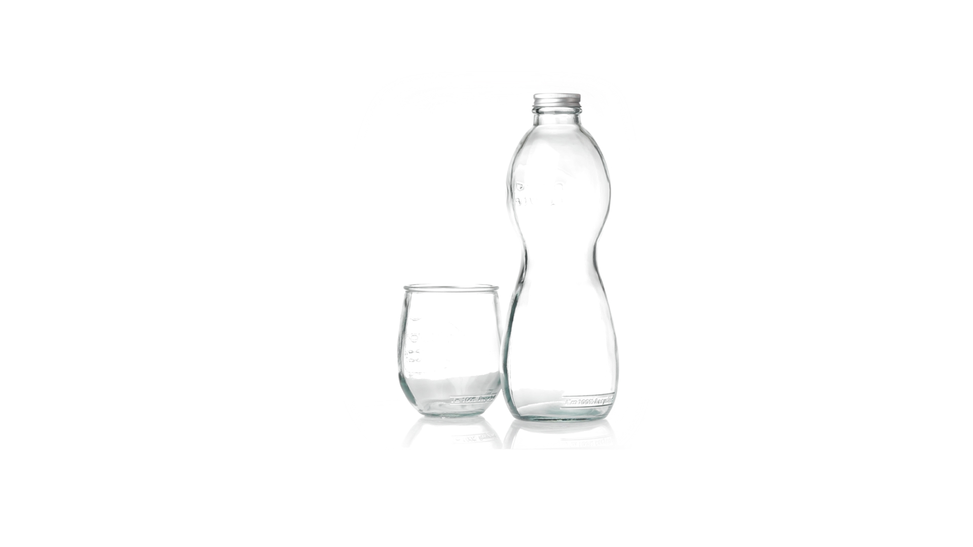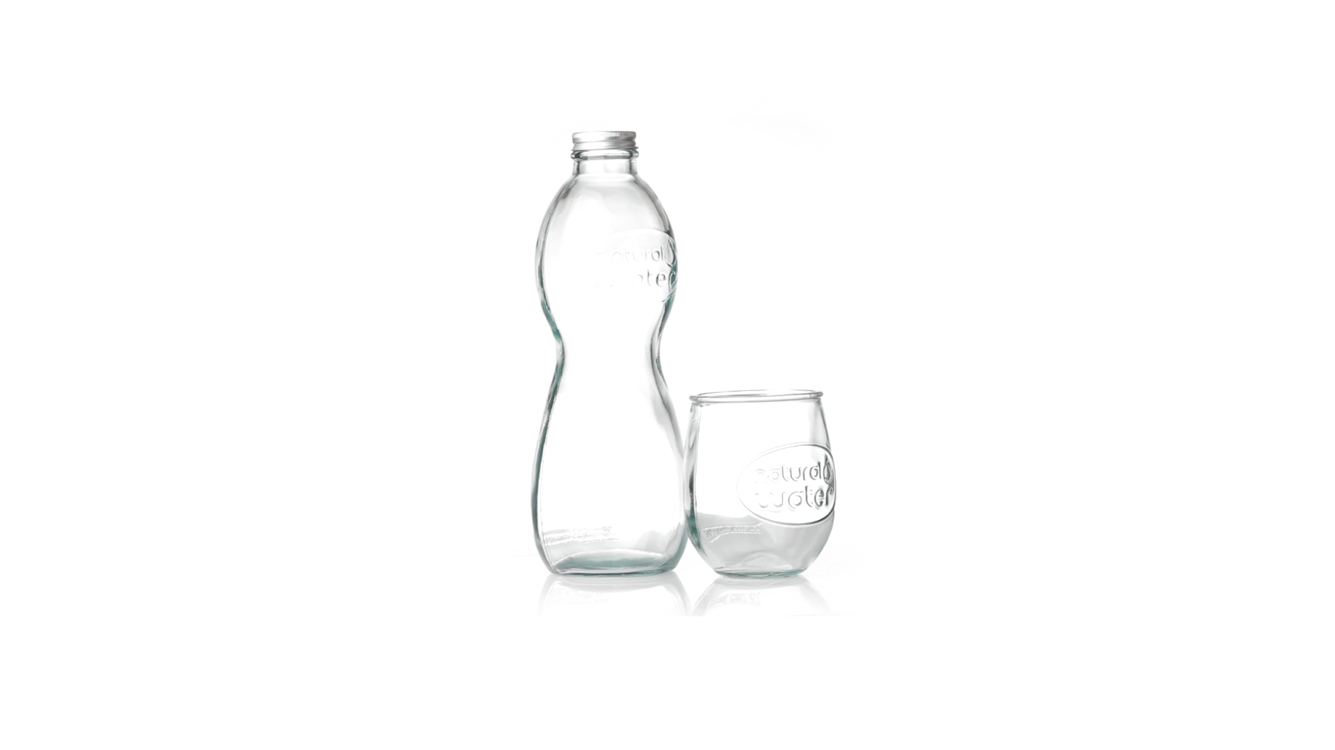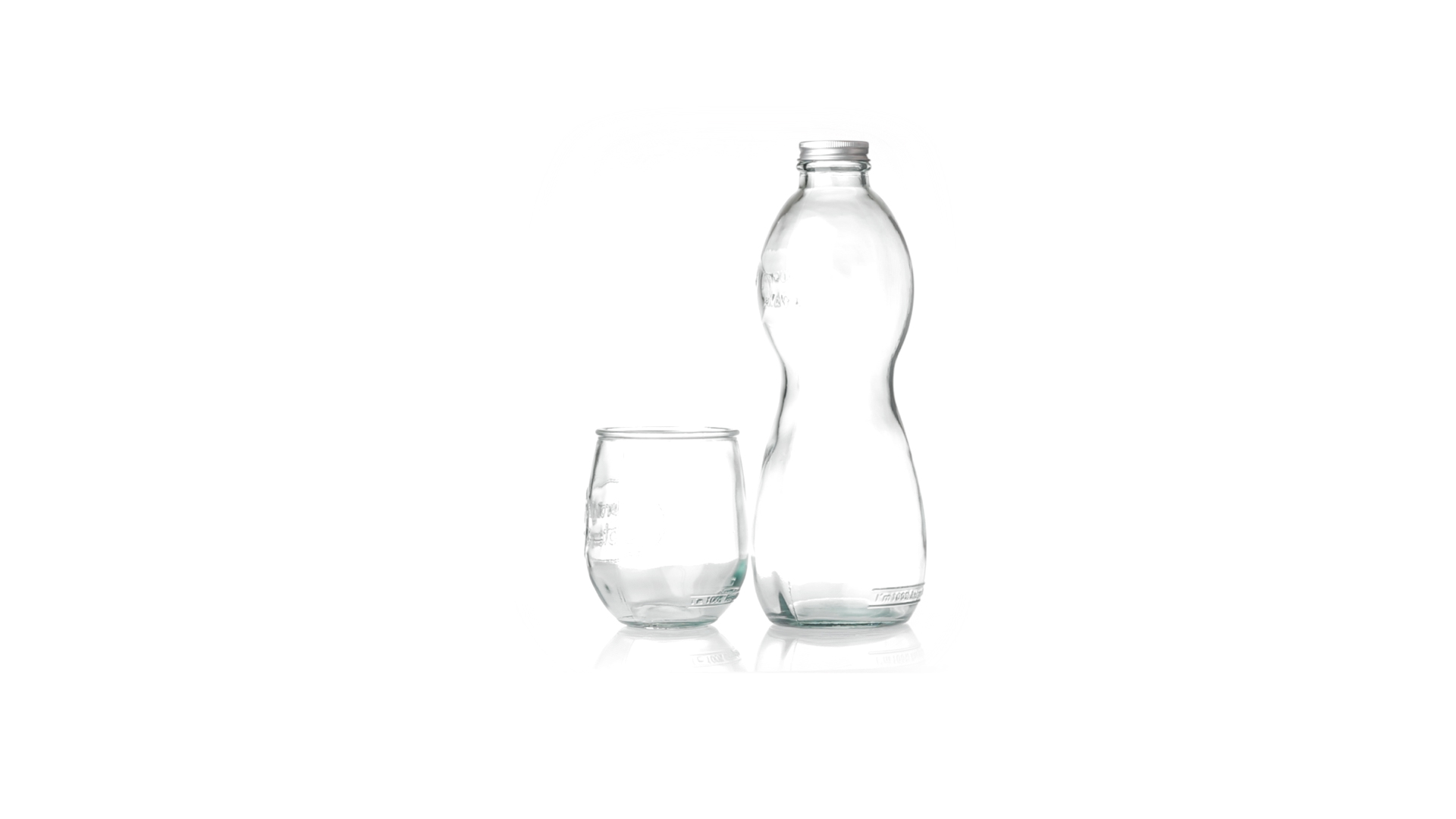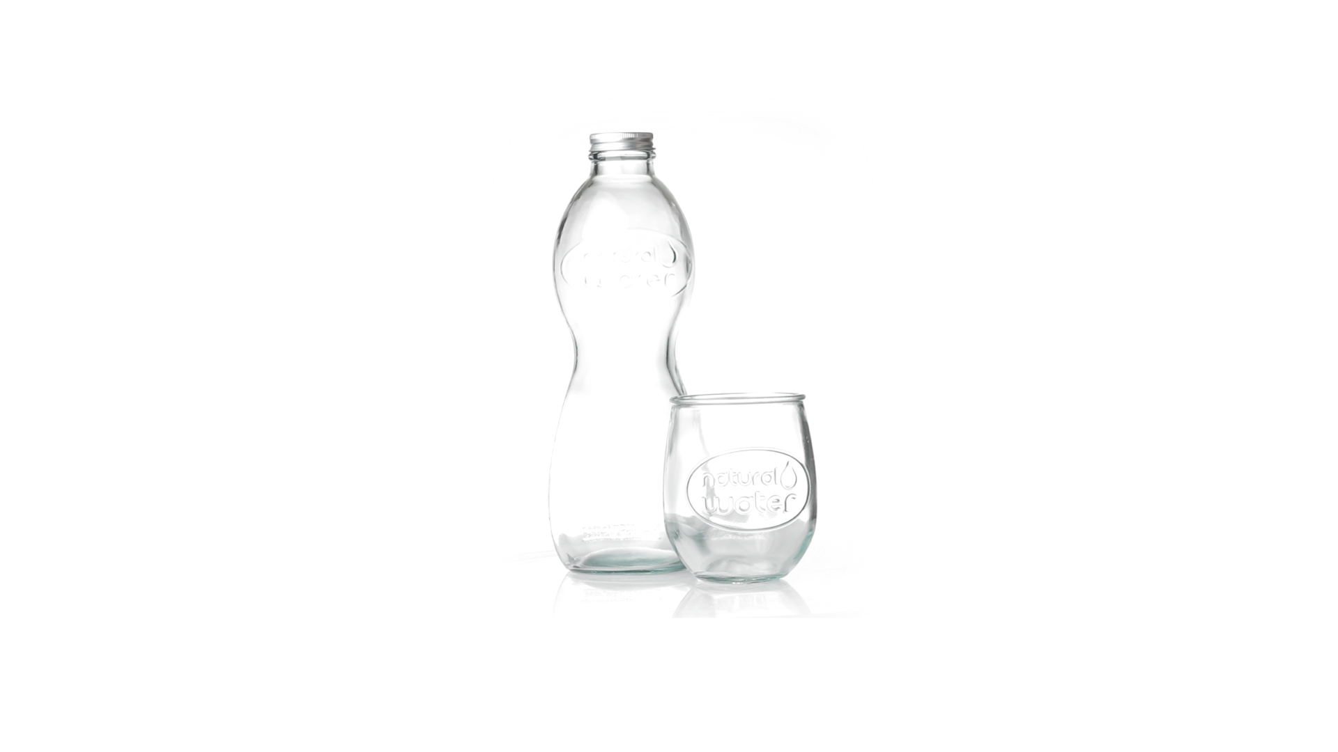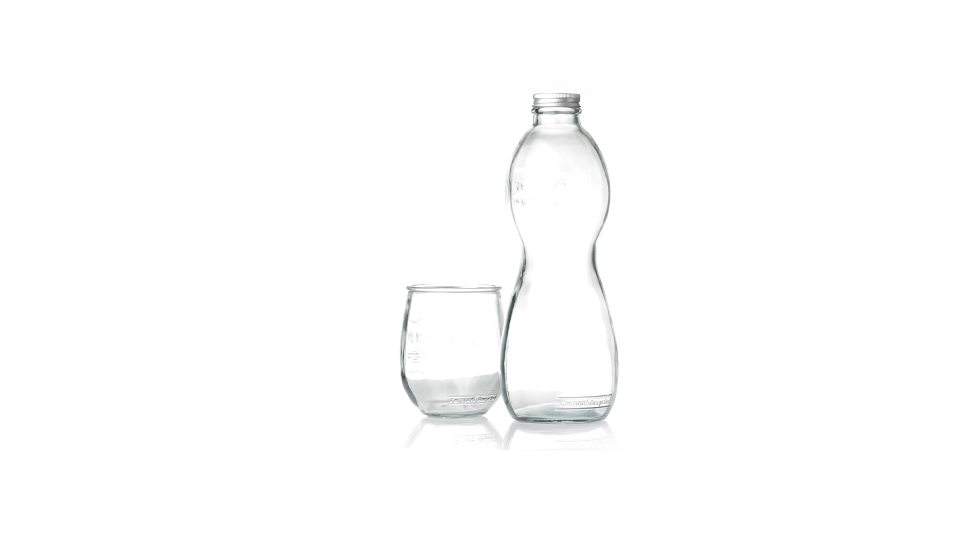 Linie "Natur" Set aus 2 Gläsern mit 400 ml und einer Flasche mit 1l Fassungsvermögen. Hergestellt in Europa aus recyceltem Glas mit GRS-Zertifizierung (Global Recycled Standard) bestätigt die recycelte Herkunft des Materials bei der Herstellung des Produkts verwendet. Flasche mit Schraubdeckel aus Metall. Das Set wird in einer Schachtel aus recyceltem Karton mit Sichtfenster präsentiert.