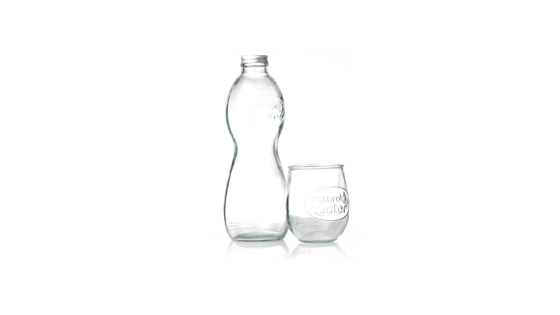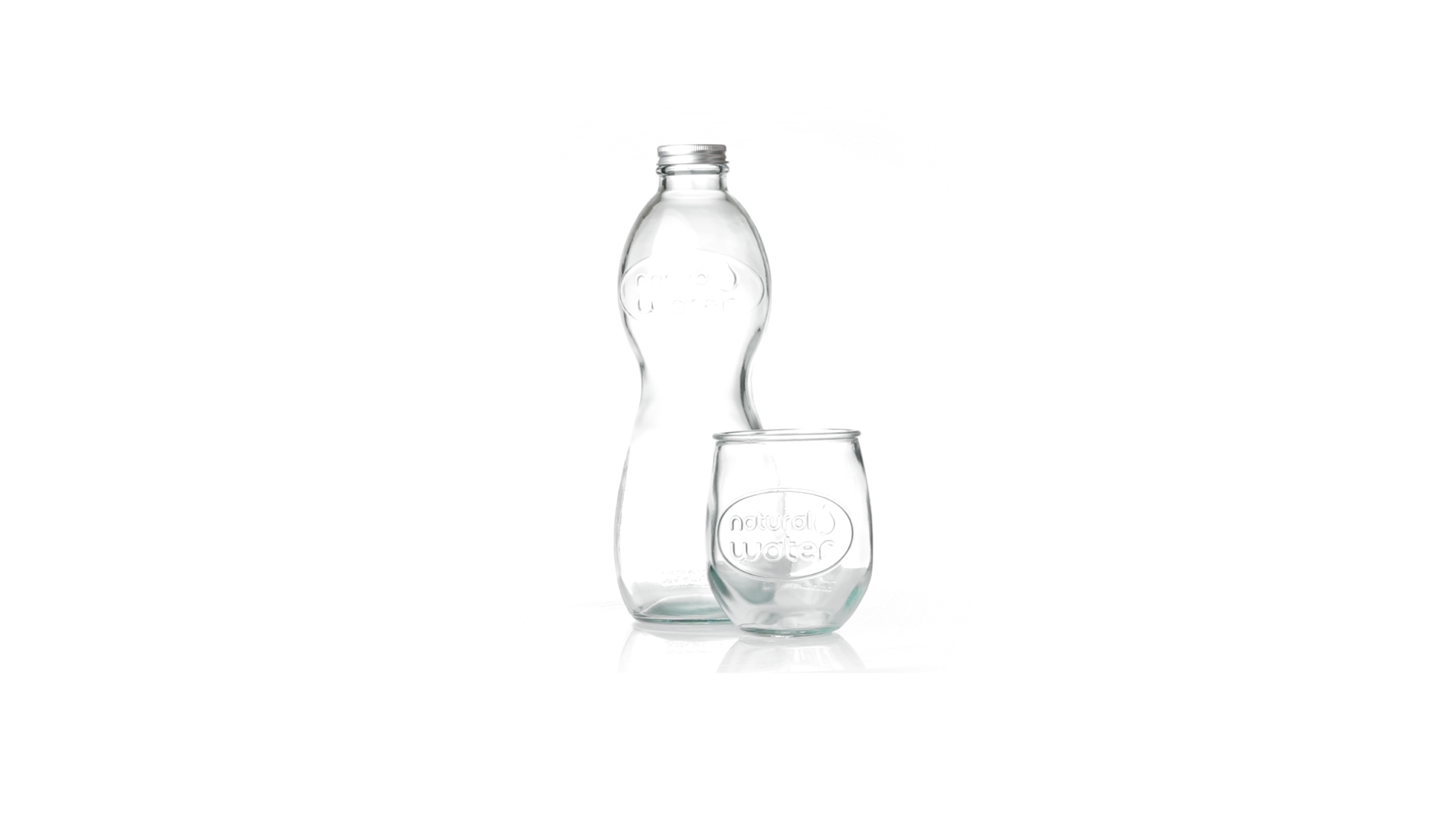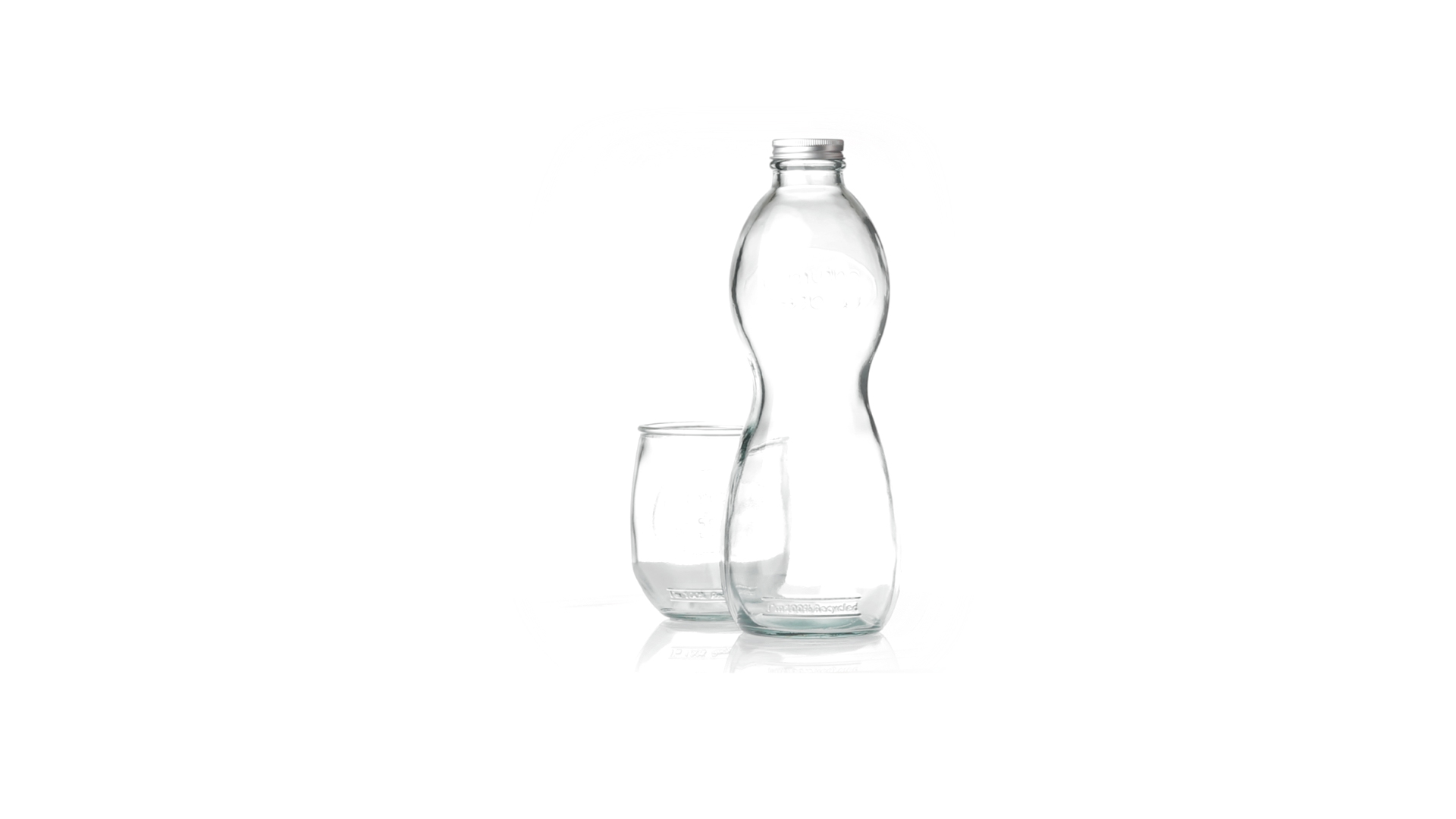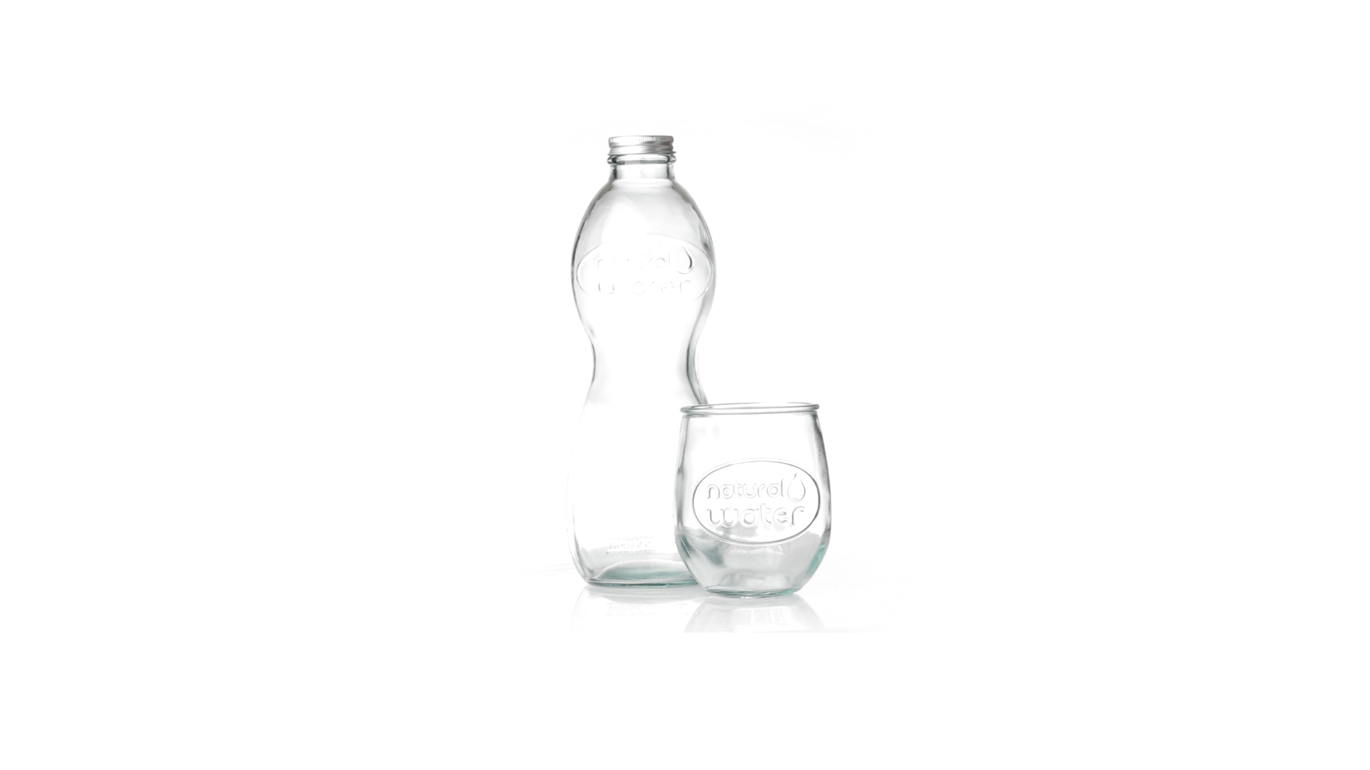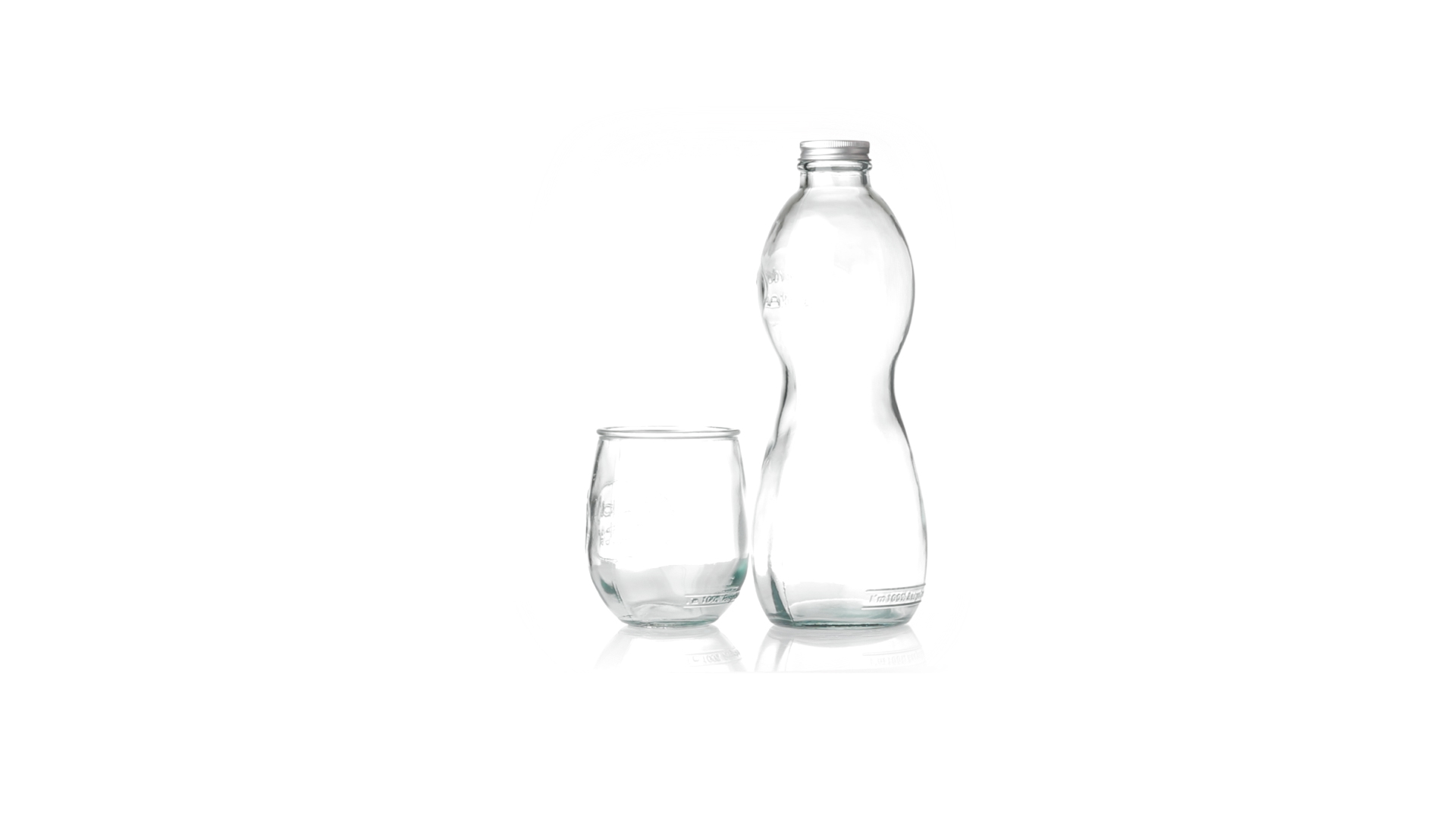 Linie "Natur" Set aus 2 Gläsern mit 400 ml und einer Flasche mit 1l Fassungsvermögen. Hergestellt in Europa aus recyceltem Glas mit GRS-Zertifizierung (Global Recycled Standard) bestätigt die recycelte Herkunft des Materials bei der Herstellung des Produkts verwendet. Flasche mit Schraubdeckel aus Metall. Das Set wird in einer Schachtel aus recyceltem Karton mit Sichtfenster präsentiert.