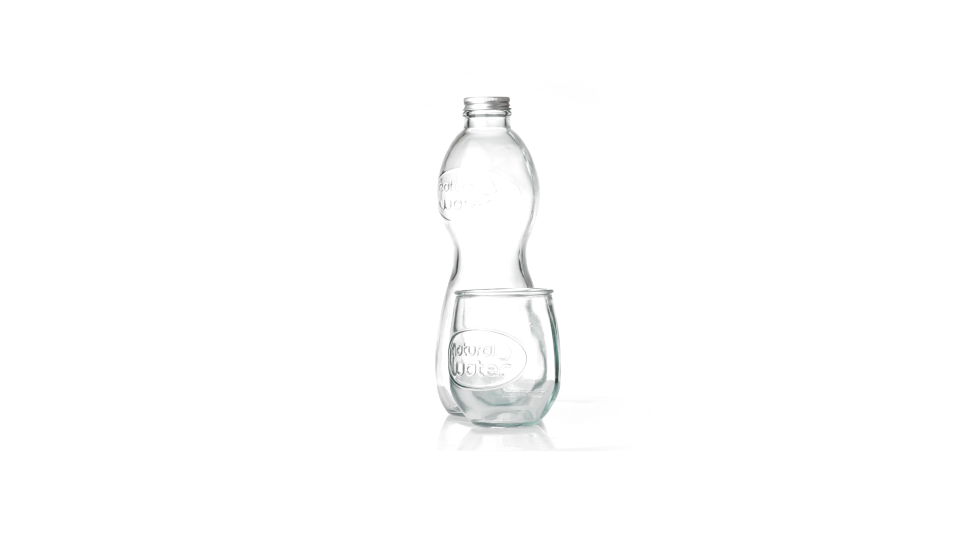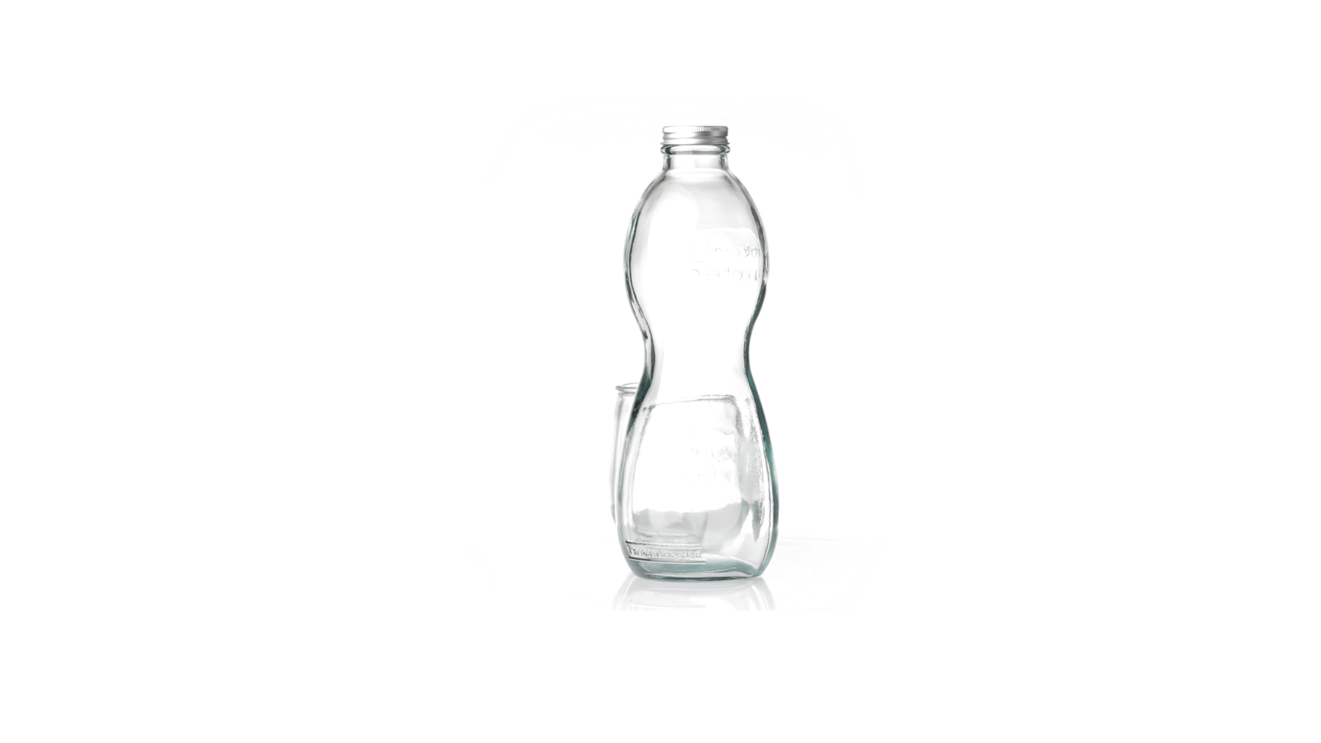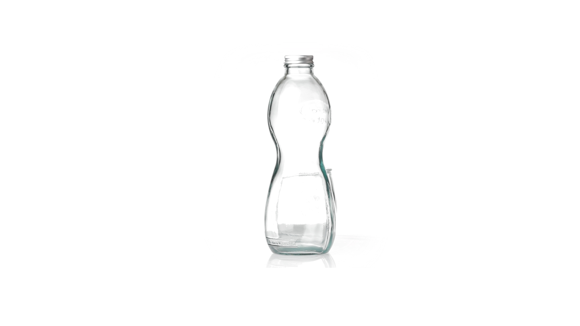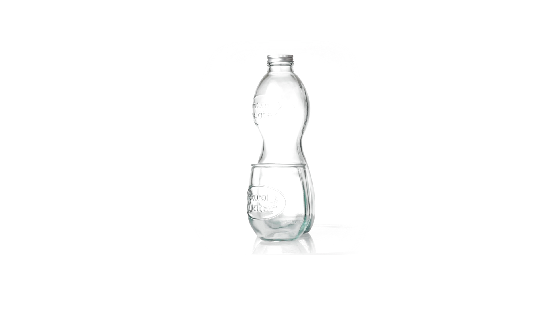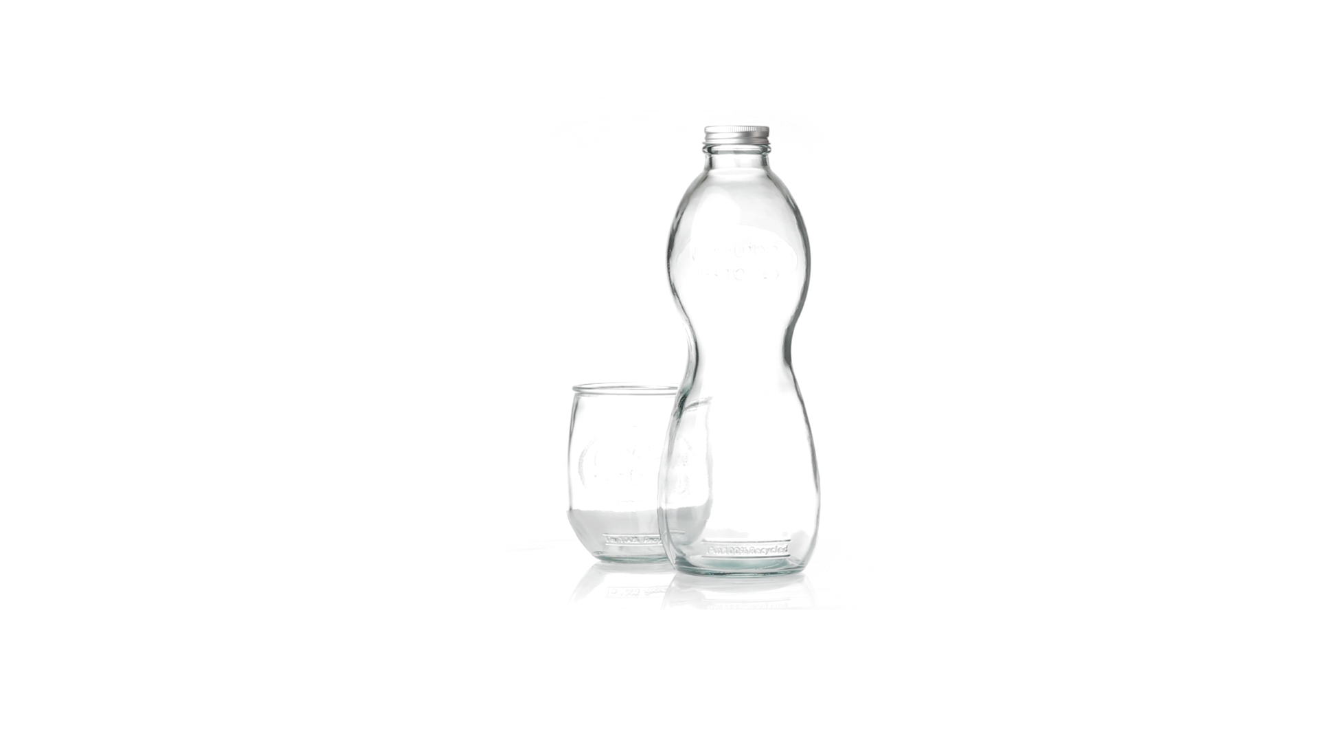 Linie "Natur" Set aus 2 Gläsern mit 400 ml und einer Flasche mit 1l Fassungsvermögen. Hergestellt in Europa aus recyceltem Glas mit GRS-Zertifizierung (Global Recycled Standard) bestätigt die recycelte Herkunft des Materials bei der Herstellung des Produkts verwendet. Flasche mit Schraubdeckel aus Metall. Das Set wird in einer Schachtel aus recyceltem Karton mit Sichtfenster präsentiert.
