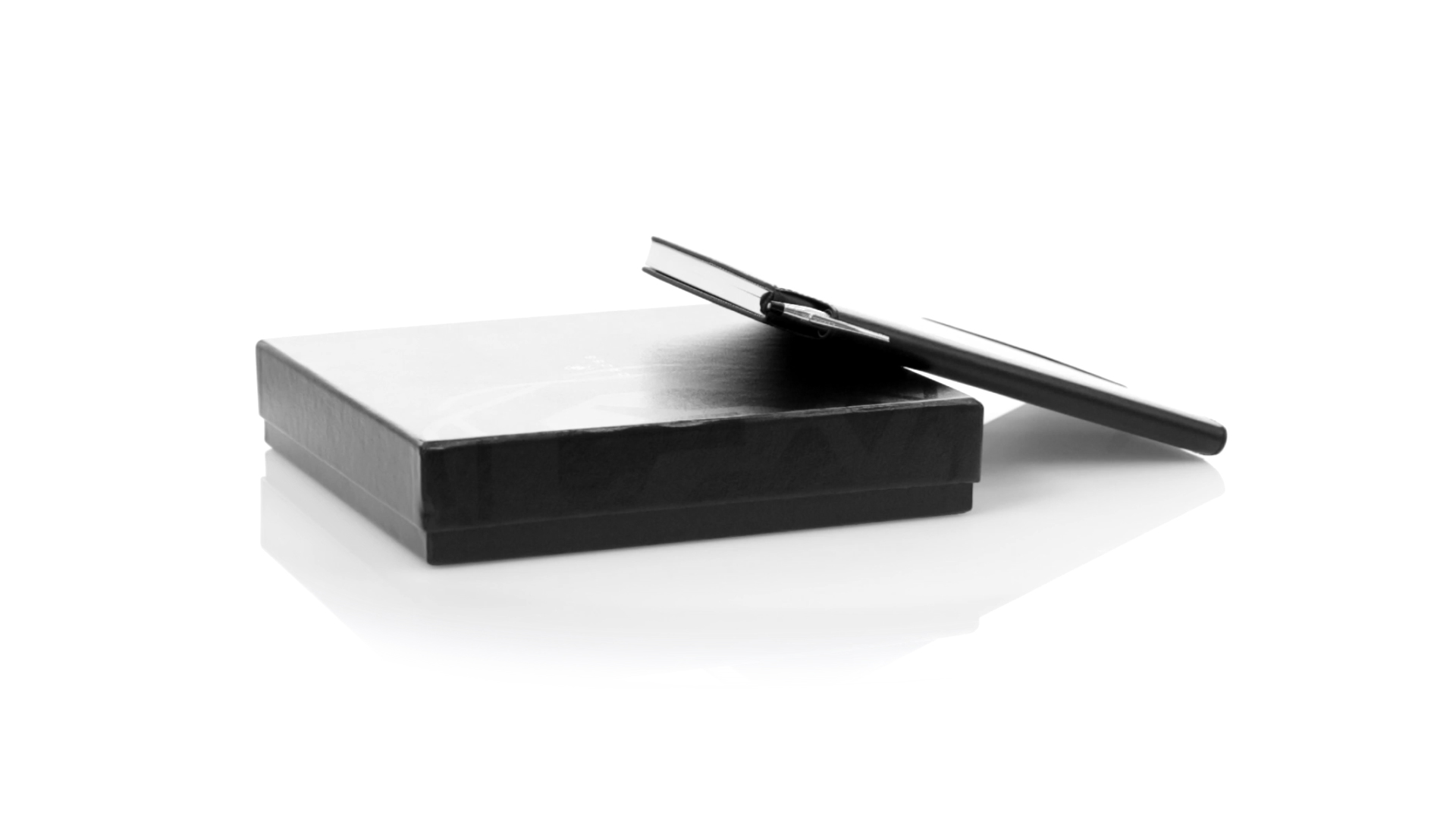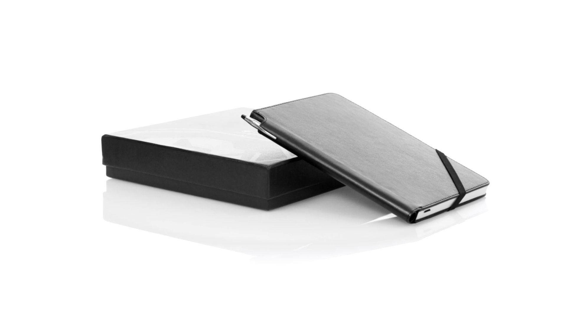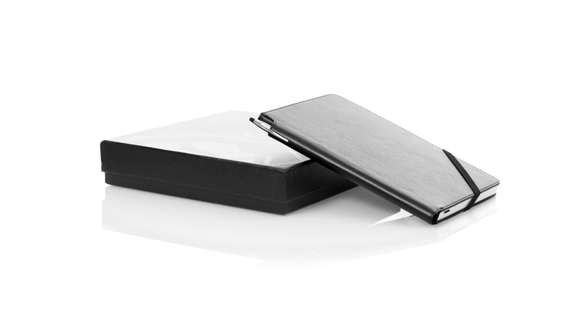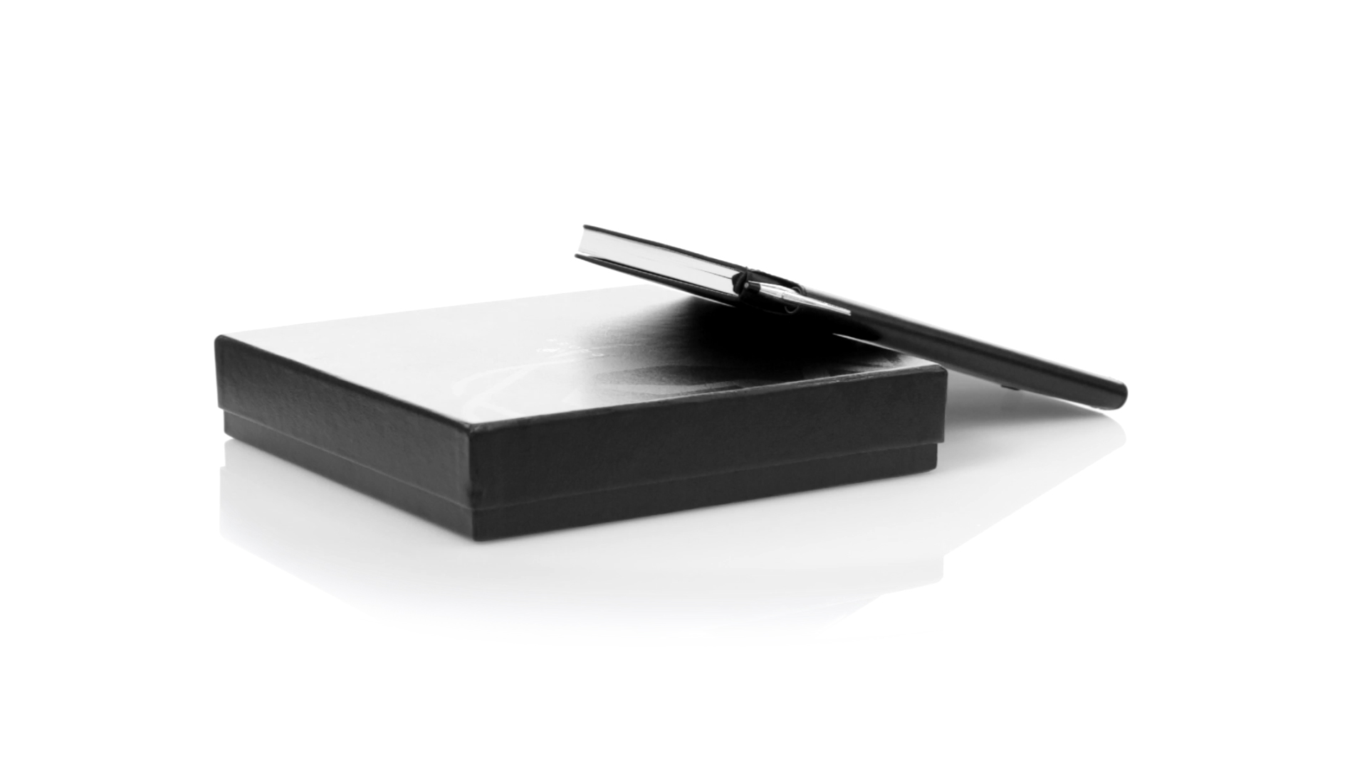 Set von Cross - Modell Century - aus Dreh-Kugelschreiber und Notizblock. Kugelschreiber mit schwarzer Tinte und Metallgehäuse in elegantem Silber. Notizblock mit Cover aus glattem Kunstleder in Schwarz und 80 linierten Blättern. Präsentiert in einer individuellen Box mit dem Markenlogo.