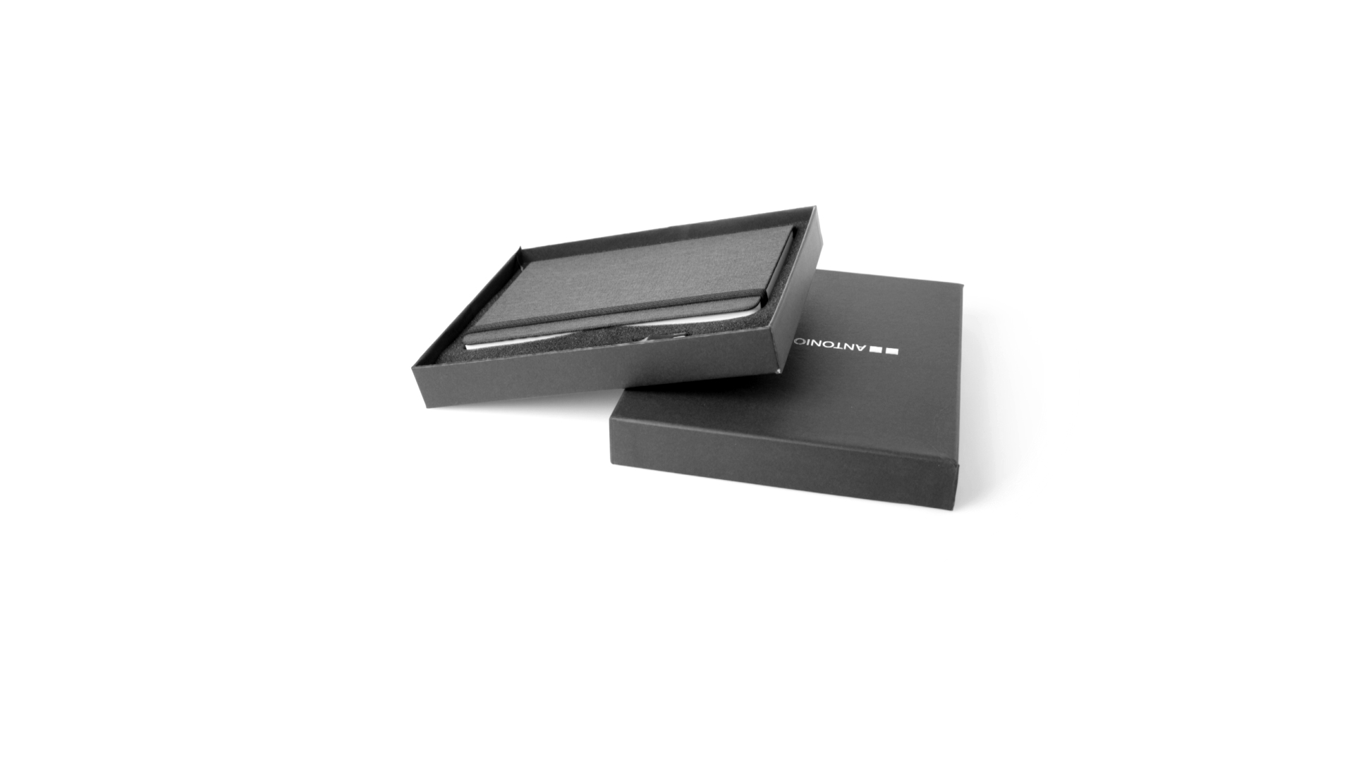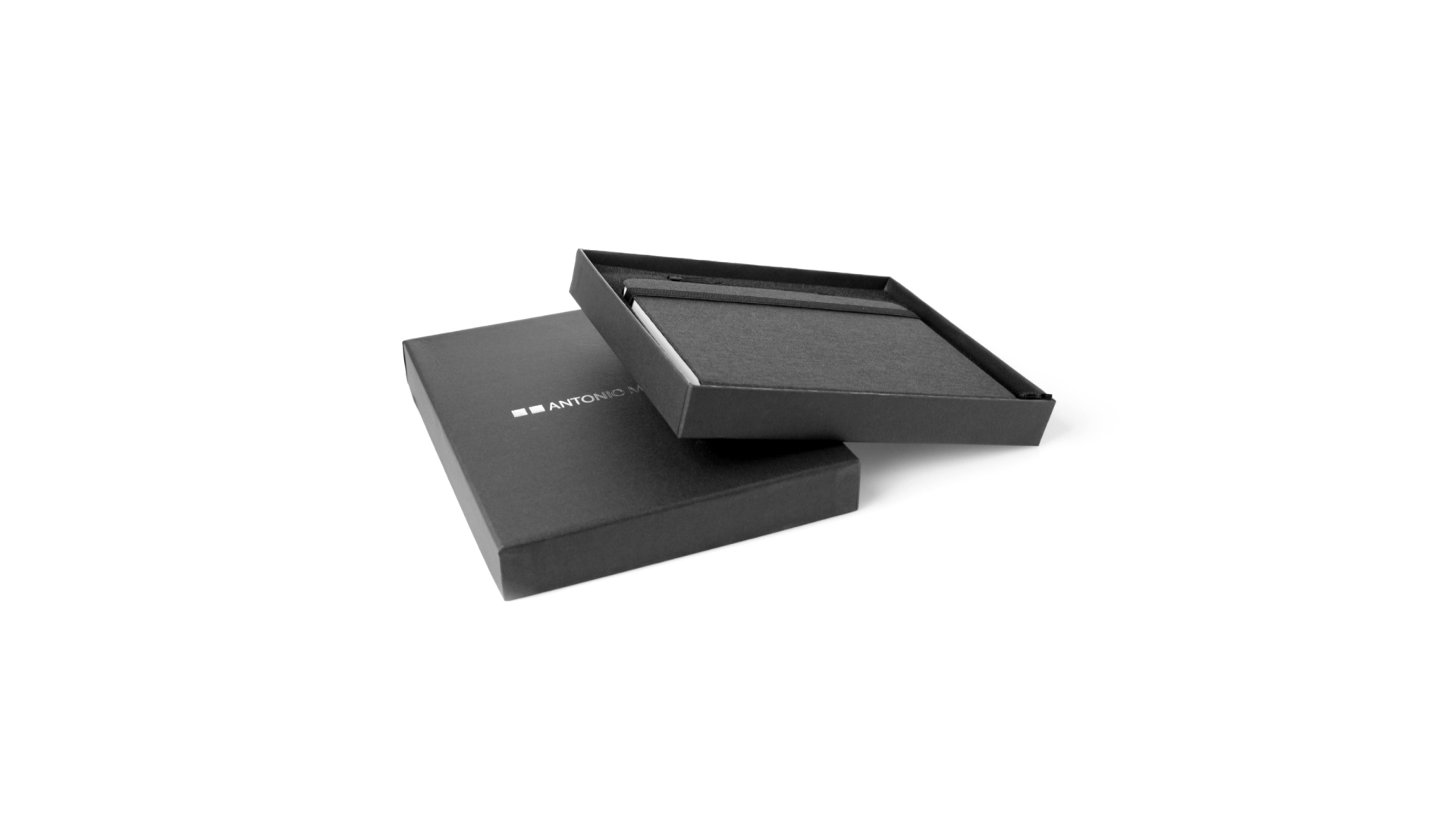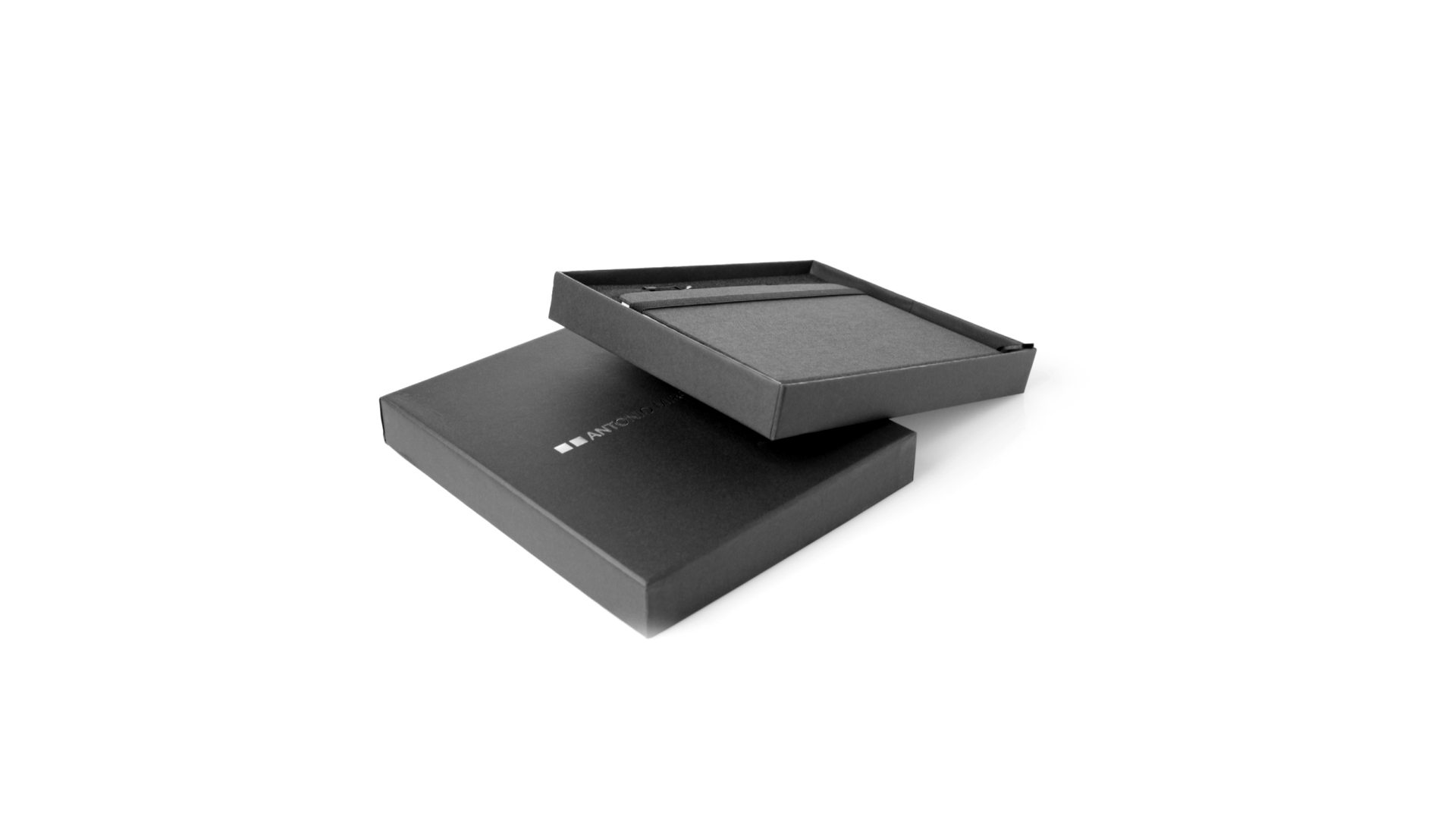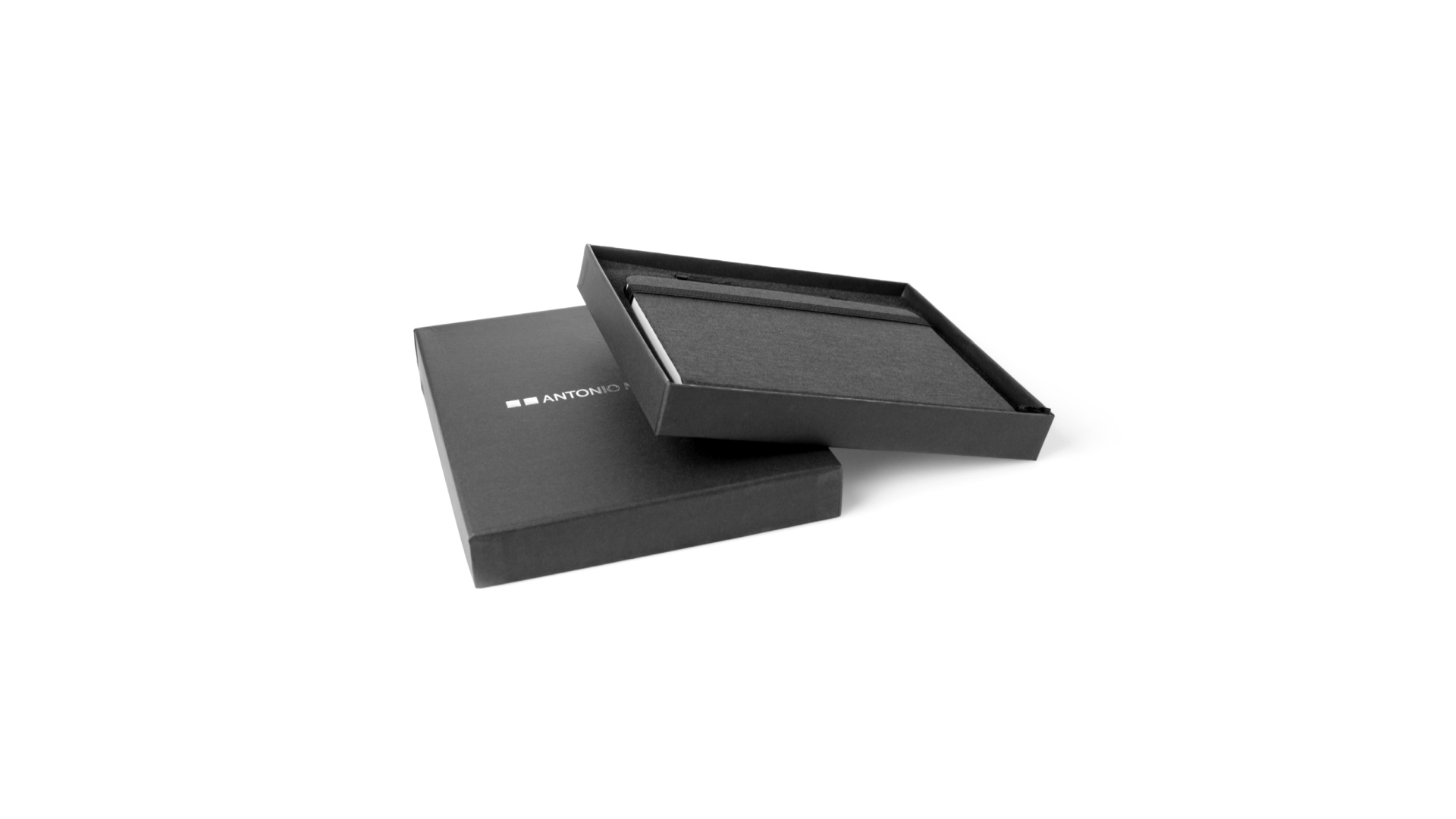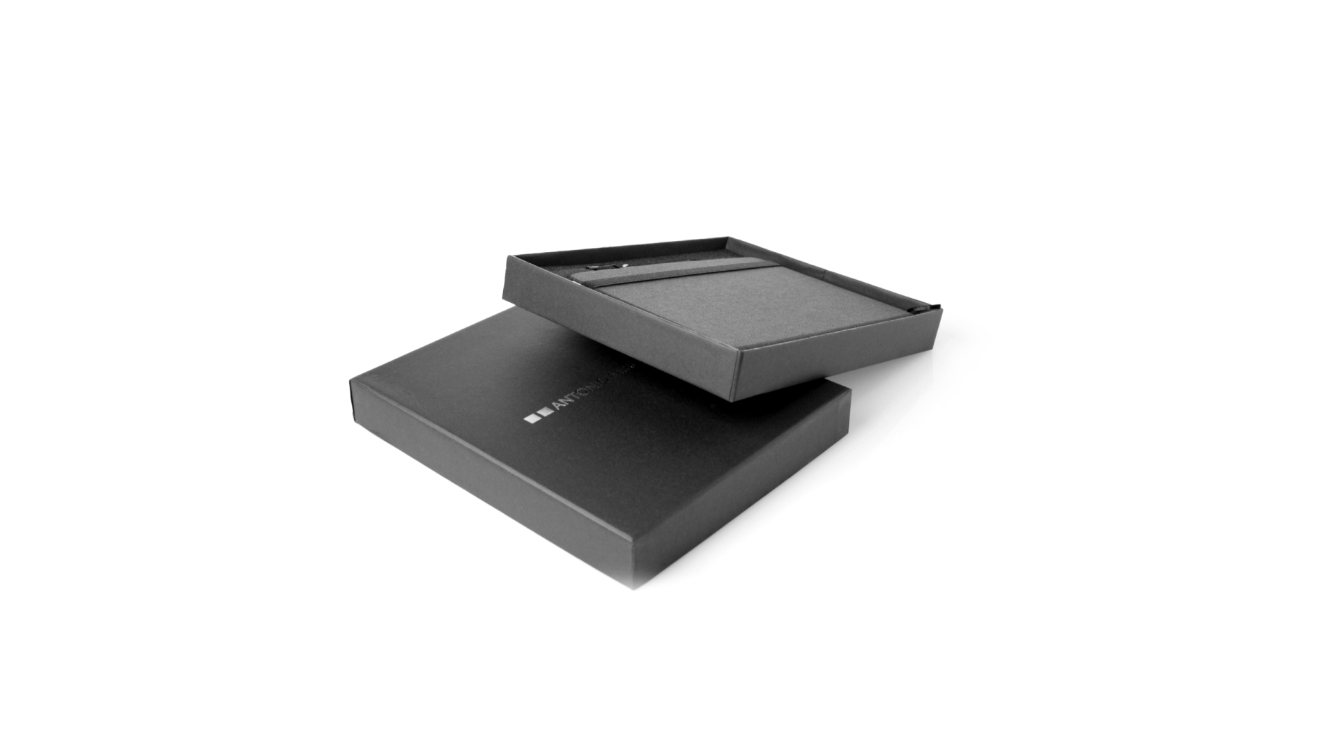 Set aus Notizblock und Stift von Antonio Miró. Enthält:Notizblock in elegantem Schwarz, aus strapazierfähigem 300D-Polyester, mit festem Umschlag und passendem Gummizug. Innenseite mit 100 linierten Blättern.Kugelschreiber aus Metall mit Drehmechanik und blauschreibender Tinte. Mit schwarzem Schaft und Zierleiste, Metallclip und Markenlogo.Das Set wird in einer eleganten und stabilen schwarzen Einzelschachtel mit Antonio Miró-Logo und passender Schutzhülle präsentiert.