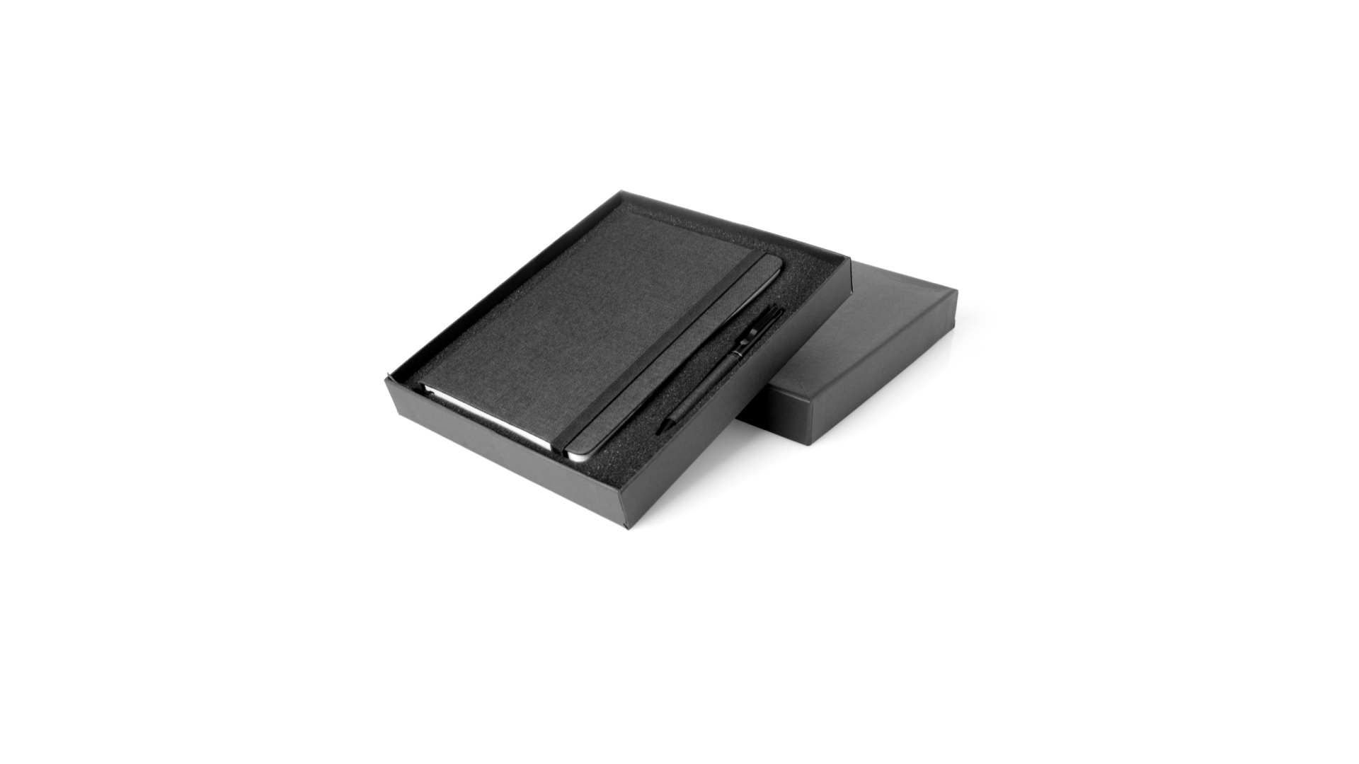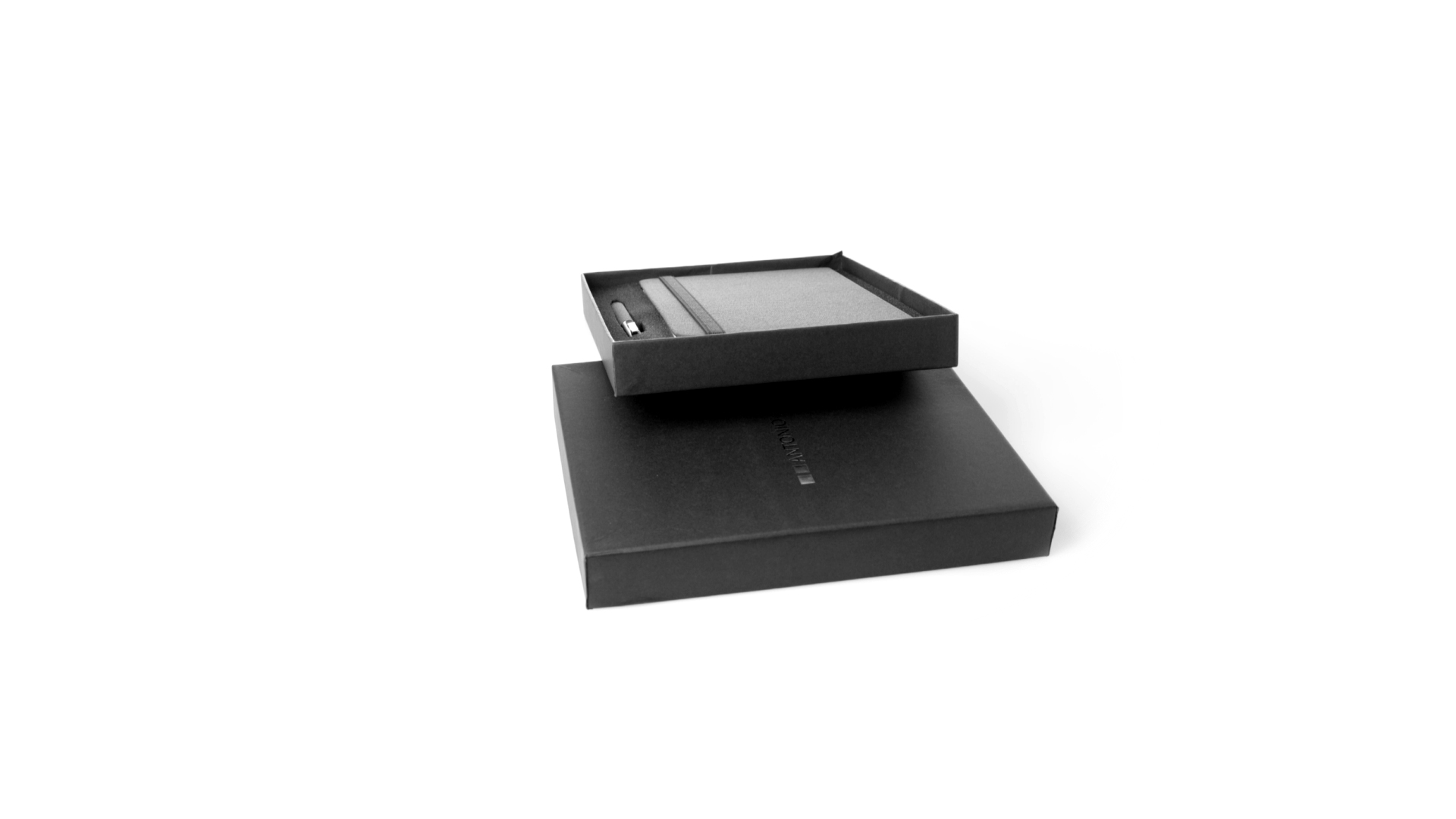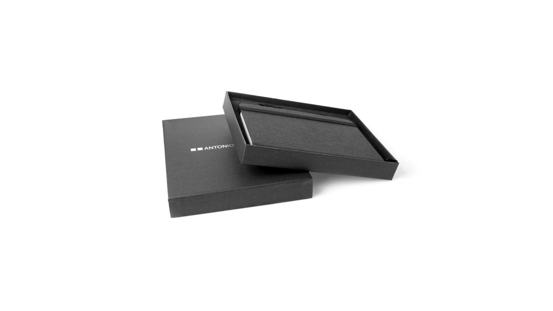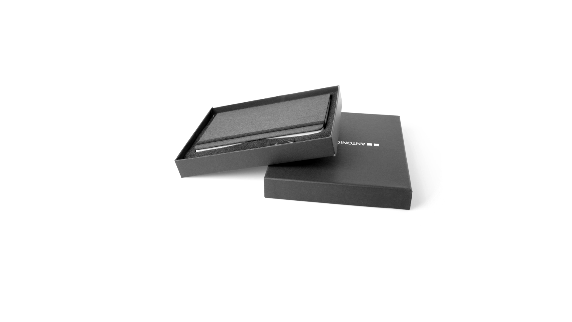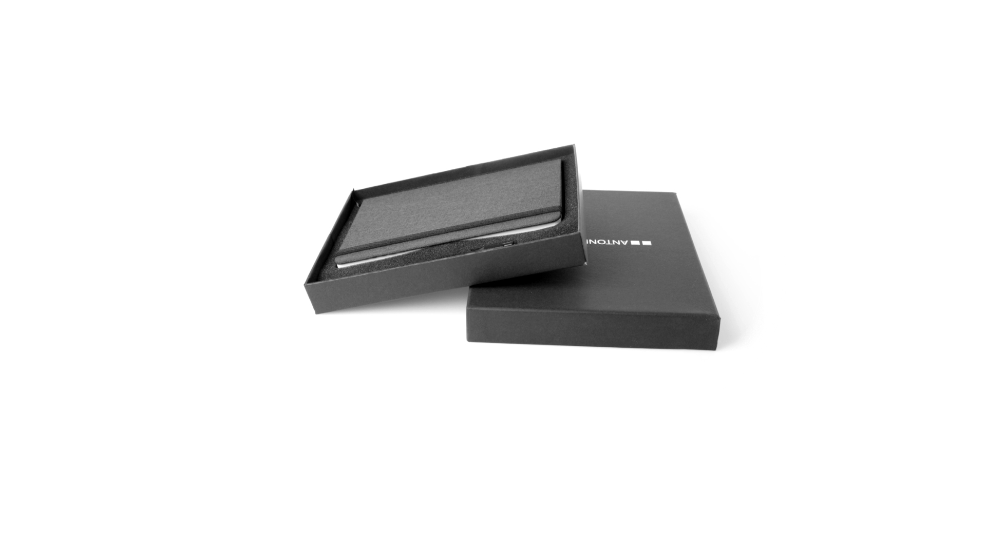 Set aus Notizblock und Stift von Antonio Miró. Enthält:Notizblock in elegantem Schwarz, aus strapazierfähigem 300D-Polyester, mit festem Umschlag und passendem Gummizug. Innenseite mit 100 linierten Blättern.Kugelschreiber aus Metall mit Drehmechanik und blauschreibender Tinte. Mit schwarzem Schaft und Zierleiste, Metallclip und Markenlogo.Das Set wird in einer eleganten und stabilen schwarzen Einzelschachtel mit Antonio Miró-Logo und passender Schutzhülle präsentiert.
