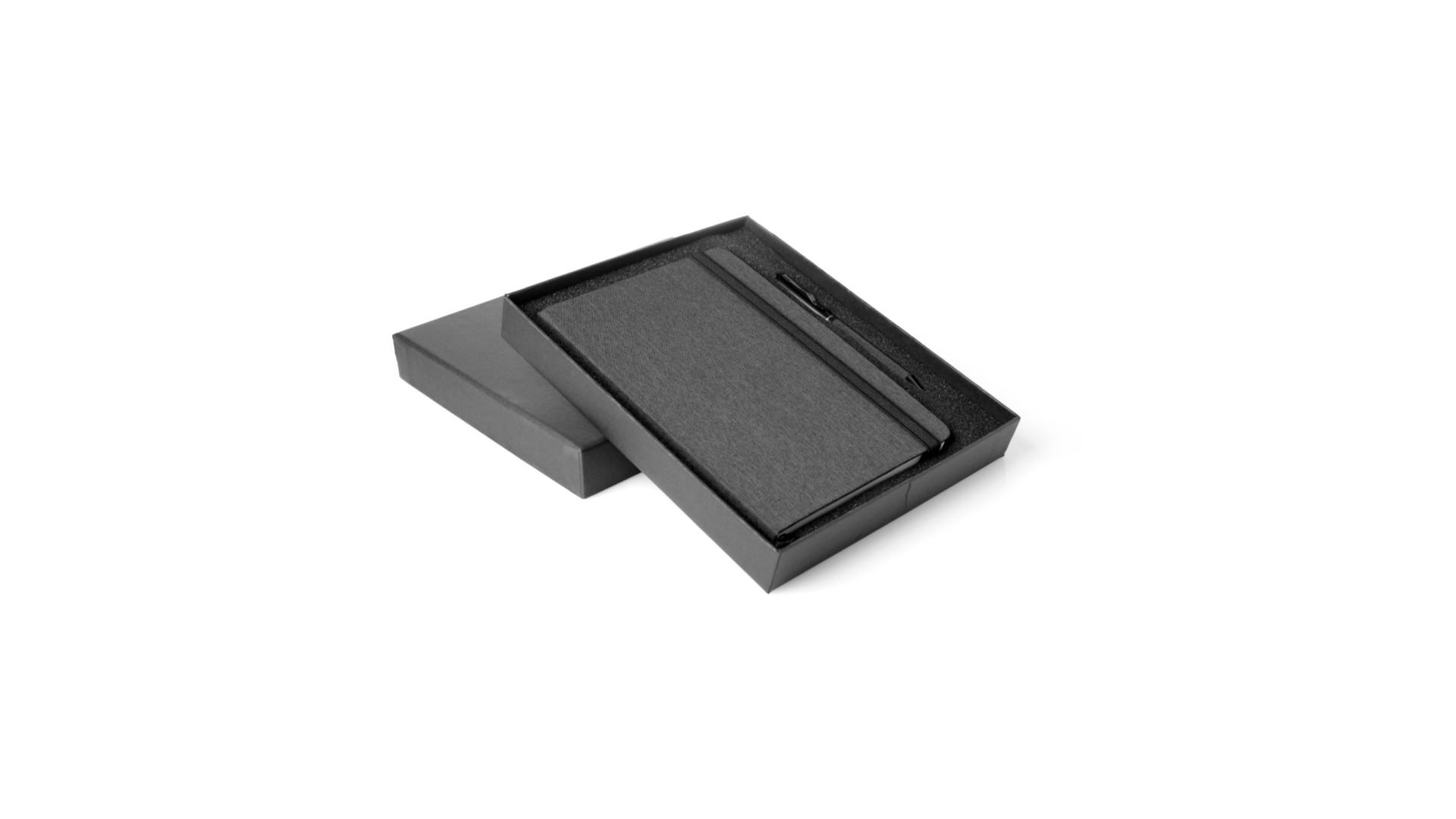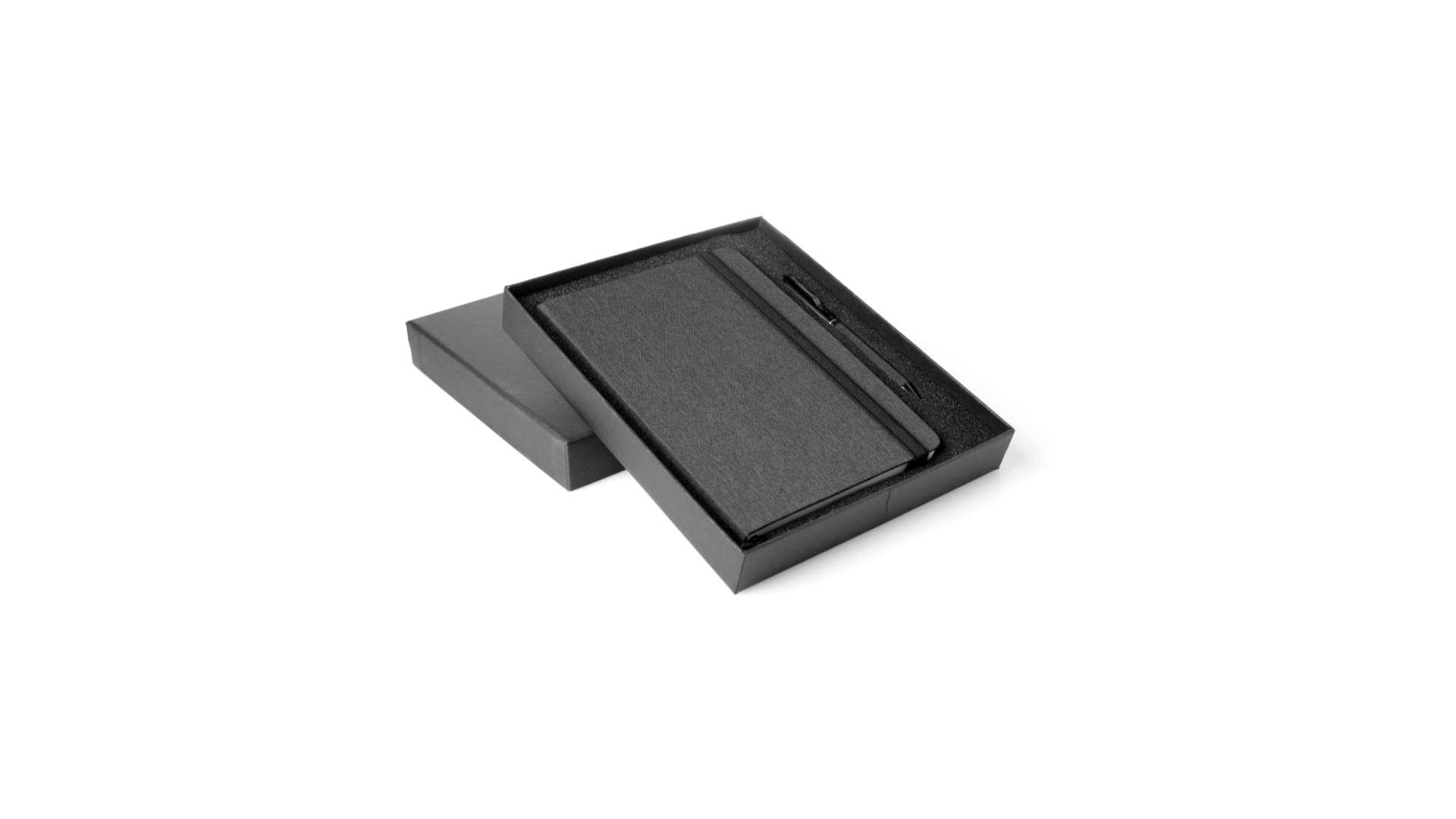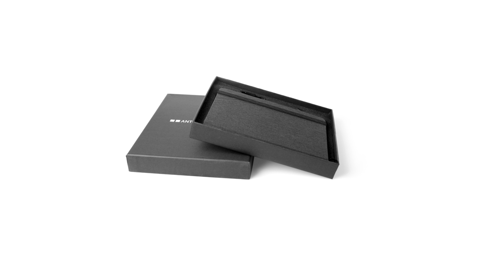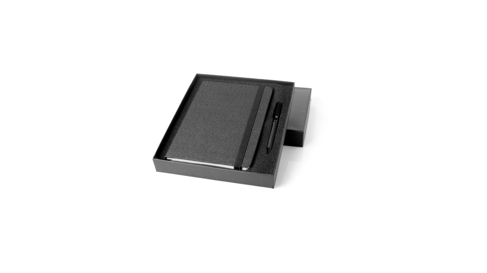 Set aus Notizblock und Stift von Antonio Miró. Enthält:Notizblock in elegantem Schwarz, aus strapazierfähigem 300D-Polyester, mit festem Umschlag und passendem Gummizug. Innenseite mit 100 linierten Blättern.Kugelschreiber aus Metall mit Drehmechanik und blauschreibender Tinte. Mit schwarzem Schaft und Zierleiste, Metallclip und Markenlogo.Das Set wird in einer eleganten und stabilen schwarzen Einzelschachtel mit Antonio Miró-Logo und passender Schutzhülle präsentiert.