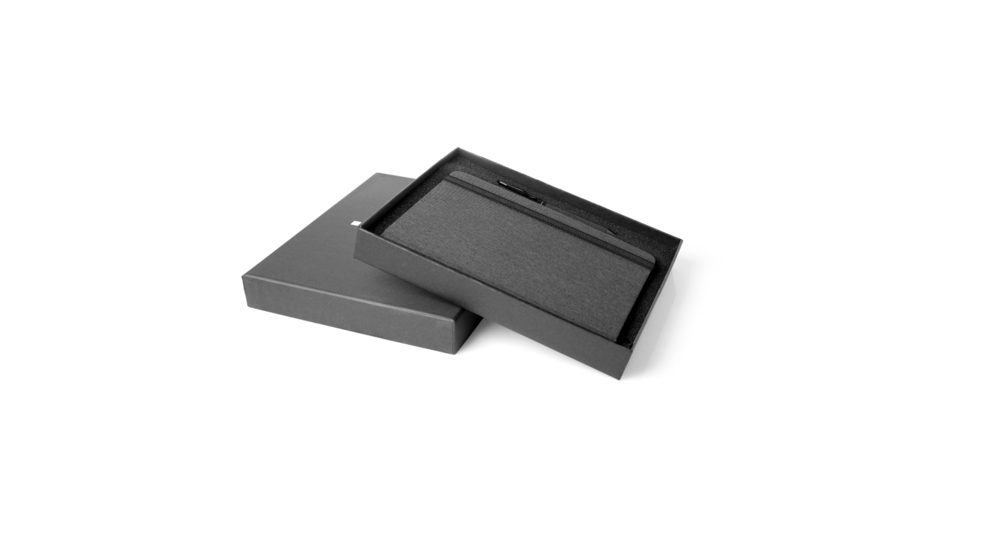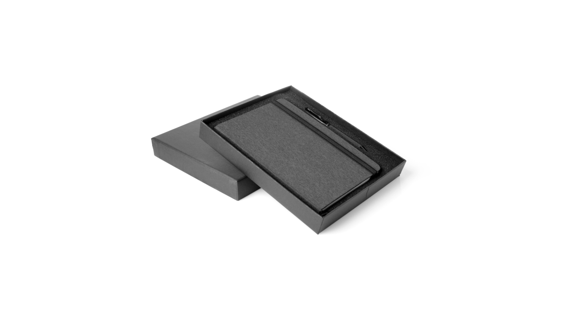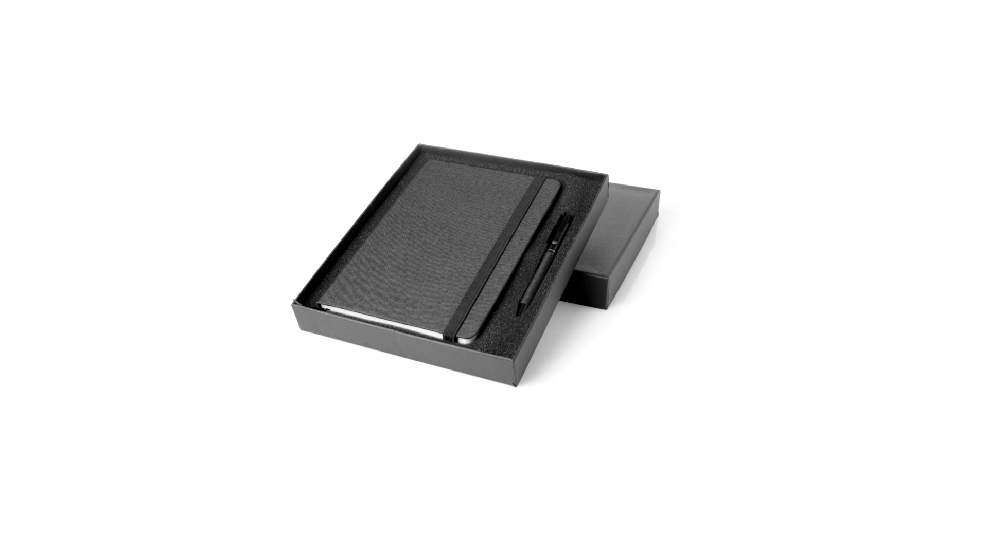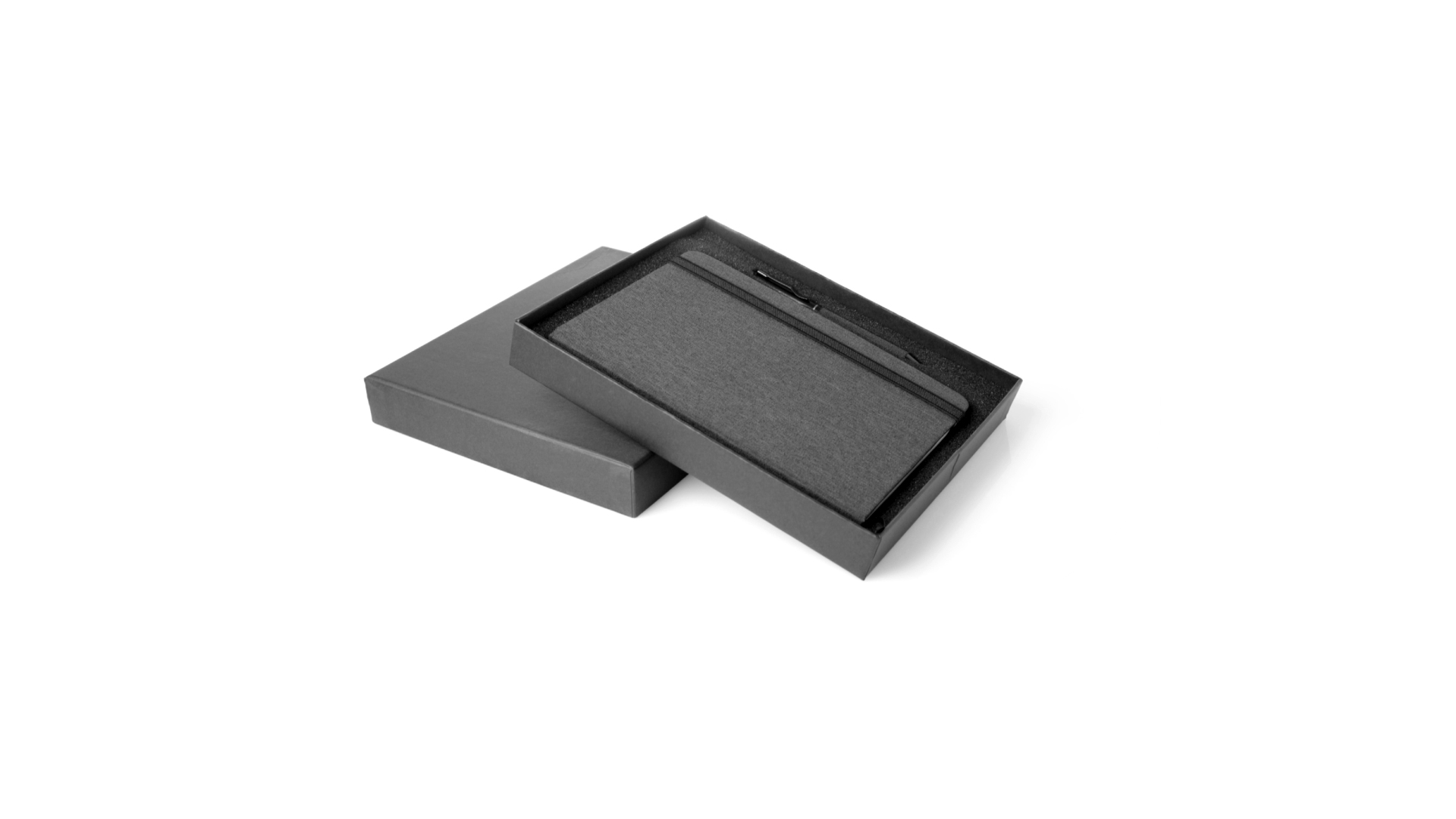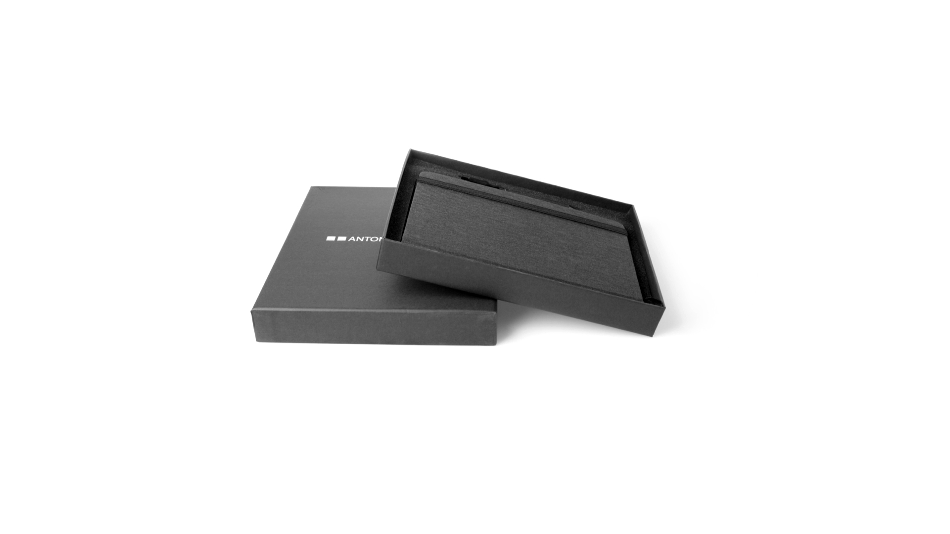 Set aus Notizblock und Stift von Antonio Miró. Enthält:Notizblock in elegantem Schwarz, aus strapazierfähigem 300D-Polyester, mit festem Umschlag und passendem Gummizug. Innenseite mit 100 linierten Blättern.Kugelschreiber aus Metall mit Drehmechanik und blauschreibender Tinte. Mit schwarzem Schaft und Zierleiste, Metallclip und Markenlogo.Das Set wird in einer eleganten und stabilen schwarzen Einzelschachtel mit Antonio Miró-Logo und passender Schutzhülle präsentiert.