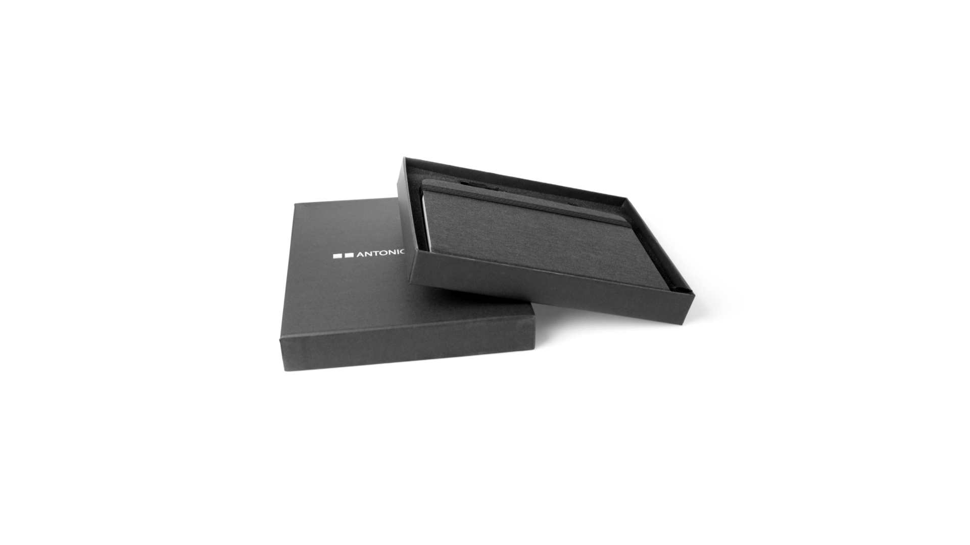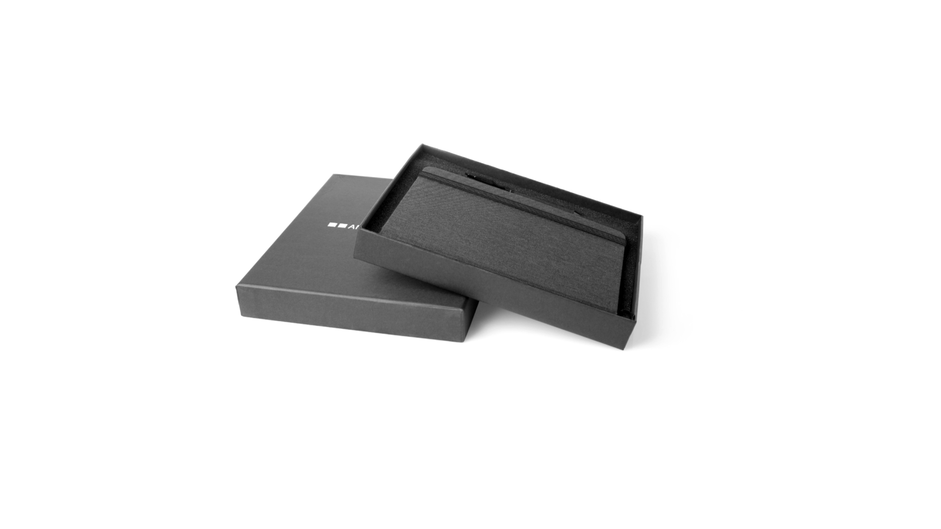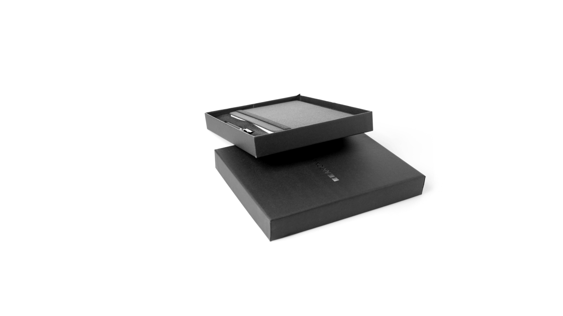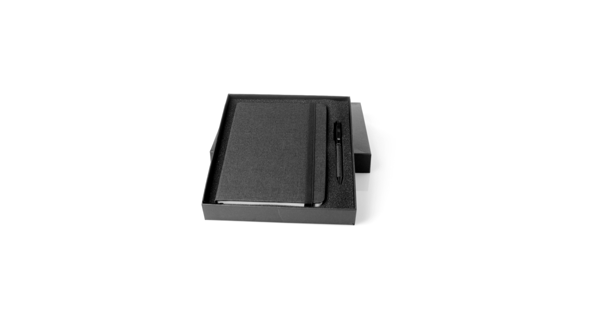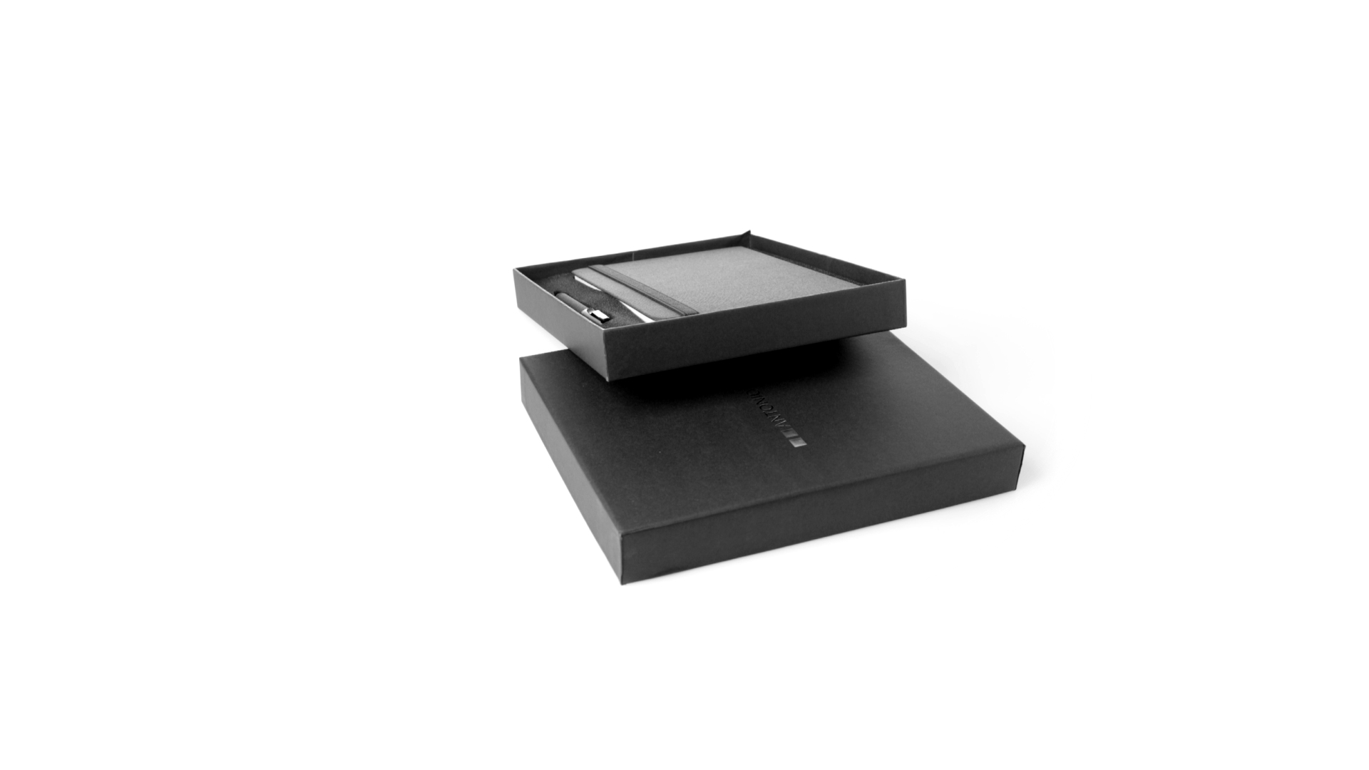 Set aus Notizblock und Stift von Antonio Miró. Enthält:Notizblock in elegantem Schwarz, aus strapazierfähigem 300D-Polyester, mit festem Umschlag und passendem Gummizug. Innenseite mit 100 linierten Blättern.Kugelschreiber aus Metall mit Drehmechanik und blauschreibender Tinte. Mit schwarzem Schaft und Zierleiste, Metallclip und Markenlogo.Das Set wird in einer eleganten und stabilen schwarzen Einzelschachtel mit Antonio Miró-Logo und passender Schutzhülle präsentiert.